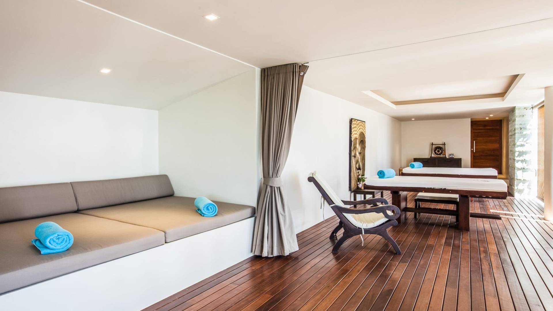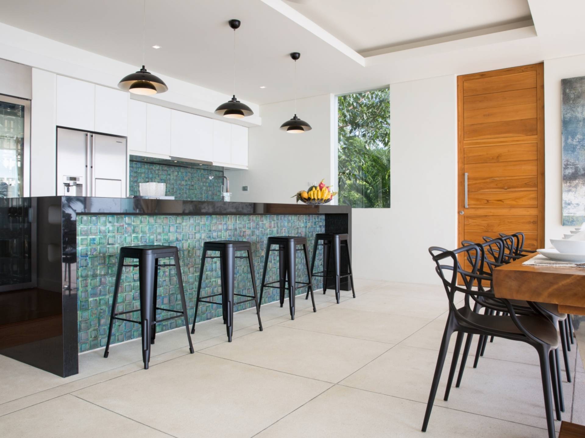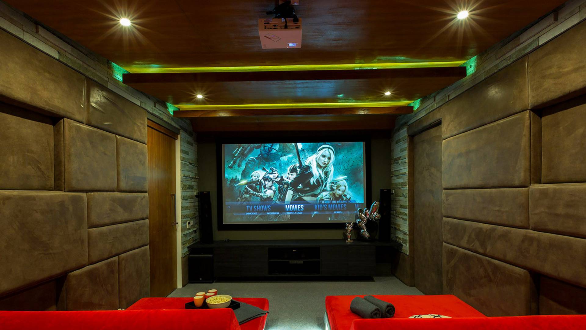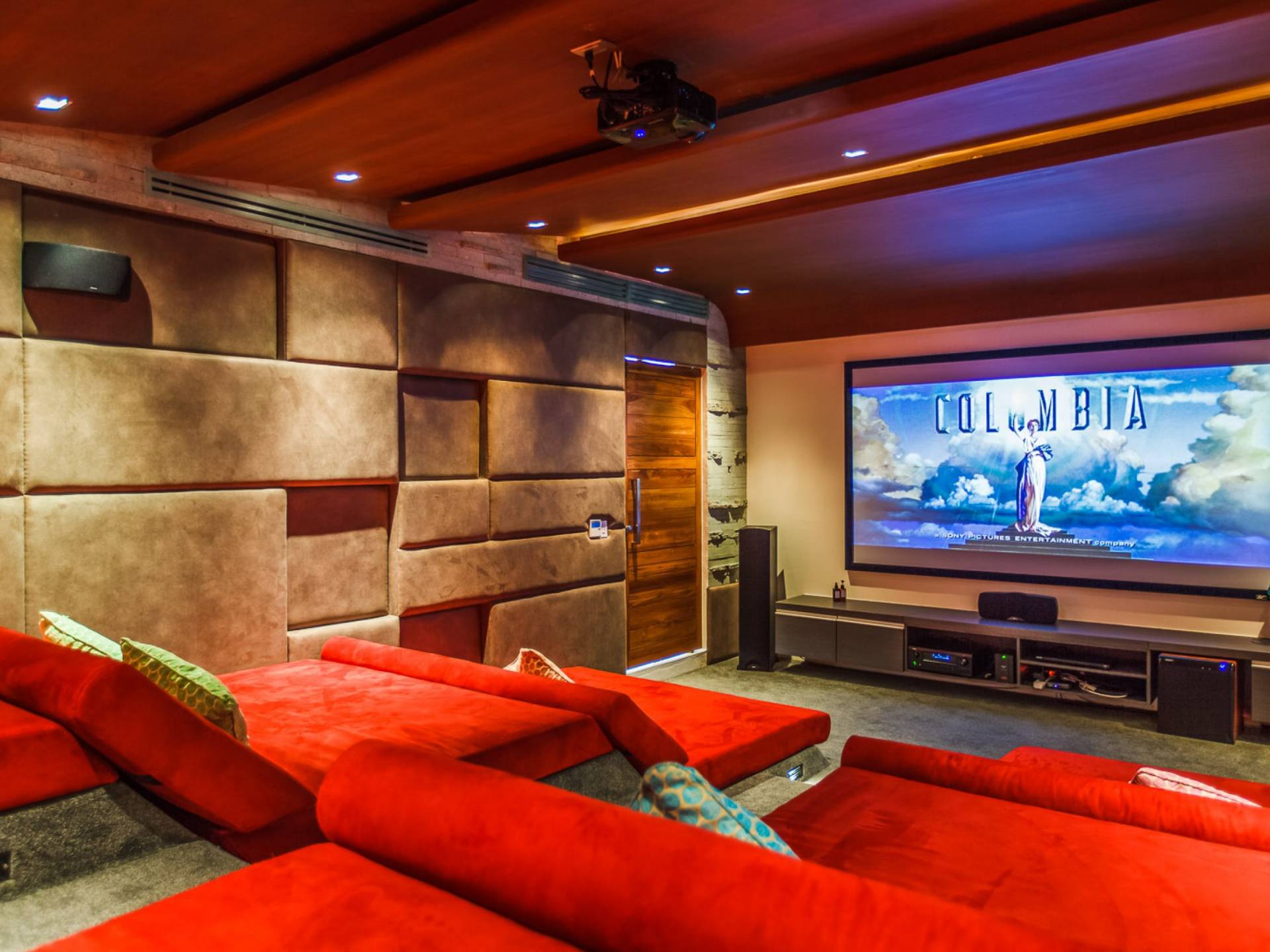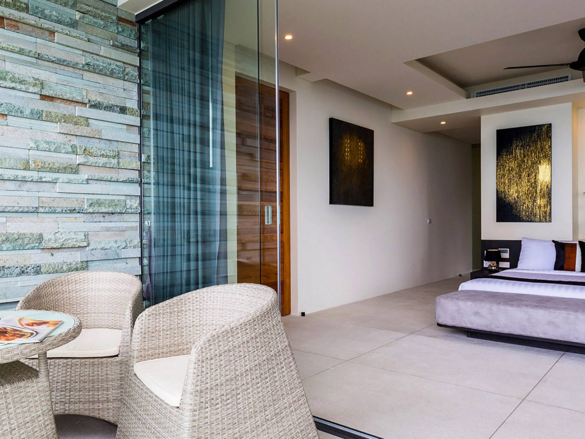 Rather than being built as stand-alone pavilions, all amenities are conveniently contained within a single, spacious, three-level property. The supreme layout and design ensure a unique, private tropical experience. Villa Splash at Lime Samui has five superior bedrooms, eight elegant bathrooms, a pool sala, a spa room, a fully equipped gym, a library room with a sun deck, and a deluxe private cinema with the most comfortable couches set before a three-meter screen. Another standout feature is the Great Room, which opens directly onto the pool deck and combines a lounge, a dining room, and a kitchen, each one on different levels.