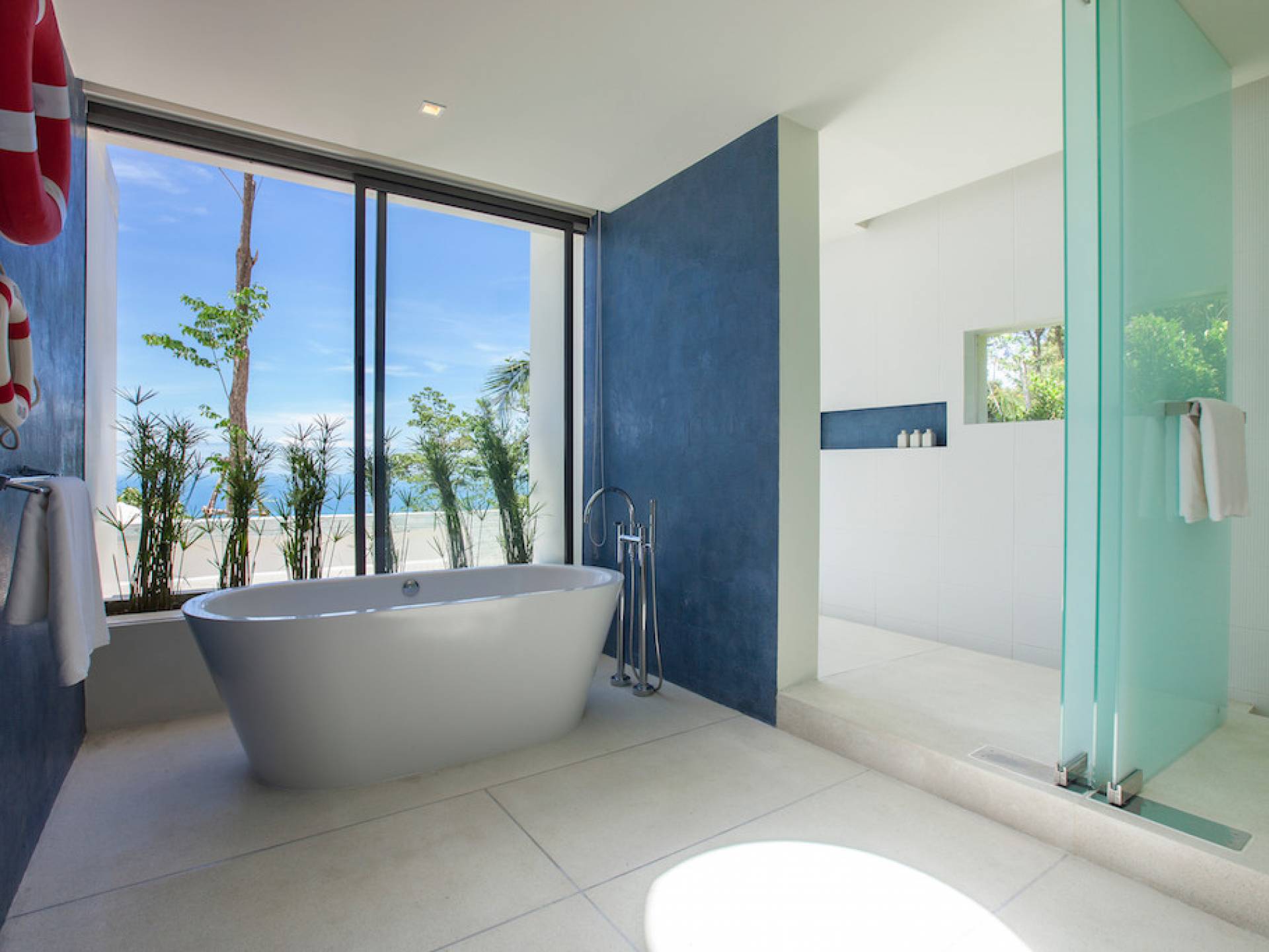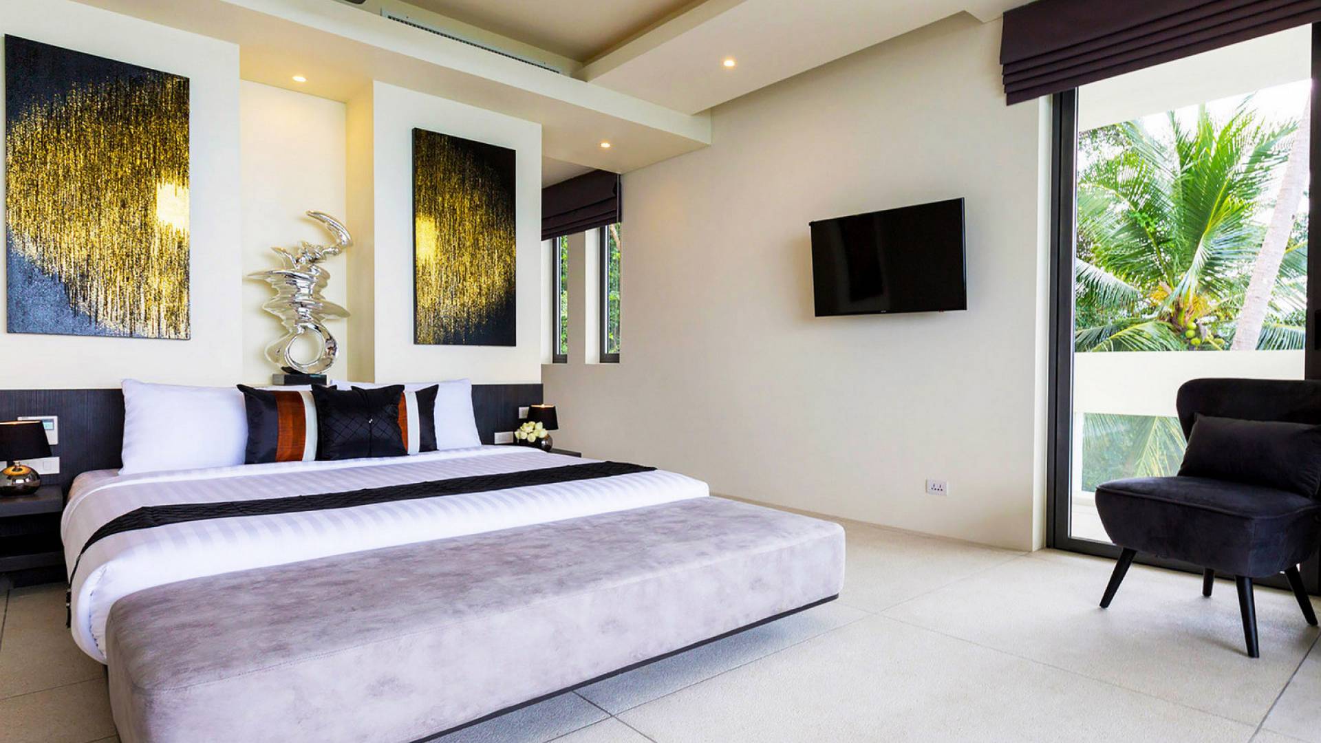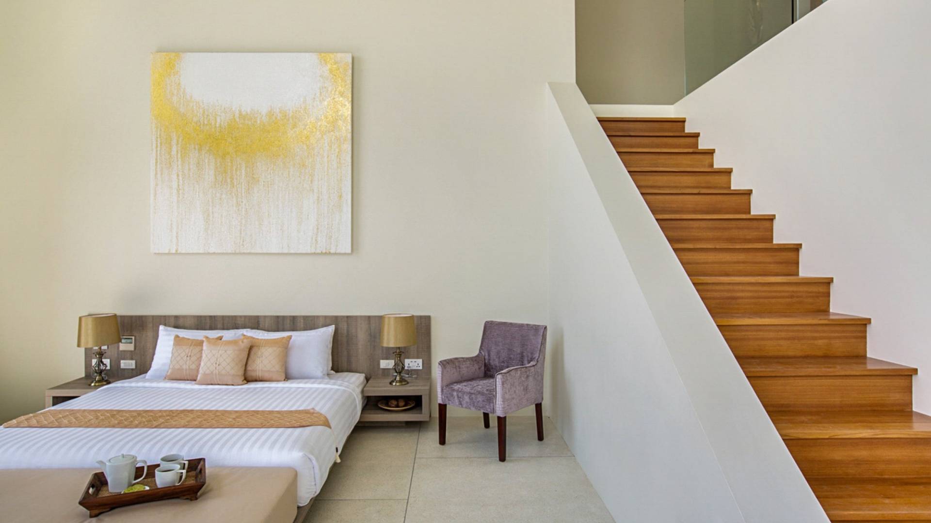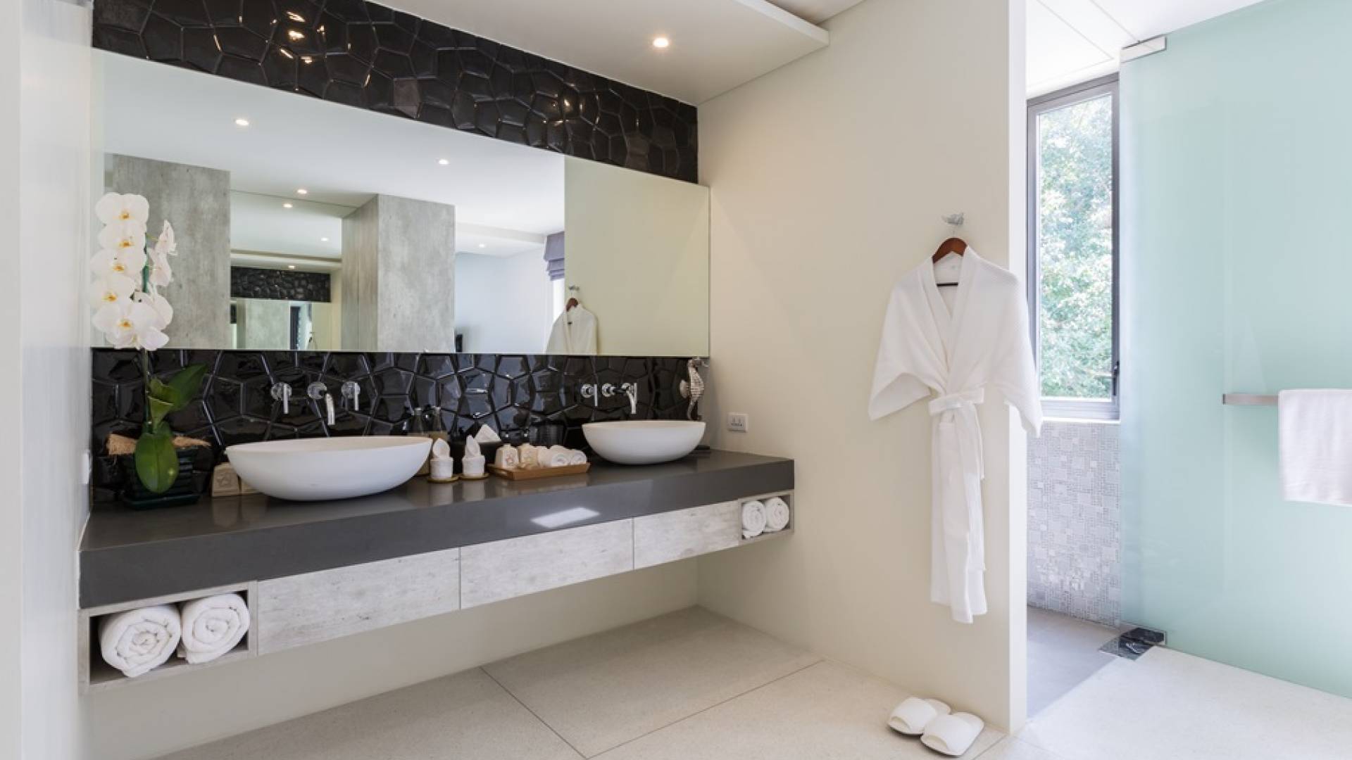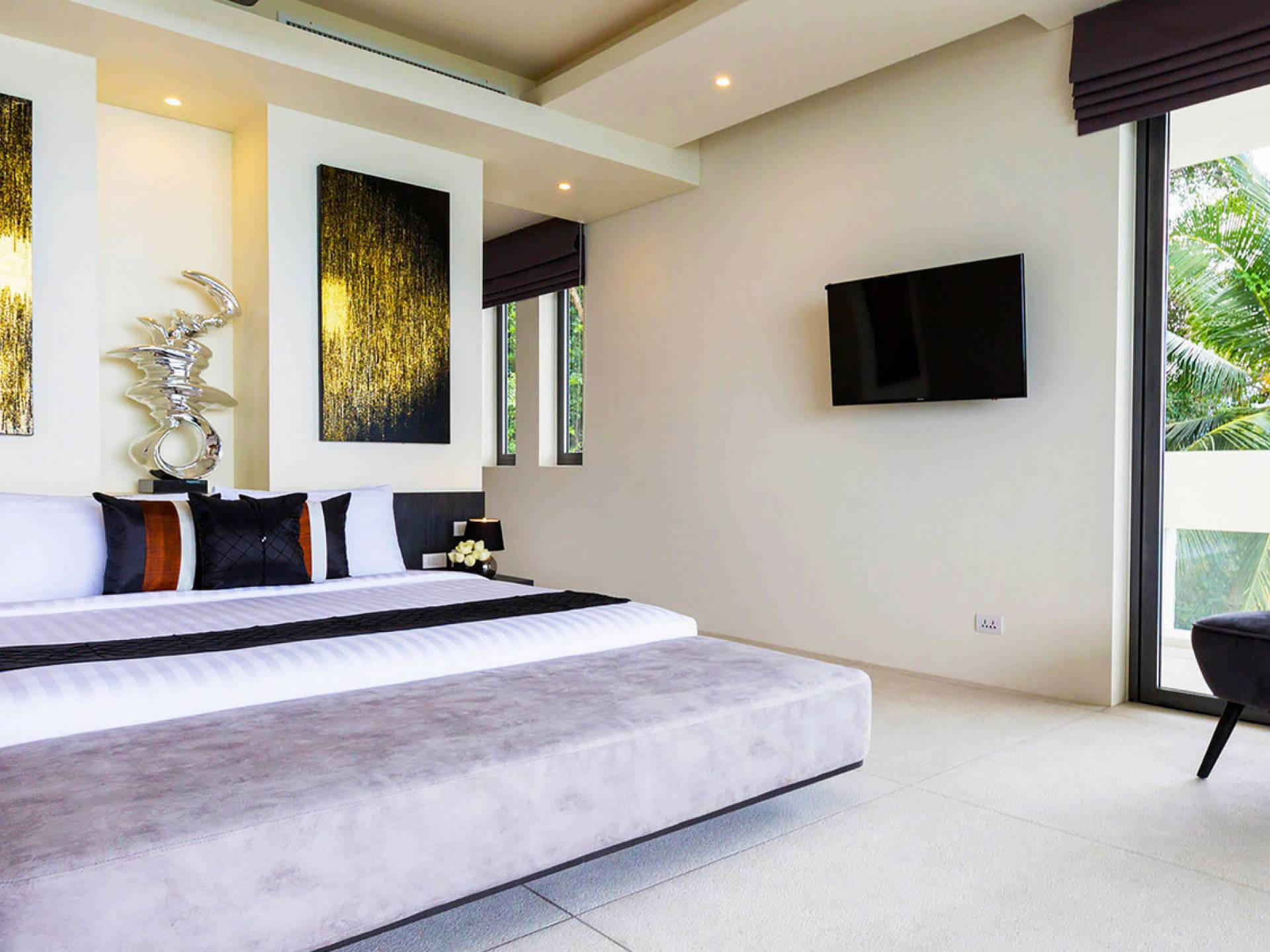 Rather than being built as stand-alone pavilions, all amenities are conveniently contained within a single, spacious, three-level property. The supreme layout and design ensure a unique, private tropical experience. Villa Splash at Lime Samui has five superior bedrooms, eight elegant bathrooms, a pool sala, a spa room, a fully equipped gym, a library room with a sun deck, and a deluxe private cinema with the most comfortable couches set before a three-meter screen. Another standout feature is the Great Room, which opens directly onto the pool deck and combines a lounge, a dining room, and a kitchen, each one on different levels.