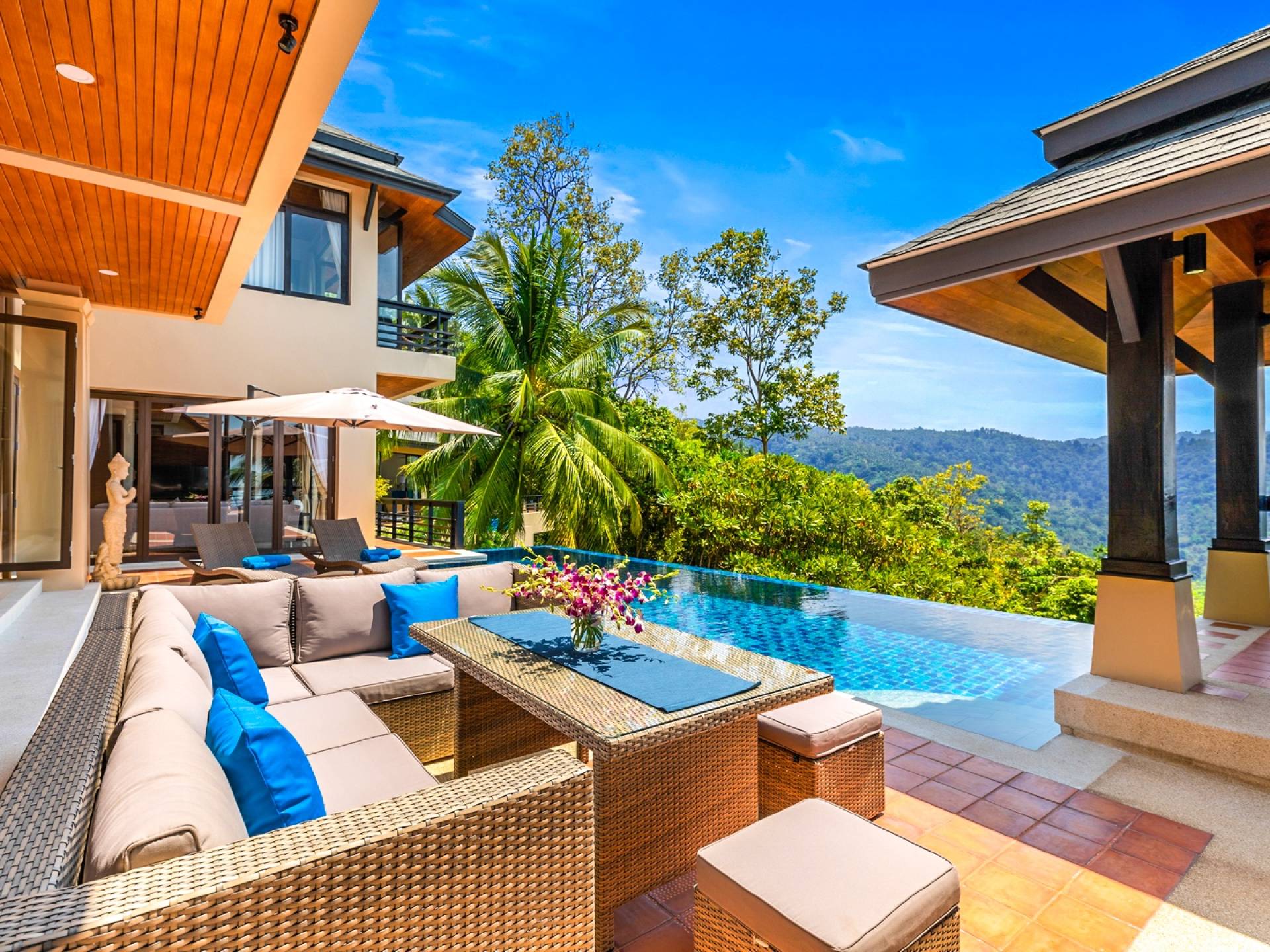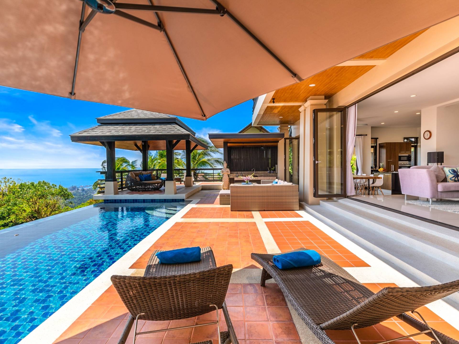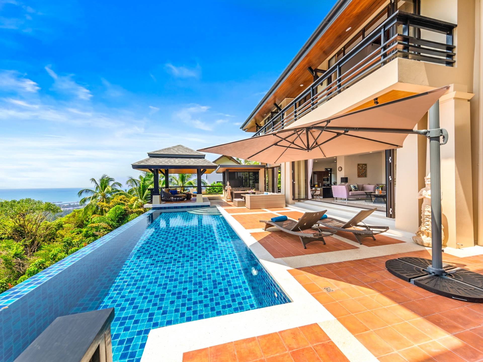 A spacious getaway villa situated in the stunning ocean view hills of the North West coast of Koh Samui, where you will find your own tropical hideaway: Vista Mar Samui. Peace and tranquility reign supreme in your 5,500 sqft private holiday home, linked with a spacious bungalow villa for your own dedicated use. The Villa boasts sweeping views of the Angthong Marine Park across the Gulf of Siam and beyond.