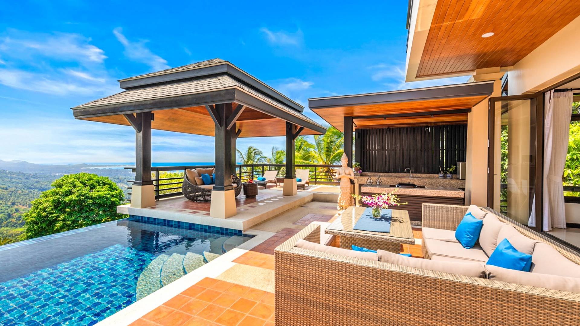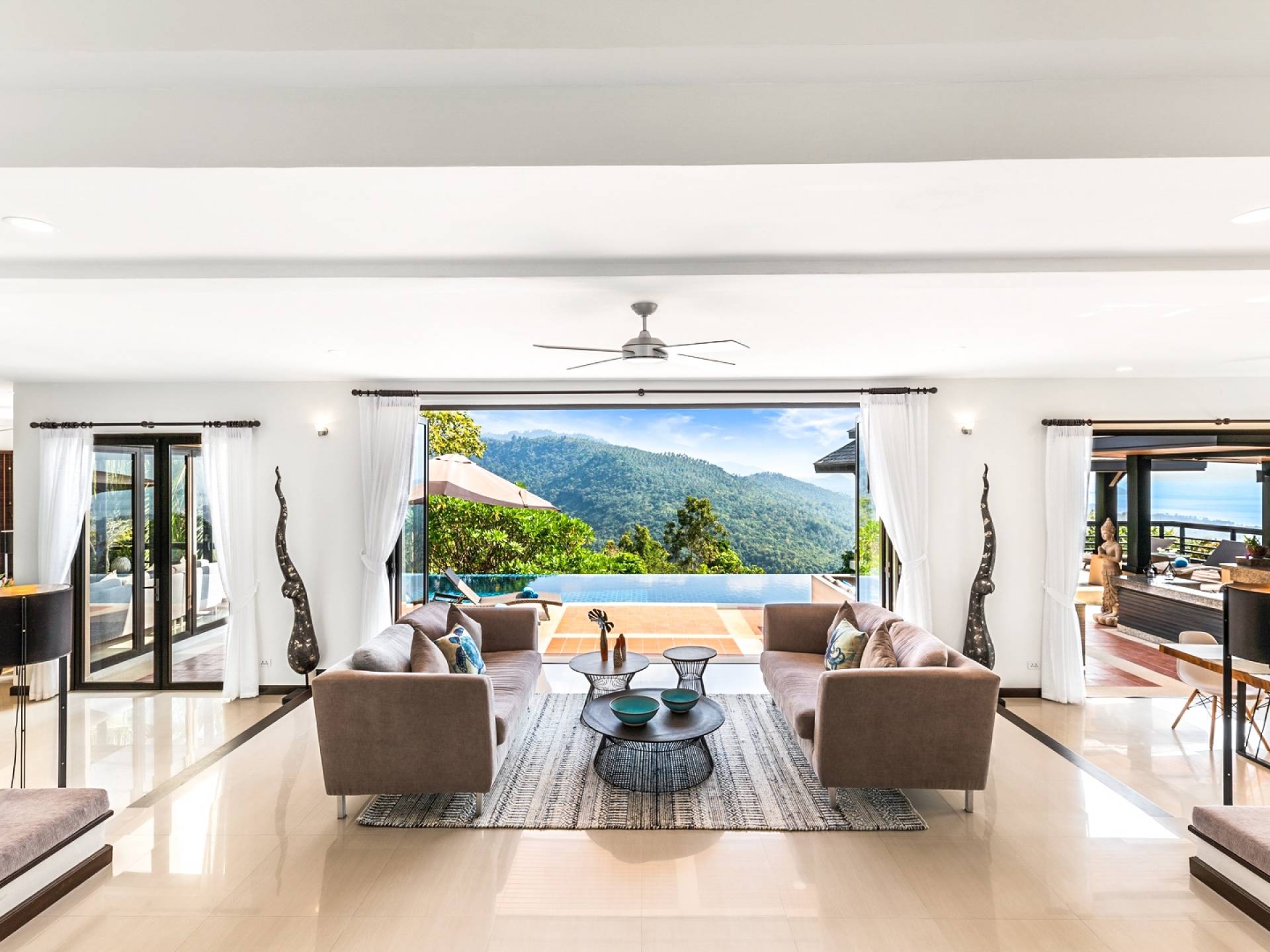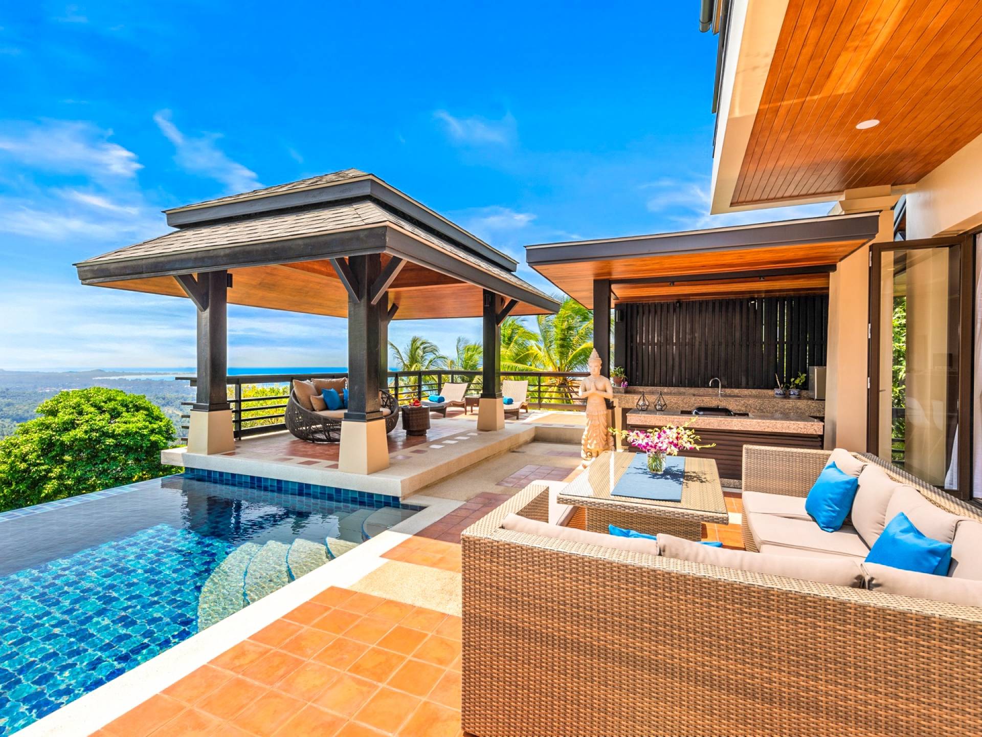 A spacious getaway villa situated in the stunning ocean view hills of the North West coast of Koh Samui, where you will find your own tropical hideaway: Vista Mar Samui. Peace and tranquility reign supreme in your 5,500 sqft private holiday home, linked with a spacious bungalow villa for your own dedicated use. The Villa boasts sweeping views of the Angthong Marine Park across the Gulf of Siam and beyond.