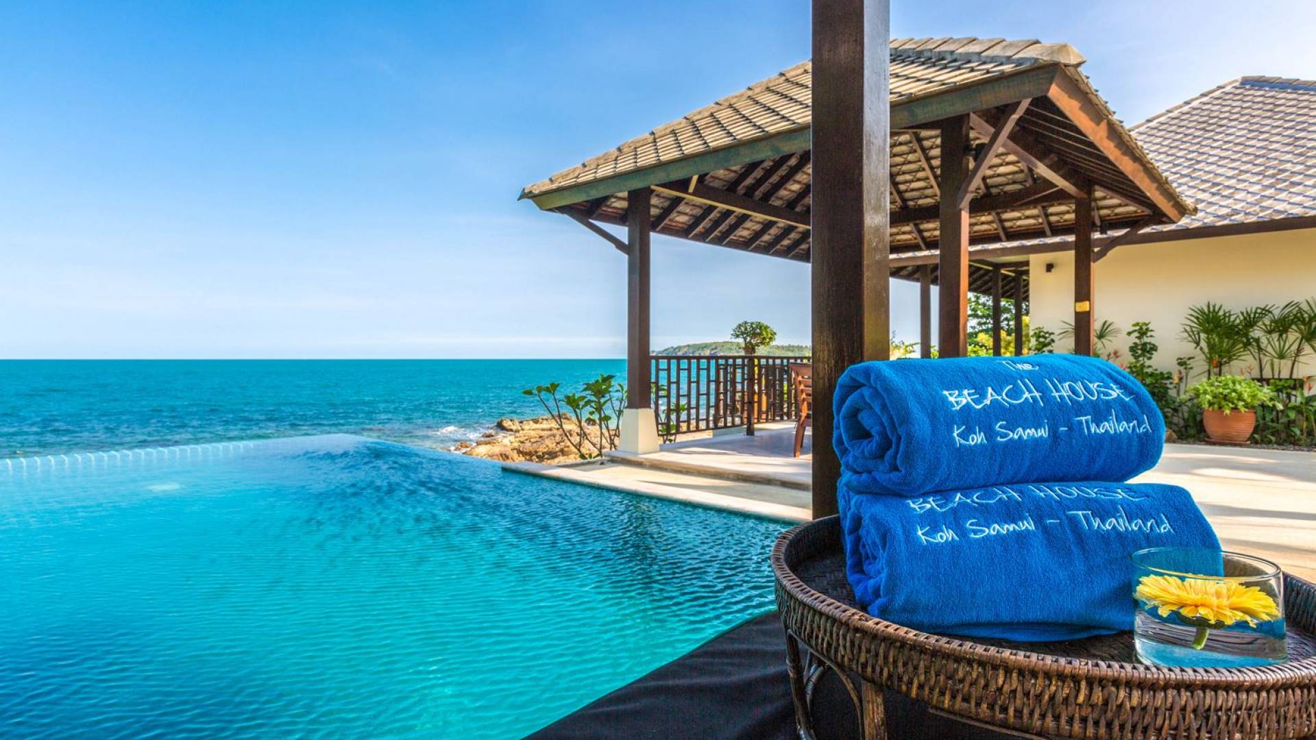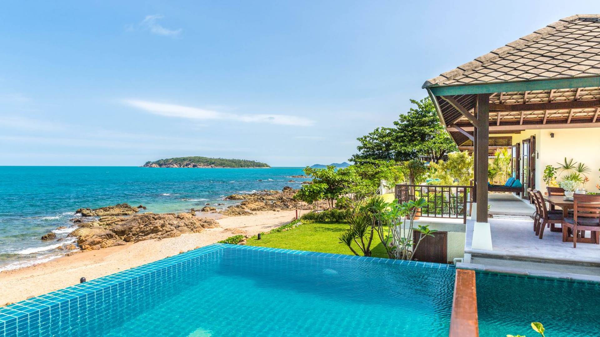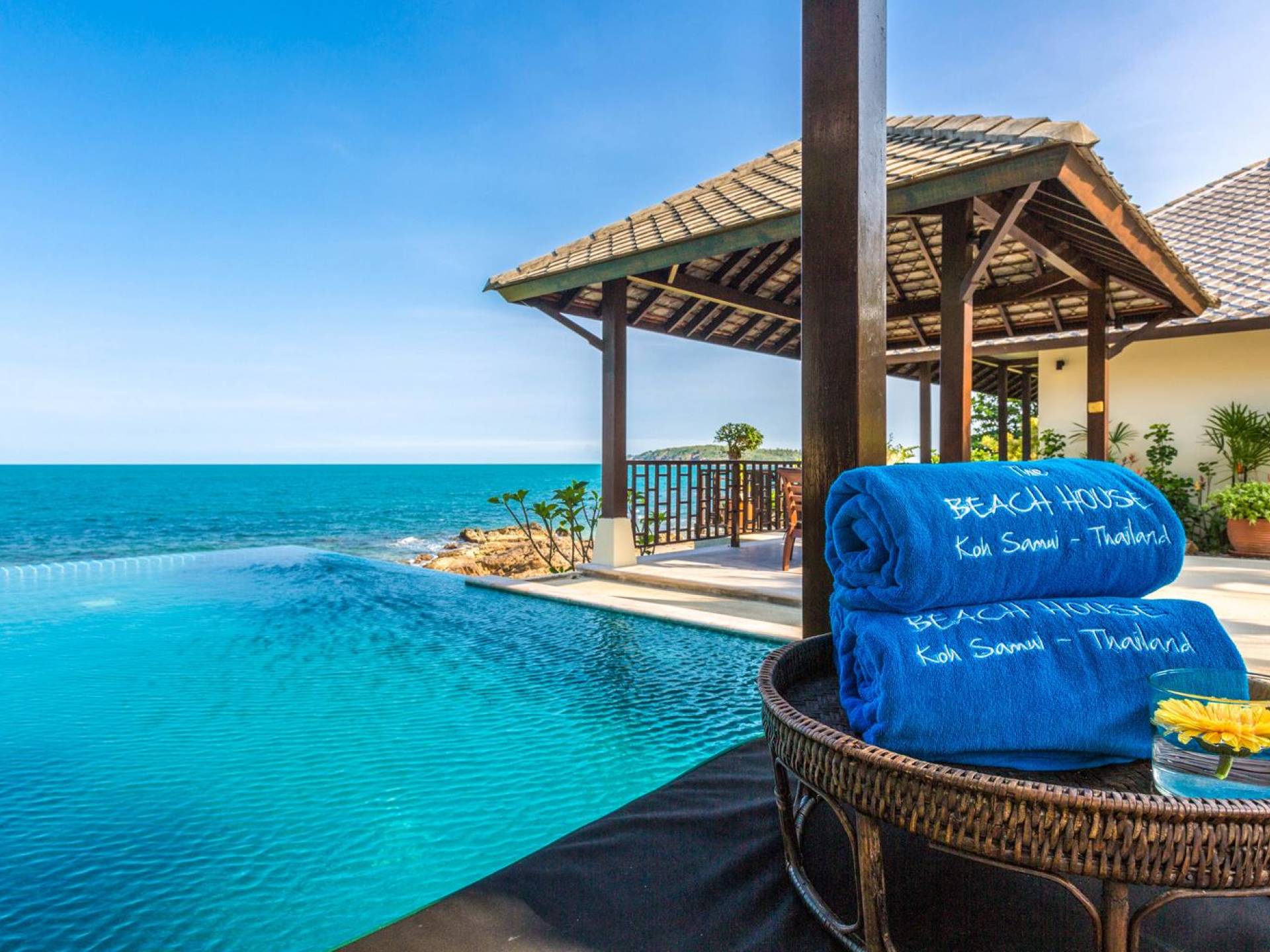 The Beach House Koh Samui is a luxury villa rental with 4 bedrooms and a private pool. The Beach House 4-bed, private, luxury, (true) beachfront villa, is a perfect blend of Thai and contemporary-Asian architecture, overlooking the pristine waters of the Gulf of Thailand! Perfectly positioned in a tranquil location on the coast road connecting with Chaweng Beach – a 5 min ride (Choeng Mon/1km).