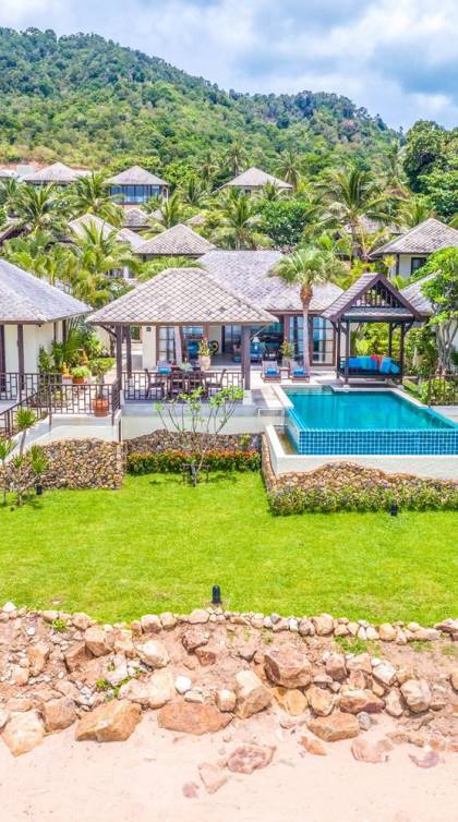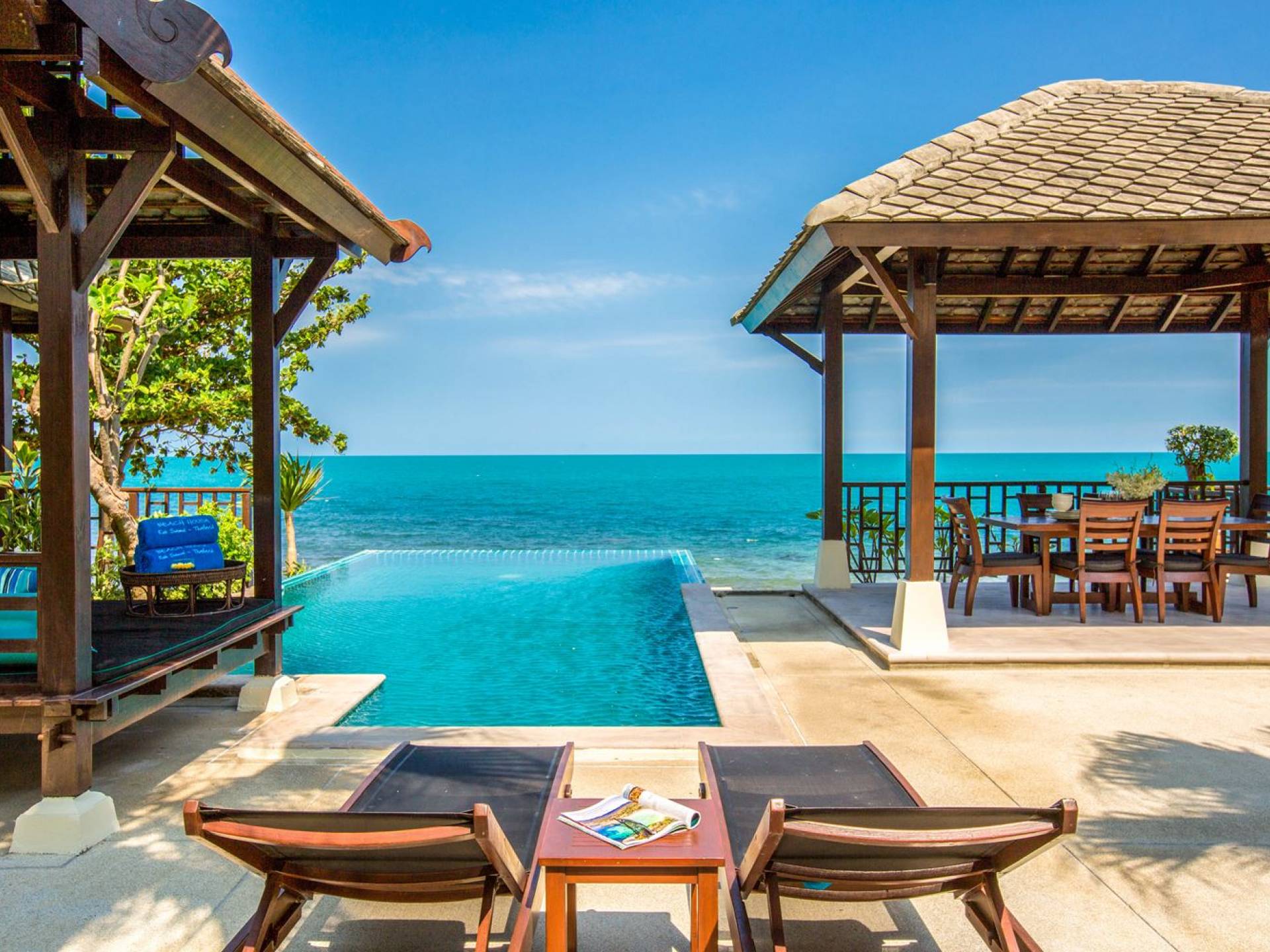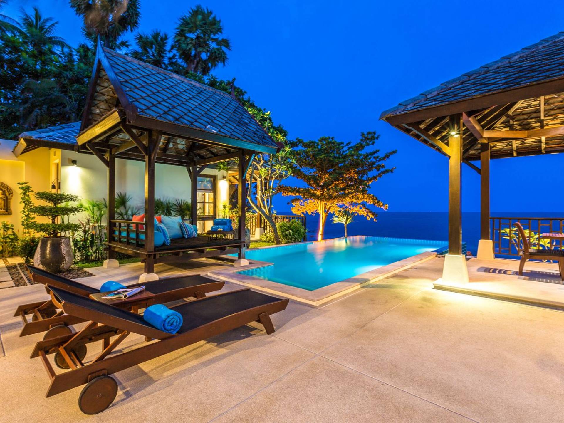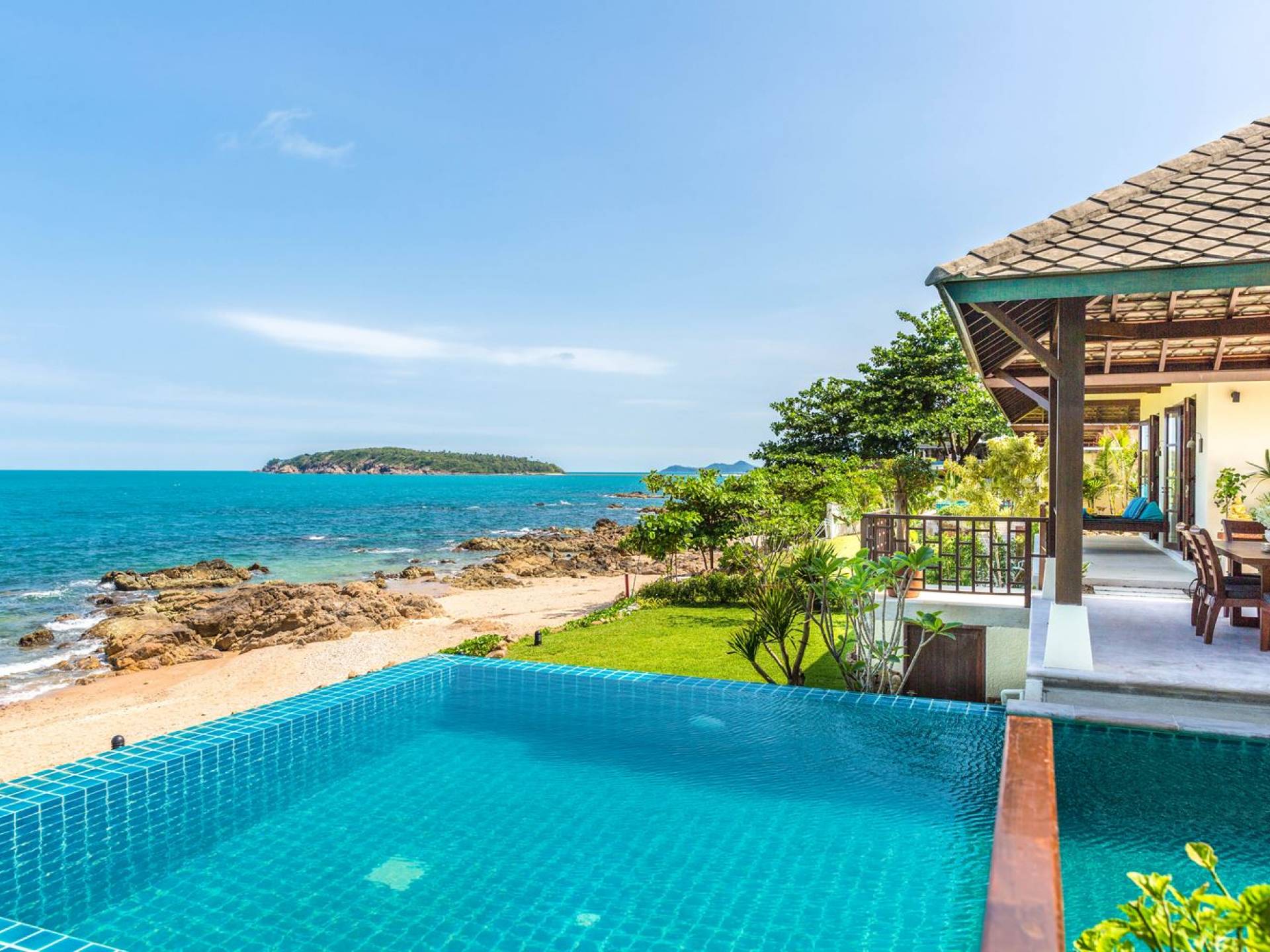 The Beach House Koh Samui is a luxury villa rental with 4 bedrooms and a private pool. The Beach House 4-bed, private, luxury, (true) beachfront villa, is a perfect blend of Thai and contemporary-Asian architecture, overlooking the pristine waters of the Gulf of Thailand! Perfectly positioned in a tranquil location on the coast road connecting with Chaweng Beach – a 5 min ride (Choeng Mon/1km).