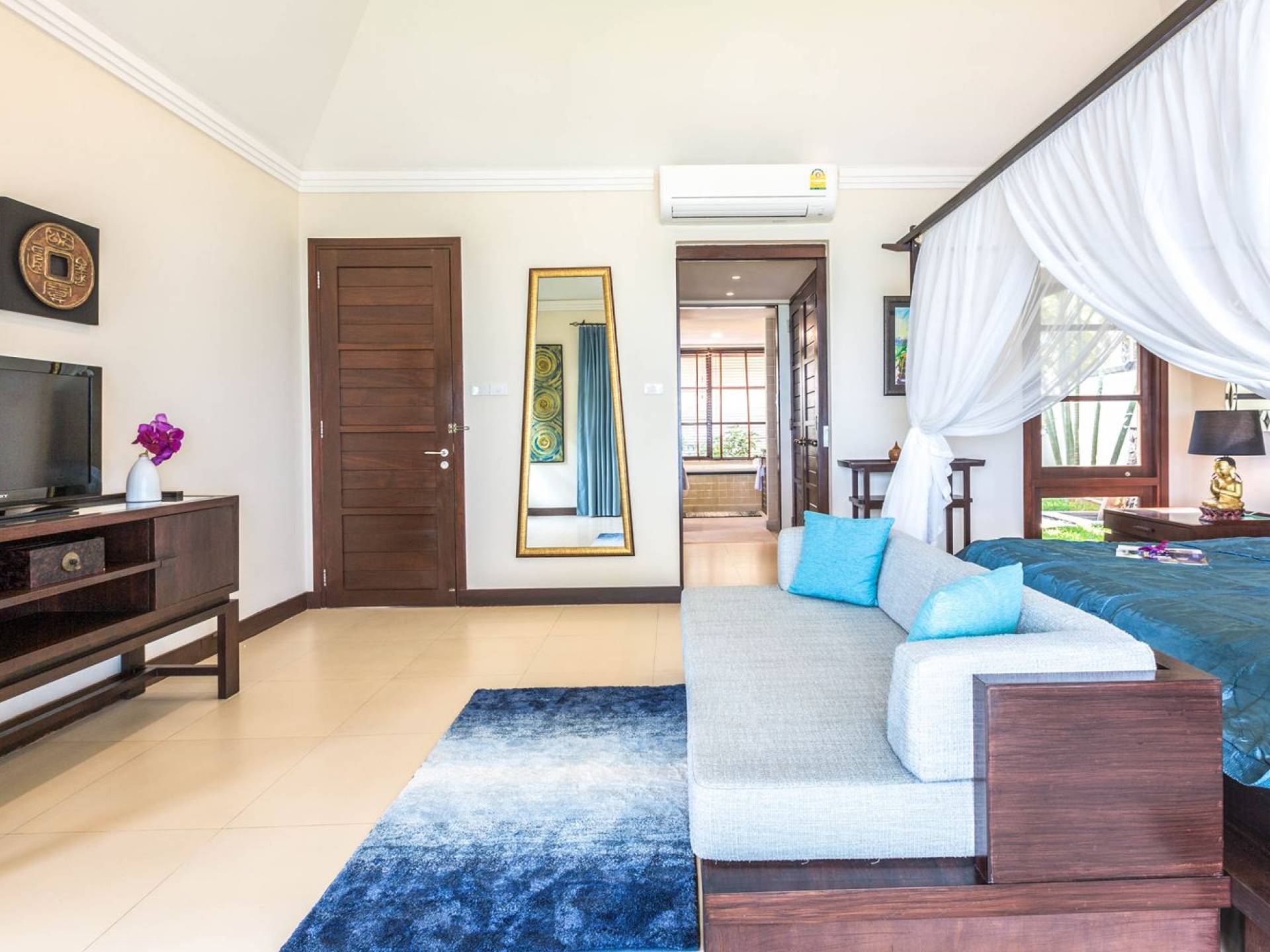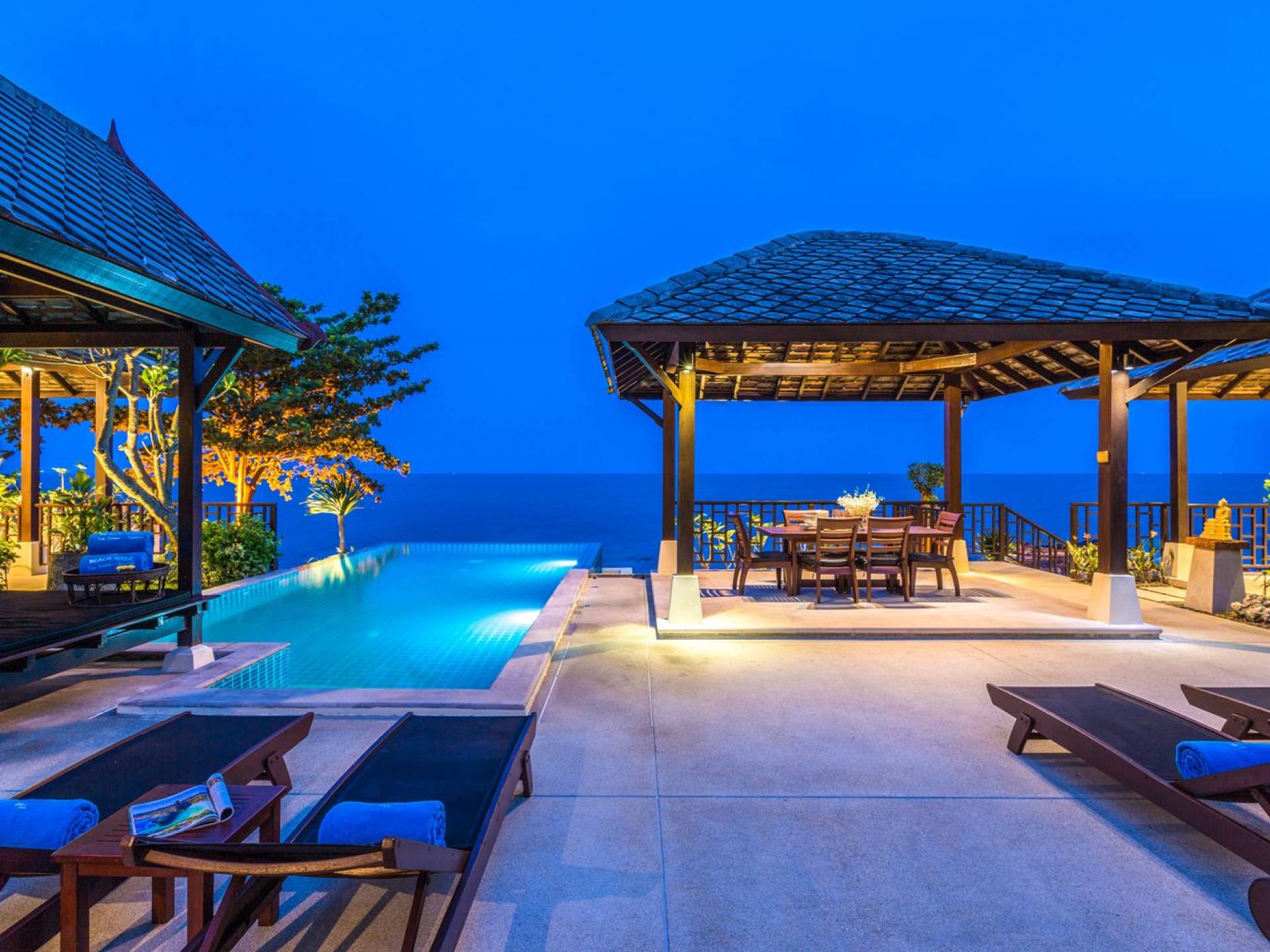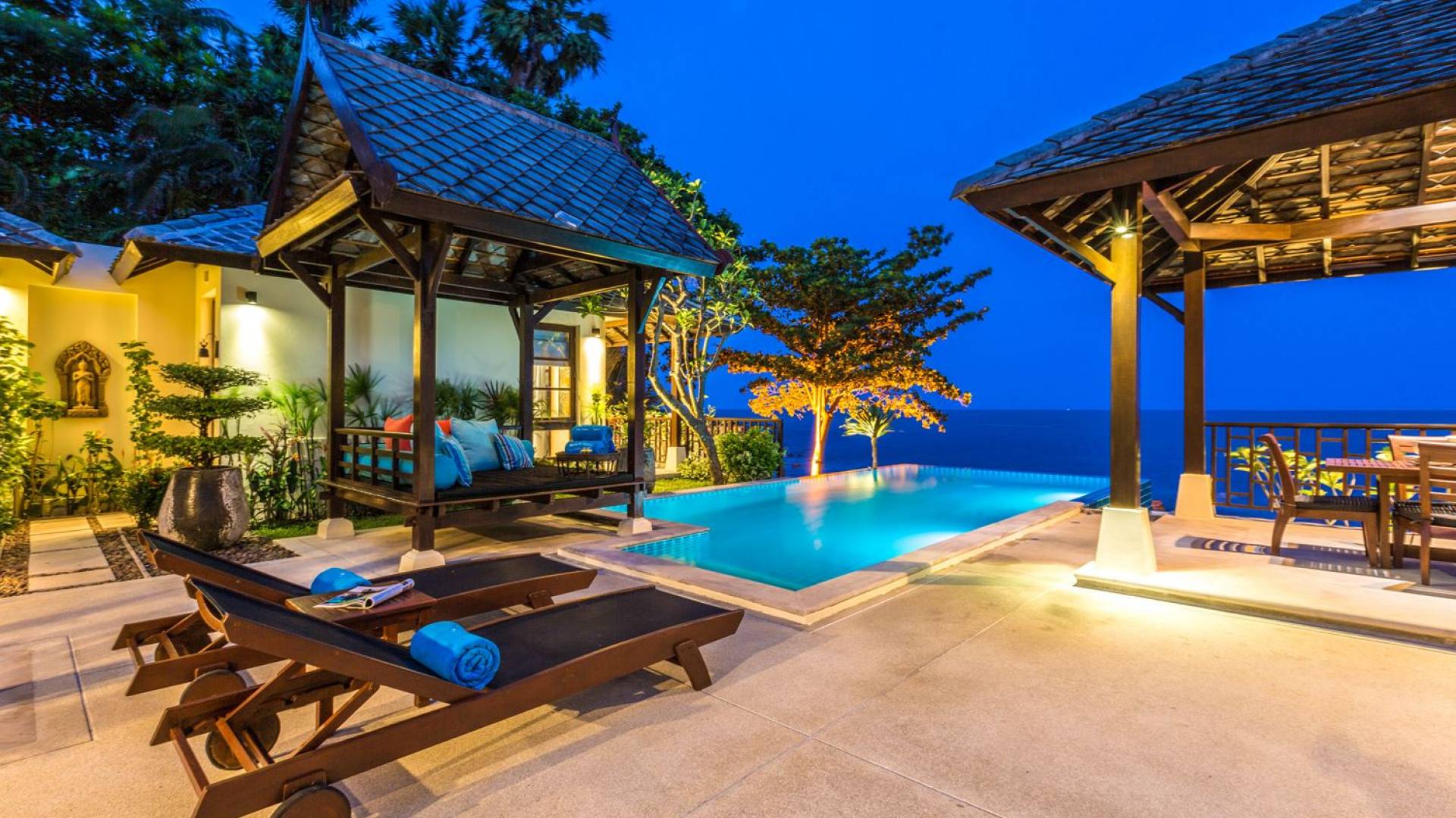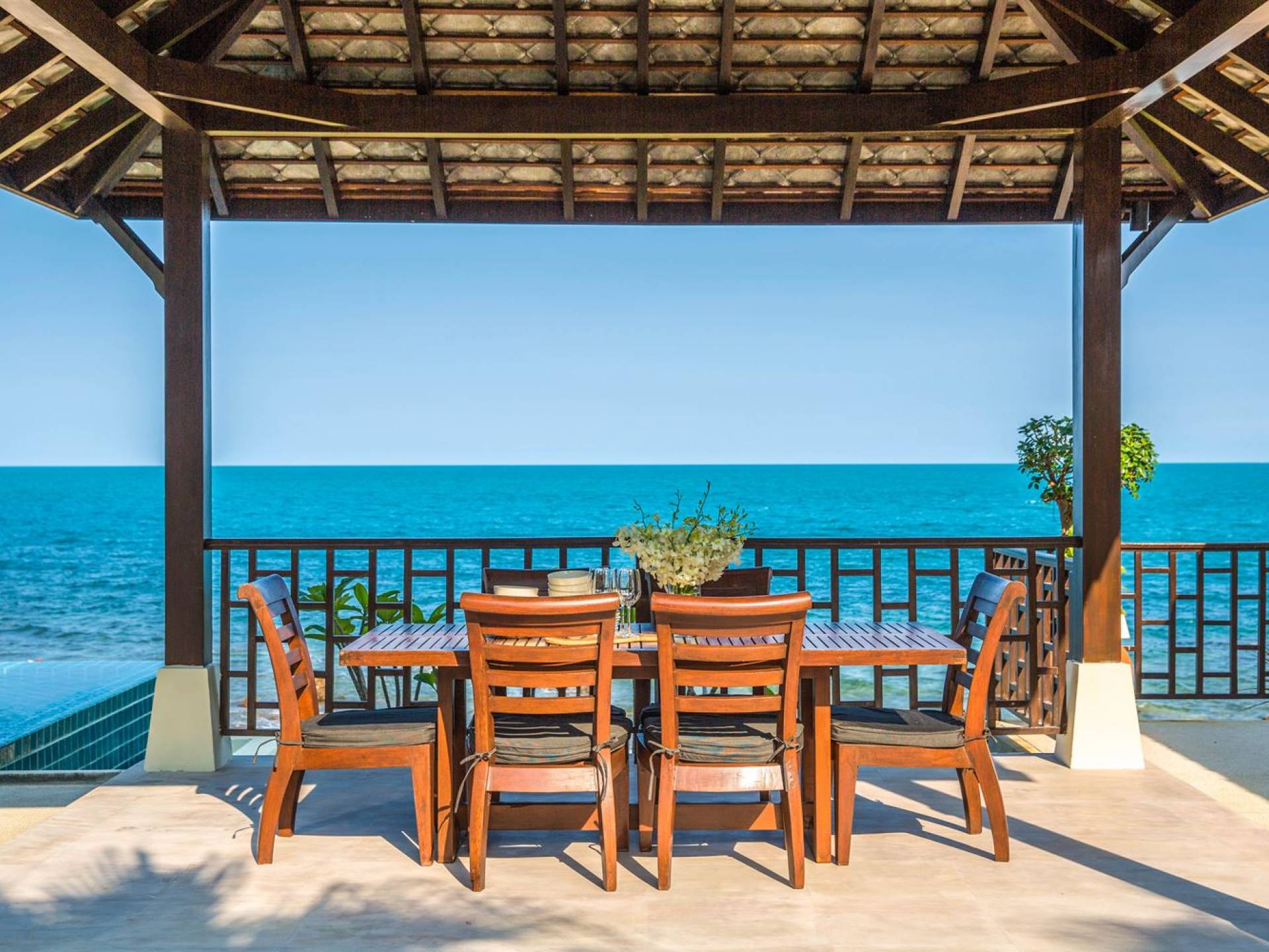 The poolside area boasts a covered Sala for you to unwind in, and a second larger one can be set up for outdoor dining (see gallery images) – just imagine yourself sipping champagne to the sound of the waves gently lapping up against the beachfront rocks! Between the villa and the beach is a further large lawned area – just perfect for family games or that romantic beach wedding! Selections from our own Thai Food Menu can be ordered and delivered to you in the villa.