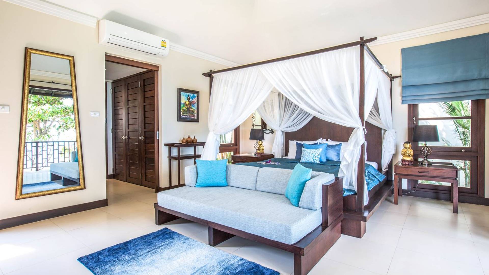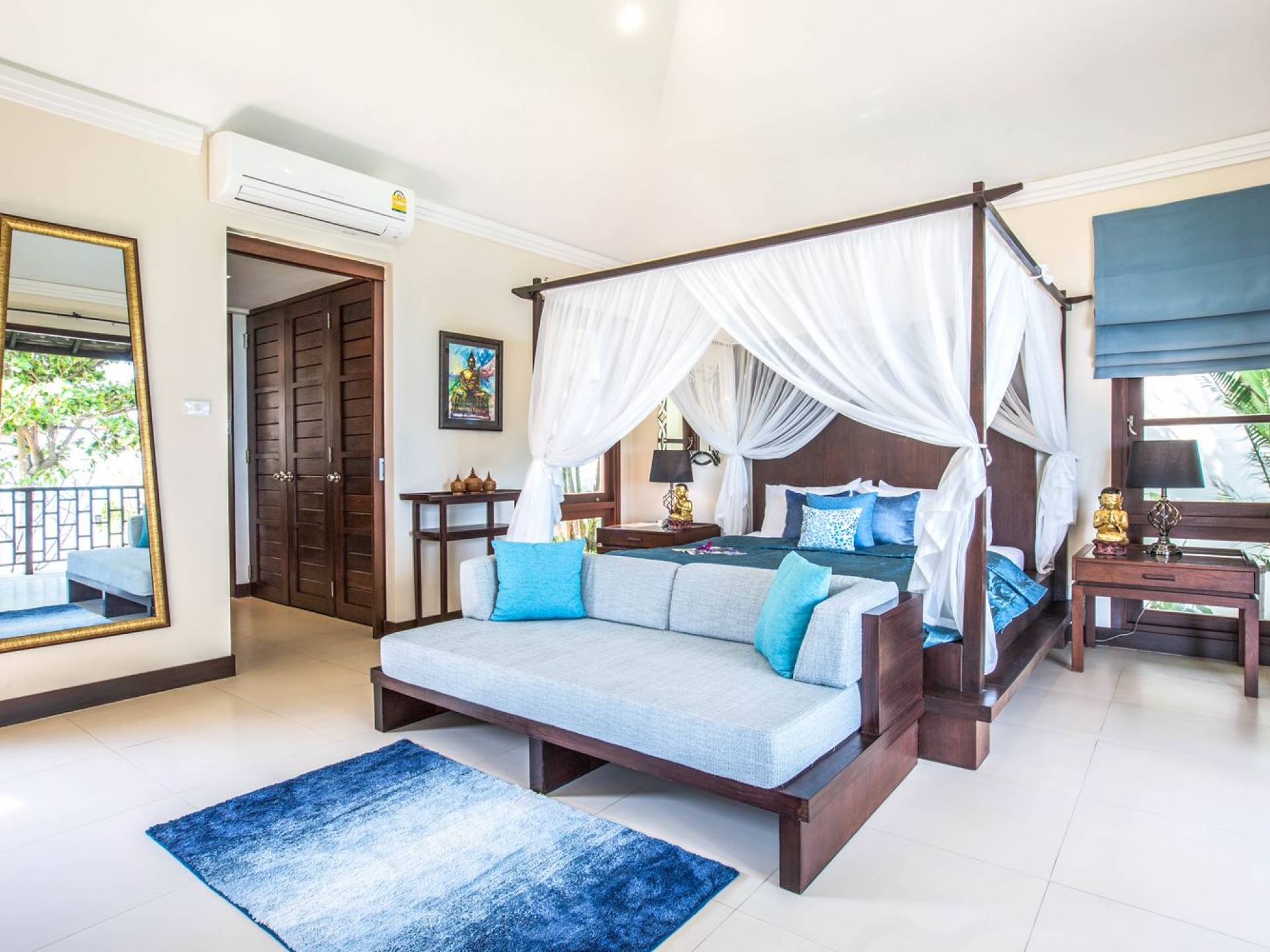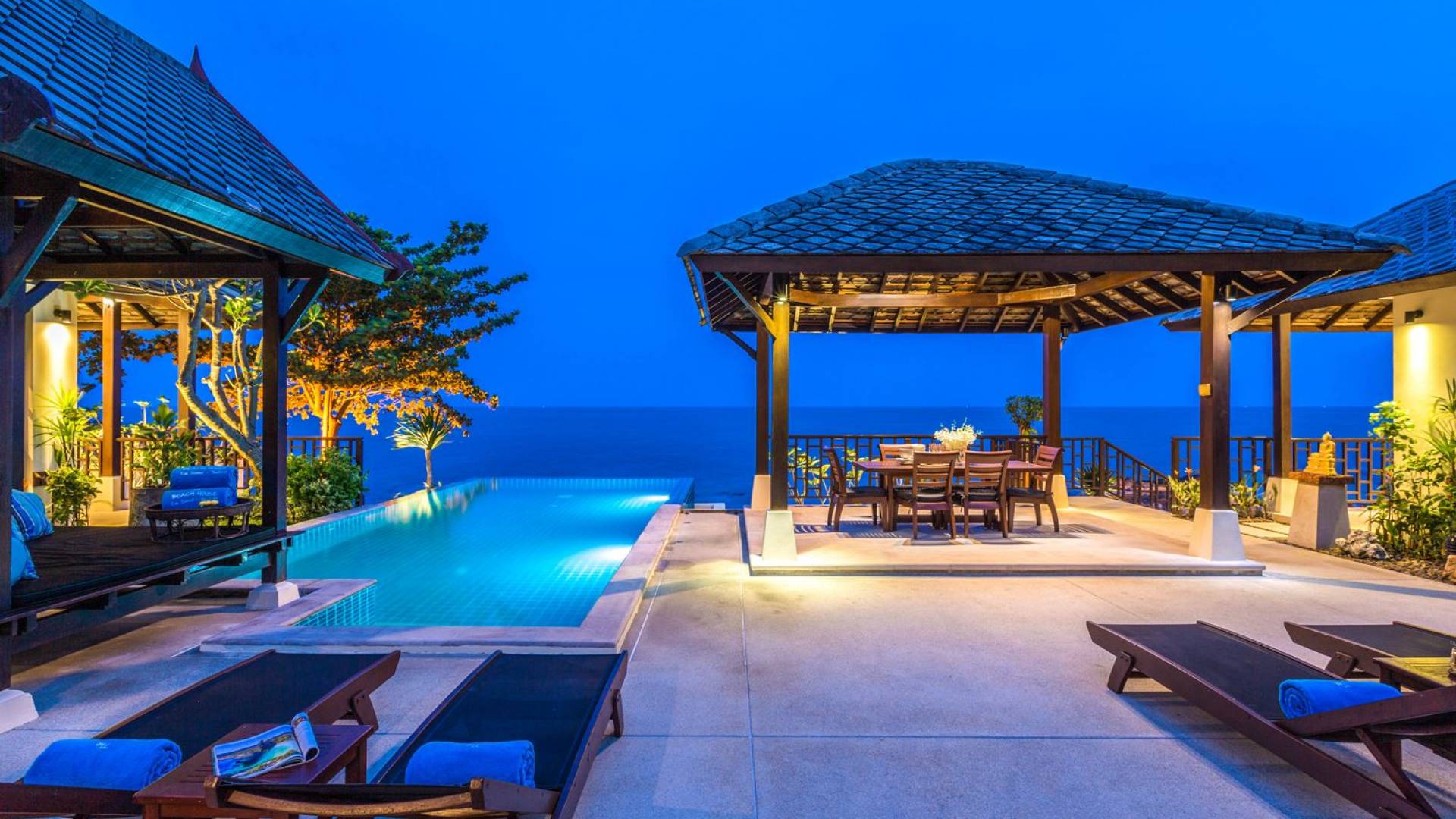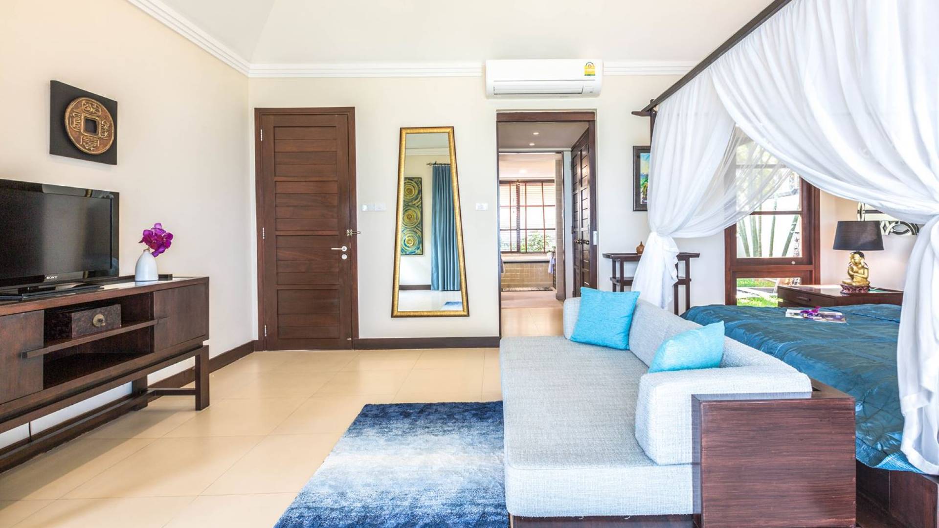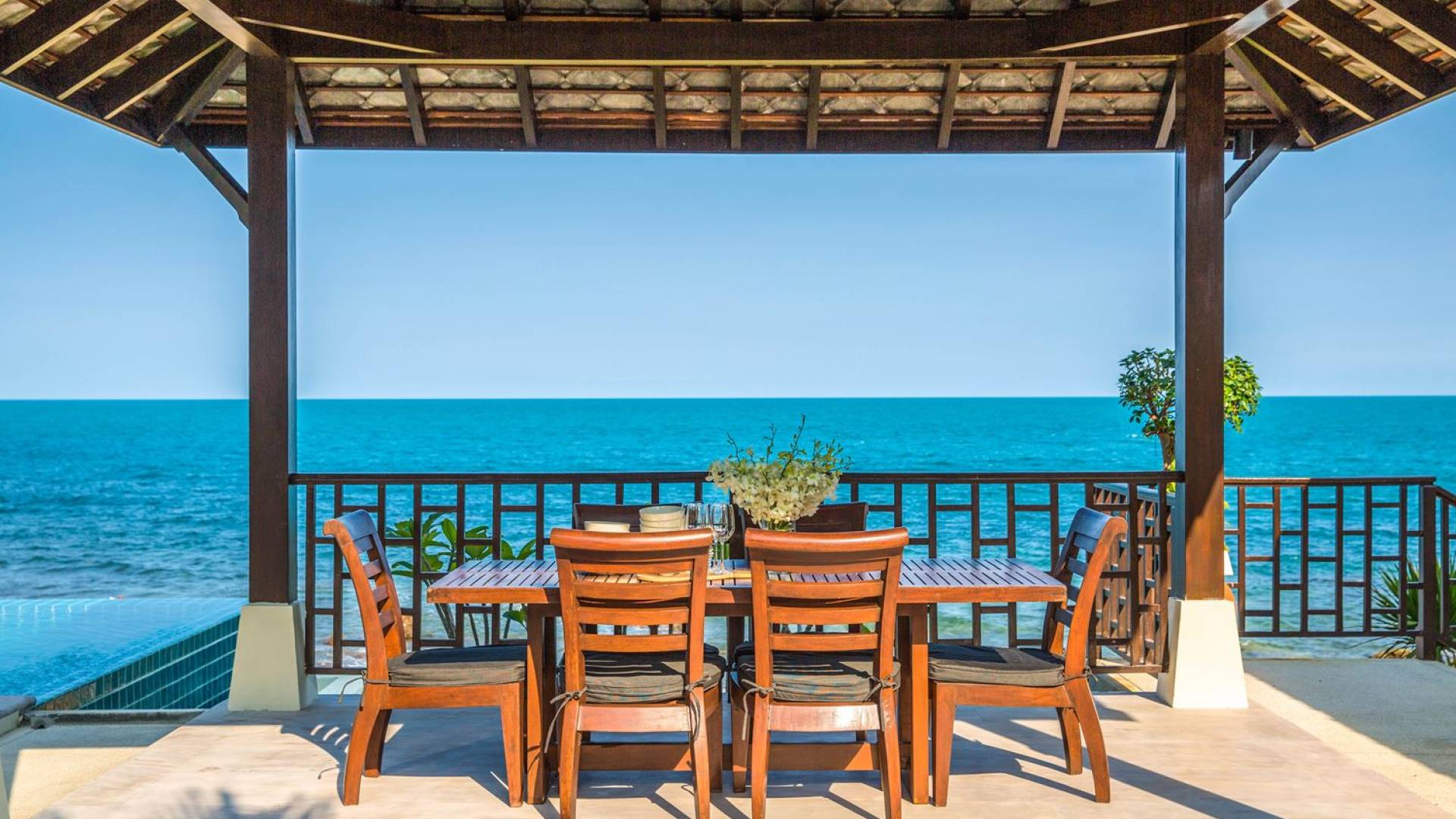 The poolside area boasts a covered Sala for you to unwind in, and a second larger one can be set up for outdoor dining (see gallery images) – just imagine yourself sipping champagne to the sound of the waves gently lapping up against the beachfront rocks! Between the villa and the beach is a further large lawned area – just perfect for family games or that romantic beach wedding! Selections from our own Thai Food Menu can be ordered and delivered to you in the villa.