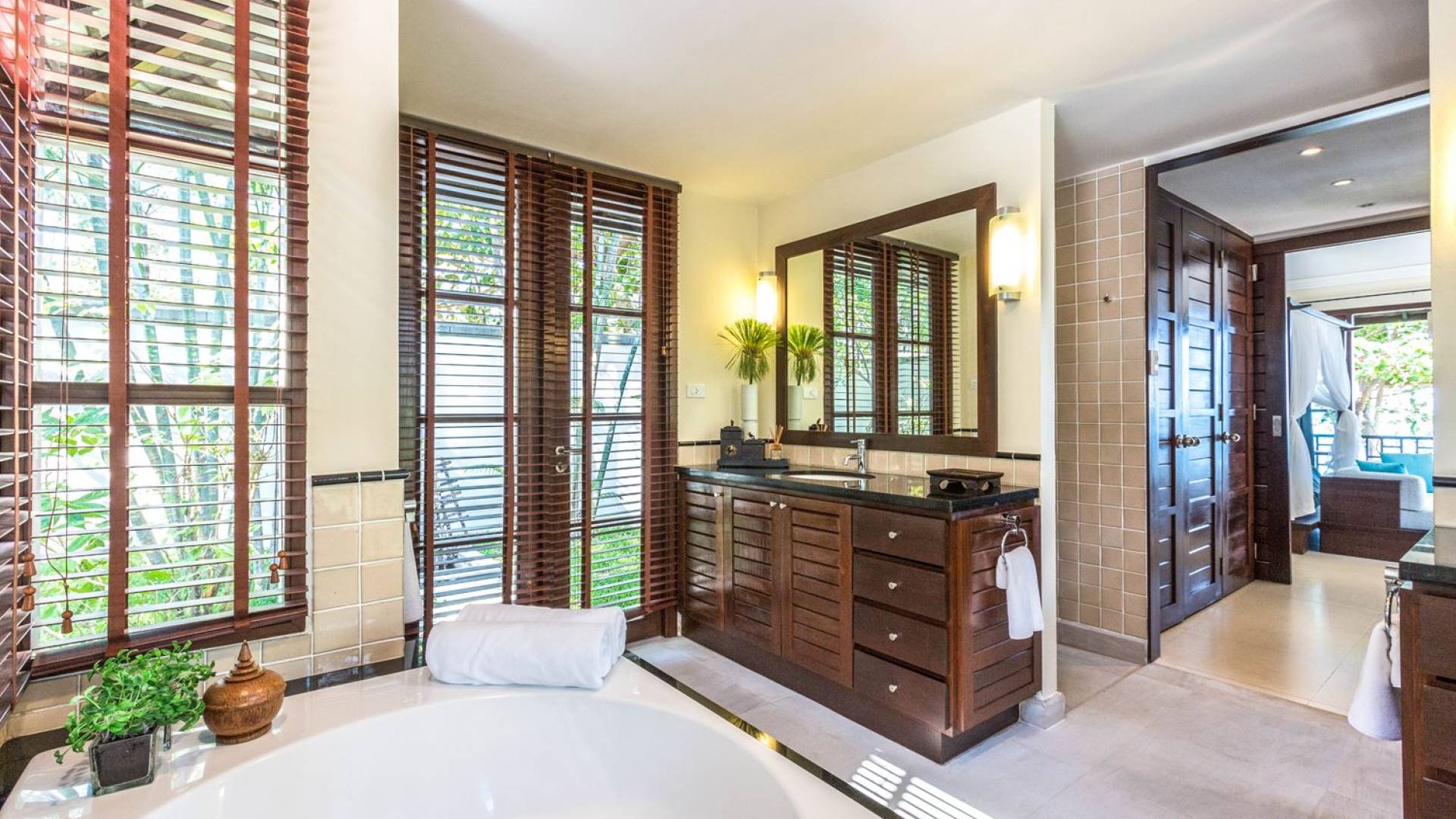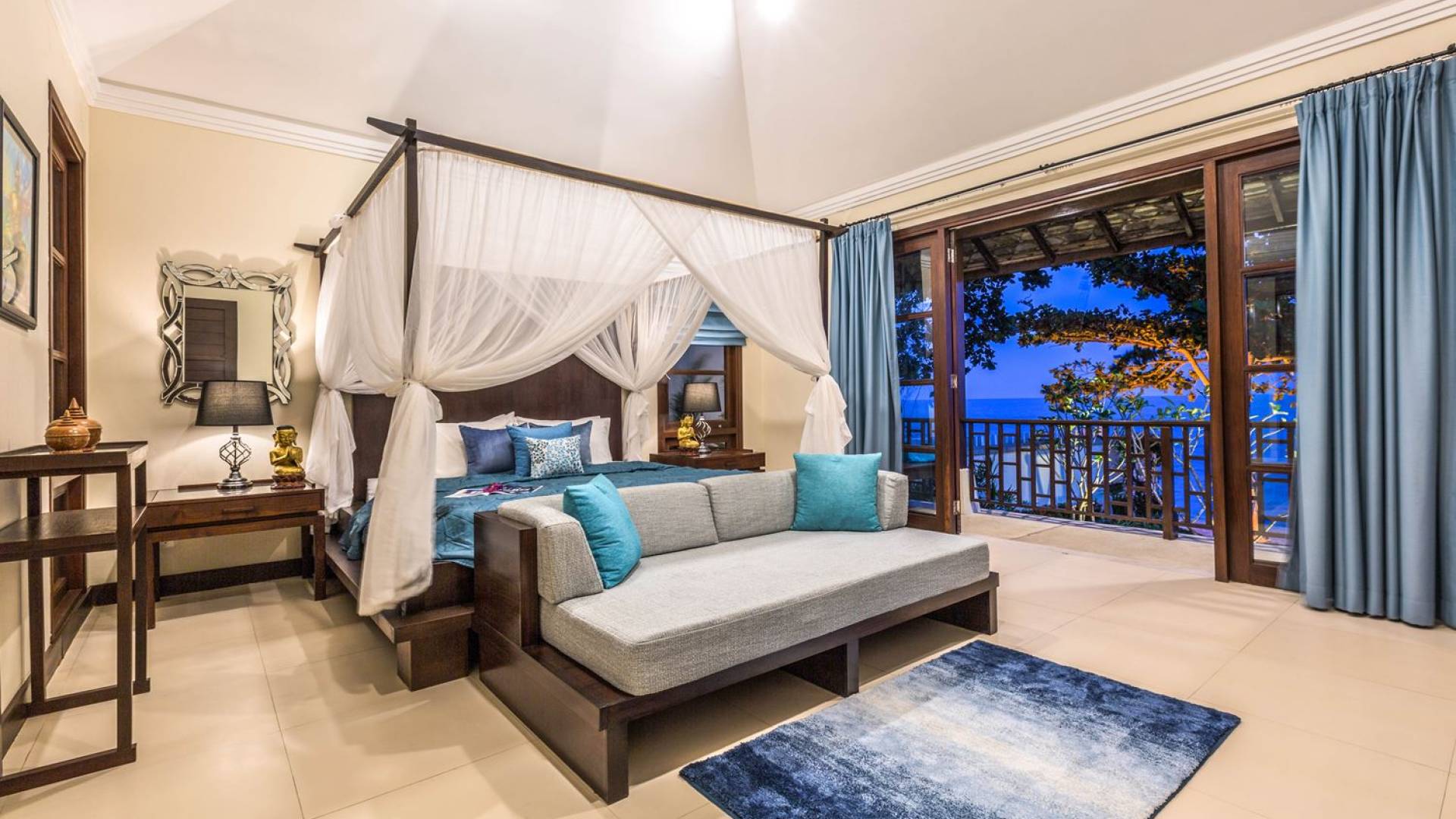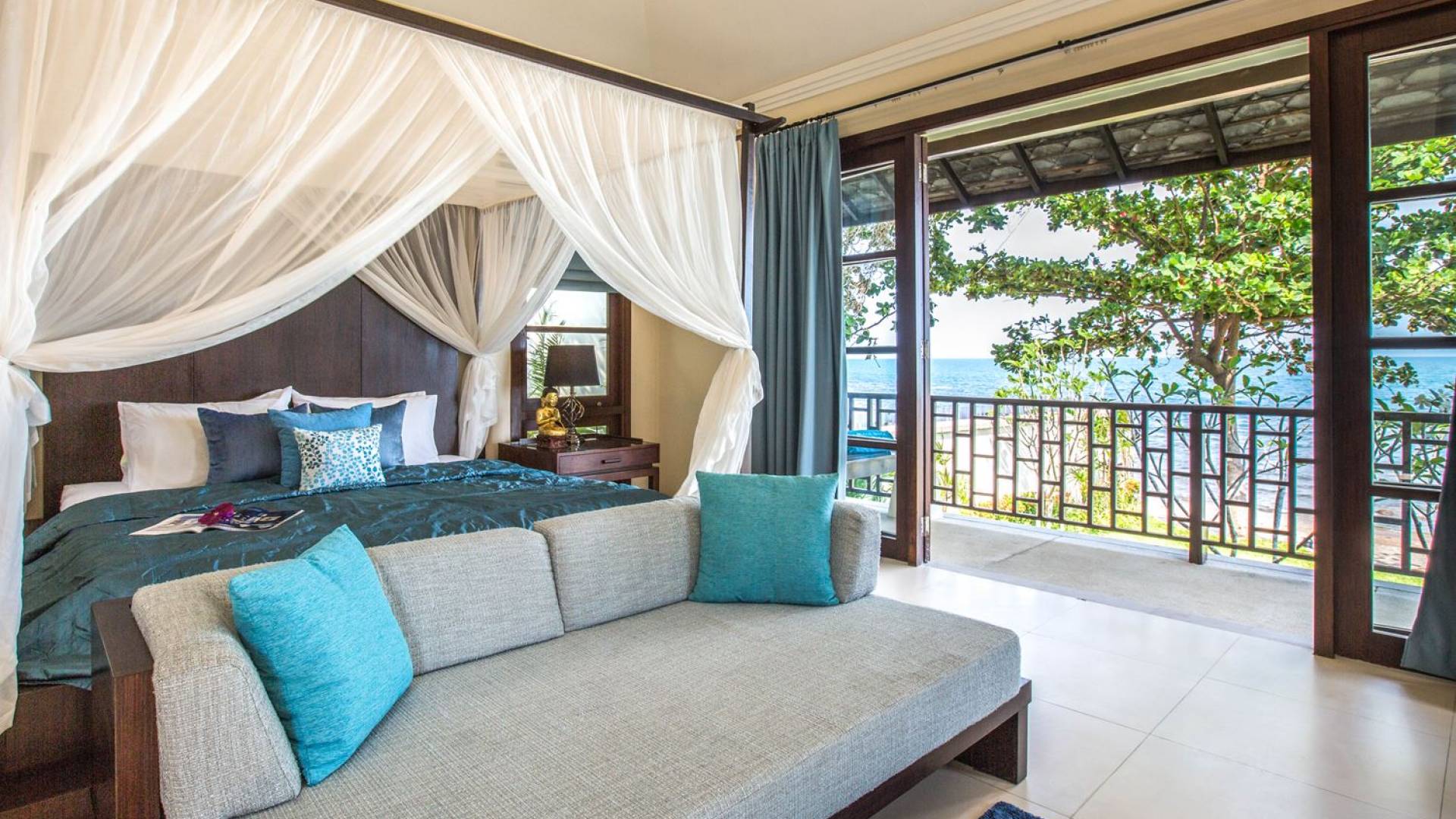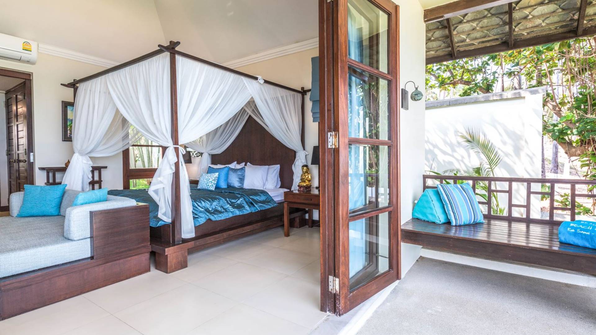 The poolside area boasts a covered Sala for you to unwind in, and a second larger one can be set up for outdoor dining (see gallery images) – just imagine yourself sipping champagne to the sound of the waves gently lapping up against the beachfront rocks! Between the villa and the beach is a further large lawned area – just perfect for family games or that romantic beach wedding! Selections from our own Thai Food Menu can be ordered and delivered to you in the villa.