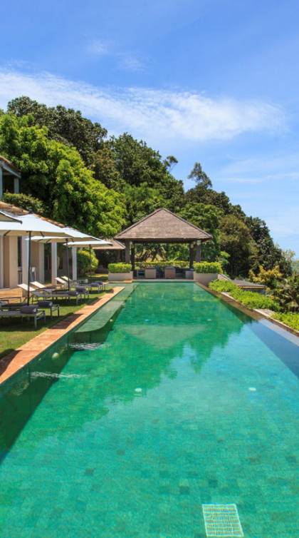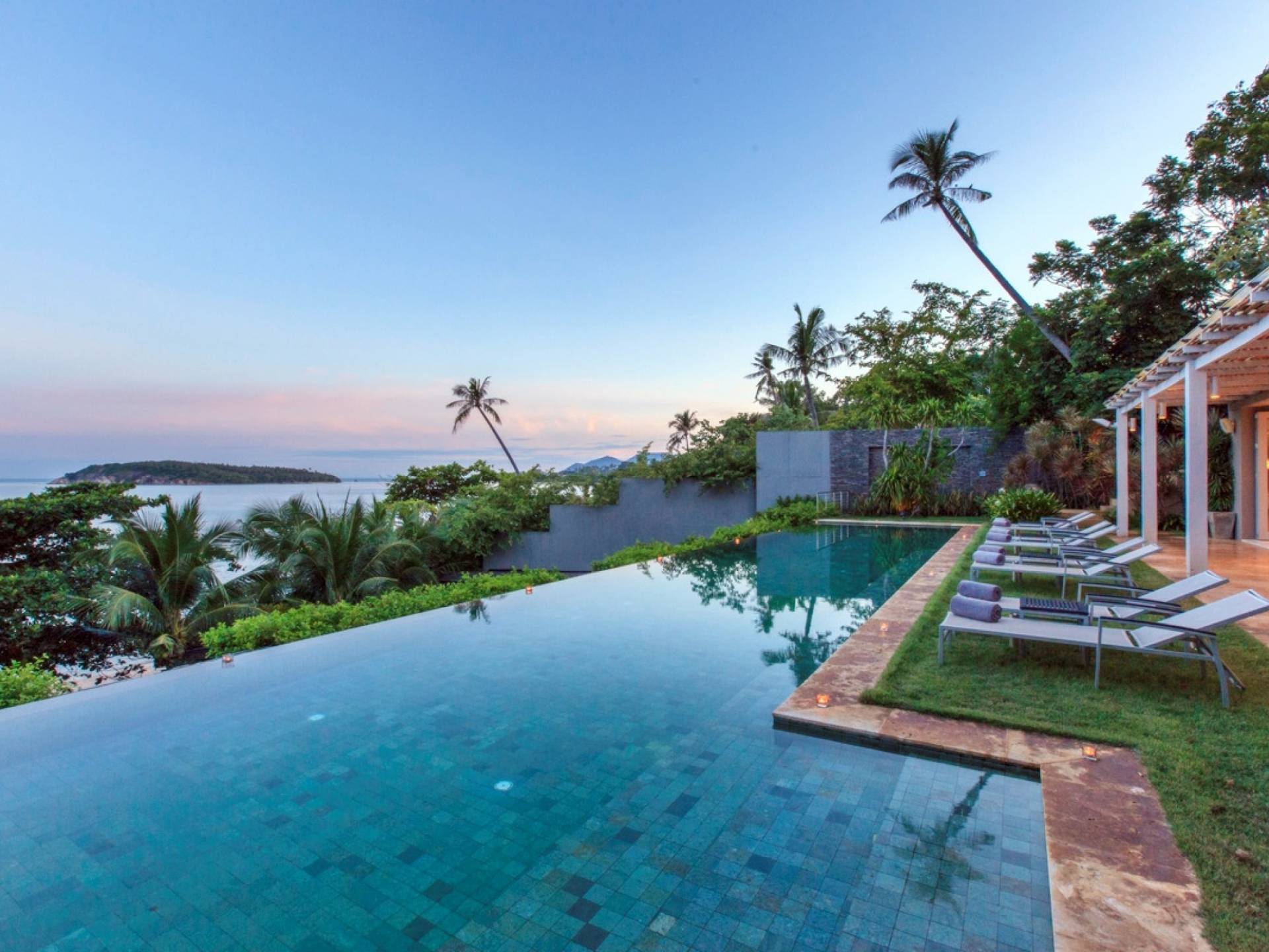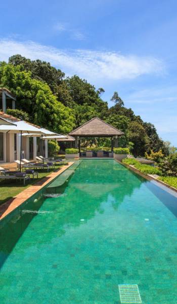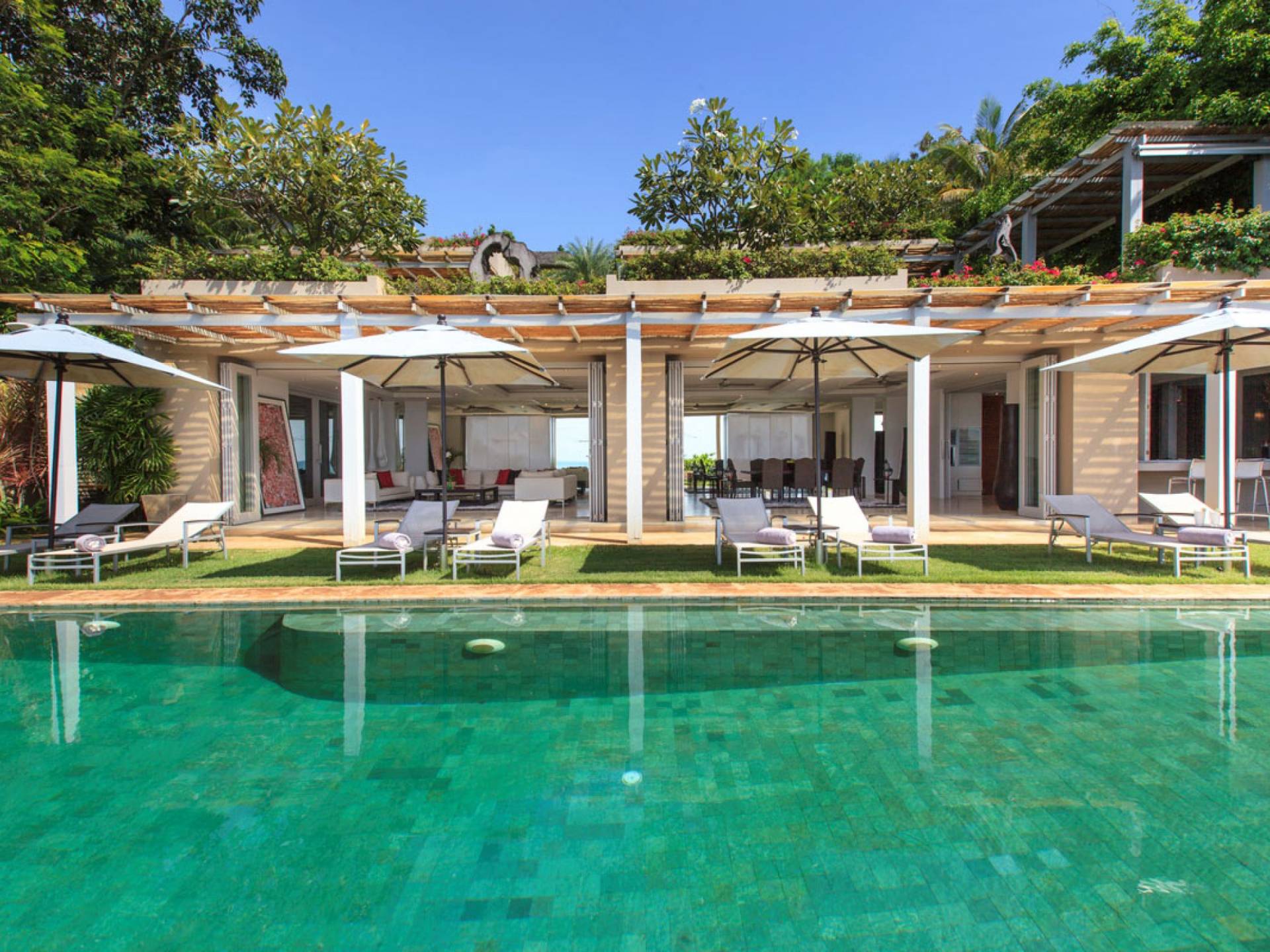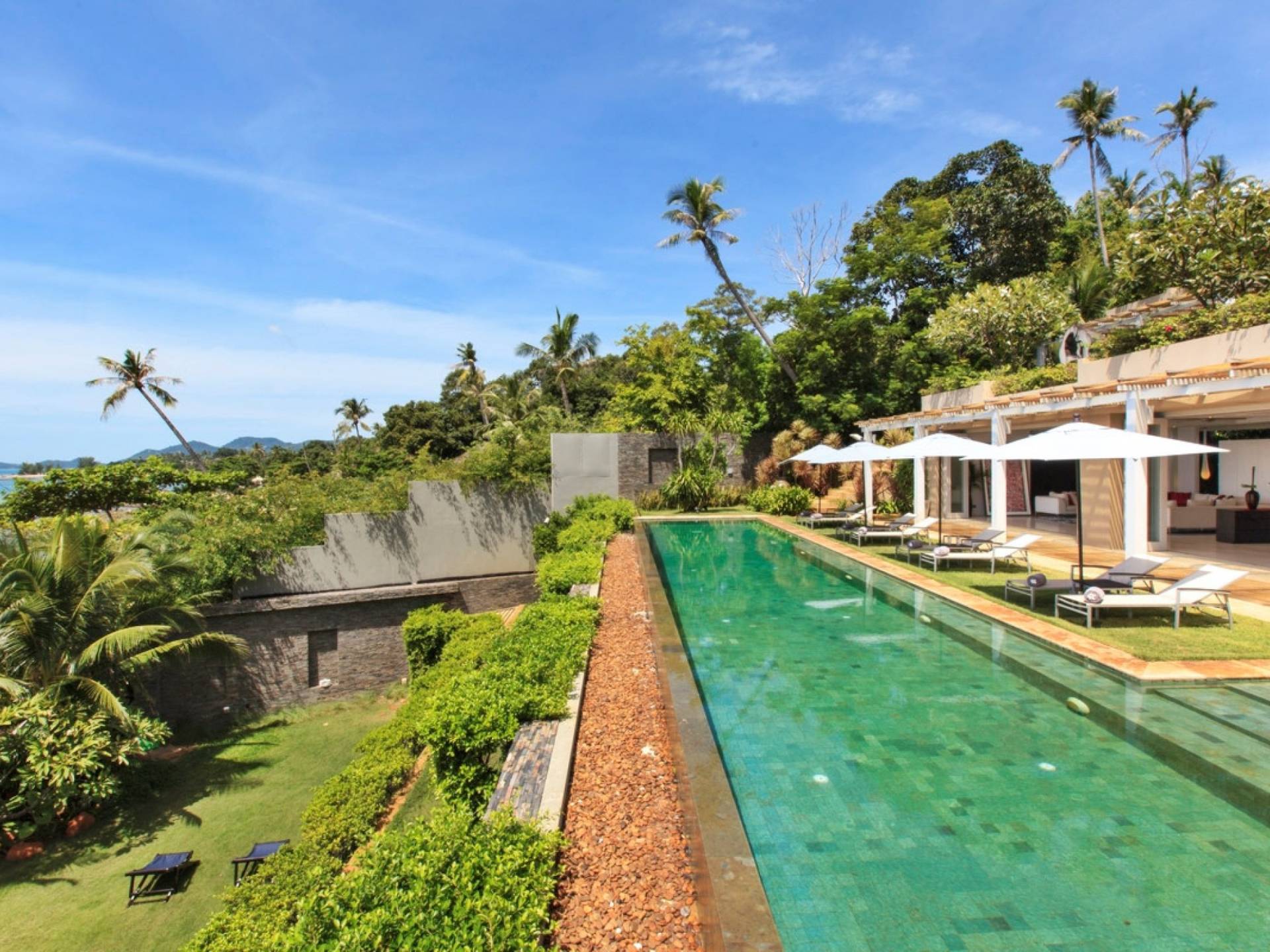 The largest of three magnificent villas that make up the Sangsuri estate on Koh Samui, Villa 1 at Sangsuri Estate Samui is an expansive eight bedroom property plus two dorms built over a series of wide, lawned and landscaped terraces that step down to an undisturbed stretch of beach just north of the island's main tourist area, Chaweng. Making full use of the dramatic,sloping cliffside location, the architect has created a supremely comfortable and luxurious tropical retreat that is essentially a private resort and therefore well suited to groups or large families.