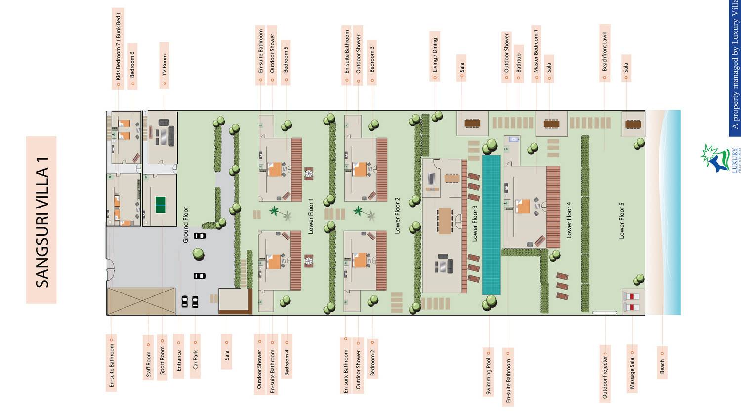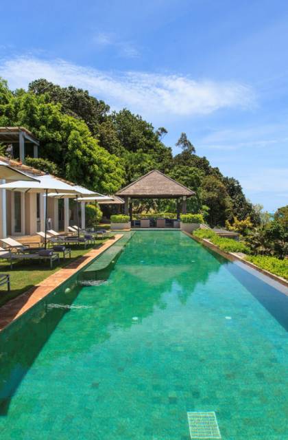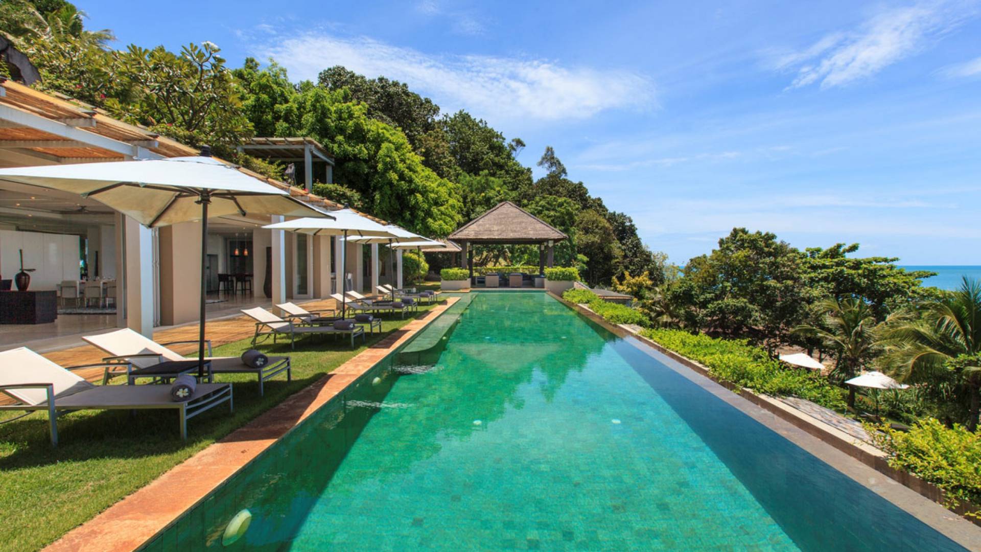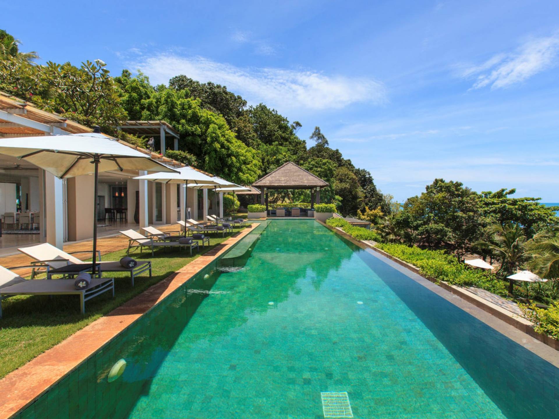 The largest of three magnificent villas that make up the Sangsuri estate on Koh Samui, Villa 1 at Sangsuri Estate Samui is an expansive eight bedroom property plus two dorms built over a series of wide, lawned and landscaped terraces that step down to an undisturbed stretch of beach just north of the island's main tourist area, Chaweng. Making full use of the dramatic,sloping cliffside location, the architect has created a supremely comfortable and luxurious tropical retreat that is essentially a private resort and therefore well suited to groups or large families.