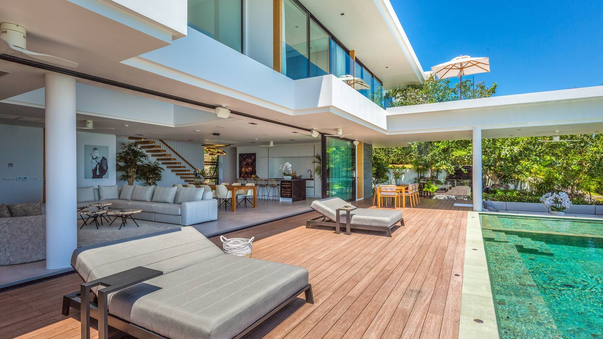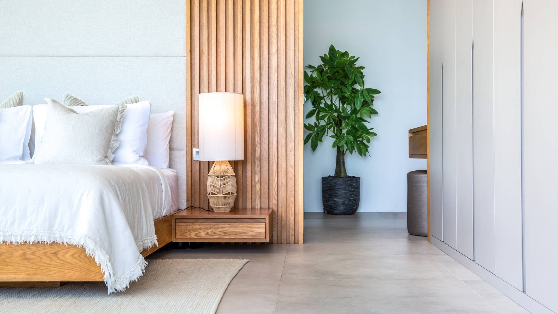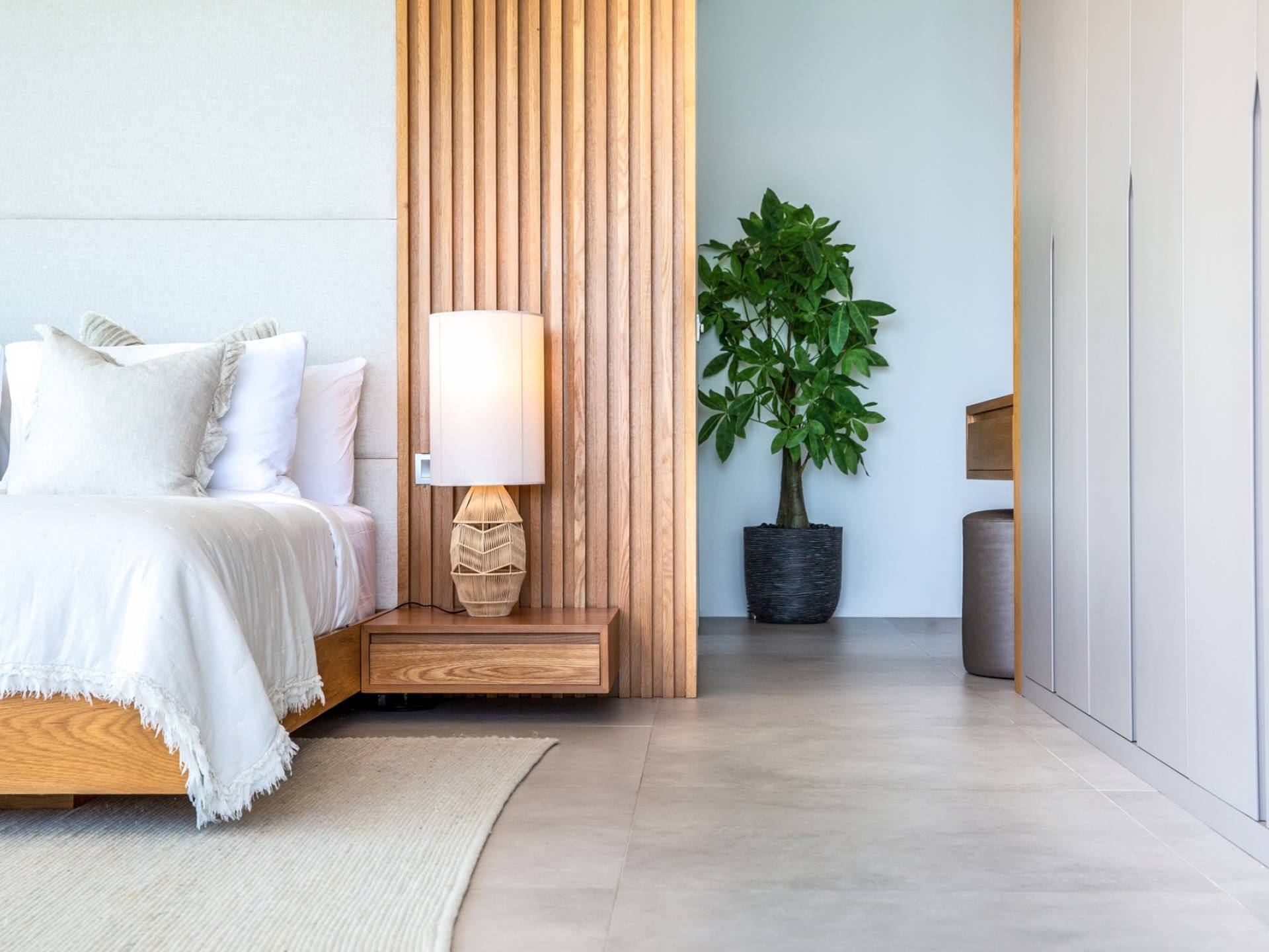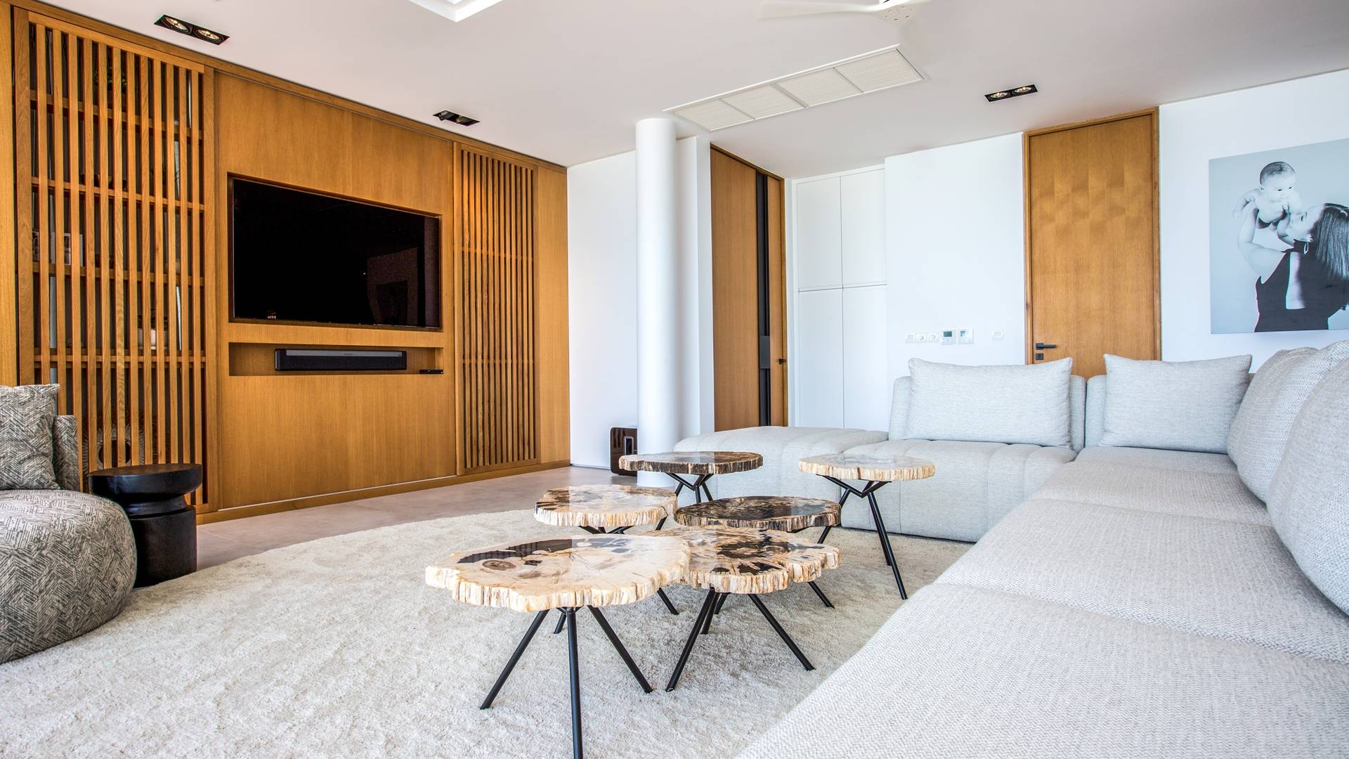 The facilities are complete with a dedicated massage and treatment room for two guests, a fully-equipped gym, and a home cinema seating 8-12. Villa Amylia Emerald is available in its entirety for groups up to 10 guests in 5 bedrooms. Villa Amylia Emerald's open-plan main floor features a soft grey stone floor, that goes effortlessly through all the bedrooms, balconies, and connecting en-suites. All the wooden furniture was custom made to bring a beautiful well integrated finished look throughout, especially when combined with the custom-made wardrobes.