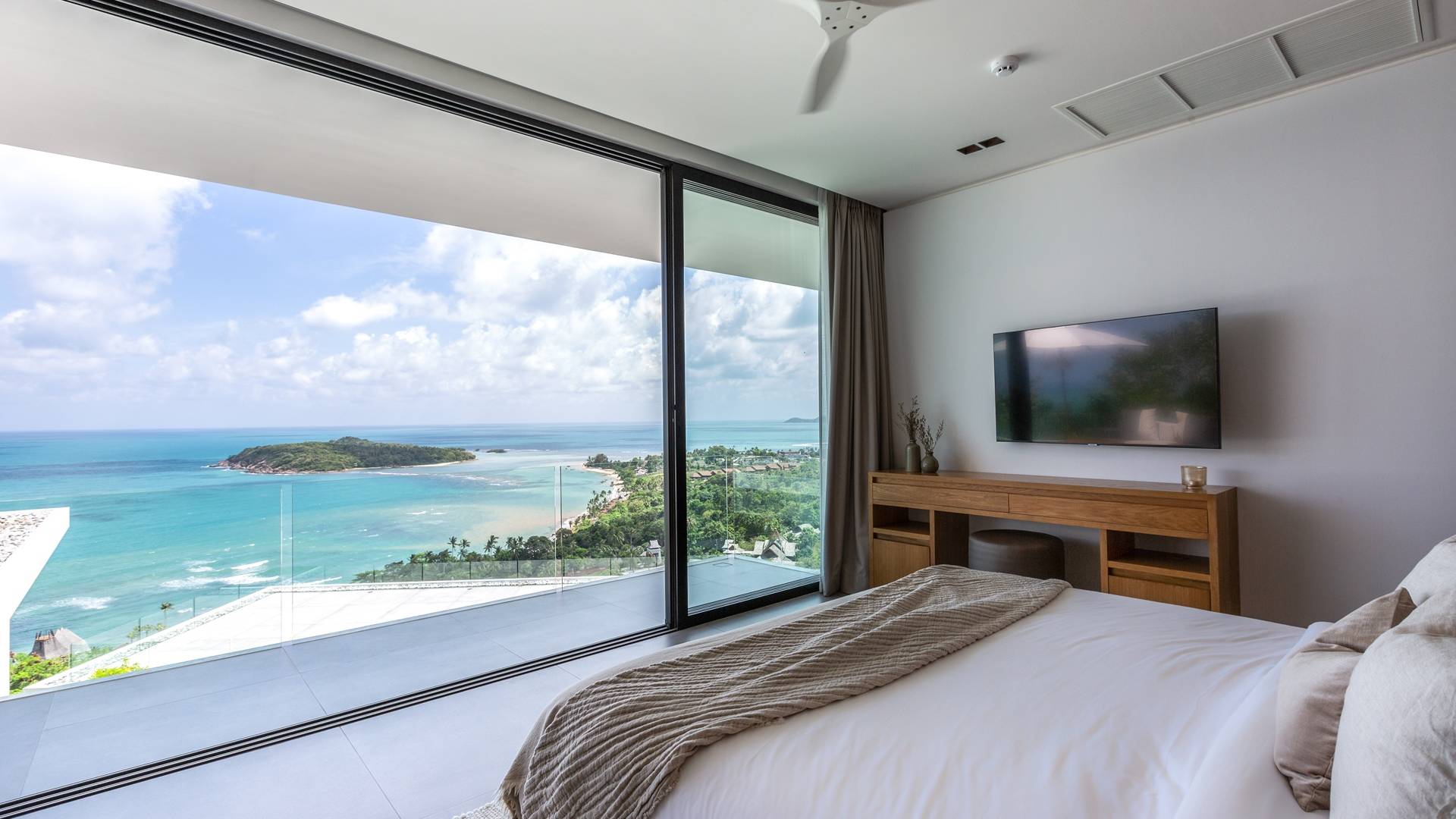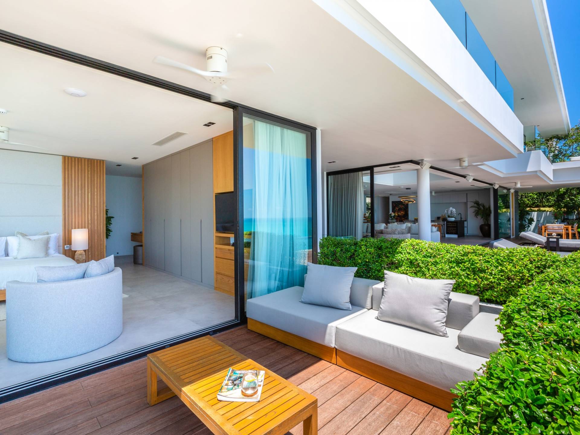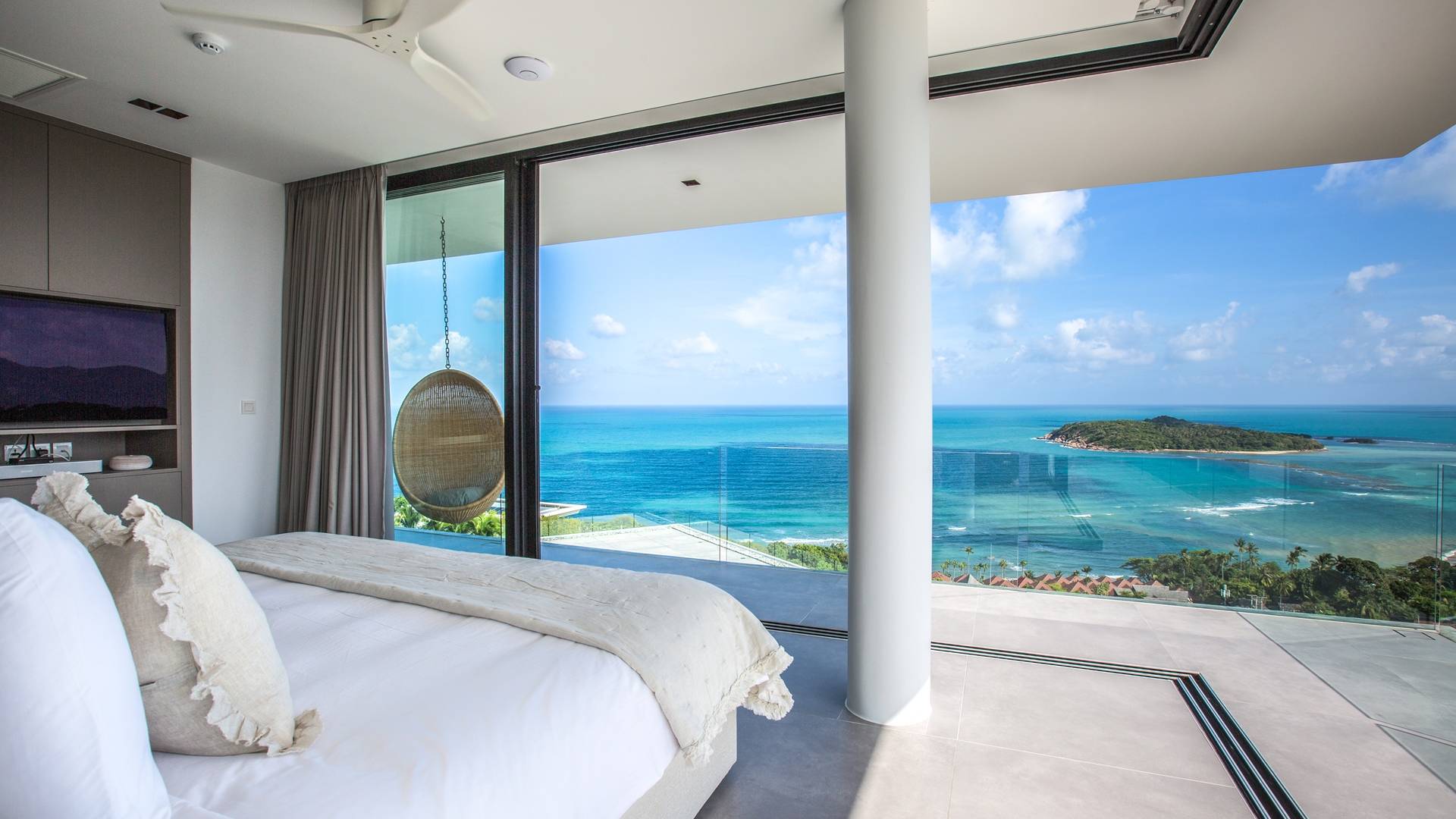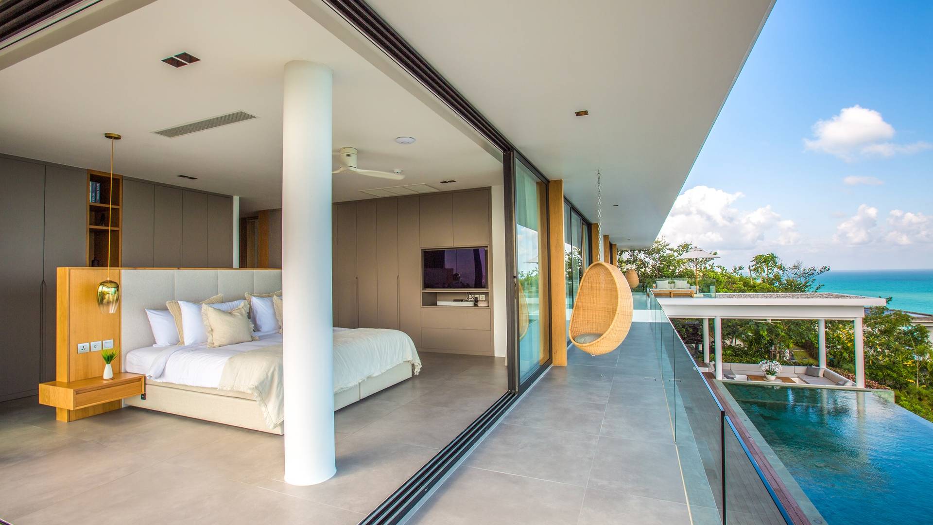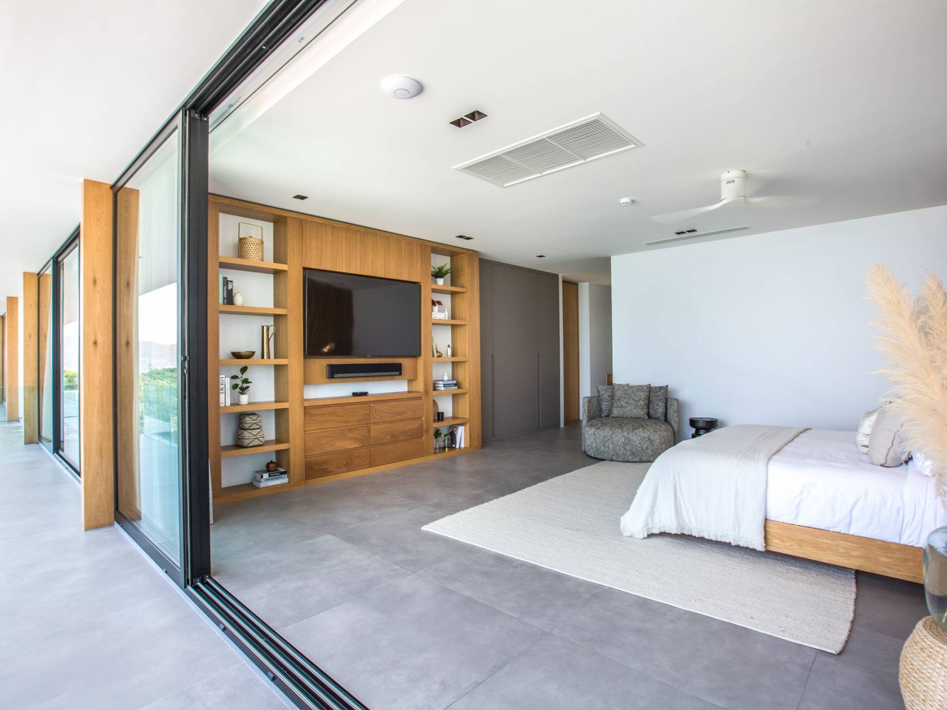 The wooden slats are a recurring feature in the living areas and bedrooms to create dimension and texture. Combined with the natural color scheme of the rest of the interior, the villa exudes a sense of peace and simplicity. All 5 bedrooms have a world-class sea view facing East, with 1of the master bedroom boasting a rare 270 degrees sea view also partially overlooking Koh Samui’s beautiful mountains.
