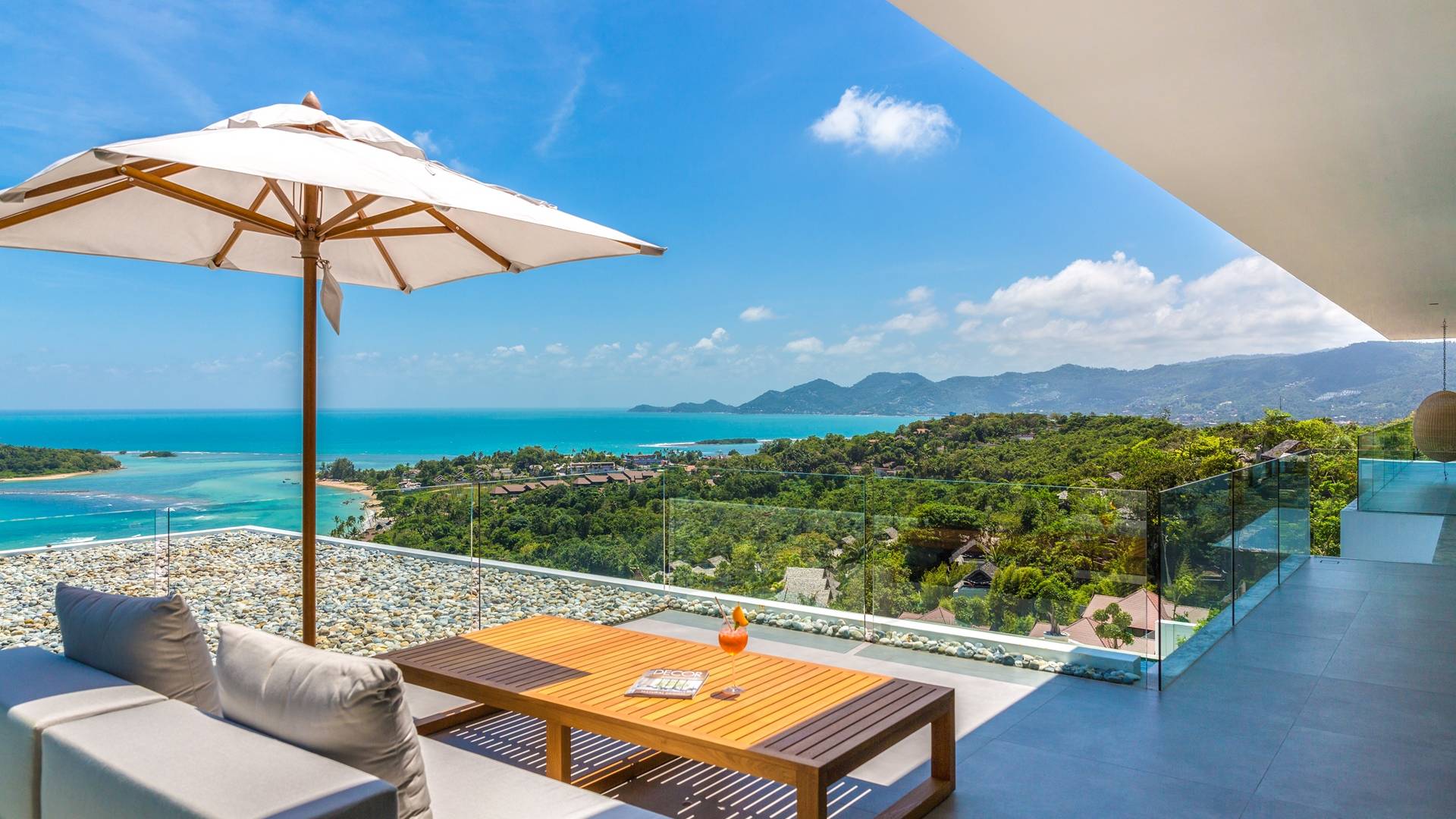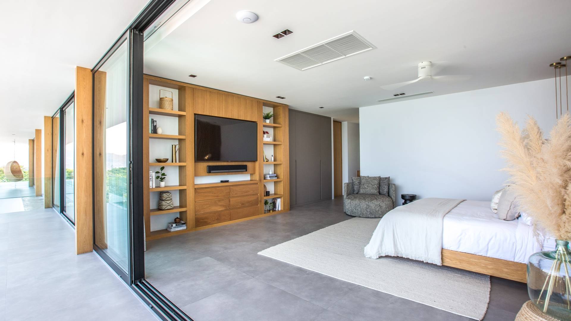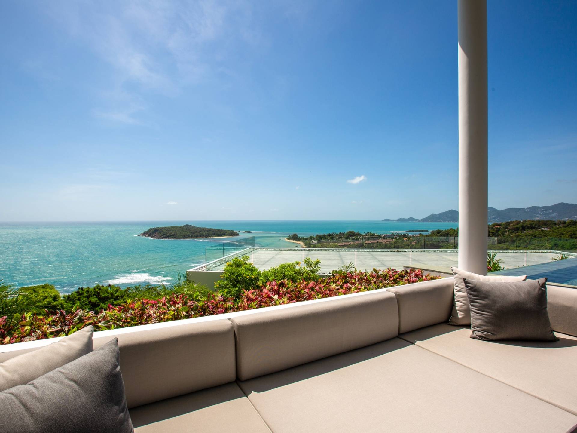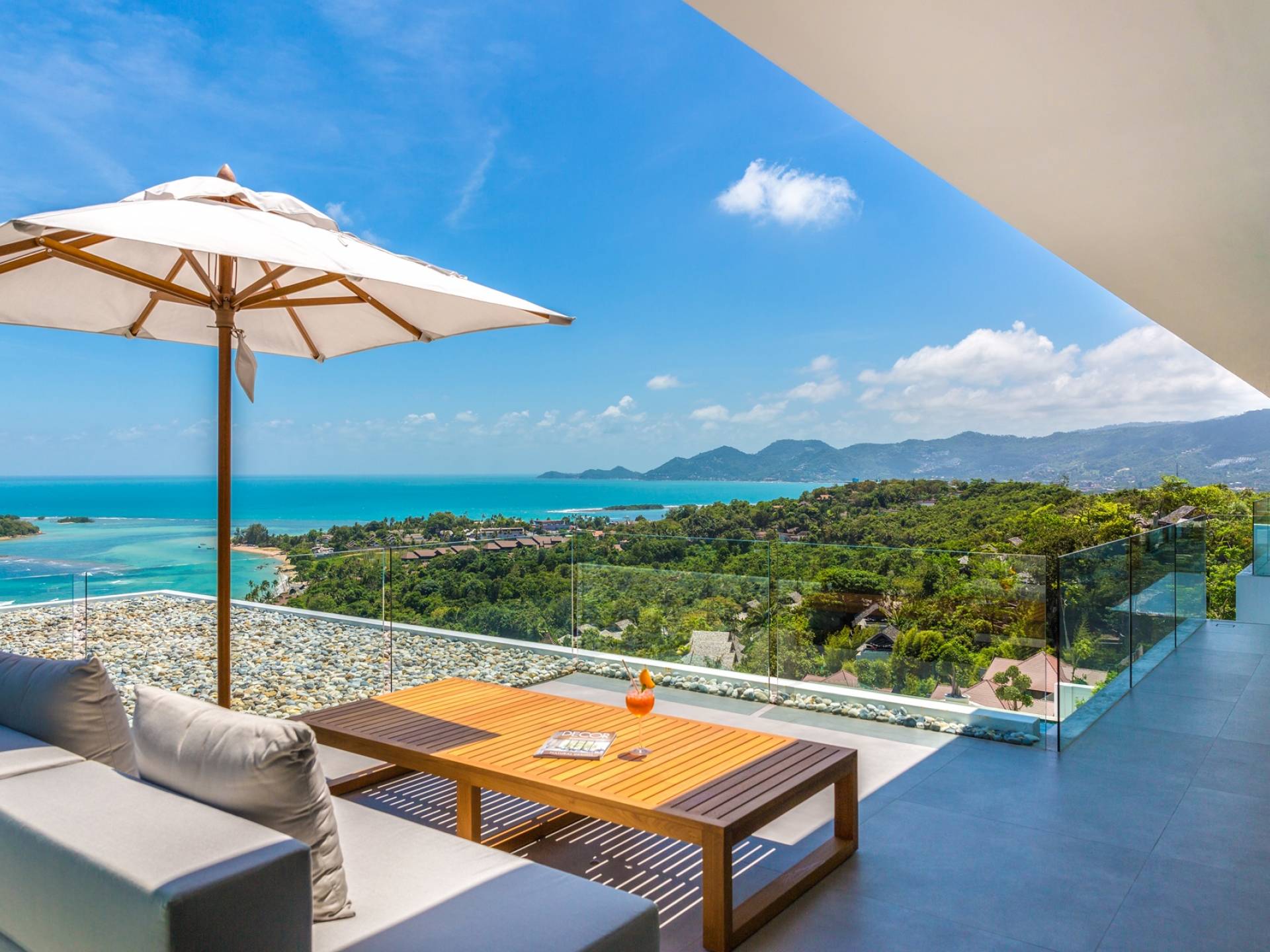 The wooden slats are a recurring feature in the living areas and bedrooms to create dimension and texture. Combined with the natural color scheme of the rest of the interior, the villa exudes a sense of peace and simplicity. All 5 bedrooms have a world-class sea view facing East, with 1of the master bedroom boasting a rare 270 degrees sea view also partially overlooking Koh Samui’s beautiful mountains.