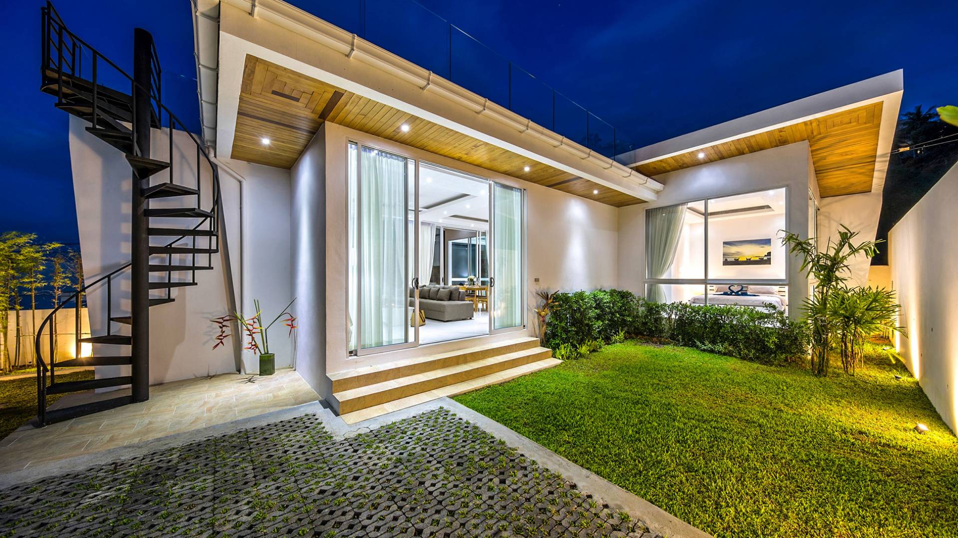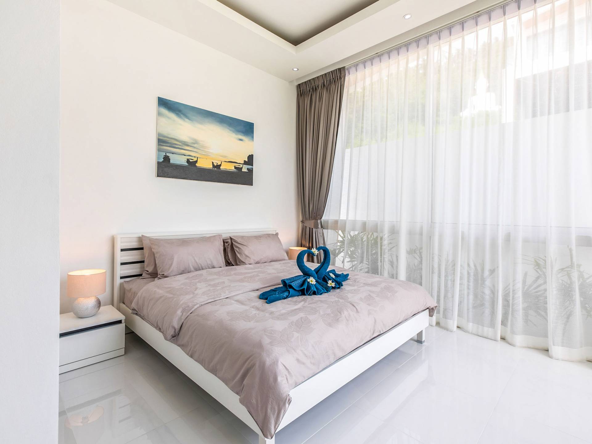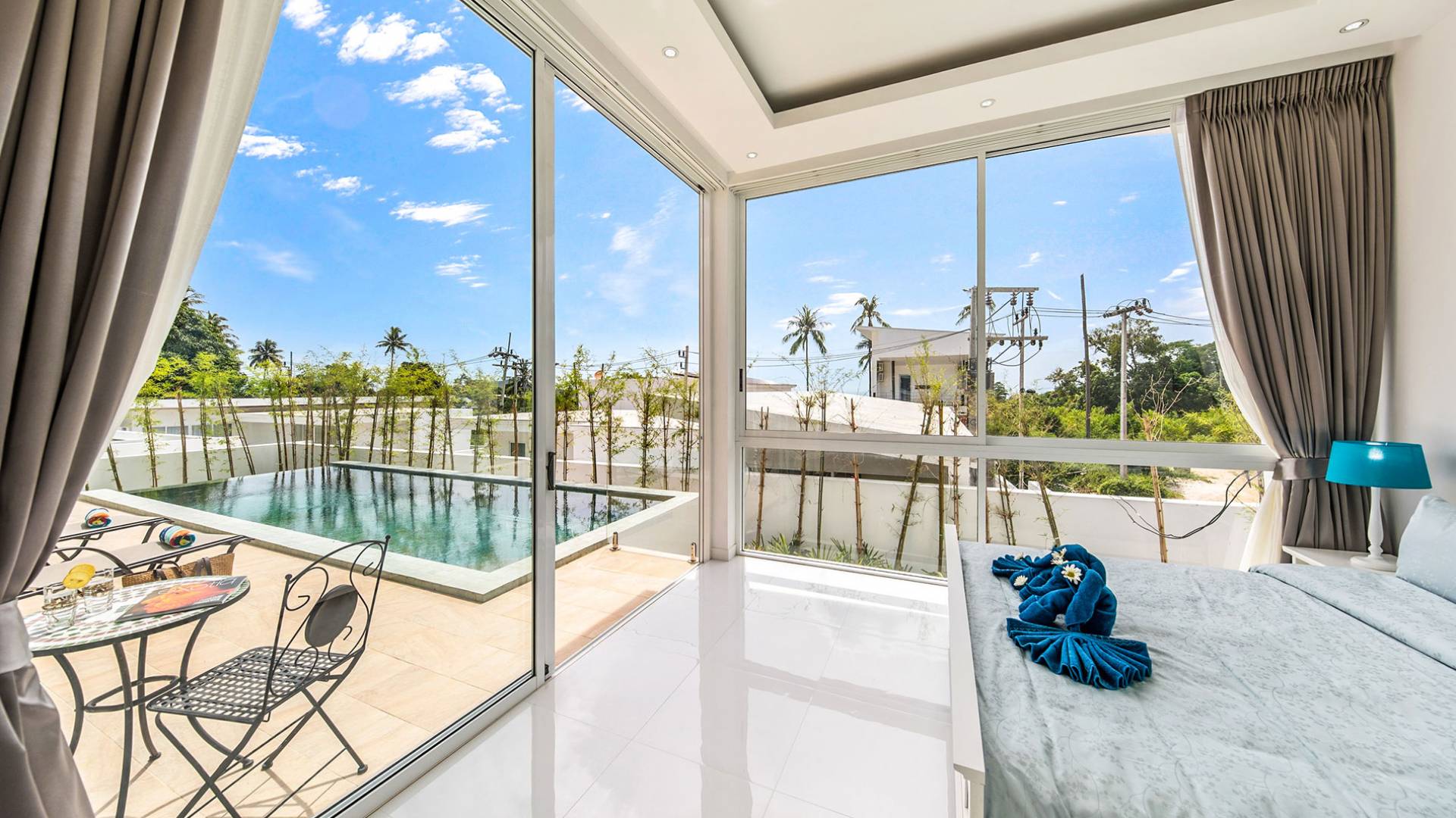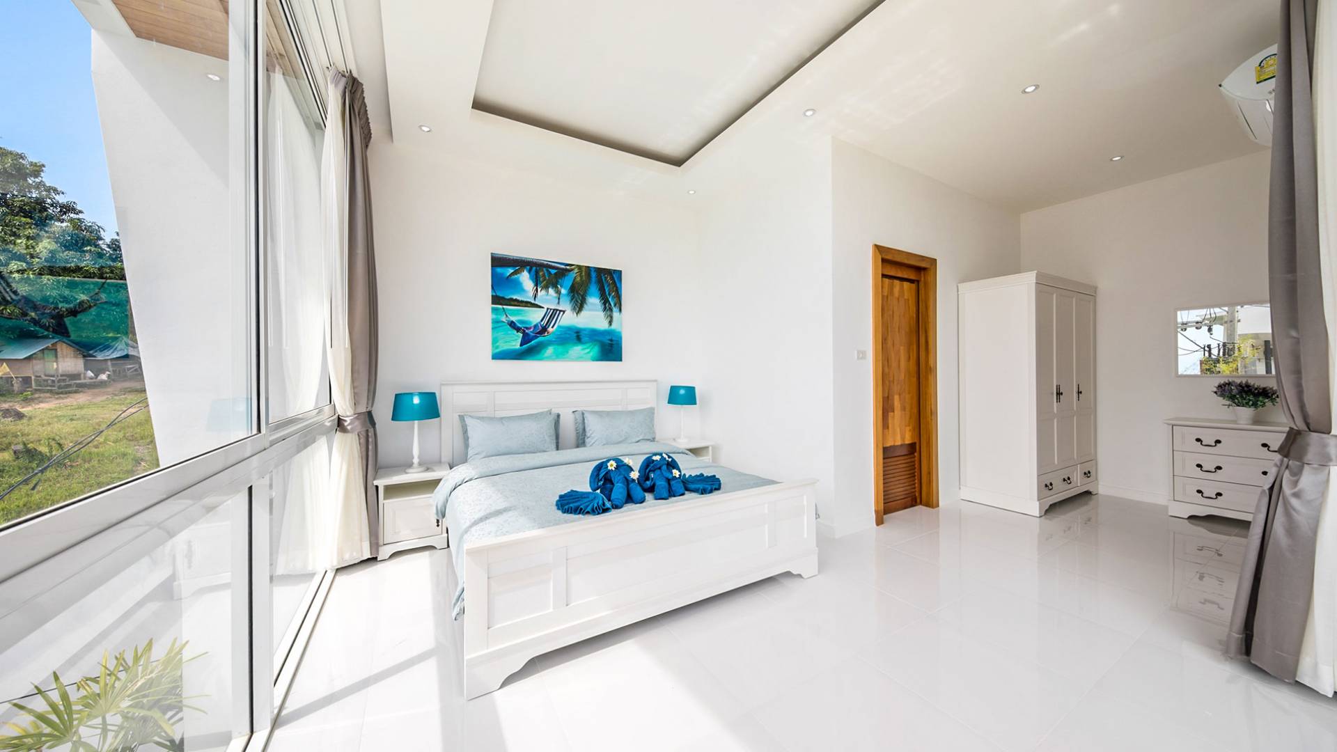Nestled in a quaint modern development at the foot of Samui's lesser-known White Buddha, Villa Namo is the ideal holiday home for friends, couples, or small families. As you enter into the large open plan living and dining area you are surrounded by floor-to-ceiling windows and sliding doors giving a bright and warm feeling. Open the large sliding doors and step out on the large poolside patio with the pool mere feet away from the living room.