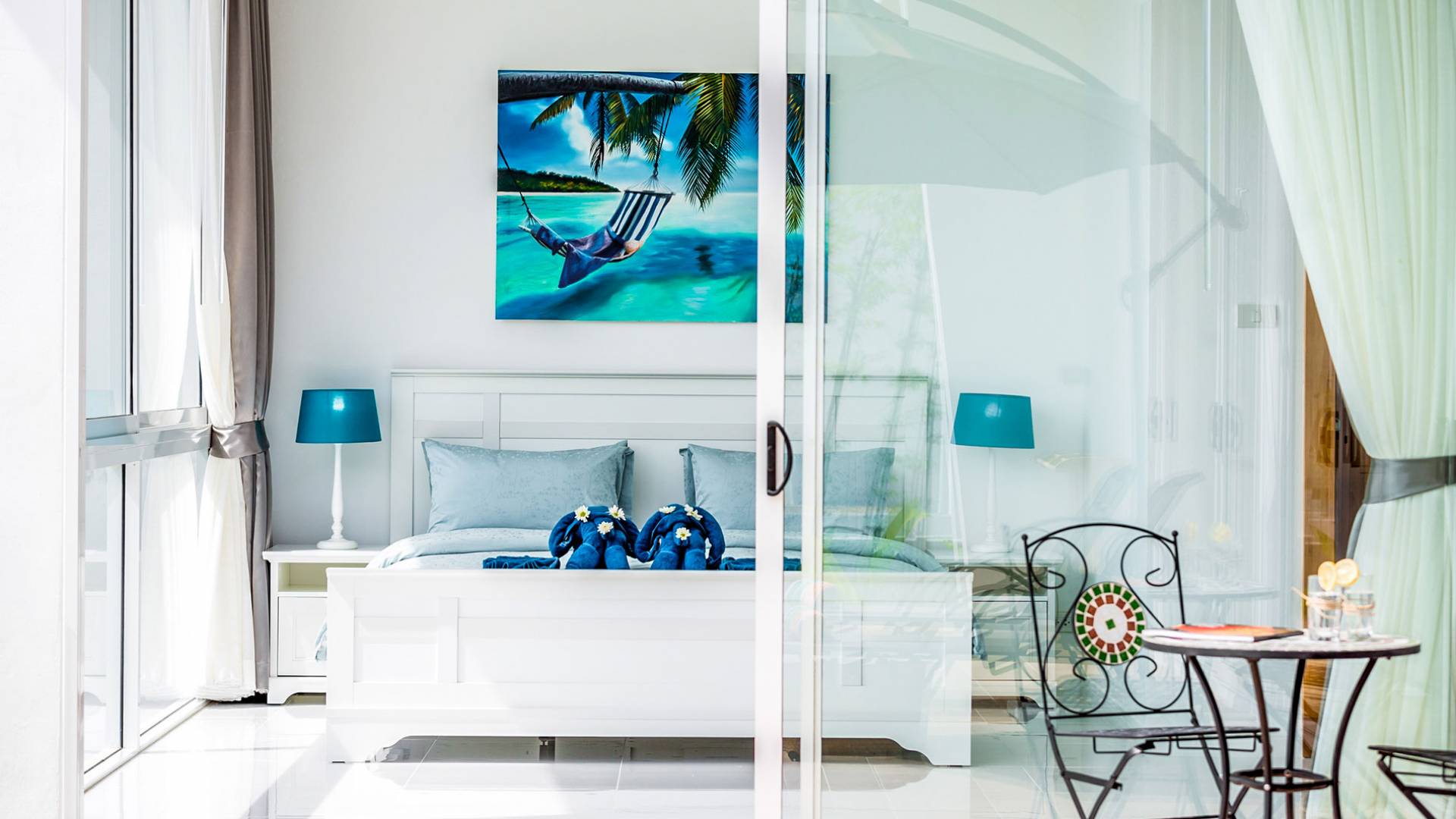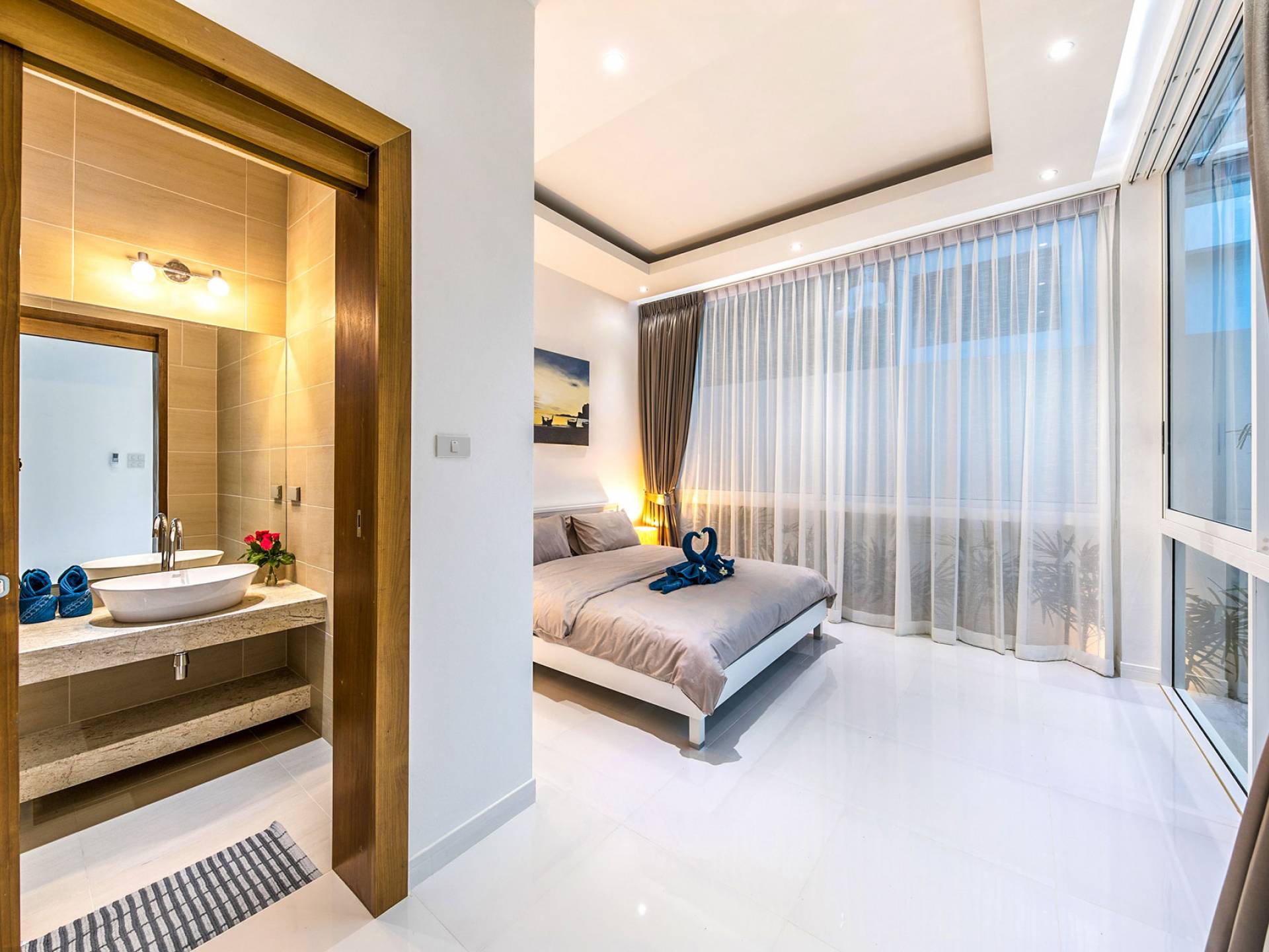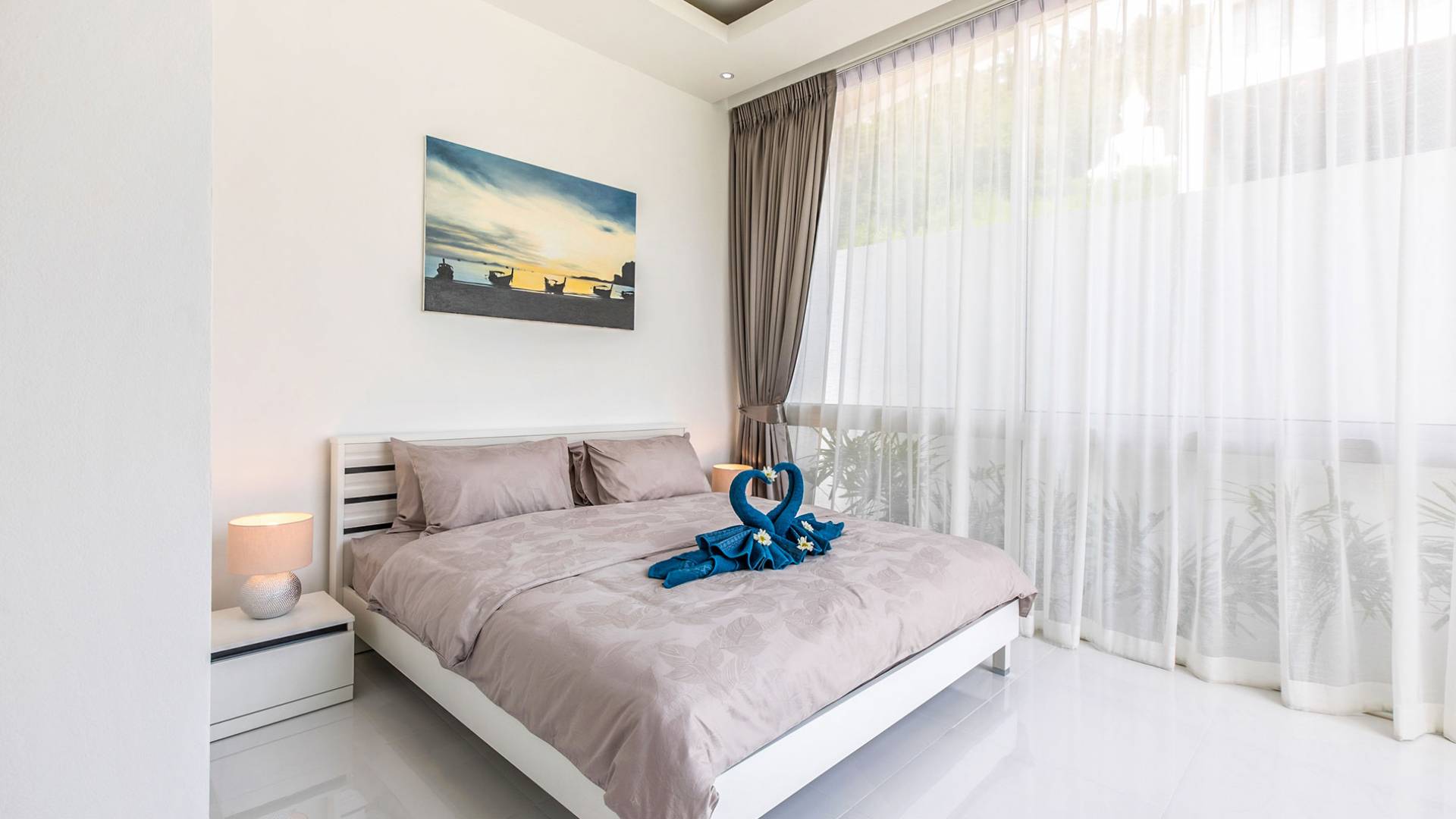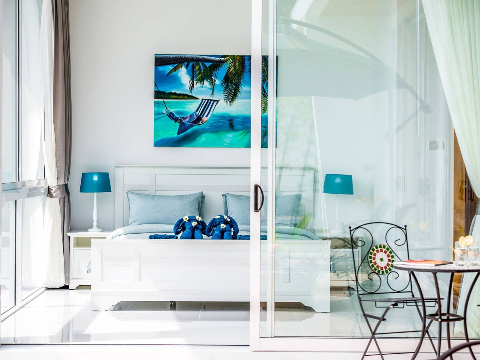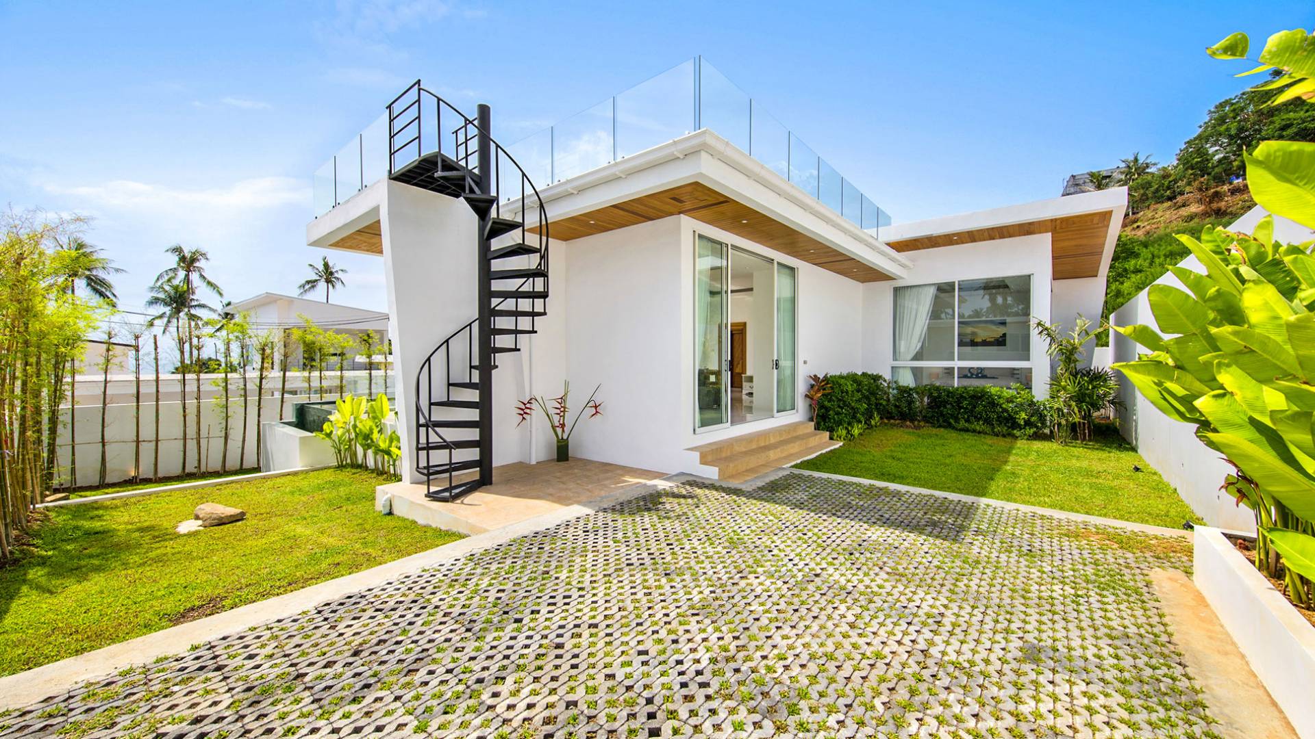 Nestled in a quaint modern development at the foot of Samui's lesser-known White Buddha, Villa Namo is the ideal holiday home for friends, couples, or small families. As you enter into the large open plan living and dining area you are surrounded by floor-to-ceiling windows and sliding doors giving a bright and warm feeling. Open the large sliding doors and step out on the large poolside patio with the pool mere feet away from the living room.