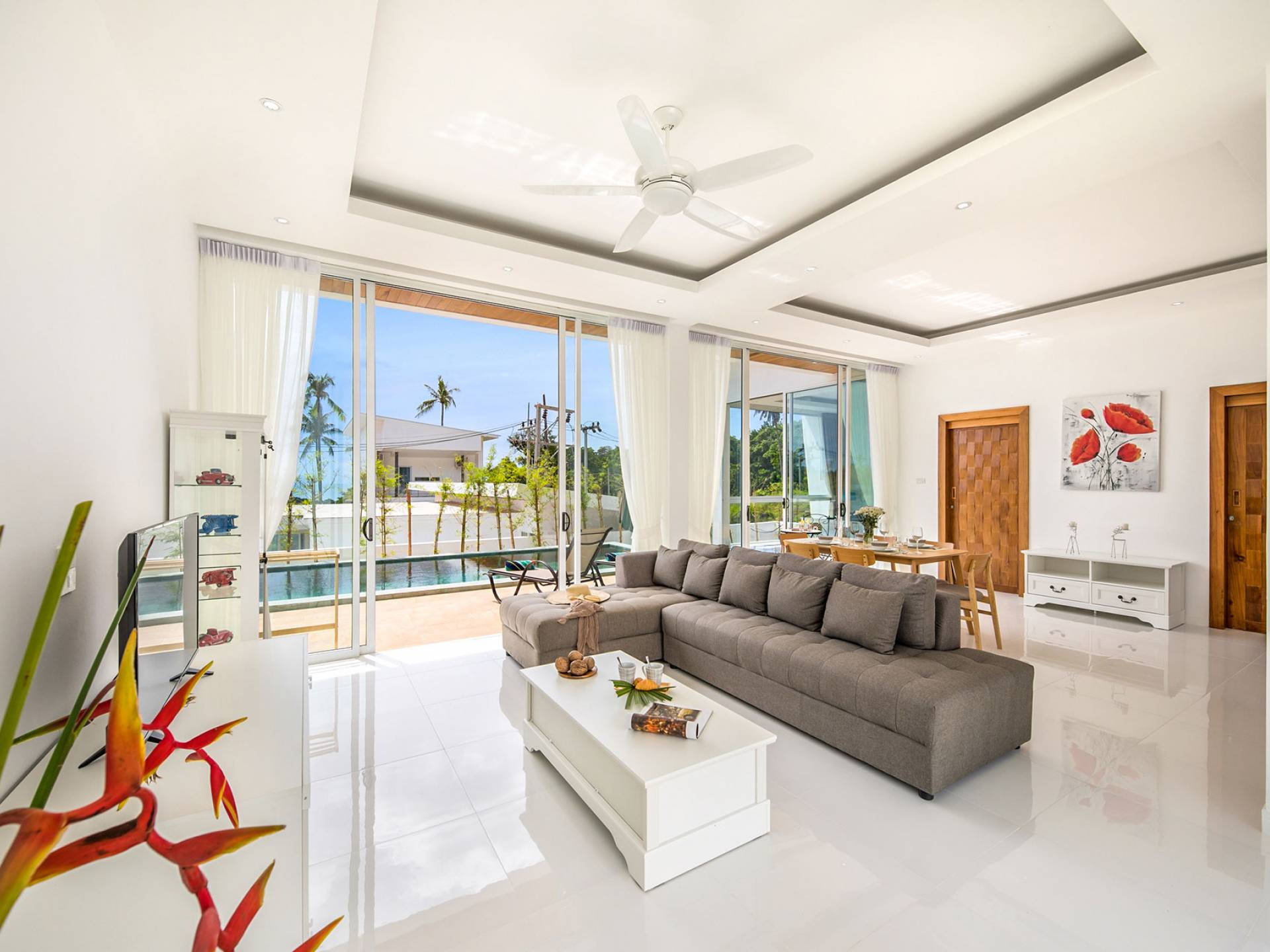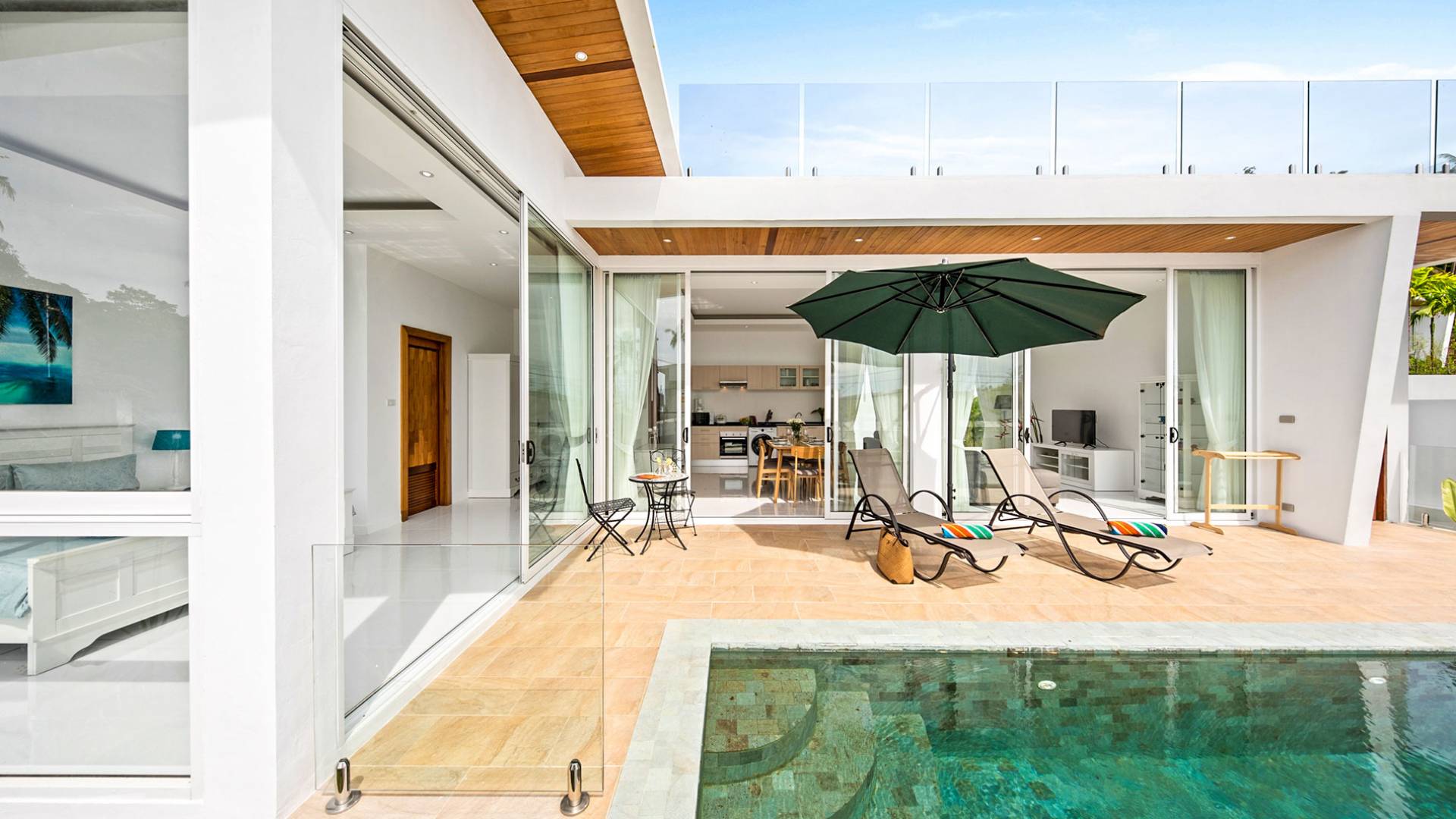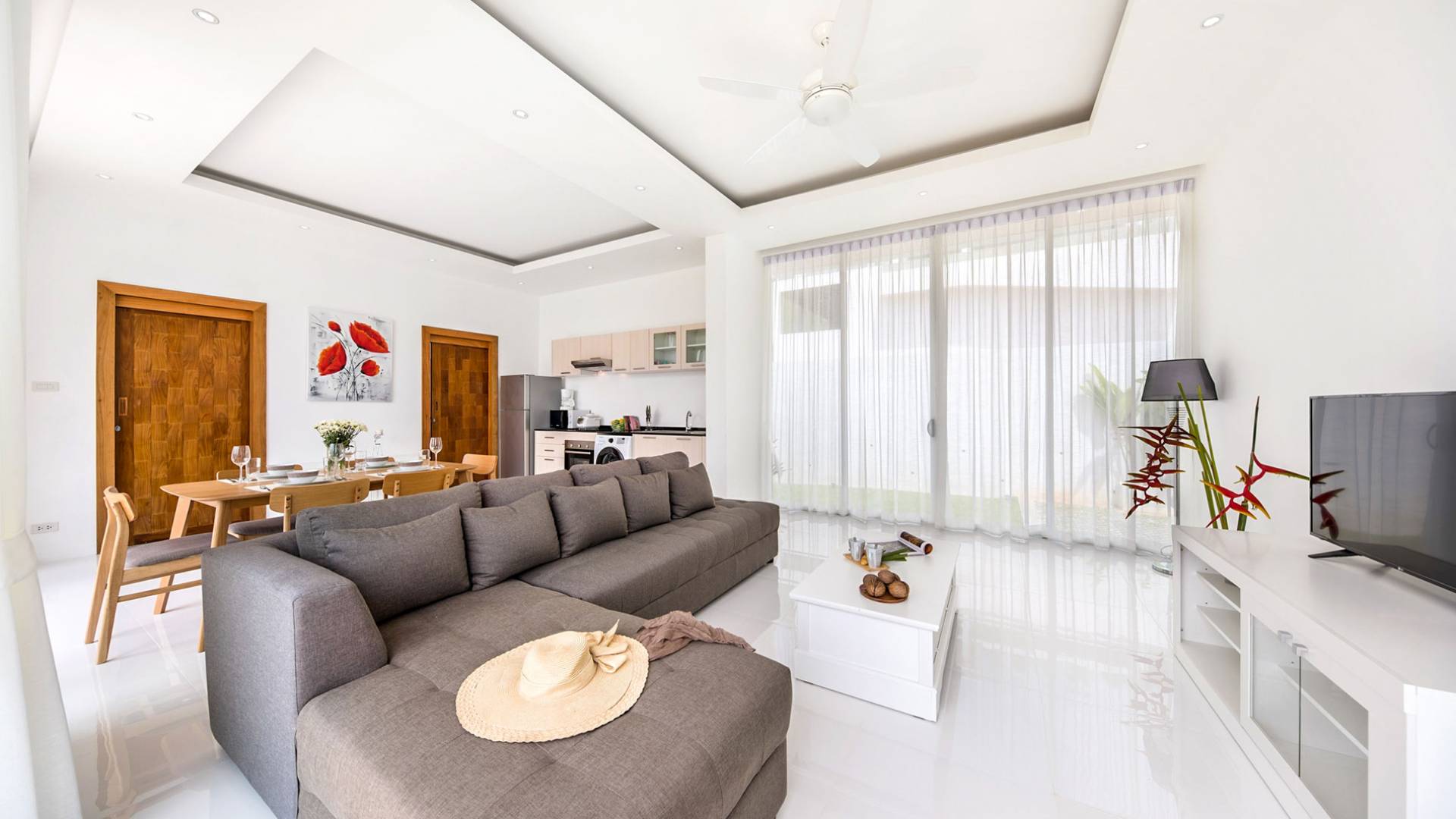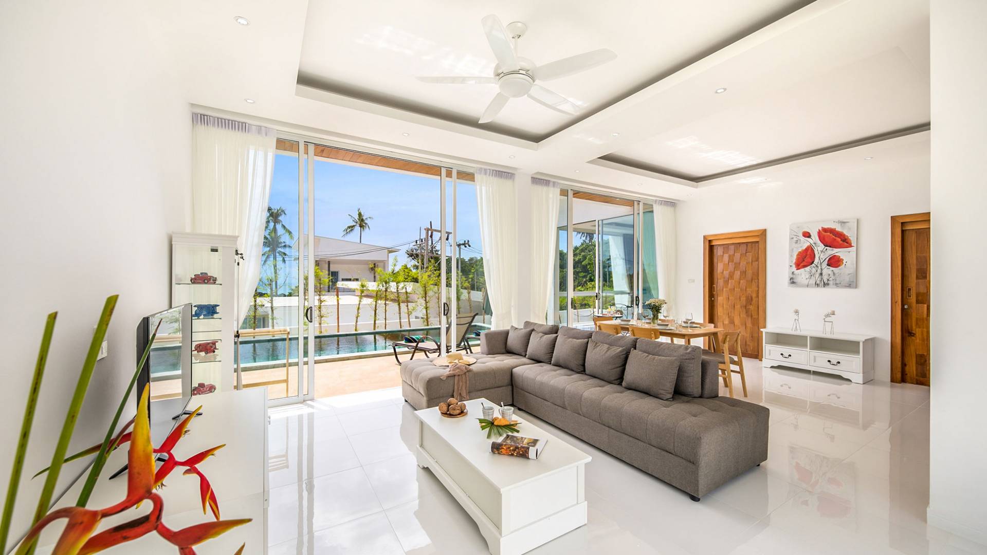 Lounge on the patio on a comfortable sun lounger with a cool drink and a good book or cool down in the family-sized pool. The living room is well equipped with a large flat-screen television as well as a Bluetooth-enabled soundbar giving you the ability to enjoy movies with high-quality sound or listen to streaming music through your phone. A fully-equipped Western-style kitchen allows you to cook anything you desire from a simple pad-thai to a full Sunday roast for you and the family, or even take advantage of the villa's private chef options