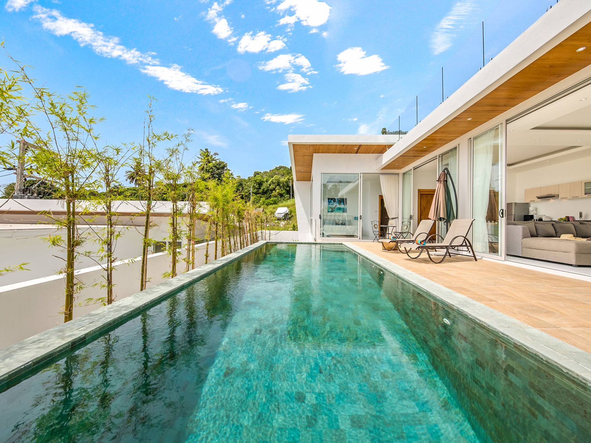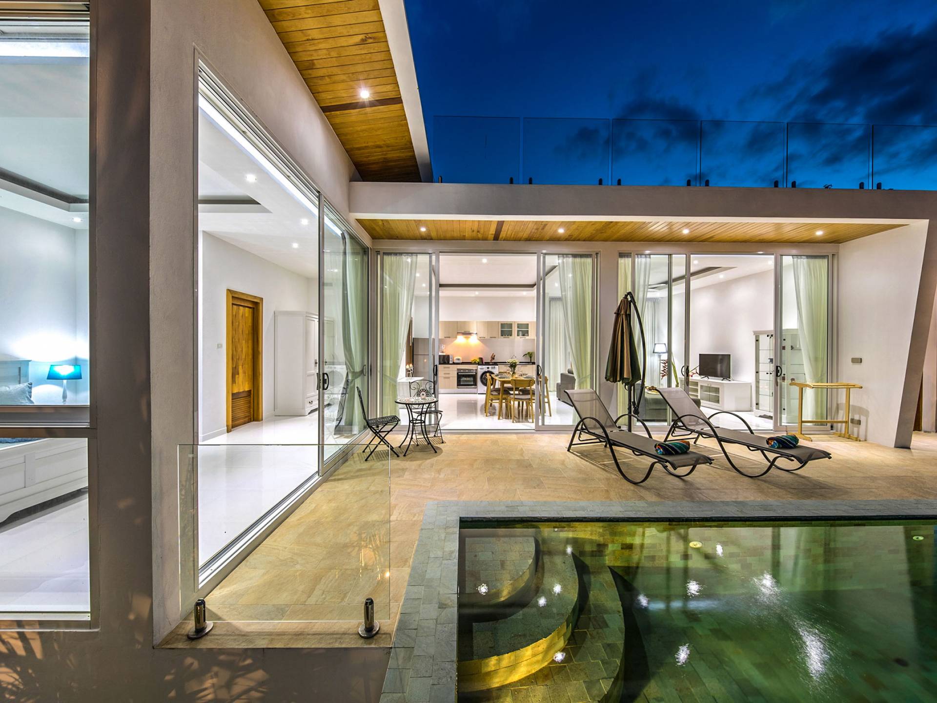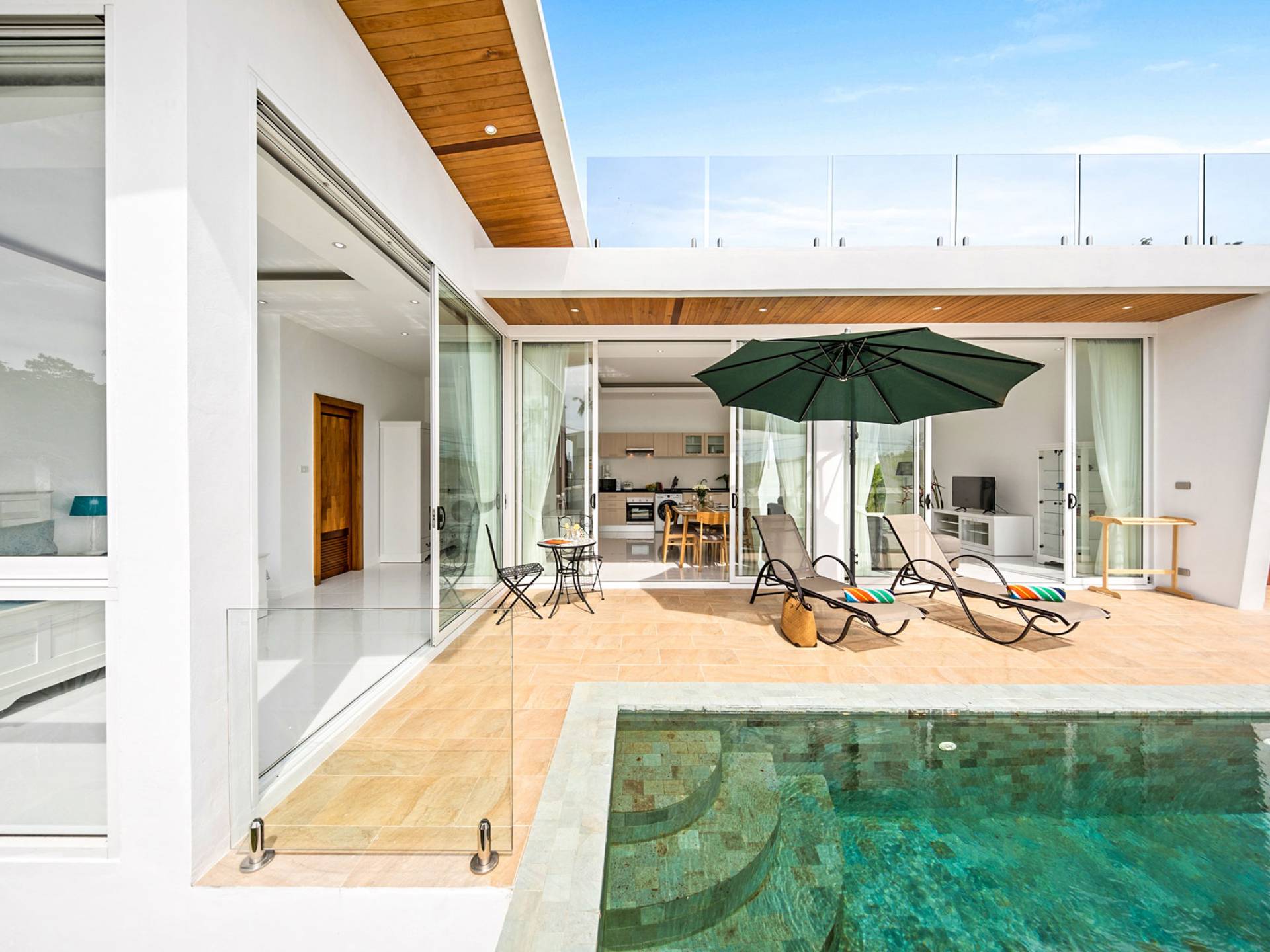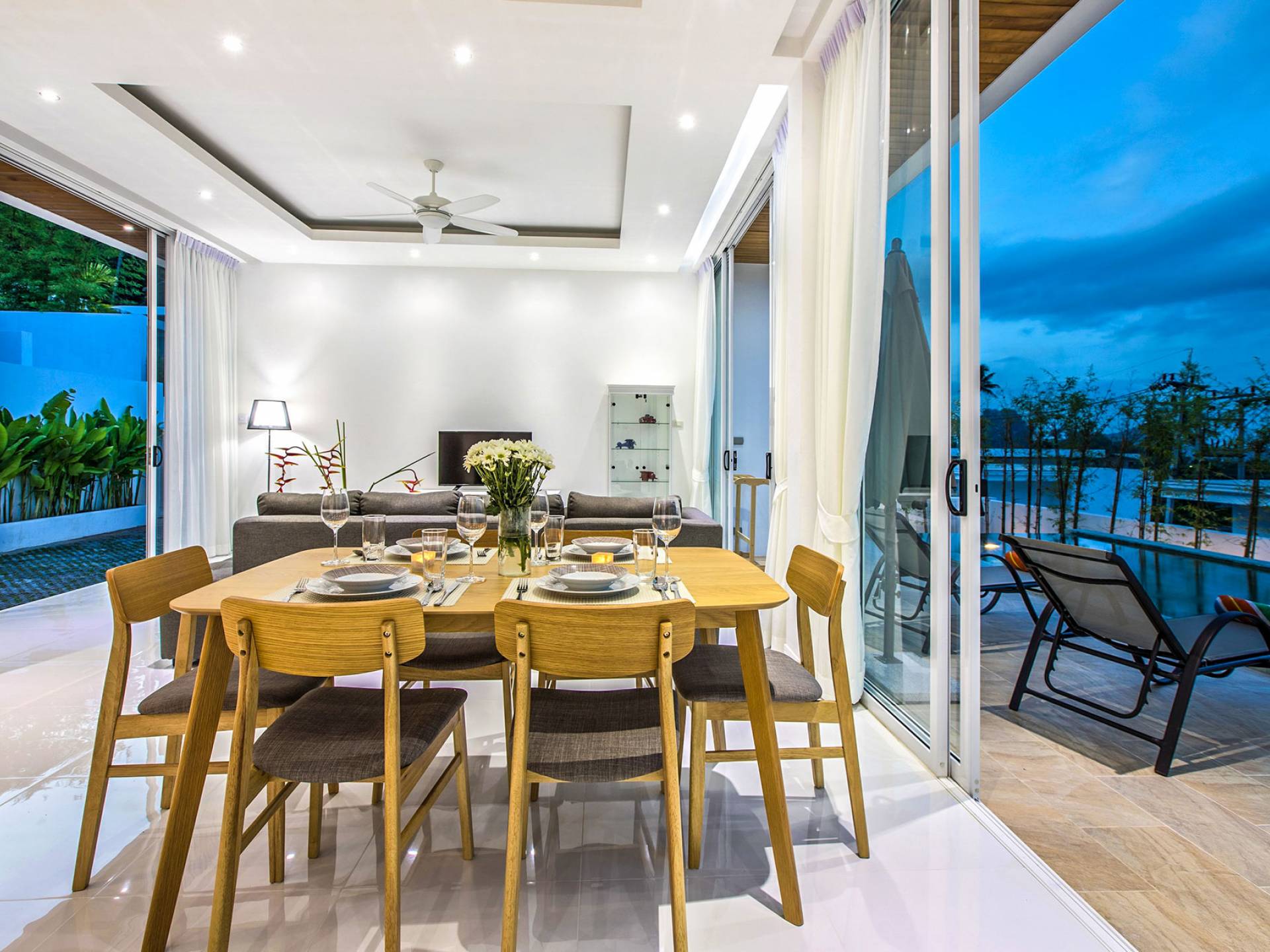Lounge on the patio on a comfortable sun lounger with a cool drink and a good book or cool down in the family-sized pool. The living room is well equipped with a large flat-screen television as well as a Bluetooth-enabled soundbar giving you the ability to enjoy movies with high-quality sound or listen to streaming music through your phone. A fully-equipped Western-style kitchen allows you to cook anything you desire from a simple pad-thai to a full Sunday roast for you and the family, or even take advantage of the villa's private chef options