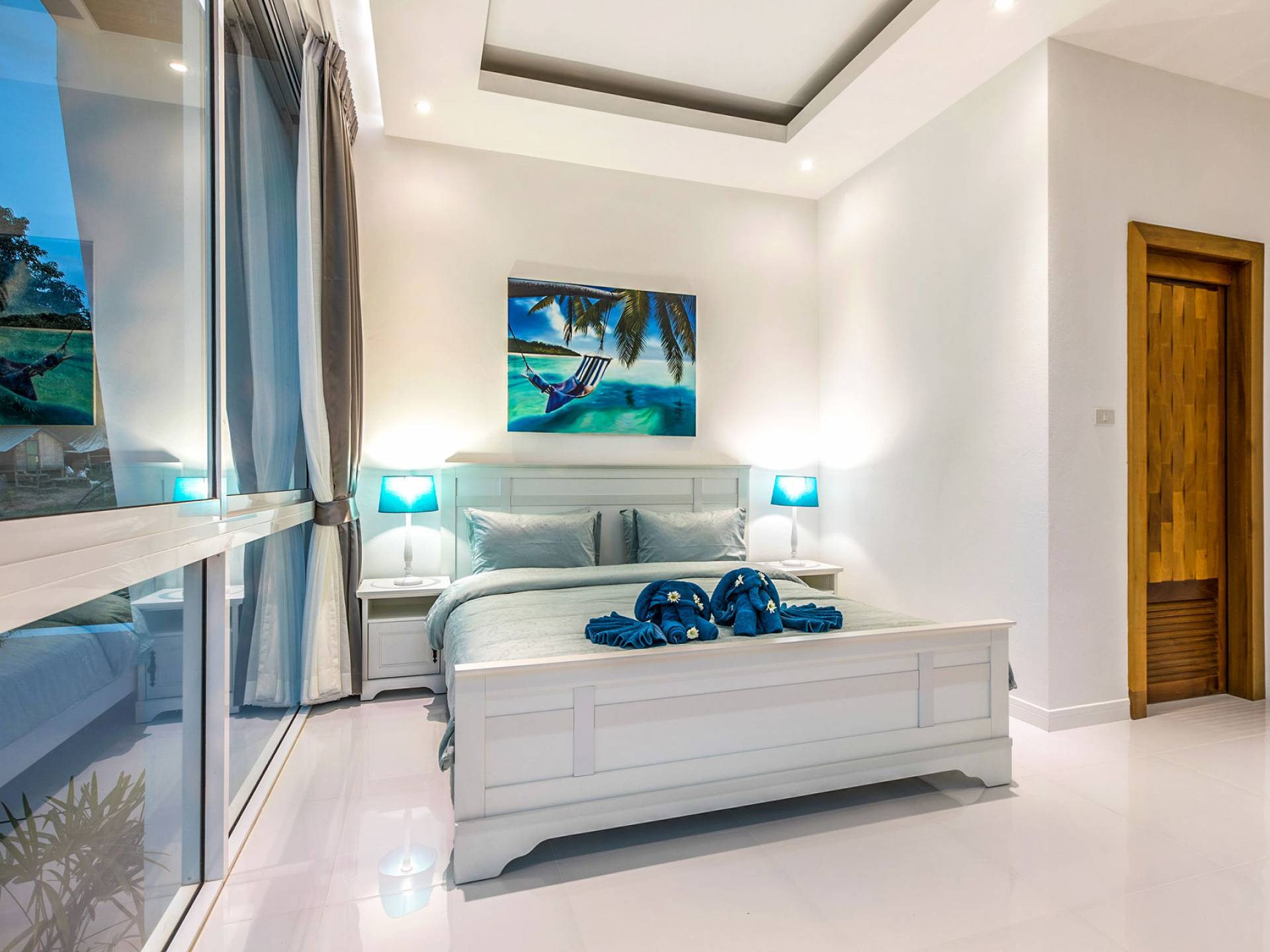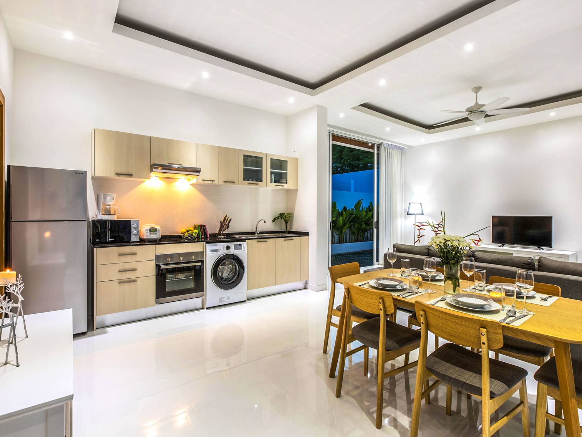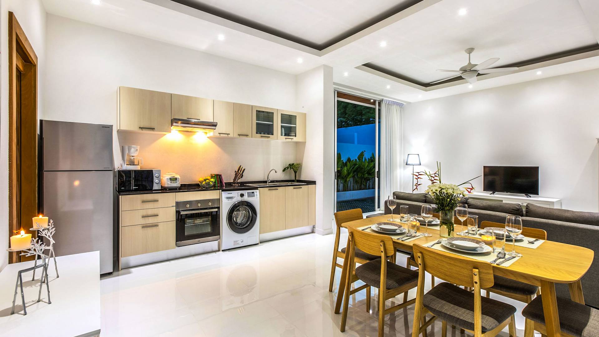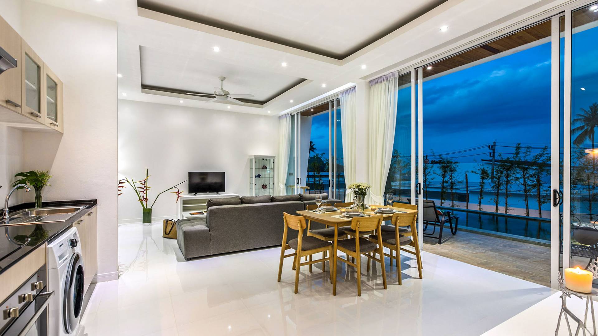 Lounge on the patio on a comfortable sun lounger with a cool drink and a good book or cool down in the family-sized pool. The living room is well equipped with a large flat-screen television as well as a Bluetooth-enabled soundbar giving you the ability to enjoy movies with high-quality sound or listen to streaming music through your phone. A fully-equipped Western-style kitchen allows you to cook anything you desire from a simple pad-thai to a full Sunday roast for you and the family, or even take advantage of the villa's private chef options