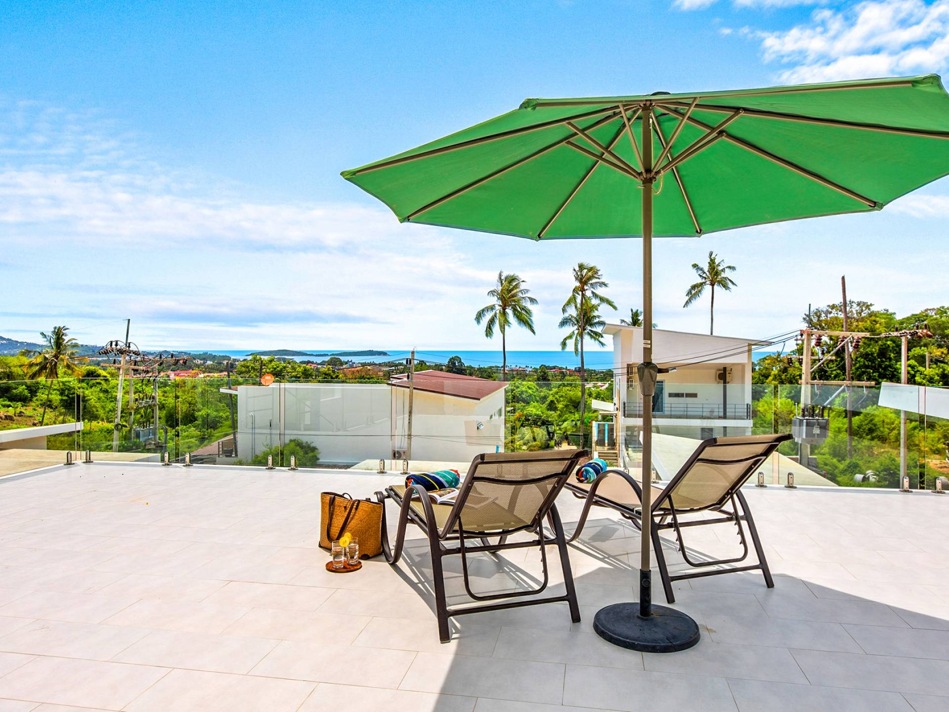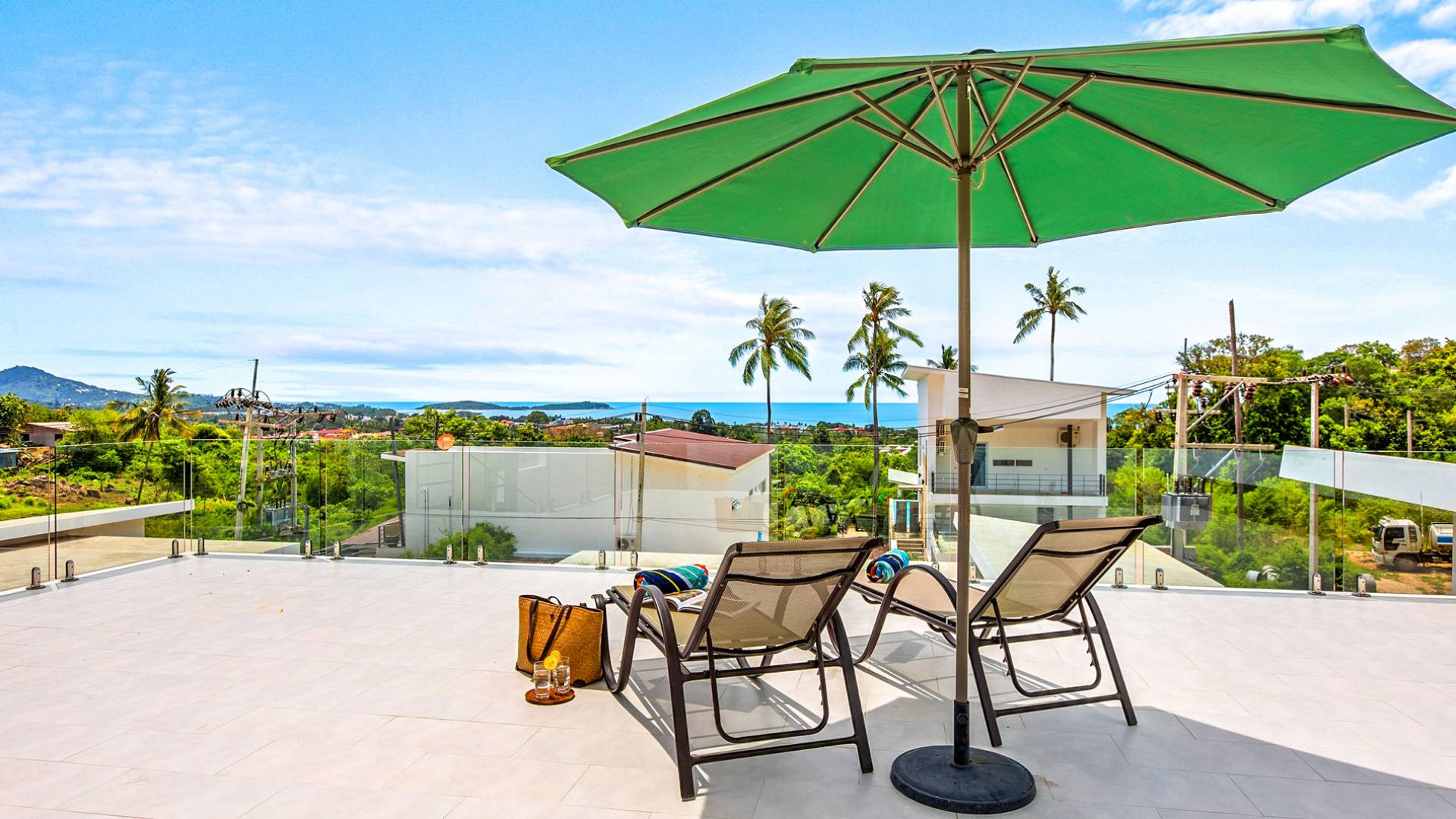 Two spacious bedrooms, both with large en-suite bathrooms featuring large rain showers, are equipped with large king-size beds. The back bedroom has a view of the garden, while the front bedroom has a view of the pool and garden. If you want to enjoy the stunning Koh Samui sunsets, take a nice cold drink up on the large rooftop terrace and enjoy the stunning views of Chaweng Bay.