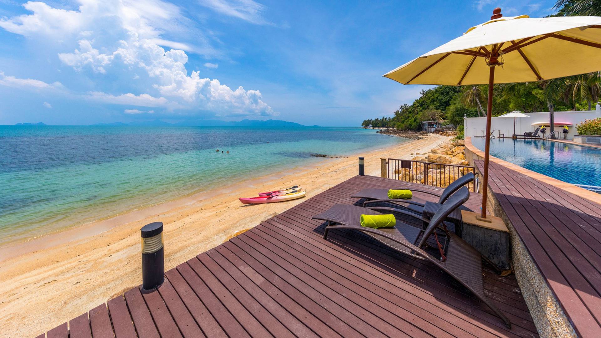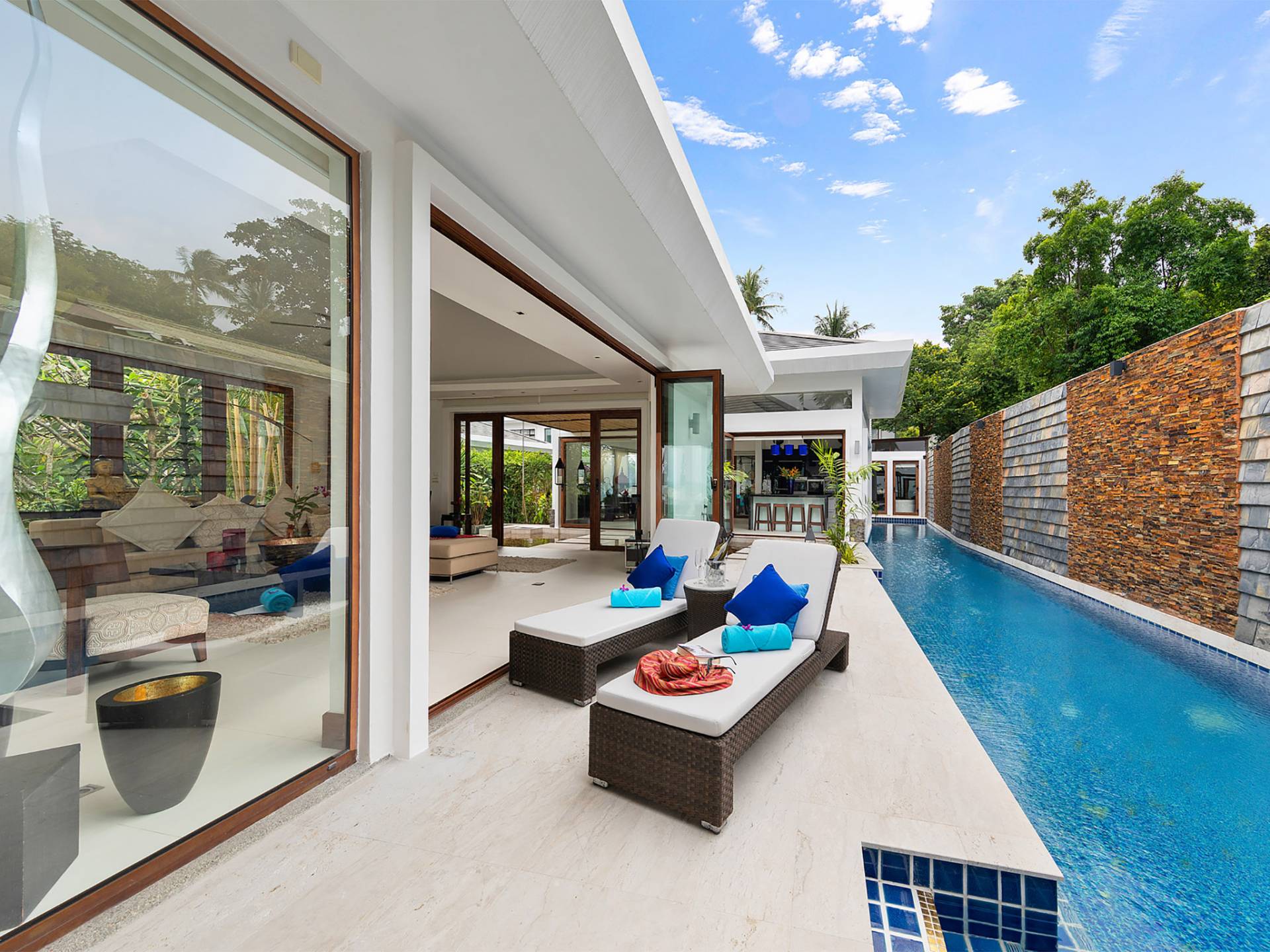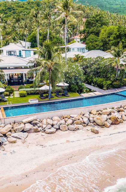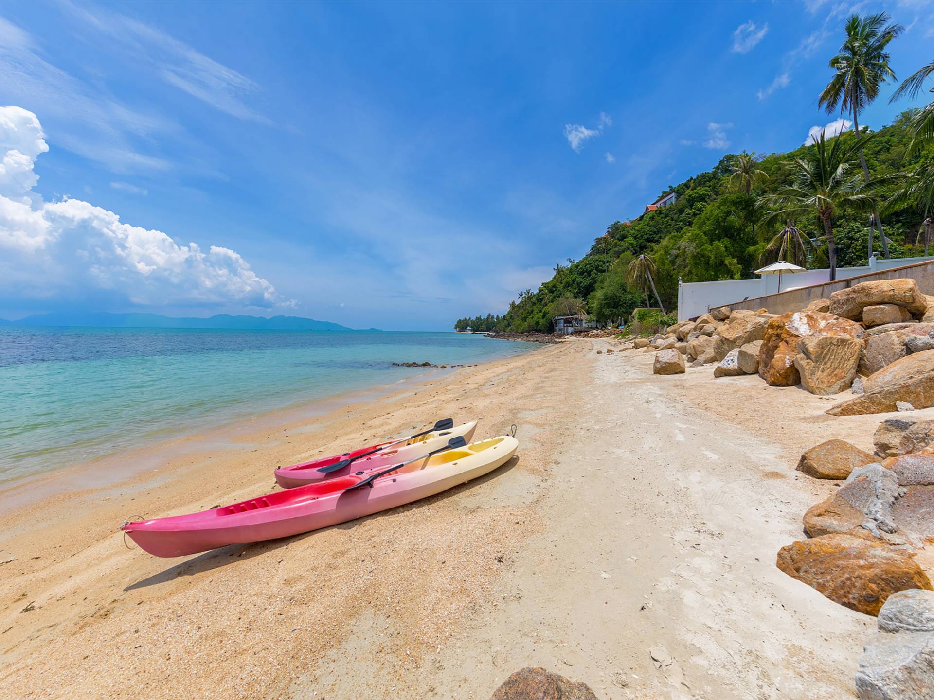 Villa Chi Maenam Samui is located right on the postcard-worthy white sand beach, fringed by swaying coconut palms, with the clear sapphire blue sea lapping lazily at the shore. Thanks to the area’s growing popularity, rustic beachside restaurants and bars, as well as several new trendy beach clubs, are just a short walk down the beach. For more sophisticated entertainment, the exclusive Four Seasons Resort and Spa is merely 4km away at Laem Yai Bay while Fisherman’s Village is great for shopping and delicious food.