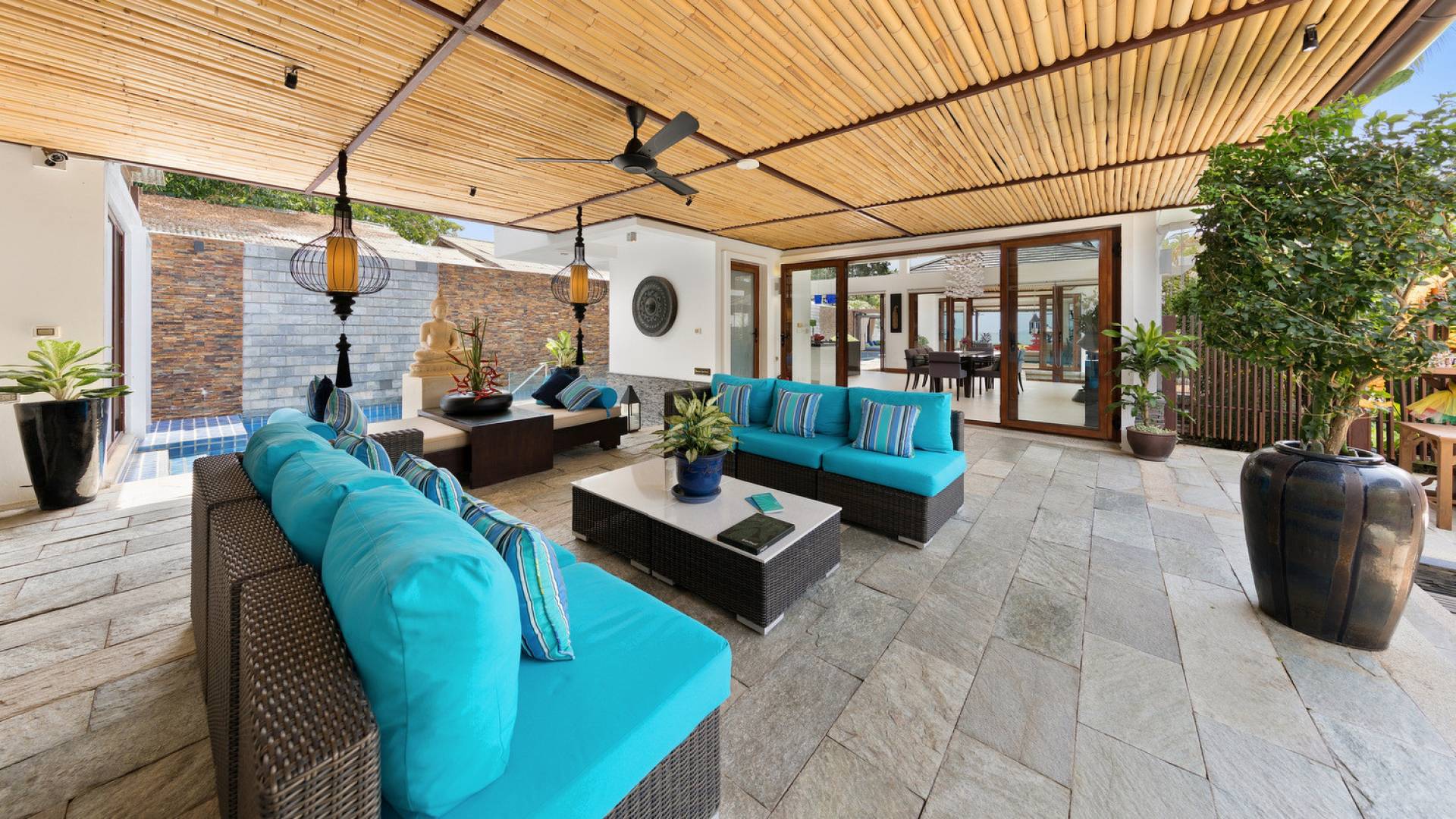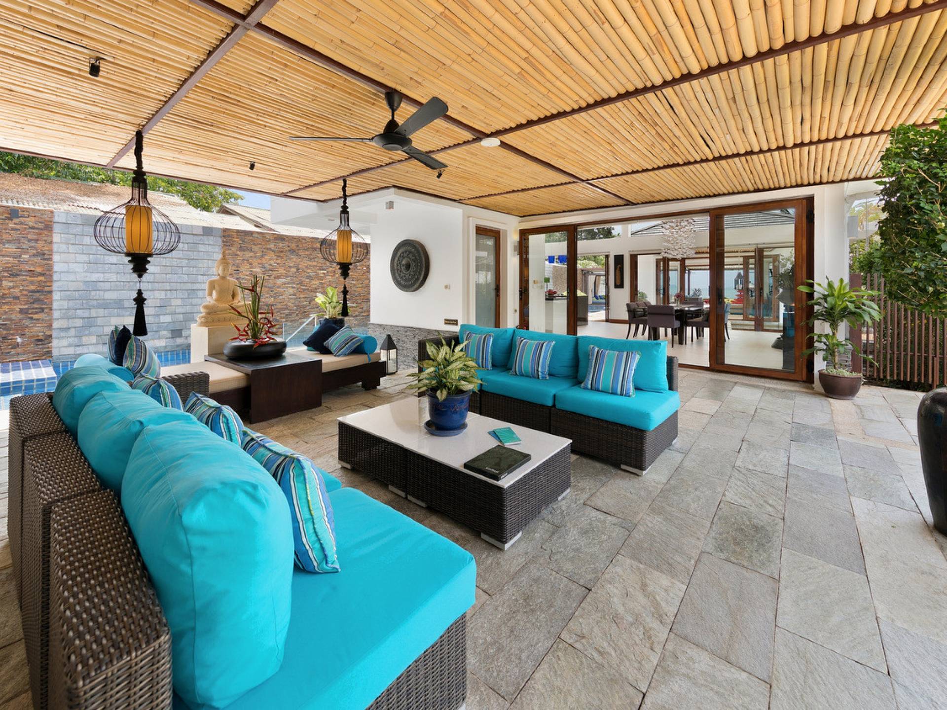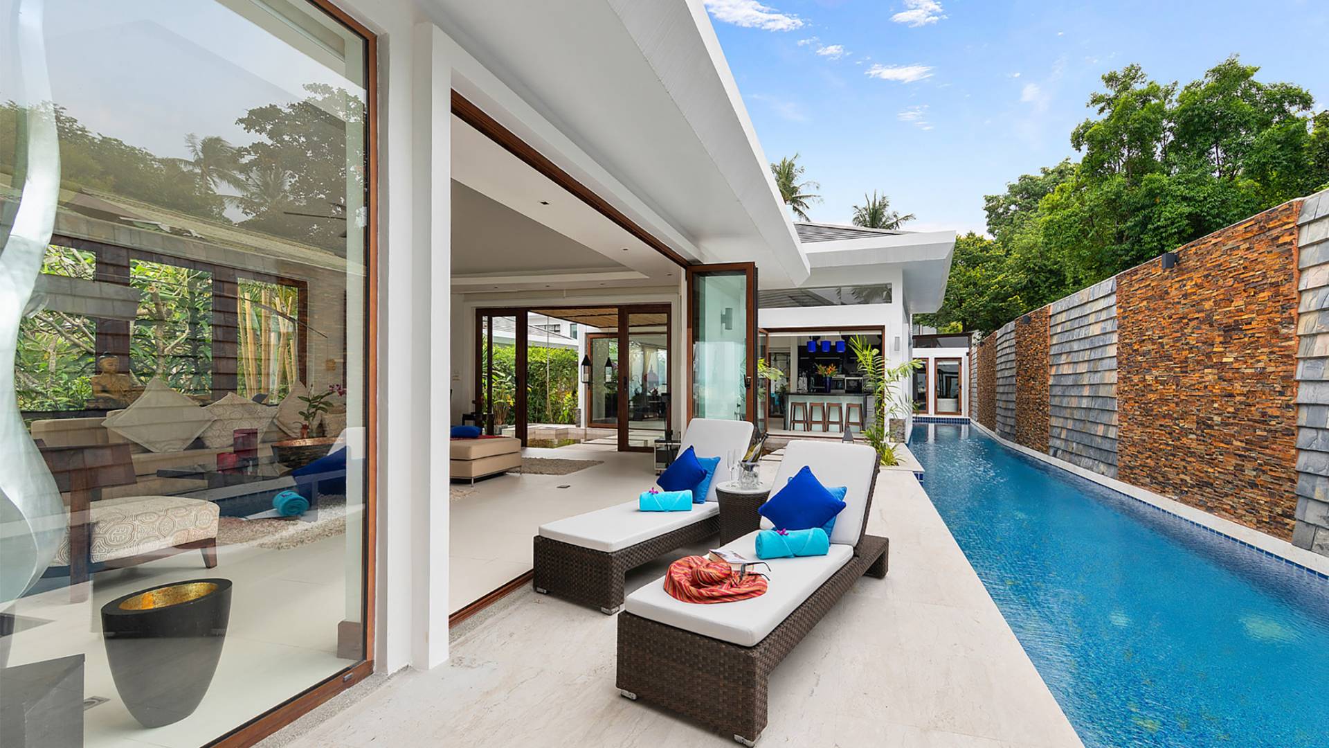 Villa Chi Maenam Samui is located right on the postcard-worthy white sand beach, fringed by swaying coconut palms, with the clear sapphire blue sea lapping lazily at the shore. Thanks to the area’s growing popularity, rustic beachside restaurants and bars, as well as several new trendy beach clubs, are just a short walk down the beach. For more sophisticated entertainment, the exclusive Four Seasons Resort and Spa is merely 4km away at Laem Yai Bay while Fisherman’s Village is great for shopping and delicious food.
