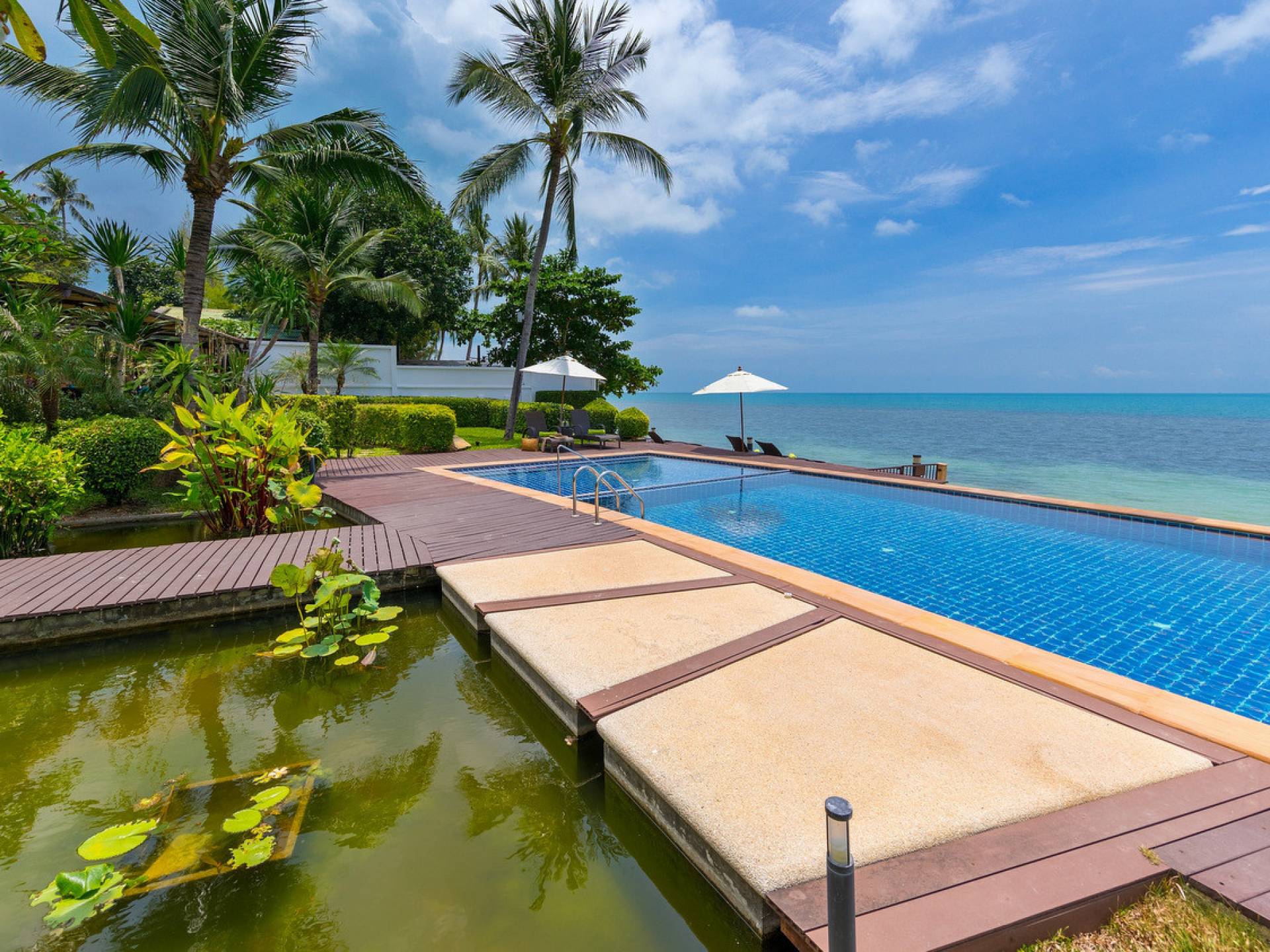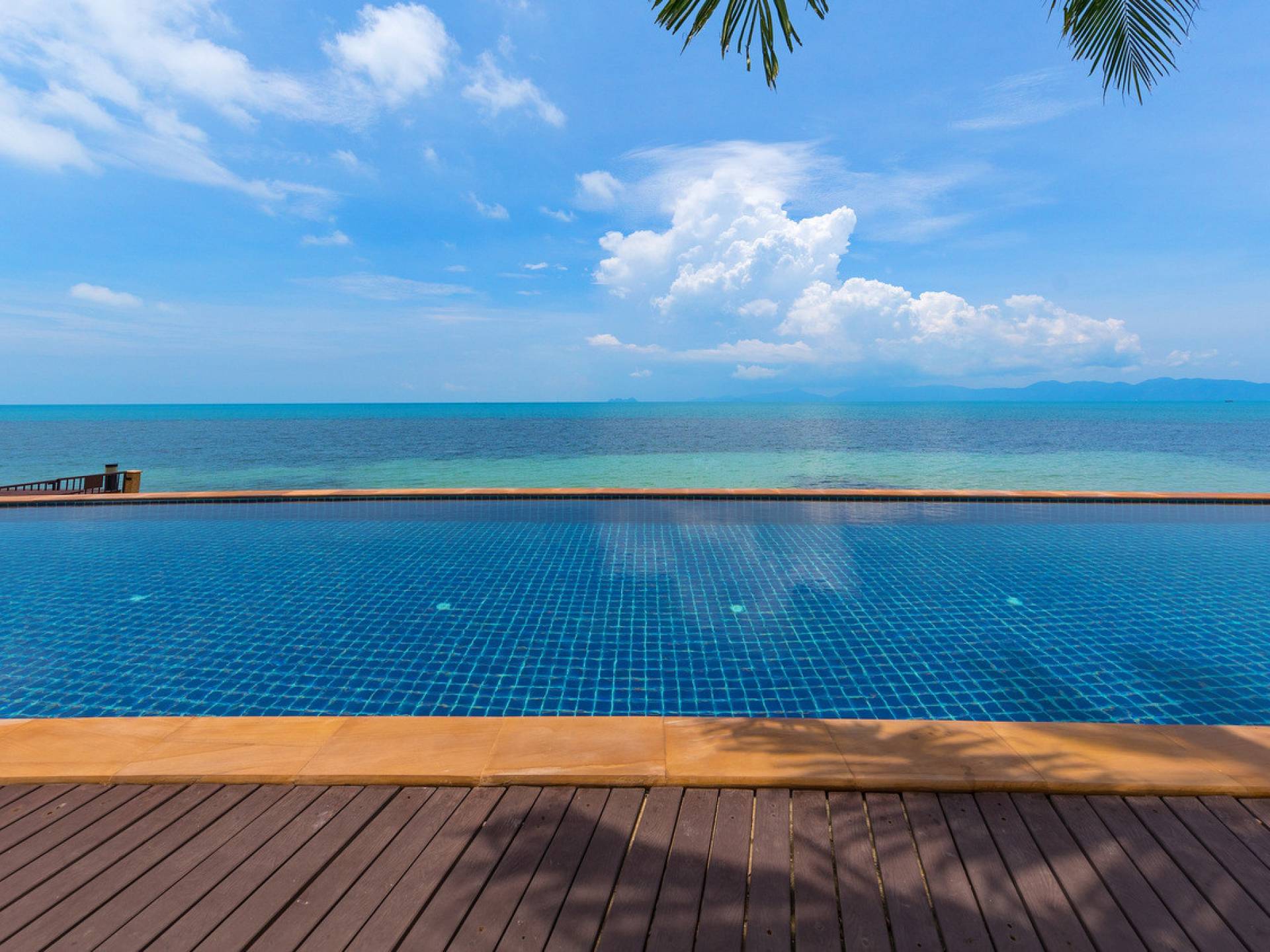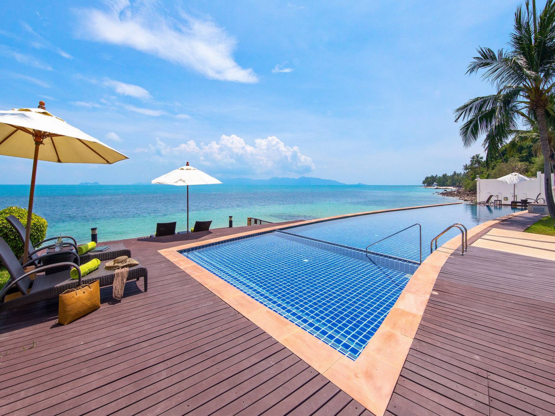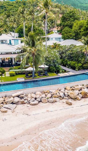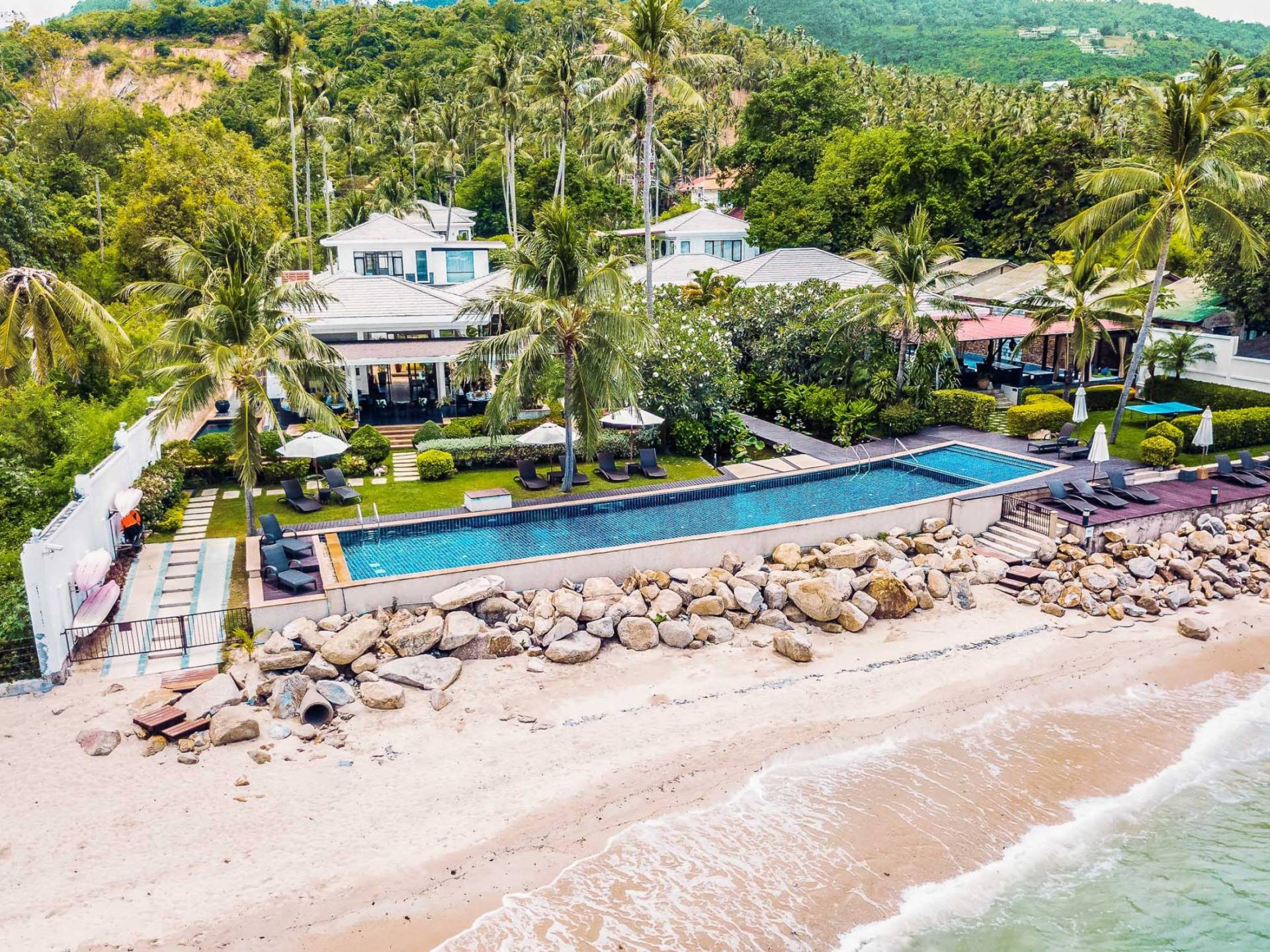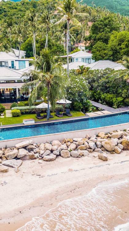 Villa Chi Maenam Samui is a luxury villa rental with 5 bedrooms and a private pool. Villa Chi Maenam Samui is a supreme private luxury retreat with 5 spacious ensuite bedrooms and bright and airy living spaces. The ultimate beachfront, the private infinity pool luxury villa is positioned in wonderful tropical gardens, on the magical Bang Por Beach on Koh Samui’s divine north coast. Filled with scenic sea views towards the tropical island of Koh Phangan, this unique, elegantly designed, fully staffed, villa provides a spacious and relaxing holiday home for up to 10 people.