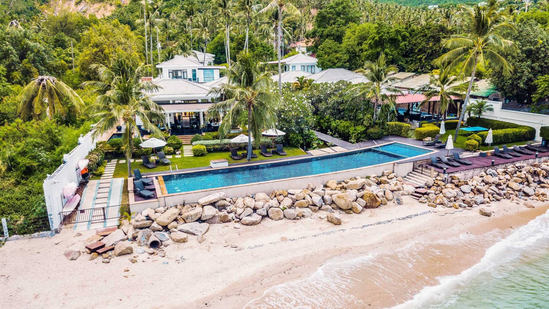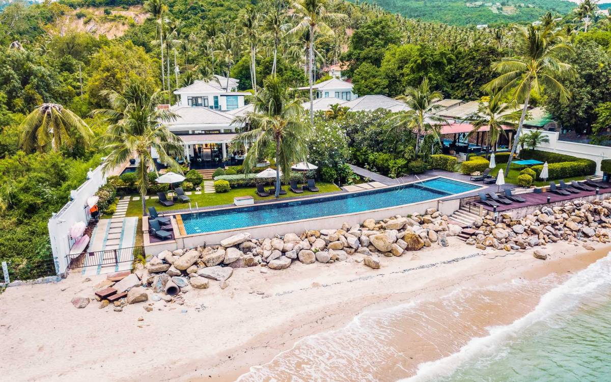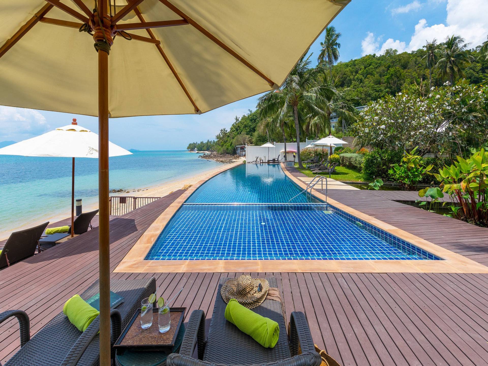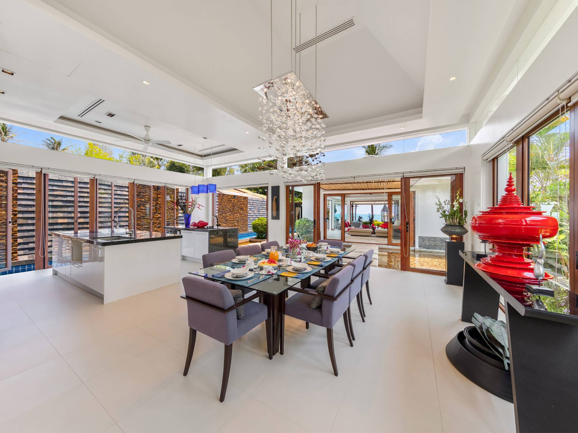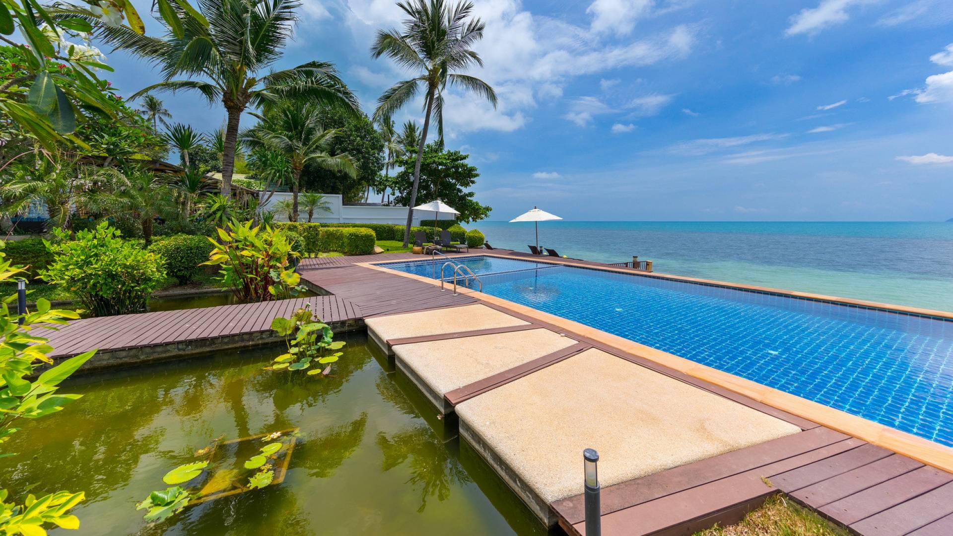 Villa Chi Maenam Samui is a luxury villa rental with 5 bedrooms and a private pool. Villa Chi Maenam Samui is a supreme private luxury retreat with 5 spacious ensuite bedrooms and bright and airy living spaces. The ultimate beachfront, the private infinity pool luxury villa is positioned in wonderful tropical gardens, on the magical Bang Por Beach on Koh Samui’s divine north coast. Filled with scenic sea views towards the tropical island of Koh Phangan, this unique, elegantly designed, fully staffed, villa provides a spacious and relaxing holiday home for up to 10 people.