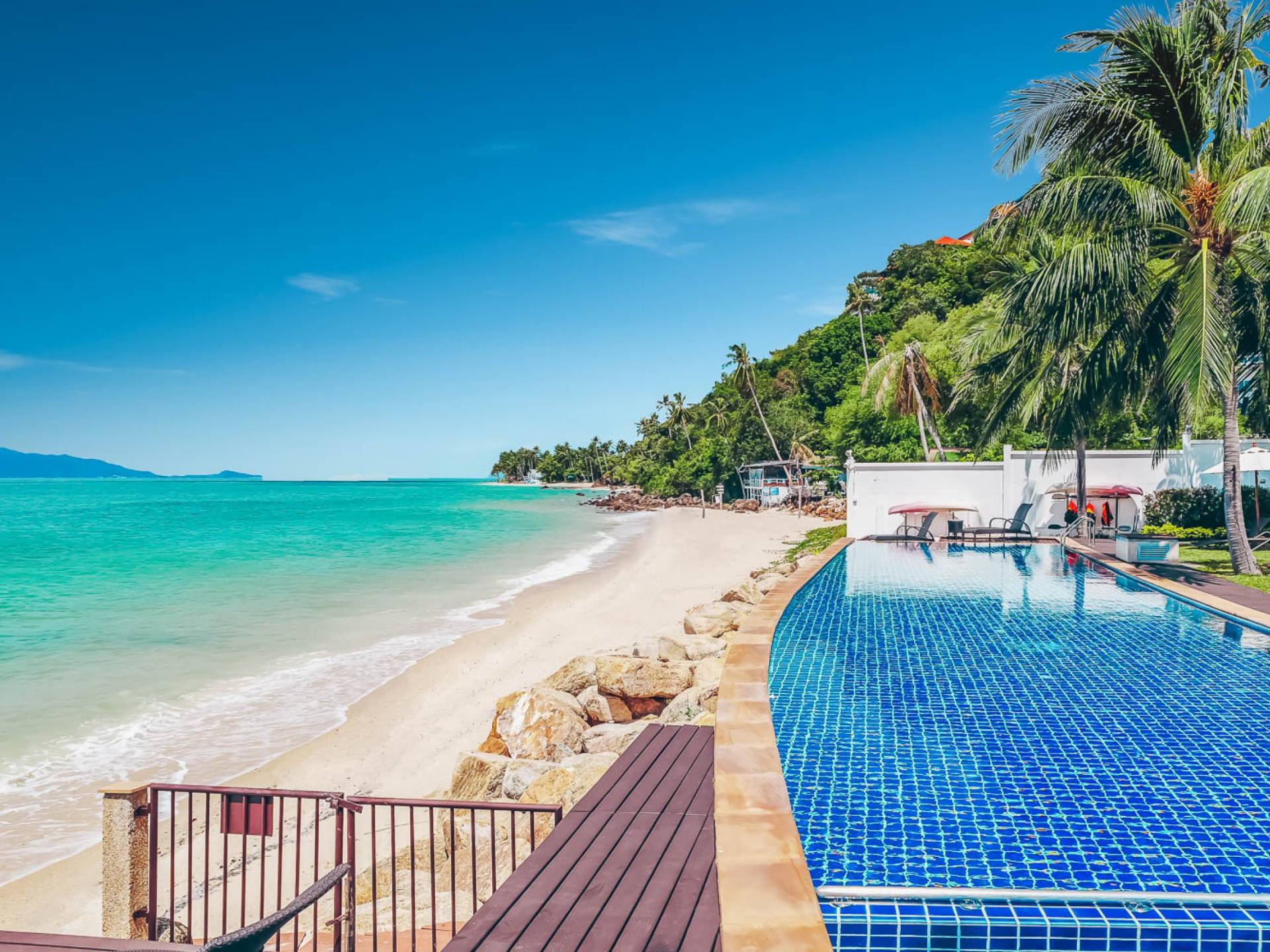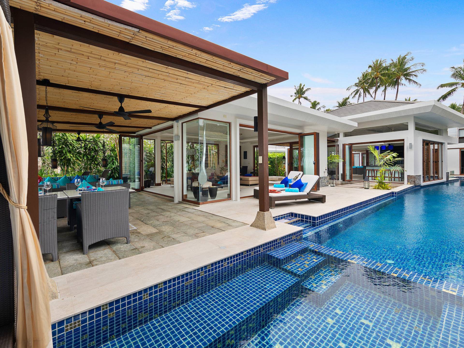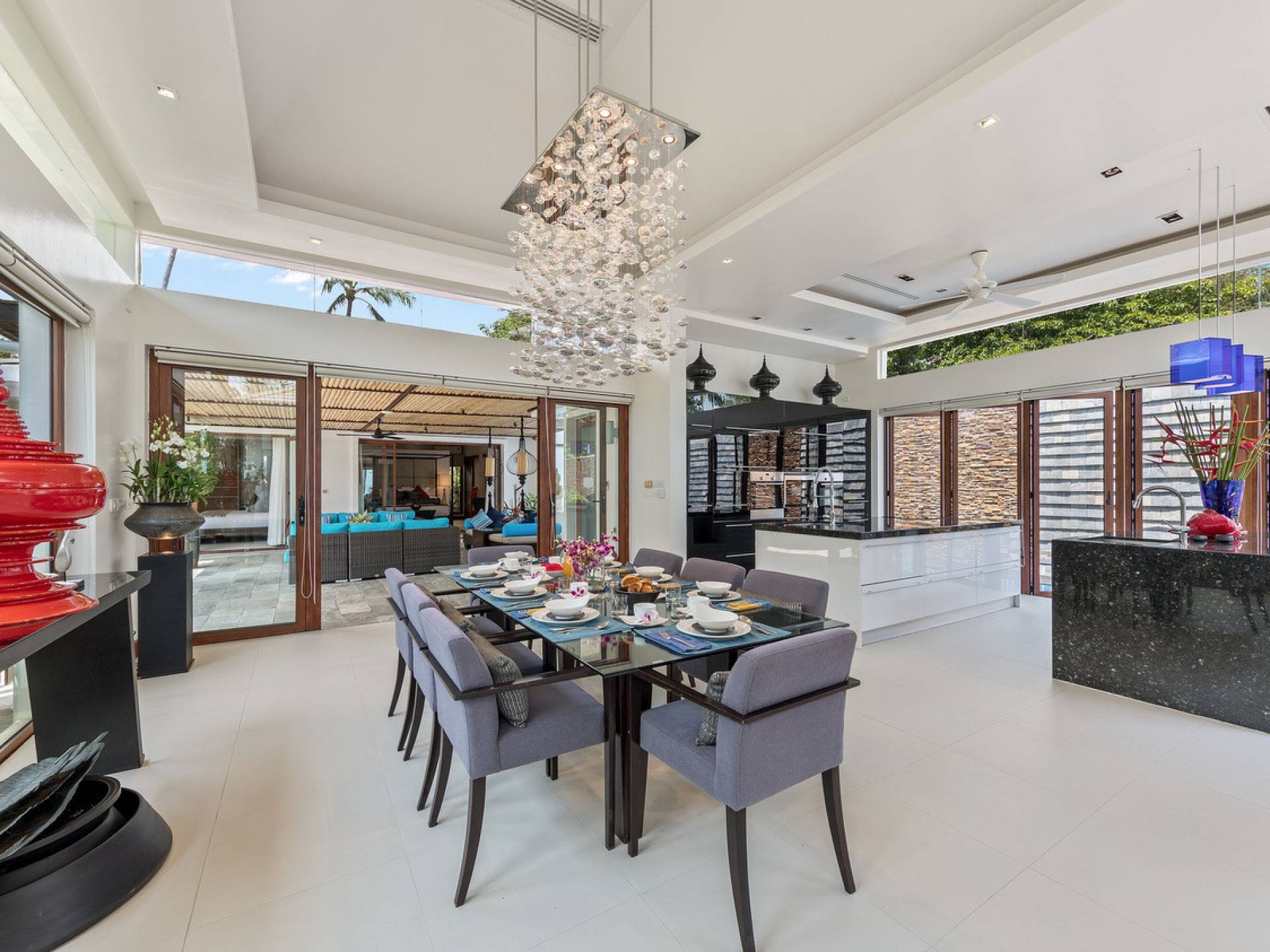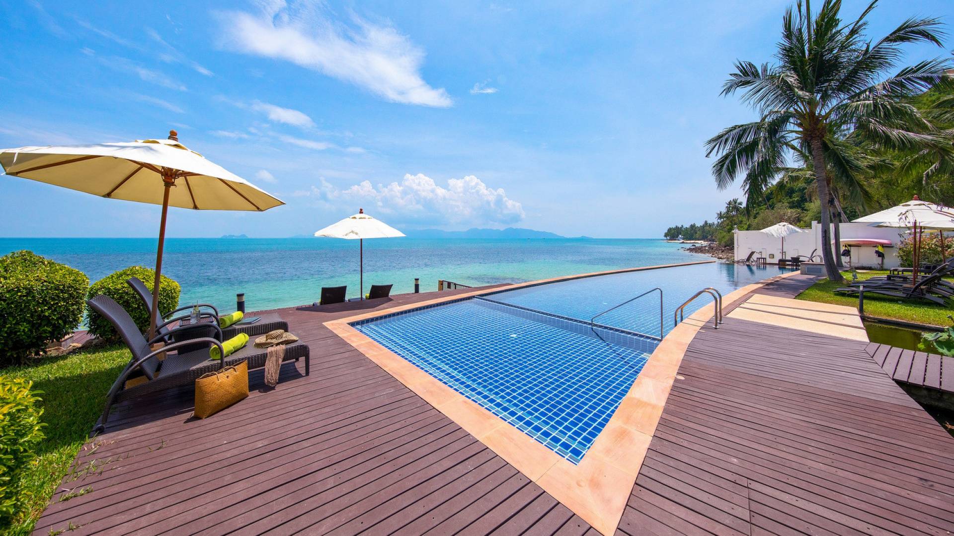 Villa Chi Maenam Samui is a luxury villa rental with 5 bedrooms and a private pool. Villa Chi Maenam Samui is a supreme private luxury retreat with 5 spacious ensuite bedrooms and bright and airy living spaces. The ultimate beachfront, the private infinity pool luxury villa is positioned in wonderful tropical gardens, on the magical Bang Por Beach on Koh Samui’s divine north coast. Filled with scenic sea views towards the tropical island of Koh Phangan, this unique, elegantly designed, fully staffed, villa provides a spacious and relaxing holiday home for up to 10 people.