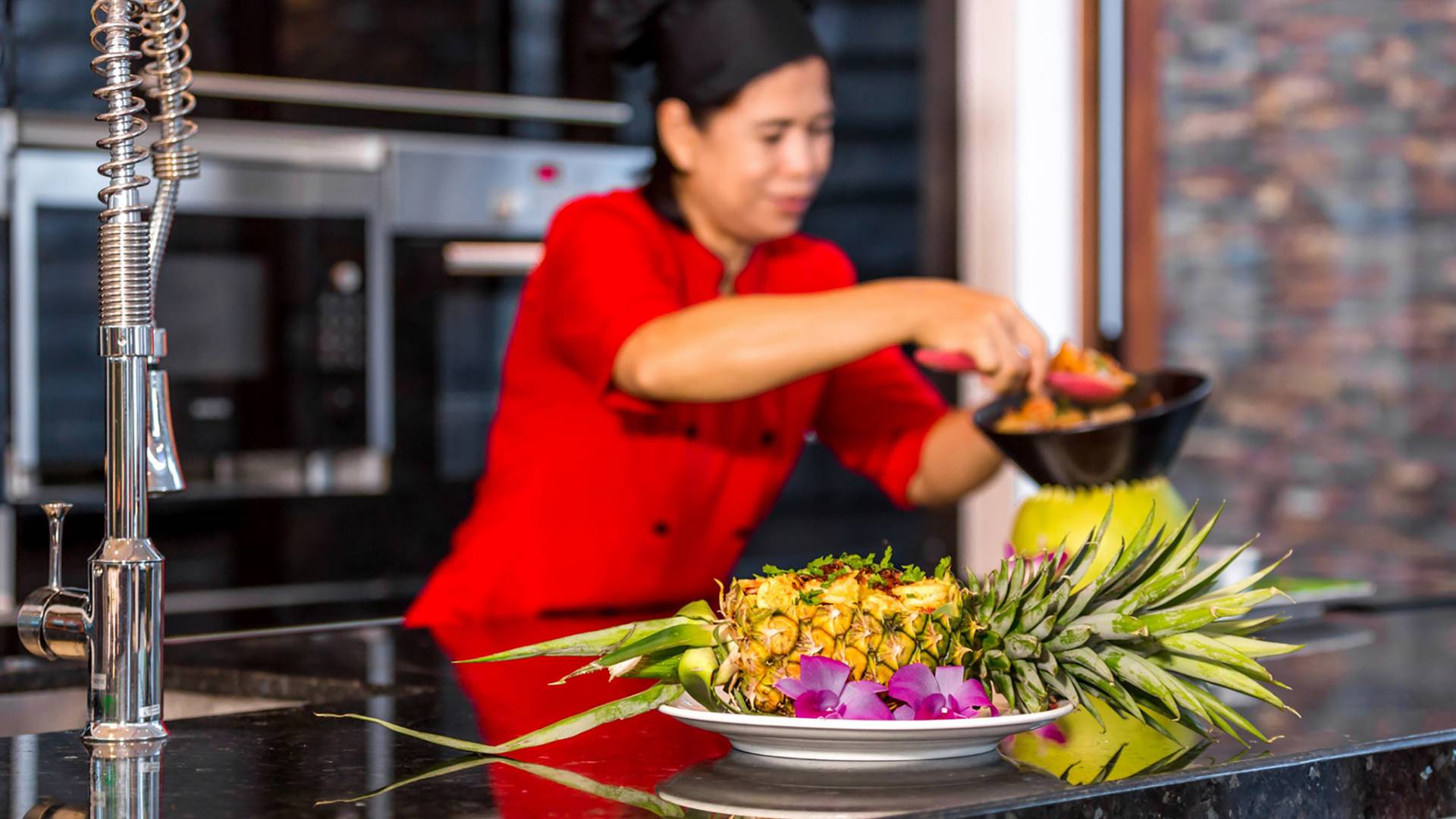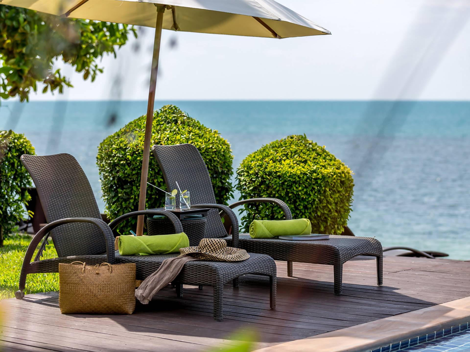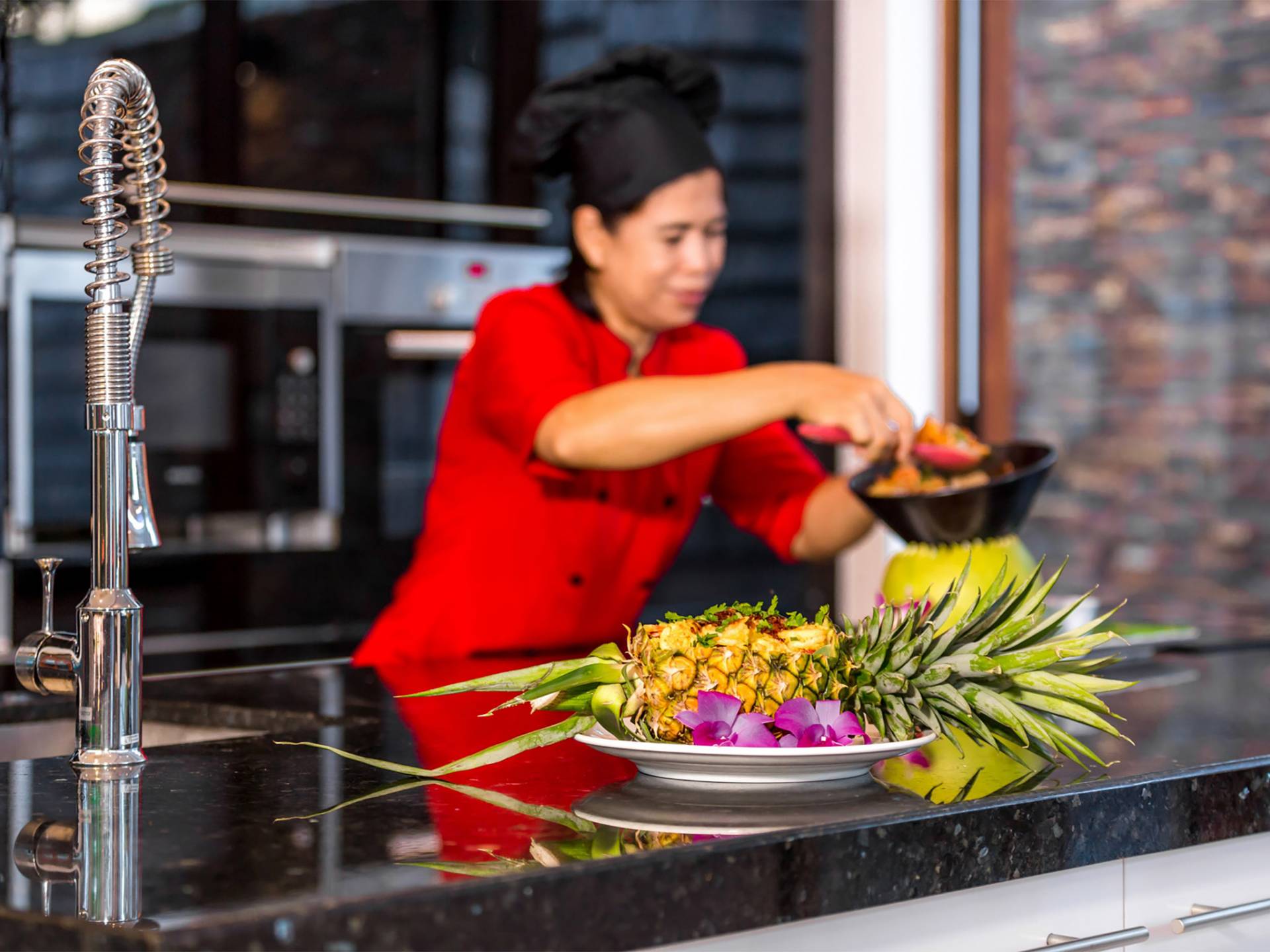 The villa’s contemporary with traditional Thai notes design tends to indulge your senses. Only the finest of fittings and furnishings have been used to decorate the luxury holiday rental. Thick mattresses and soft pillows have been placed in each comfortable bedroom to ensure the deepest and most restful sleep. Each element is a unique piece of art. Villa Chi Maenam Samui marks various independent living and dining areas, giving the guests the option of either indoor or beachside dining. Take advantage of the opportunity to taste the local delicacies. The staff will be serving you food and drinks, while the executive chef ensures each meal is uniquely delicious.