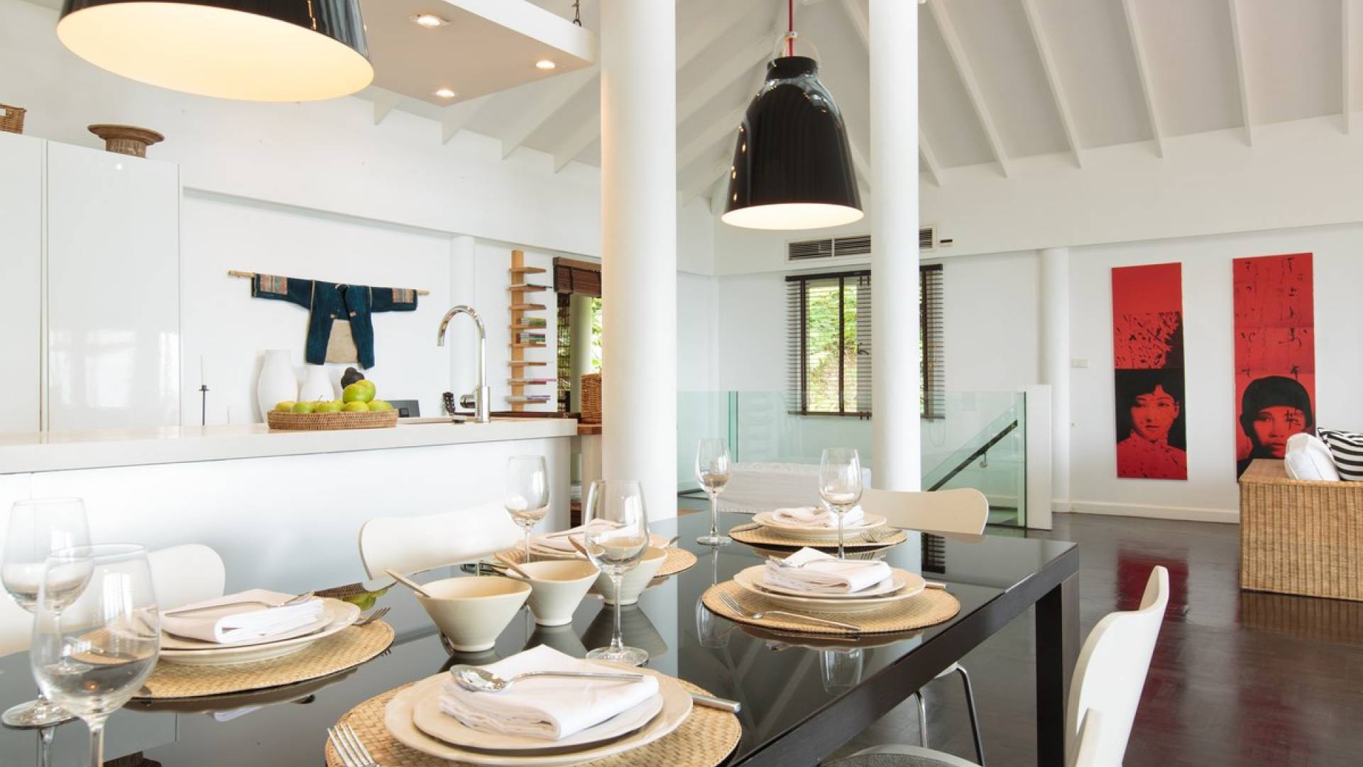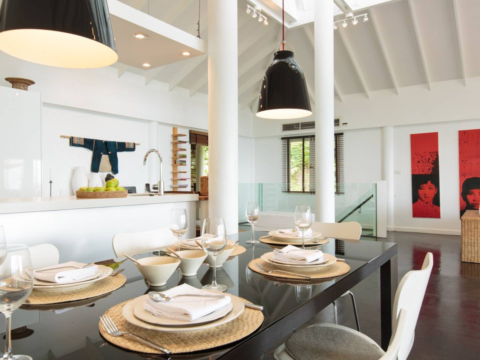 Baan Hansa Samui is a luxury villa rental with 5 bedrooms and a private pool. Situated on the southwest coast of the island, this custom-designed 5 bedroom luxury villa affords spectacular views of the Five Islands and their glorious sunsets as described in the New York Times Best Seller "1,000 Things To See Before You Die". Villa Baan Hansa is the ideal tropical retreat for those wanting to get away from it all while at the same time enjoying all of the 5-star hotel facilities and services at your doorstep. The imaginative layout of the property makes it the perfect haven for multiple families or large groups of friends.