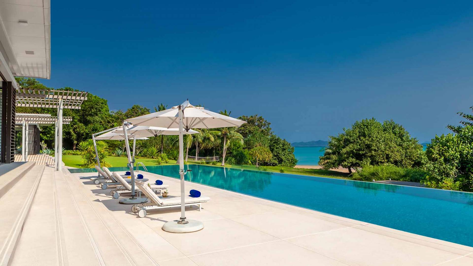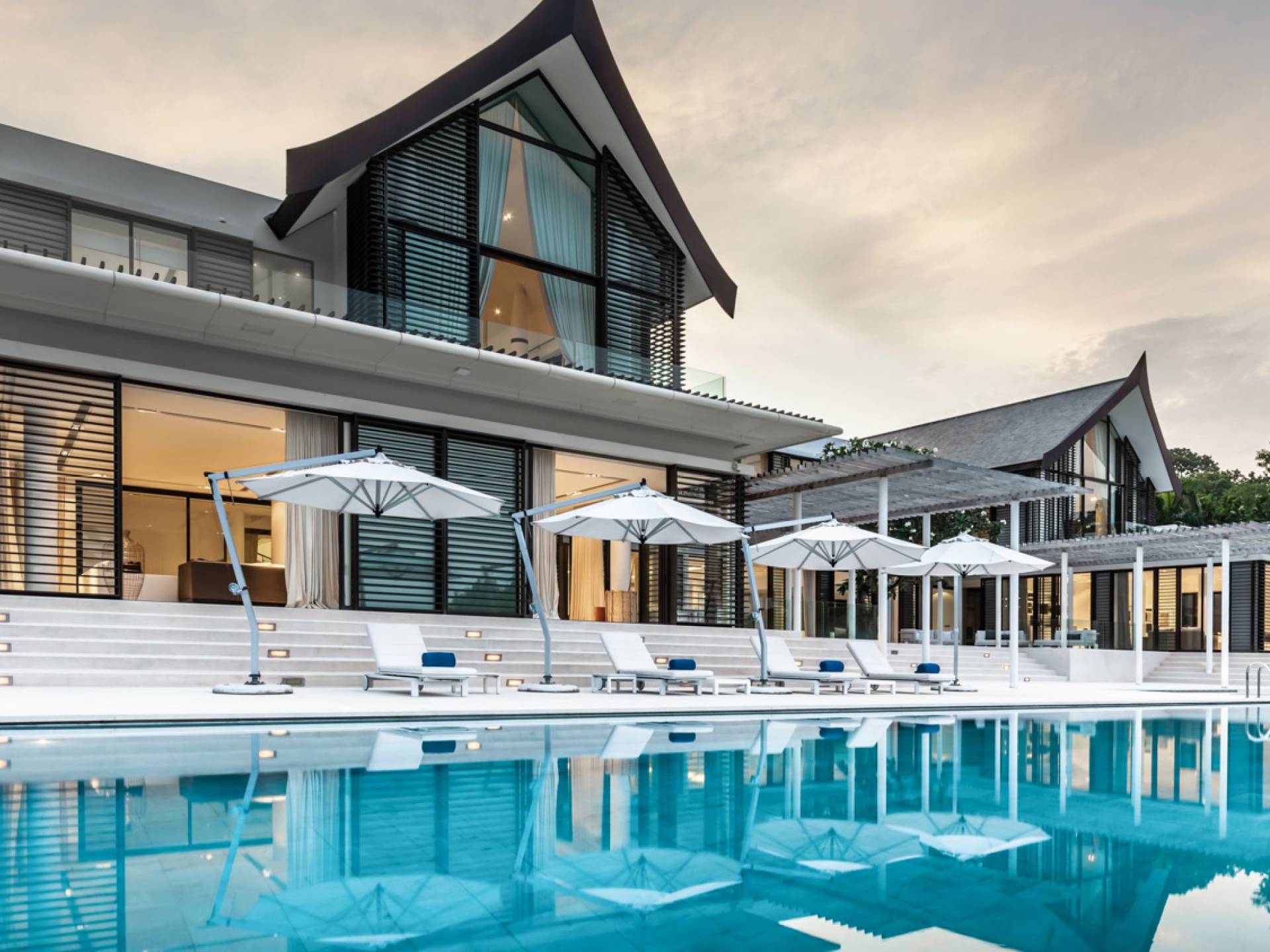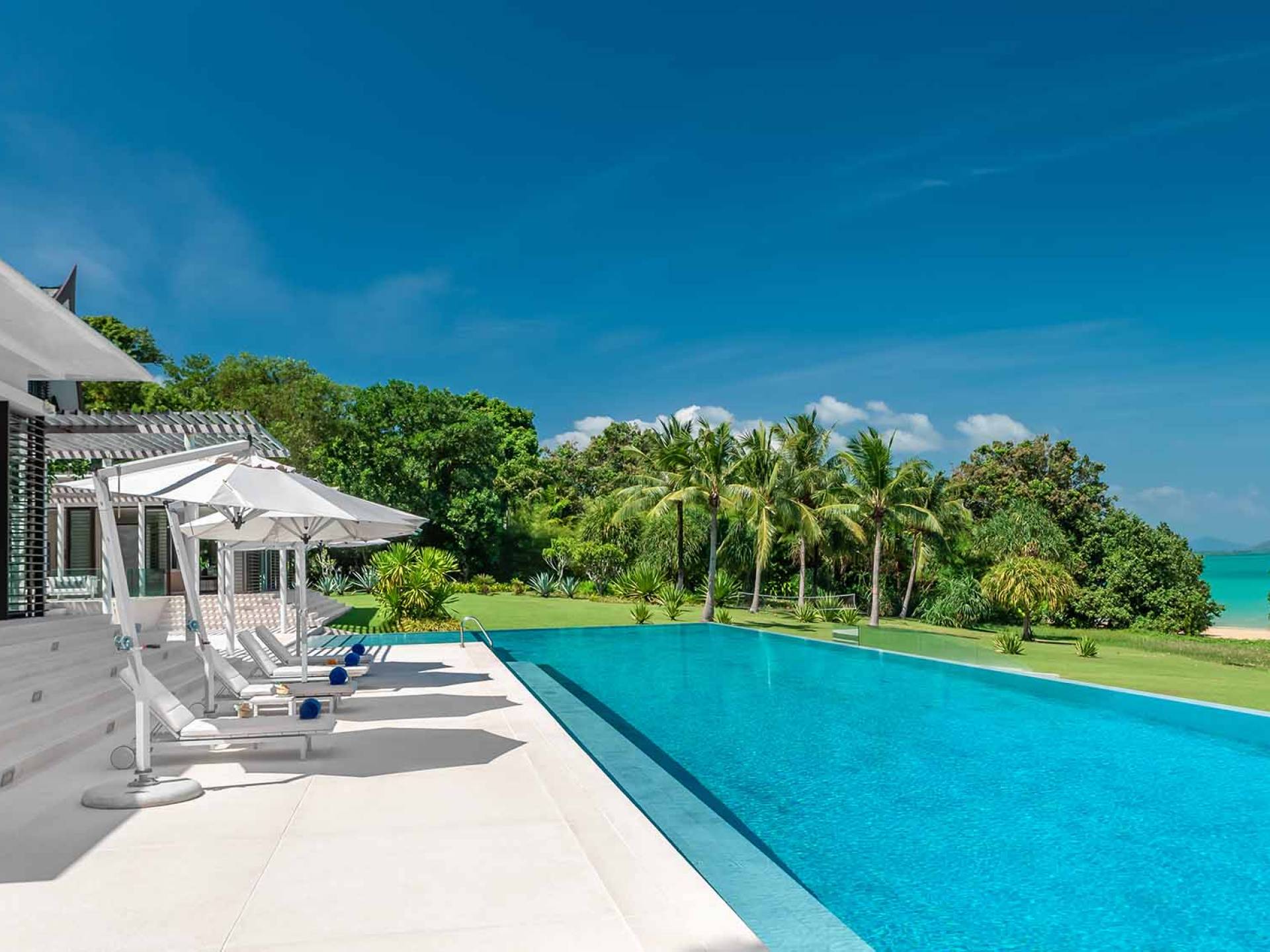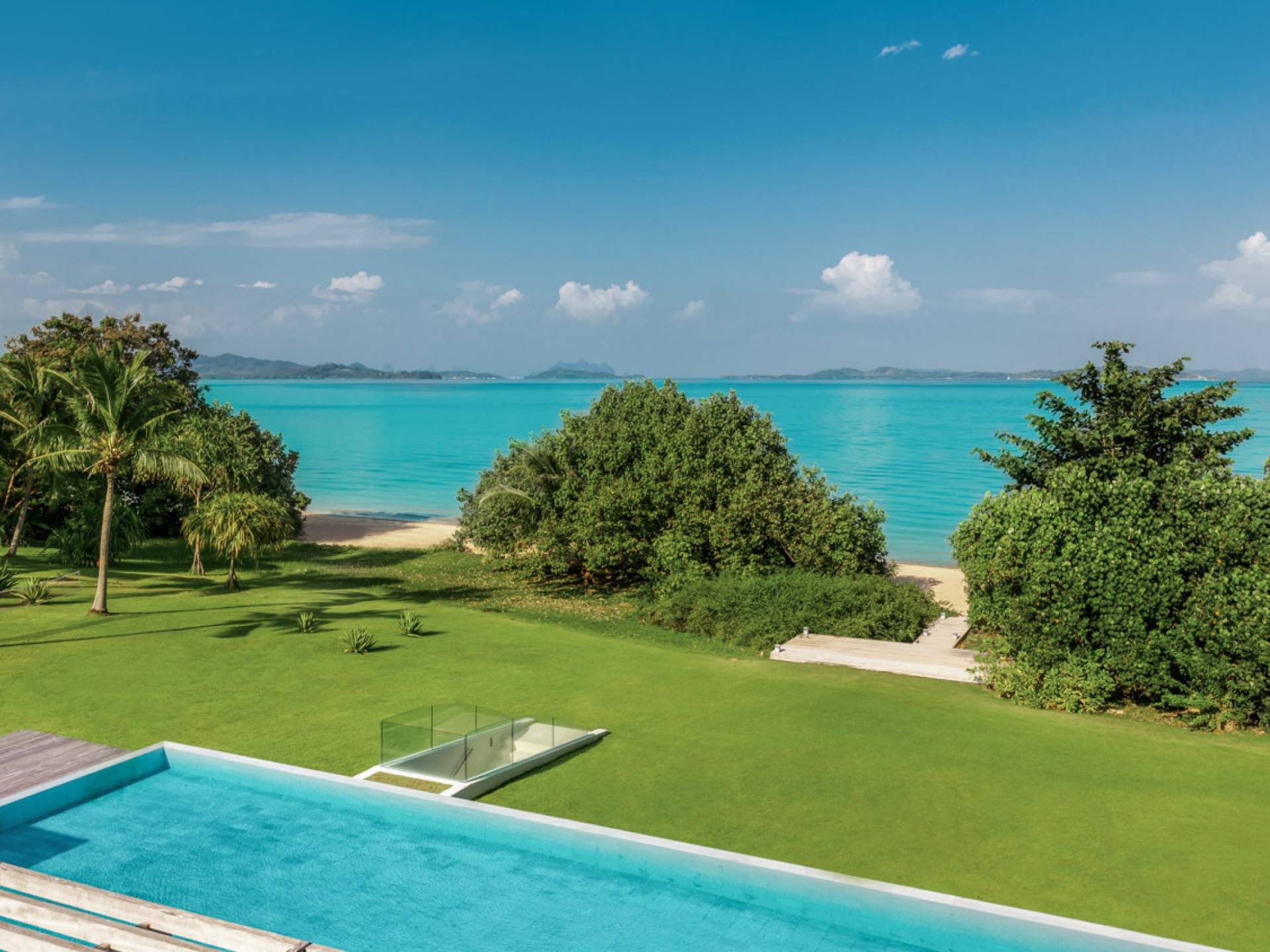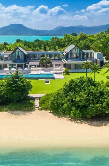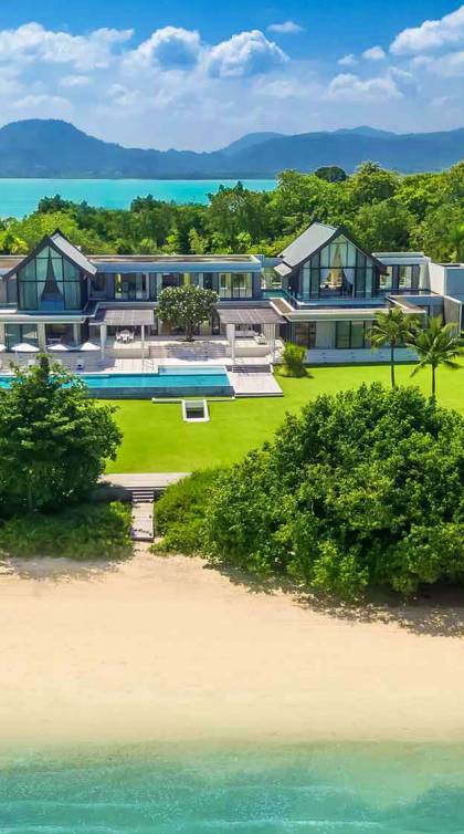 Six en-suite bedrooms, a high-standard kitchen, stare of an art movie theater room, and a gym with bay views, fully furnished and equipped with the highest standard furnishings, the villa offers a refreshing home experience. Take a stroll in the soft sands of this beachfront property, swim in the warm waters of the bay float in the infinity-edge swimming pool, get entertained or just relax in the inviting outdoor spaces surrounded by Thailand's most beautiful flora.