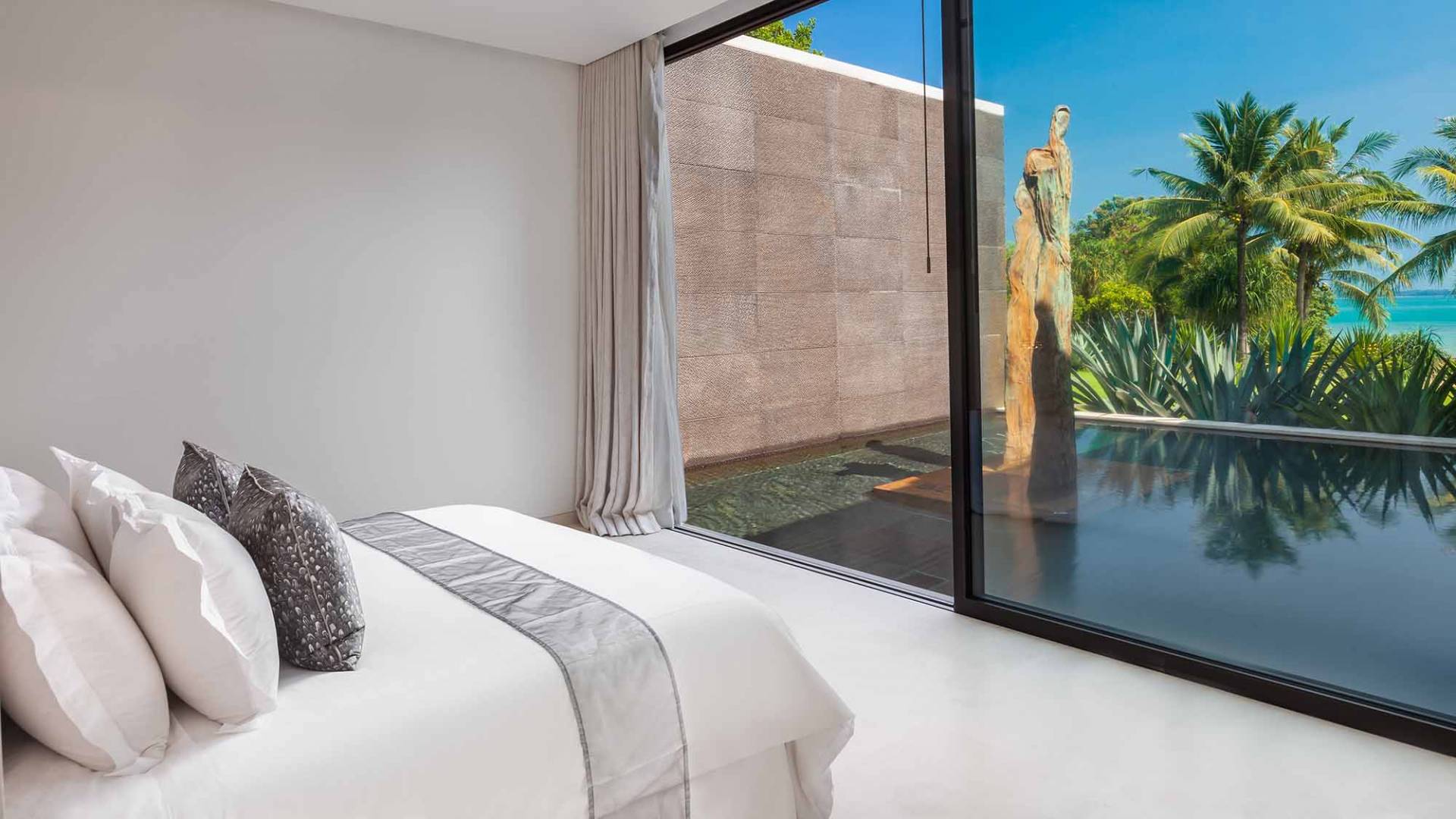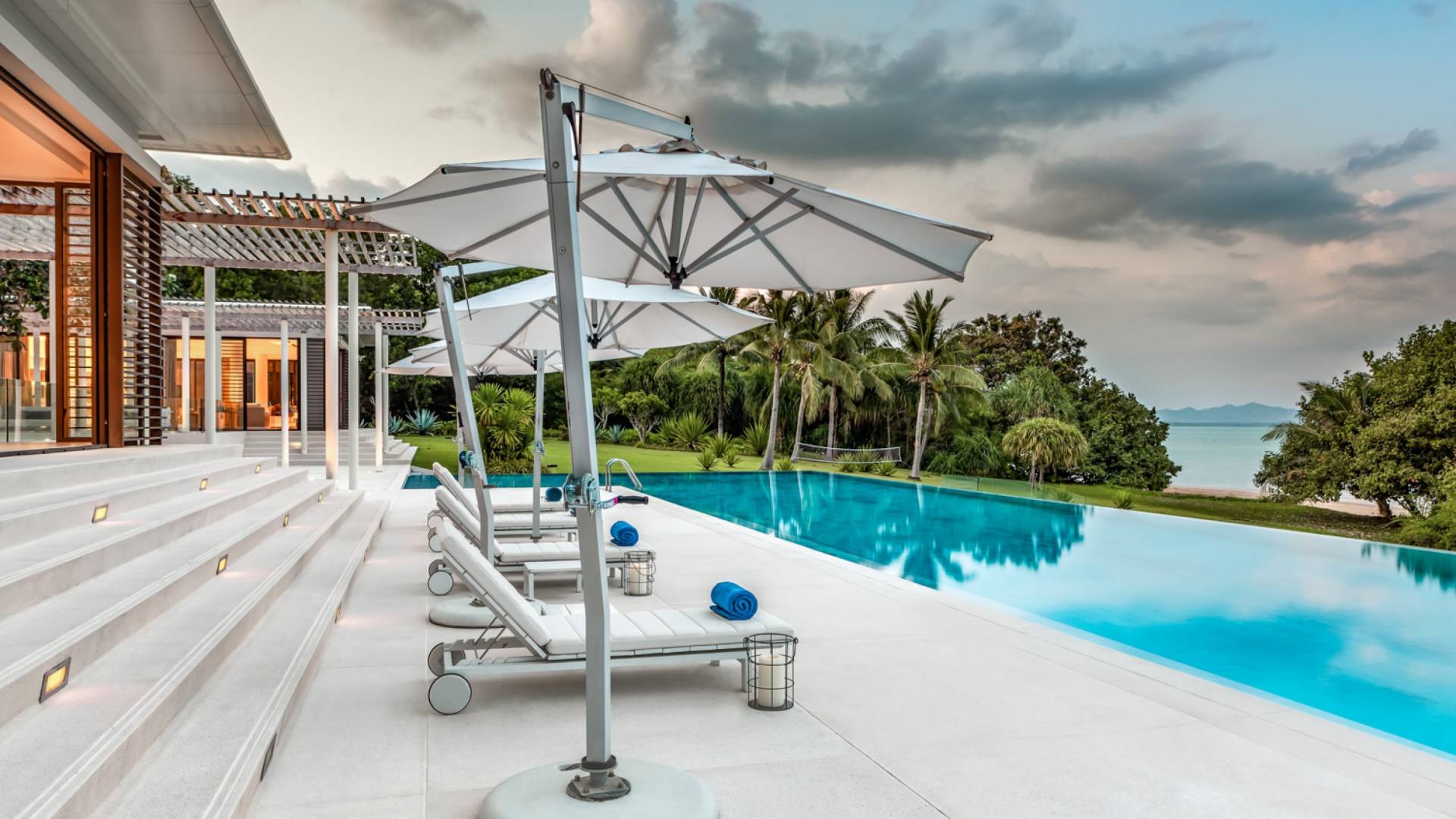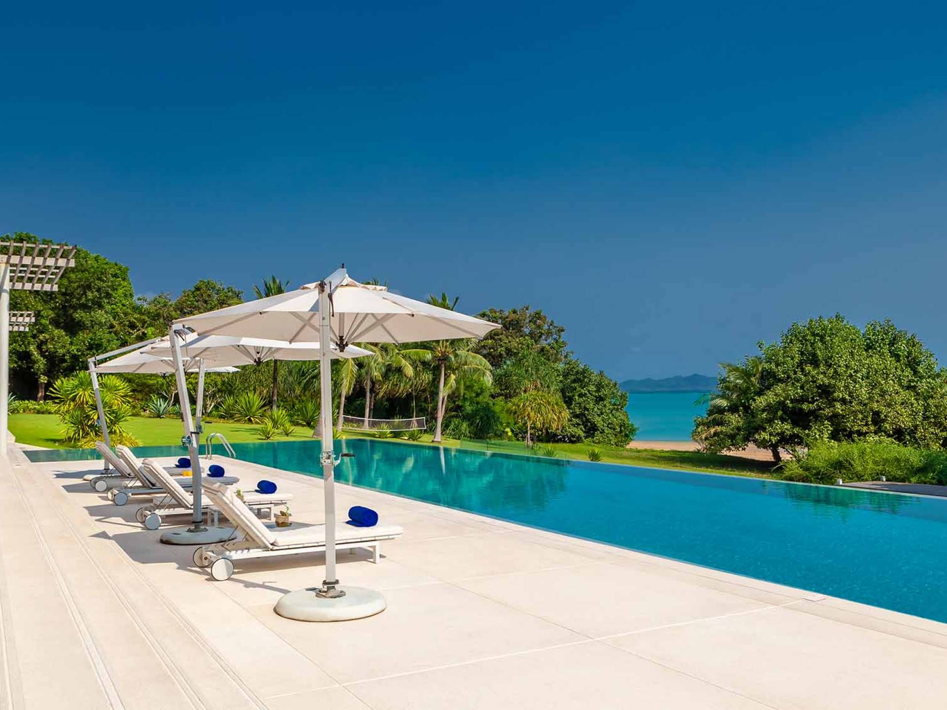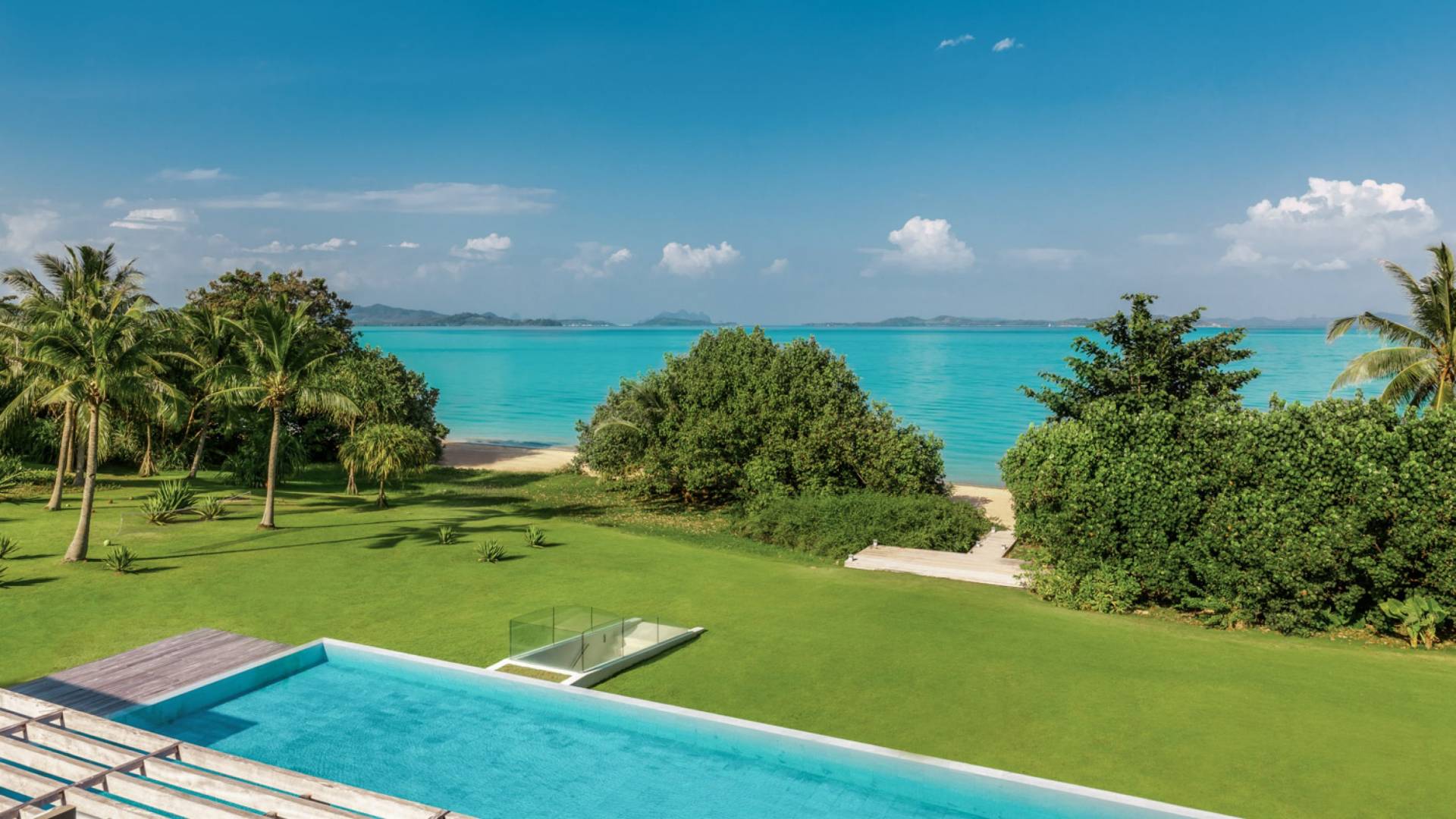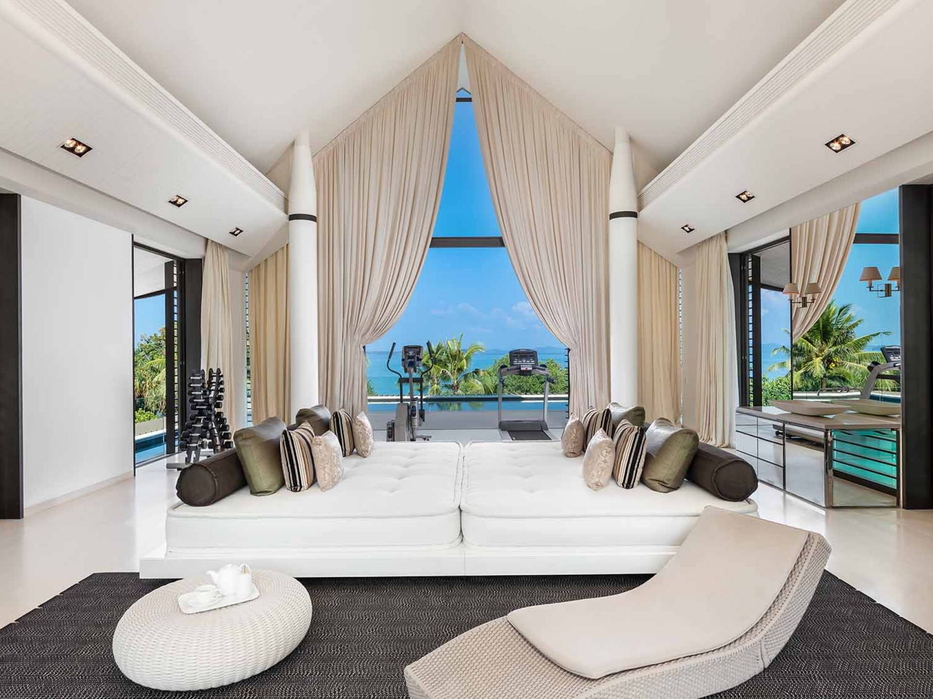 Six en-suite bedrooms, a high-standard kitchen, stare of an art movie theater room, and a gym with bay views, fully furnished and equipped with the highest standard furnishings, the villa offers a refreshing home experience. Take a stroll in the soft sands of this beachfront property, swim in the warm waters of the bay float in the infinity-edge swimming pool, get entertained or just relax in the inviting outdoor spaces surrounded by Thailand's most beautiful flora.