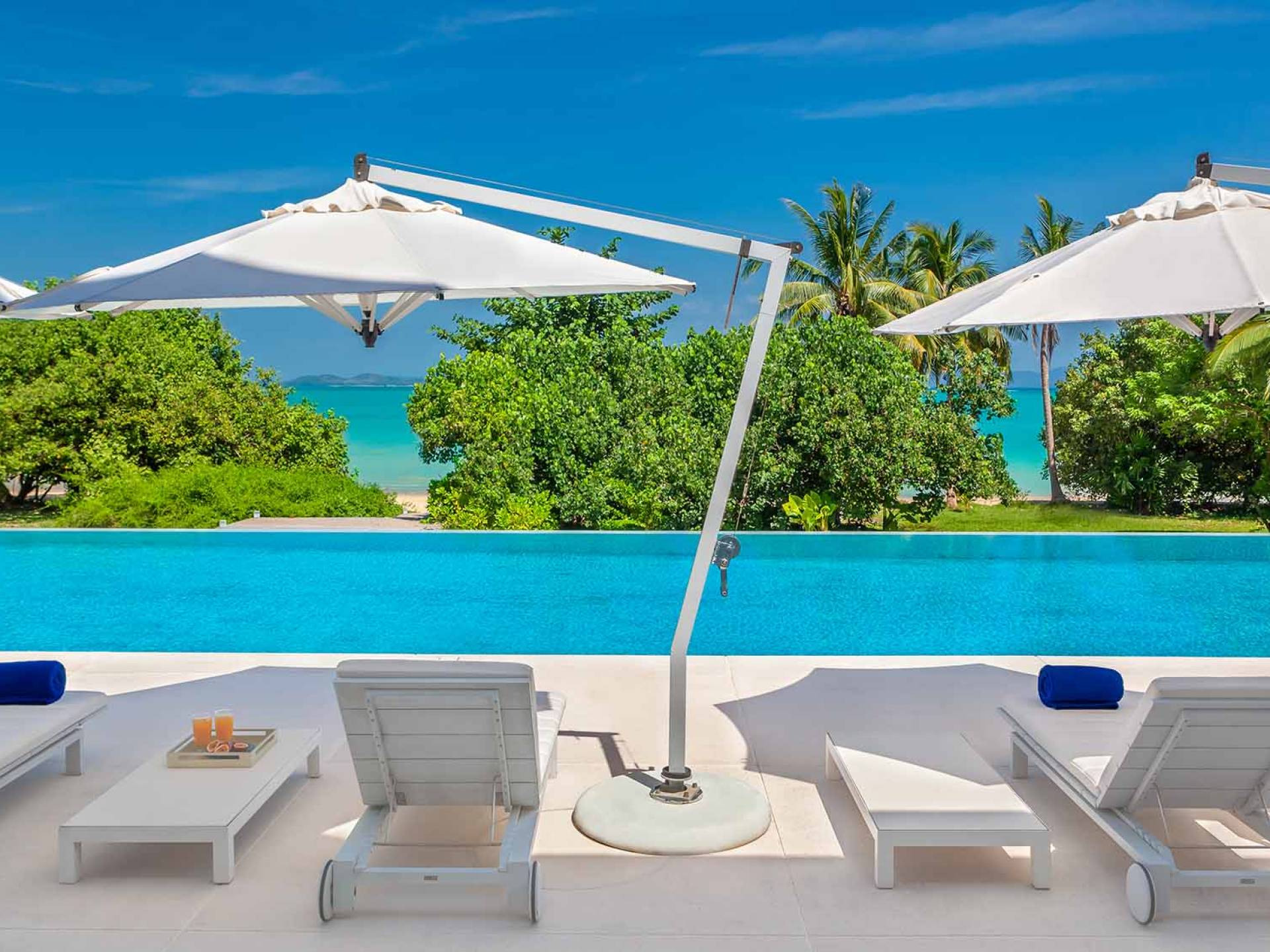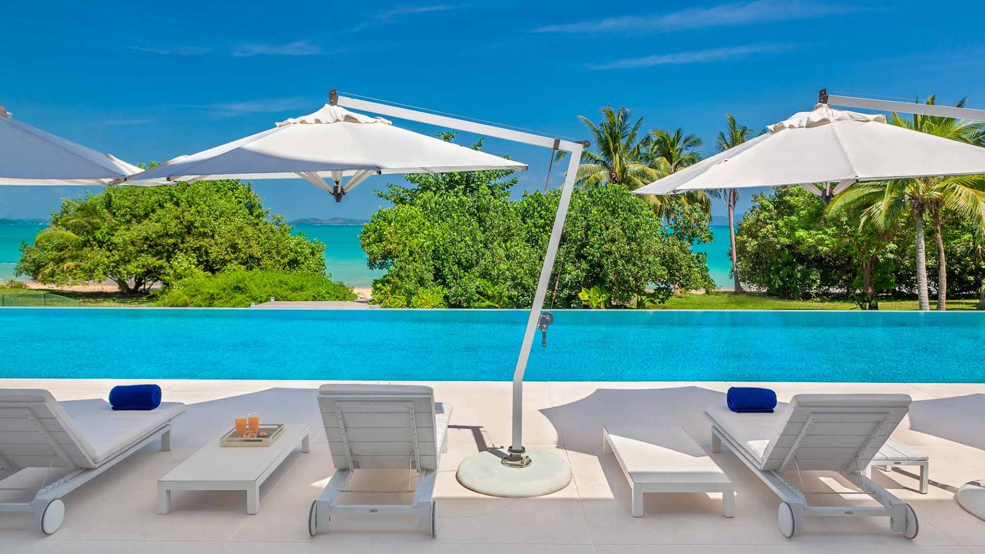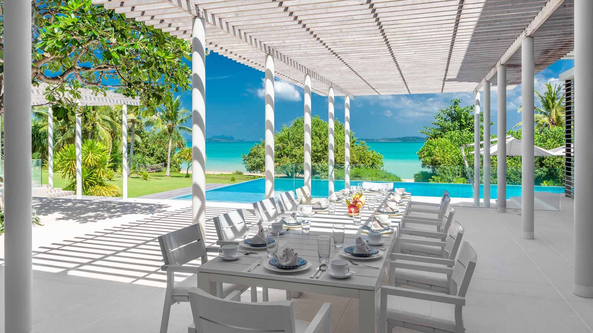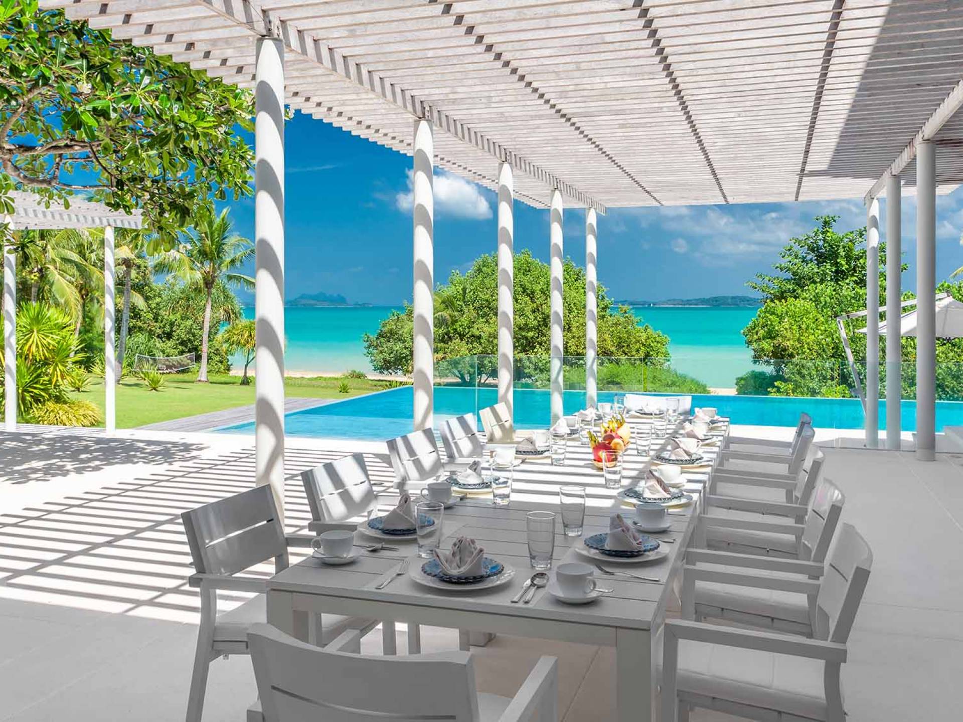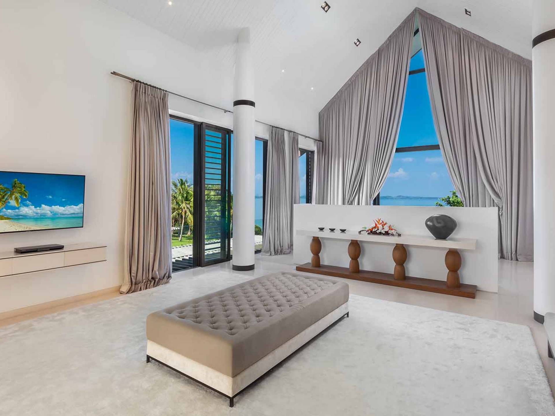 Six en-suite bedrooms, a high-standard kitchen, stare of an art movie theater room, and a gym with bay views, fully furnished and equipped with the highest standard furnishings, the villa offers a refreshing home experience. Take a stroll in the soft sands of this beachfront property, swim in the warm waters of the bay float in the infinity-edge swimming pool, get entertained or just relax in the inviting outdoor spaces surrounded by Thailand's most beautiful flora.