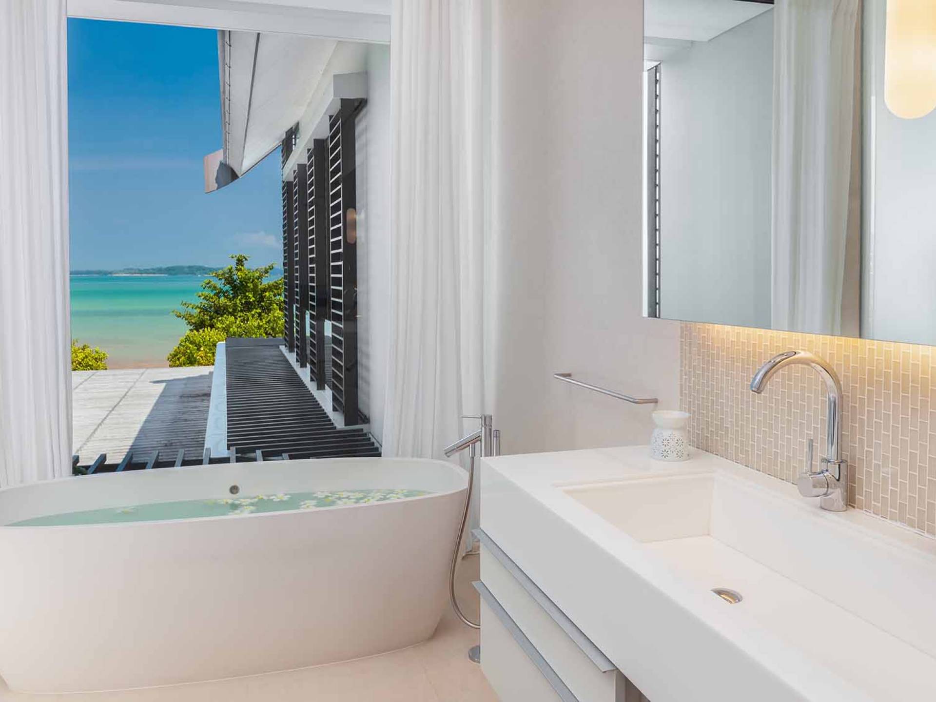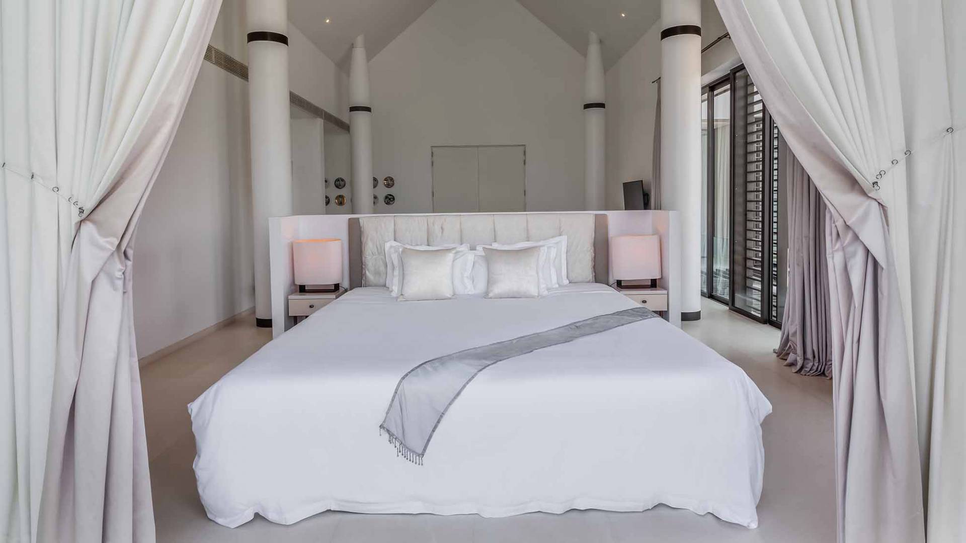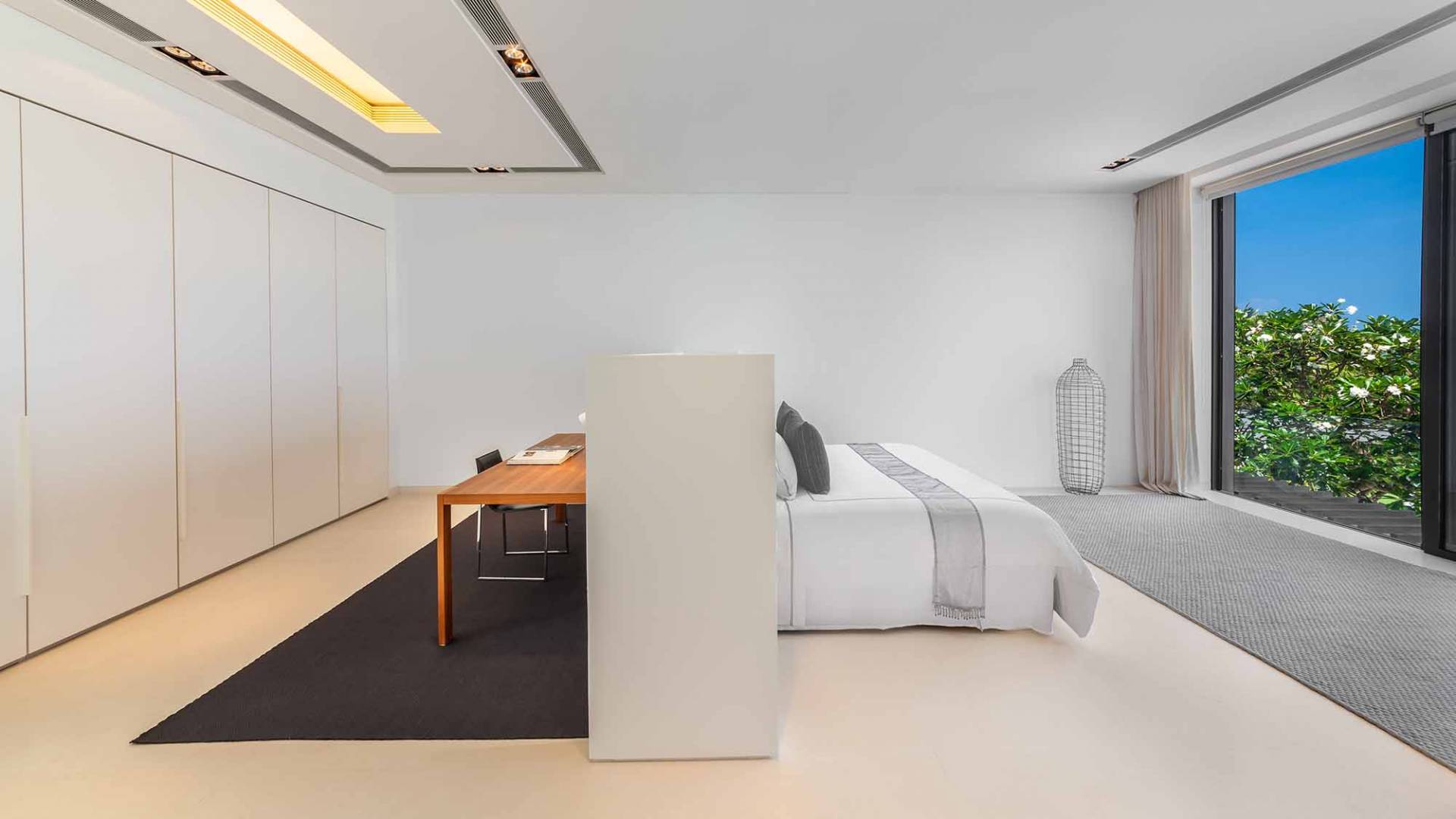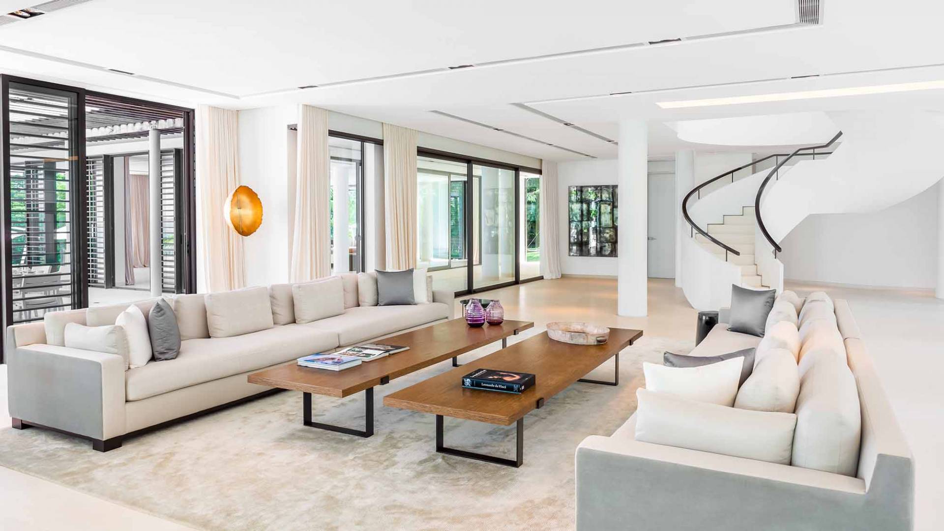 Villa Verai Phuket is a modern masterpiece with 4,500 square meters of indoor and outdoor living accommodations in the exclusive gated community of Cape Yamu. Designed by internationally renowned interior designer Deborah Oppenheimer, the mastermind behind harmonious interior spaces. From the entrance to the double-height atrium and every style detail, there is a sense of being able to breathe and stretch out in Villa Verai’s minimalist, wide-open spaces. At the same time, dramatic design details create a distinctly cool, designer feel. White interiors are touched with black in a contemporary style to give Villa Verai a light, airy atmosphere with plenty of natural light. A sweeping spiral staircase adds drama, whilst the upper-level glass-bottomed pond adds a fun, James Bondesque touch. Every room seems to boast a day-bed or ottoman-style seating to inspire true relaxation. Meanwhile, the living-room bathroom has a sensual boudoir style whilst en-suites, with freestanding tubs and picturesque views have a spa, star quality.