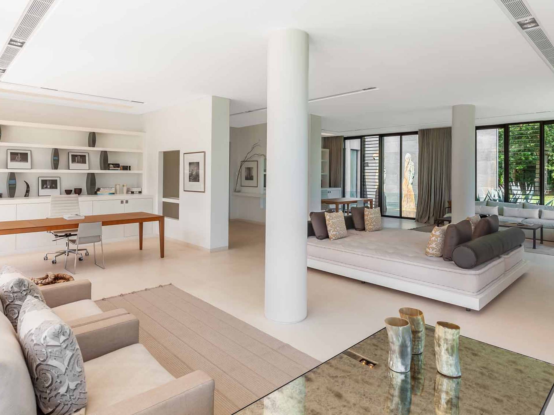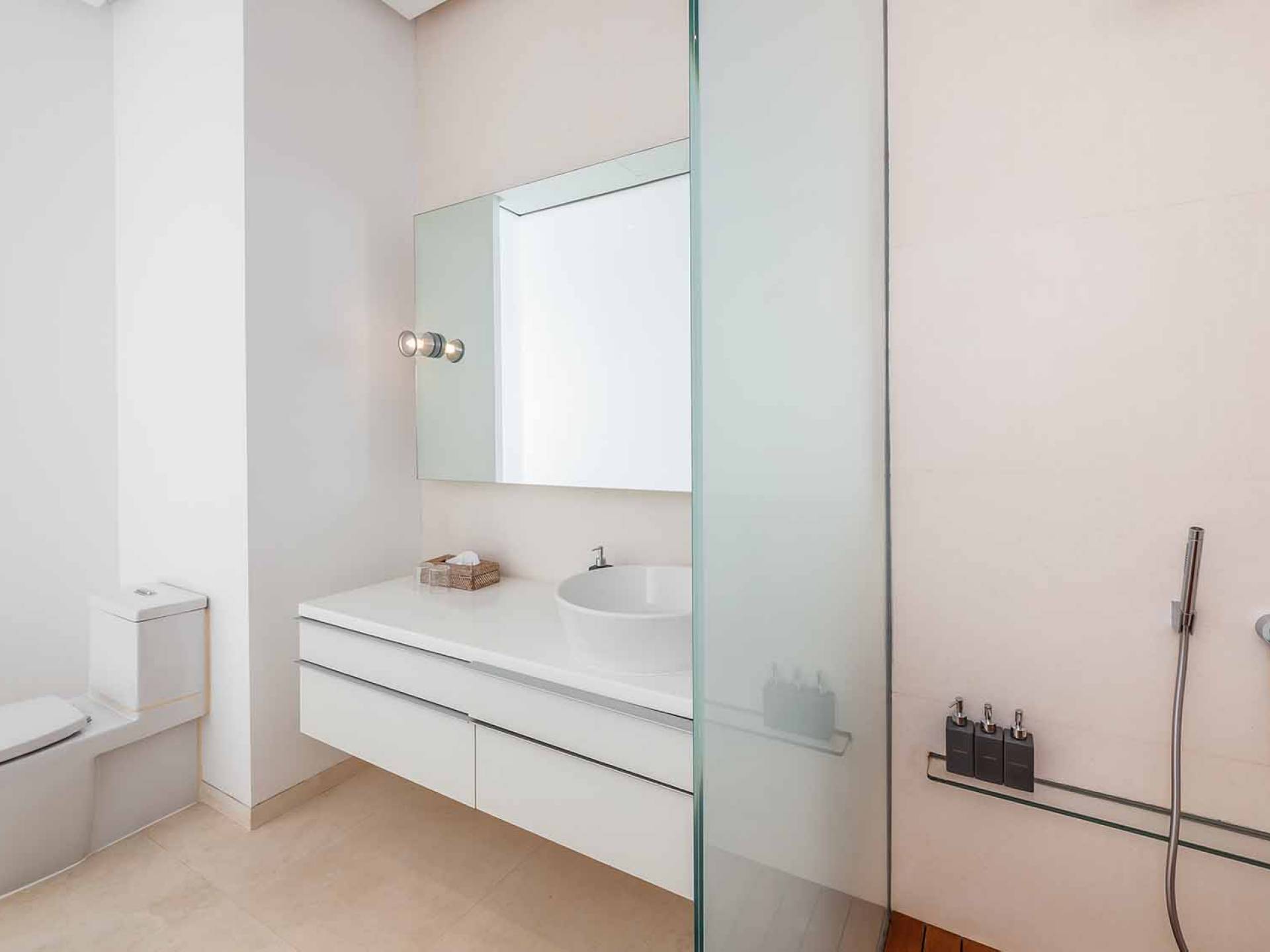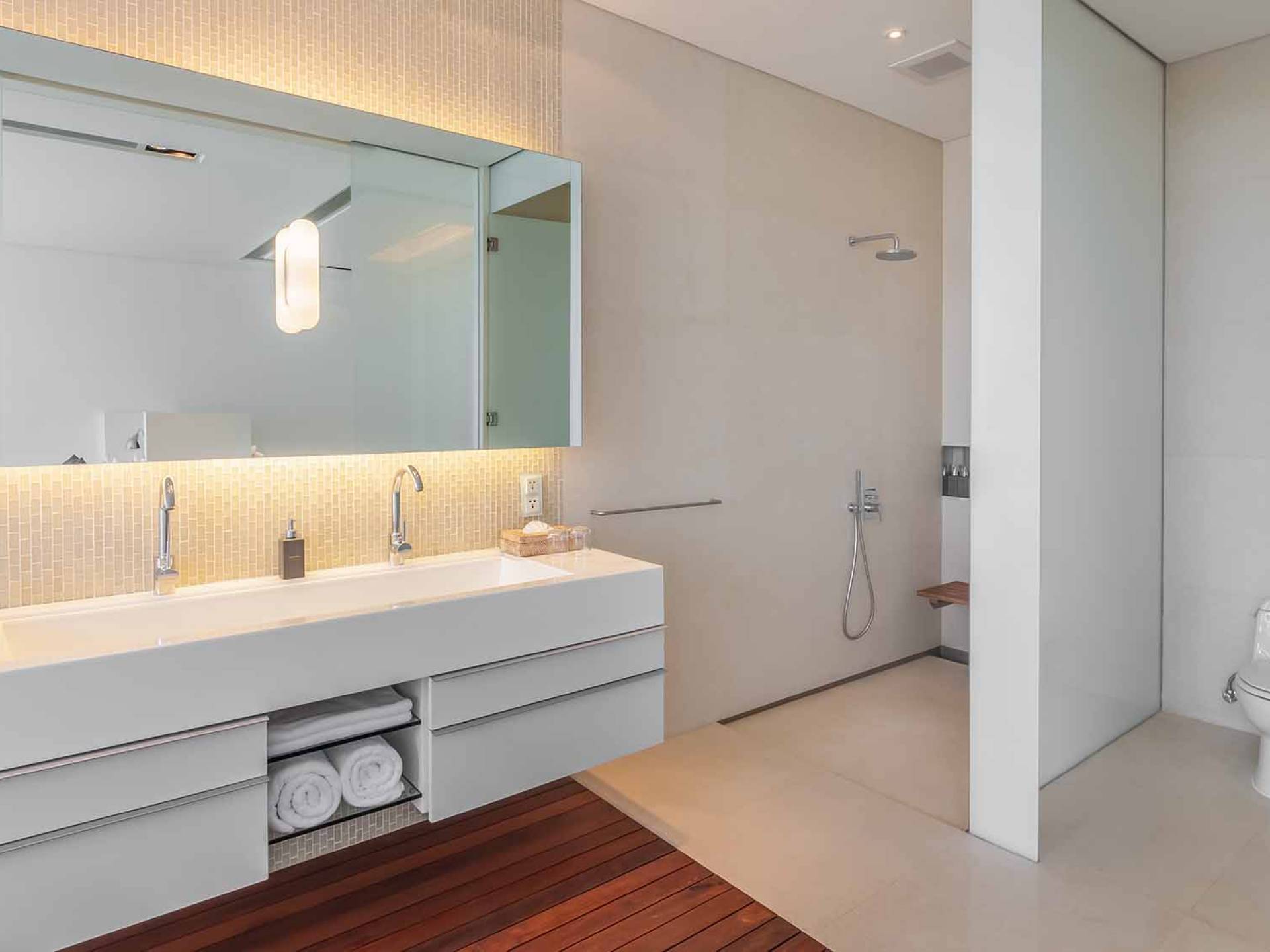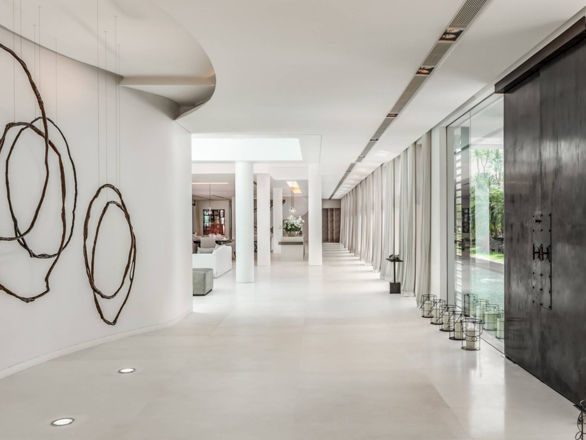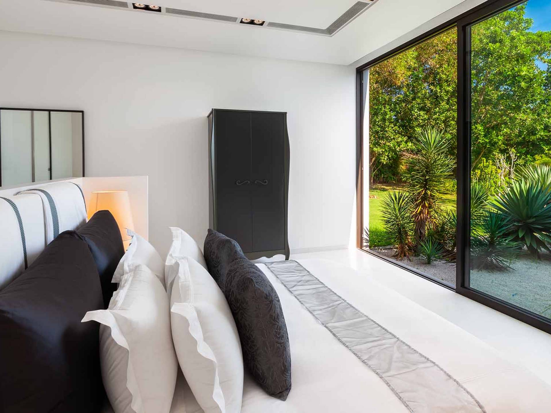 Villa Verai Phuket is a modern masterpiece with 4,500 square meters of indoor and outdoor living accommodations in the exclusive gated community of Cape Yamu. Designed by internationally renowned interior designer Deborah Oppenheimer, the mastermind behind harmonious interior spaces. From the entrance to the double-height atrium and every style detail, there is a sense of being able to breathe and stretch out in Villa Verai’s minimalist, wide-open spaces. At the same time, dramatic design details create a distinctly cool, designer feel. White interiors are touched with black in a contemporary style to give Villa Verai a light, airy atmosphere with plenty of natural light. A sweeping spiral staircase adds drama, whilst the upper-level glass-bottomed pond adds a fun, James Bondesque touch. Every room seems to boast a day-bed or ottoman-style seating to inspire true relaxation. Meanwhile, the living-room bathroom has a sensual boudoir style whilst en-suites, with freestanding tubs and picturesque views have a spa, star quality.