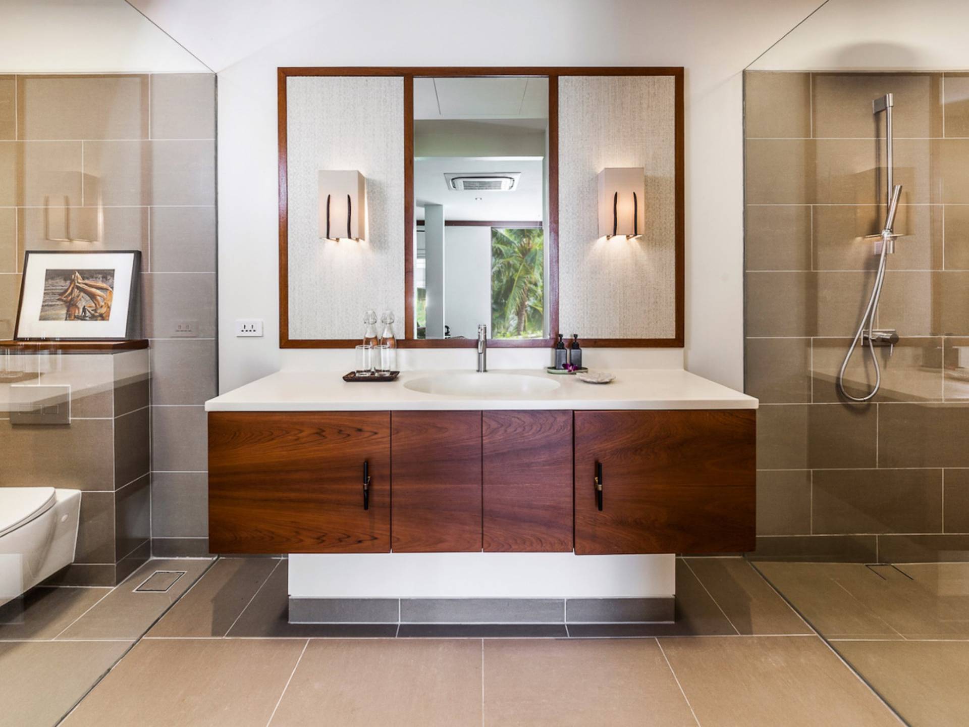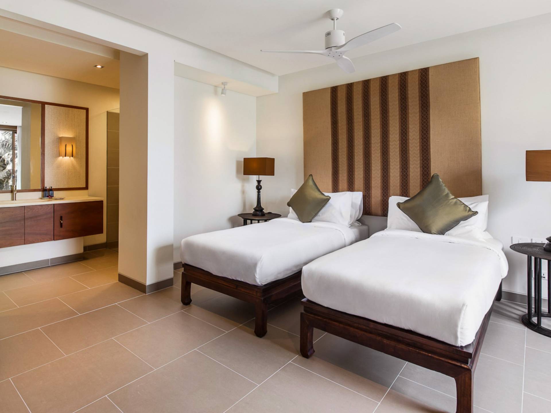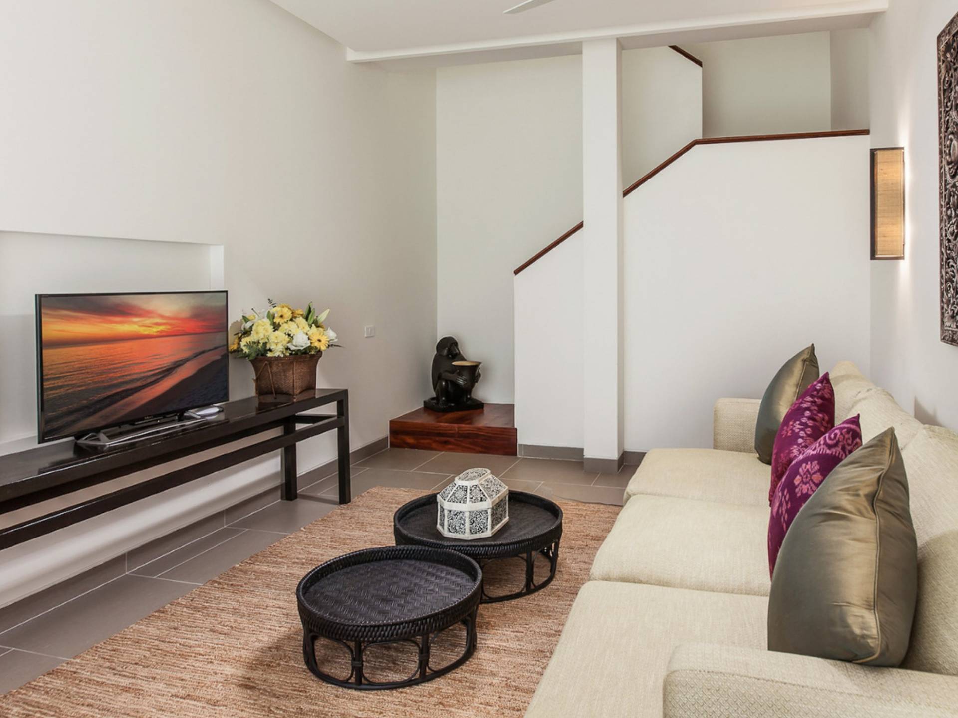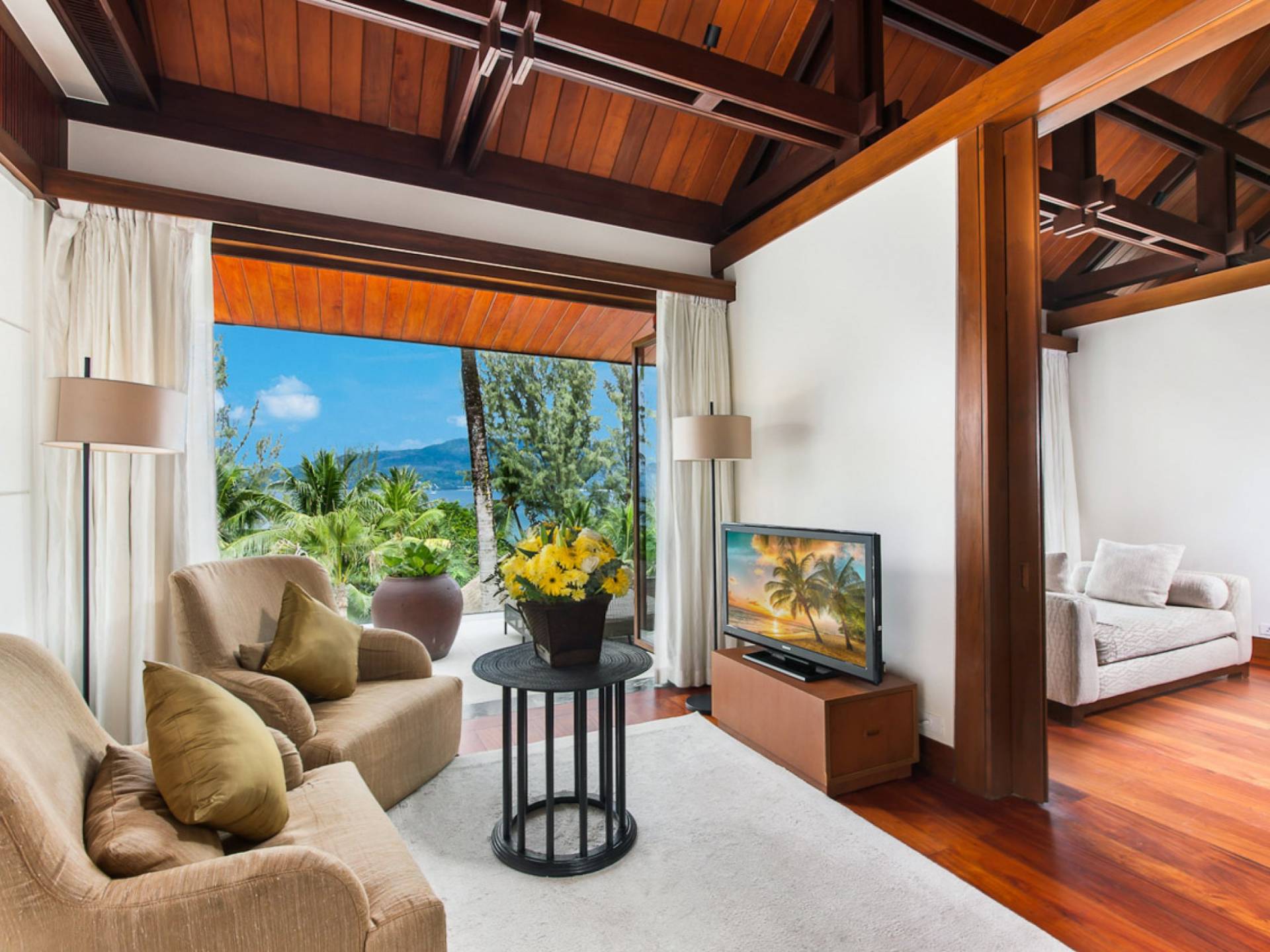 Analaya villa’s highlight is definitely its beautiful zero-edge infinity pool. Facing the Andaman Sea and embraced by palm trees and other tropical trees, swimming at the pool will make you feel like you’re smack in the middle of nature. Around the pool are plenty of sun loungers, a comfortable outdoor sala, as well as an alfresco dining area. Manicured, tropical gardens surround the pool area, where a large trampoline is placed for both kids and adults to have fun with.