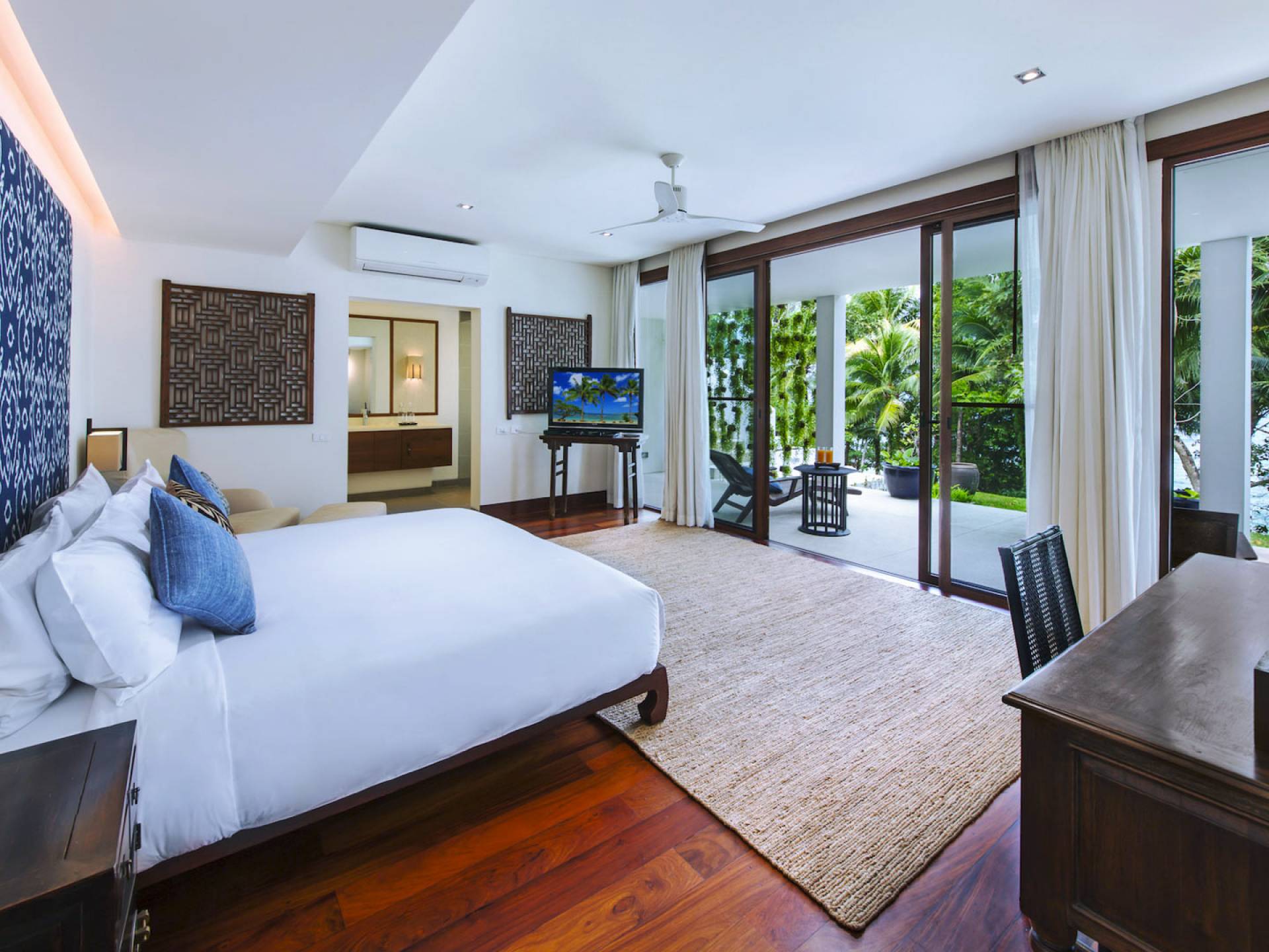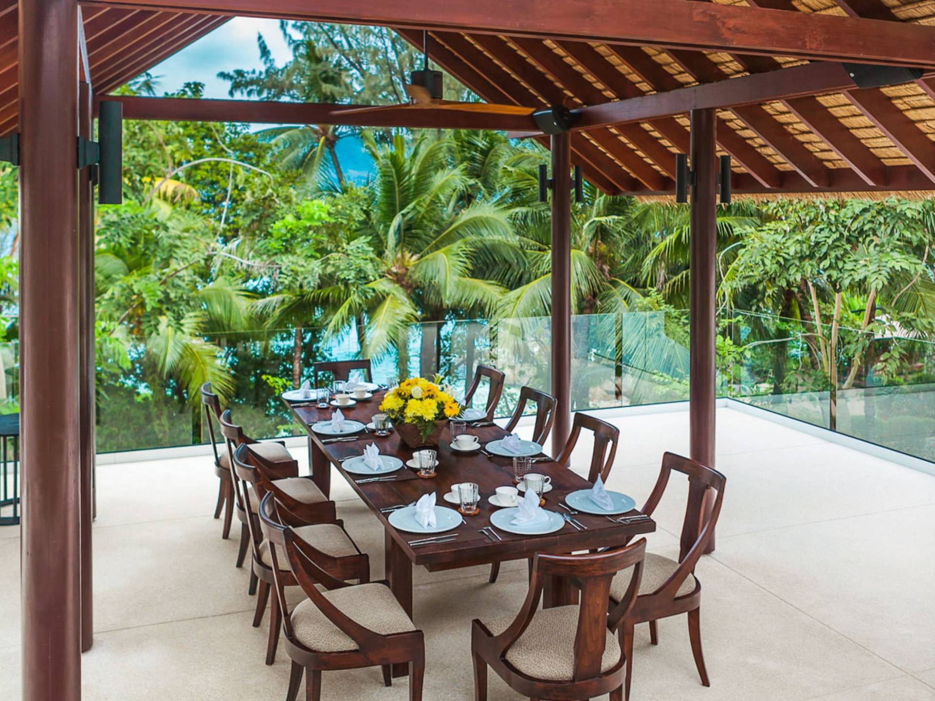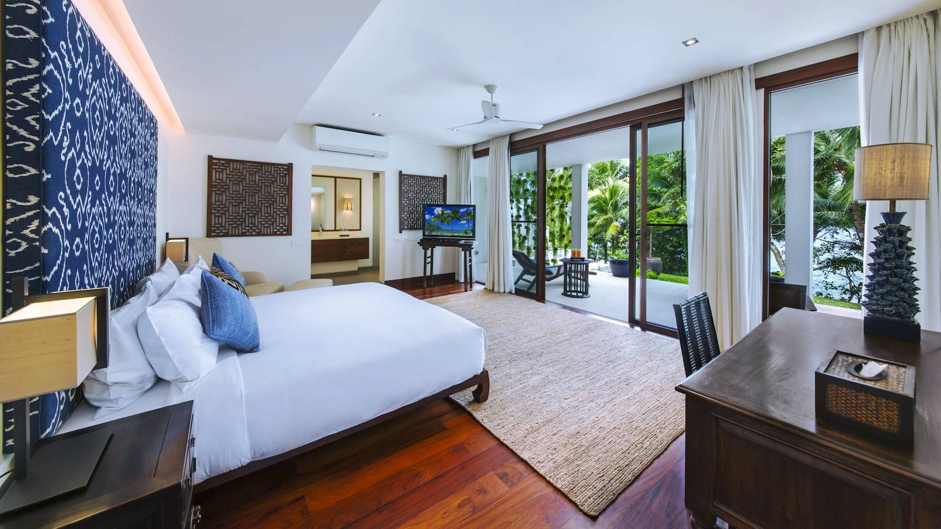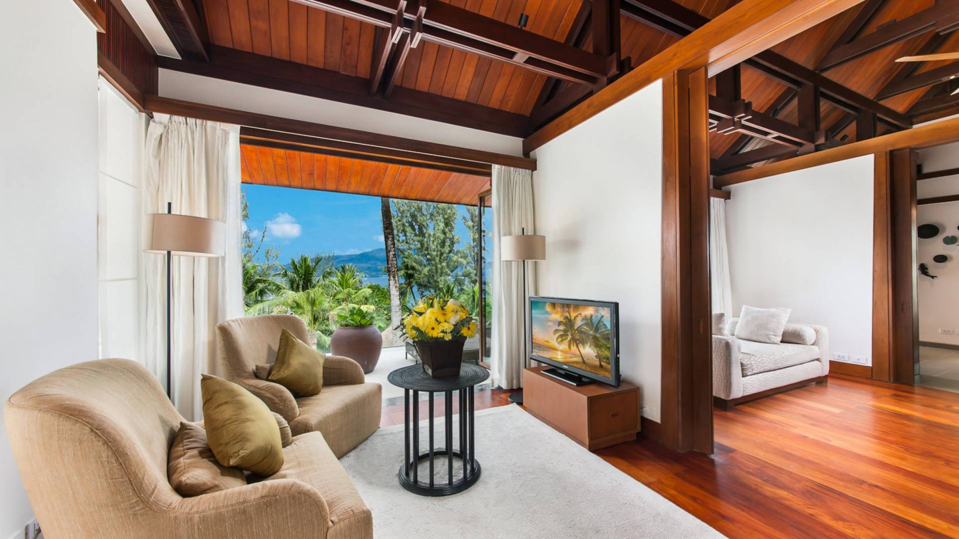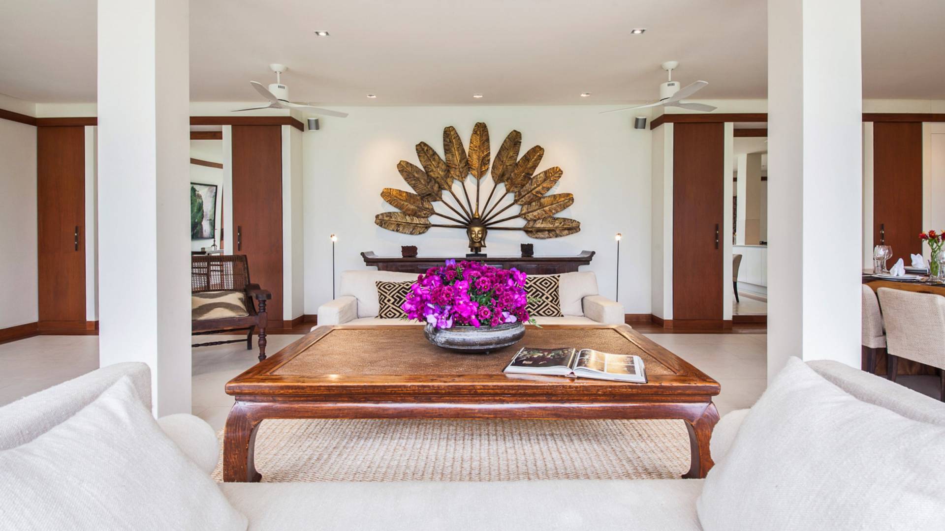 Villa Analaya Phuket is perched on a headland, with 5 individual pavilions housing the property’s massive 6 bedrooms, all equipped with immaculate furnishings, ensuite bathrooms with bathtubs, and large glass doors and windows that frame breathtaking ocean views. Facing the Andaman Sea, you’ve got endless views of the blue sky and crystal, blue waters of the famous Phuket coast. The villa pays homage to traditional Thai architectural details with a dominant contemporary aesthetic. Large, open spaces welcome bright natural light, and the use of floor-to-ceiling glass sliding doors on the living areas and bedrooms allow guests to have an open-air experience welcoming the cool breeze that the lush forest that surrounds brings.