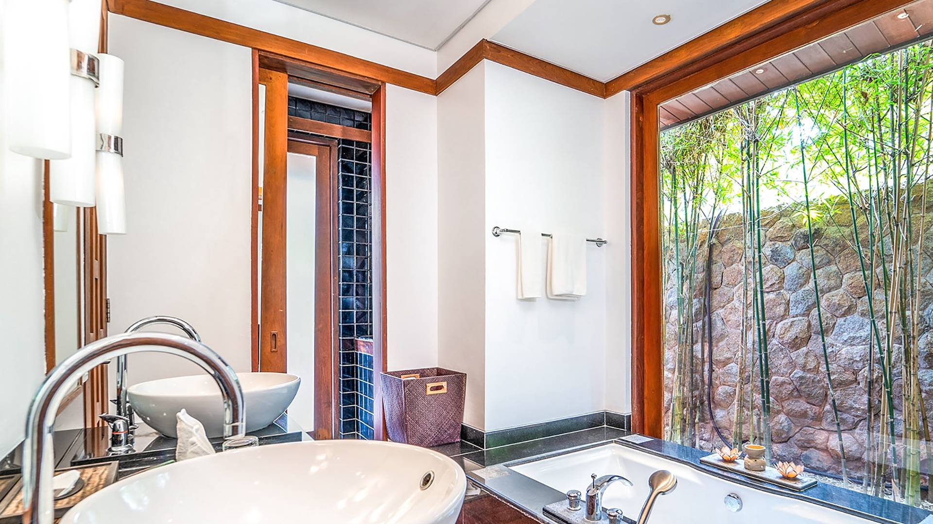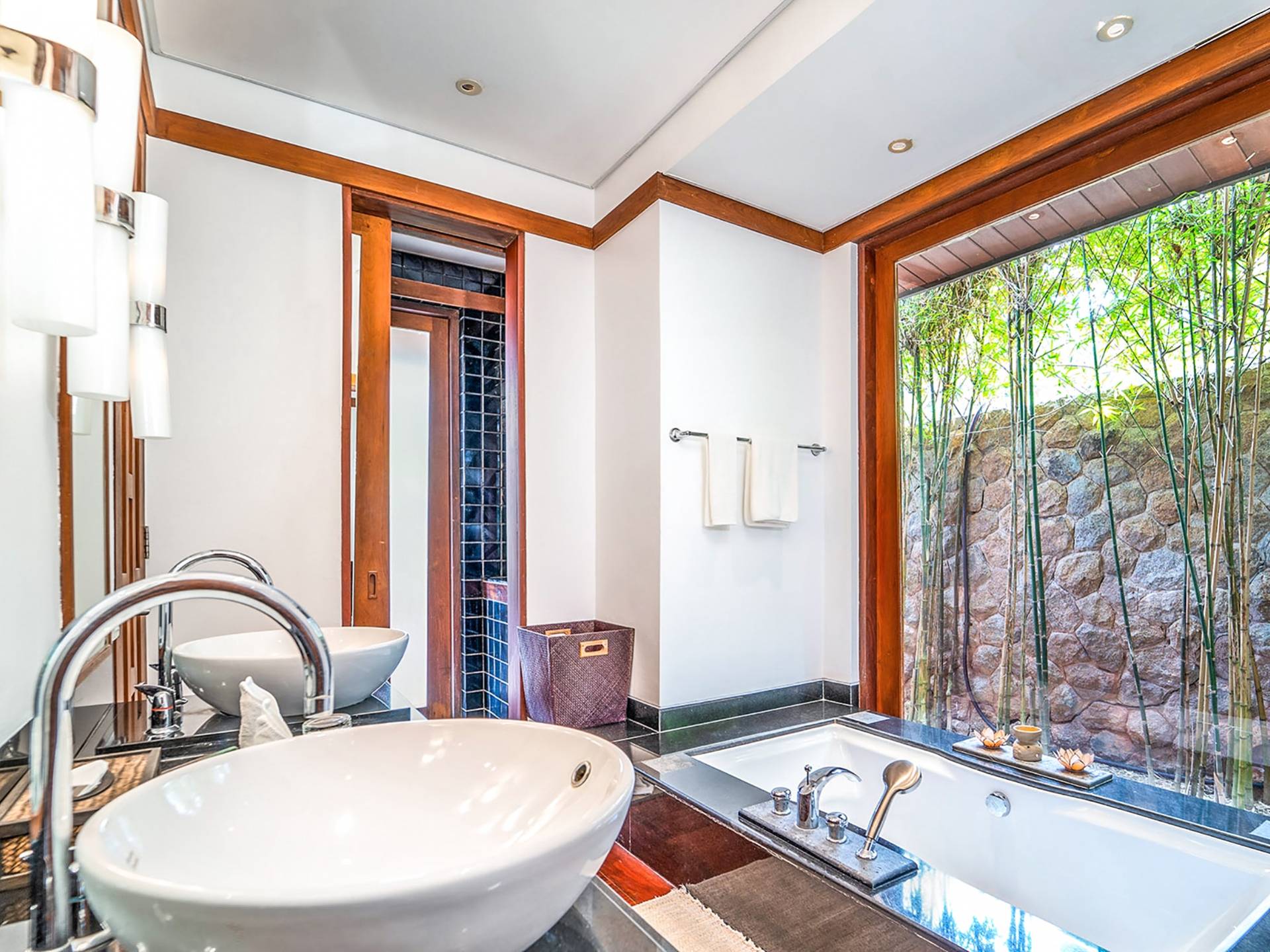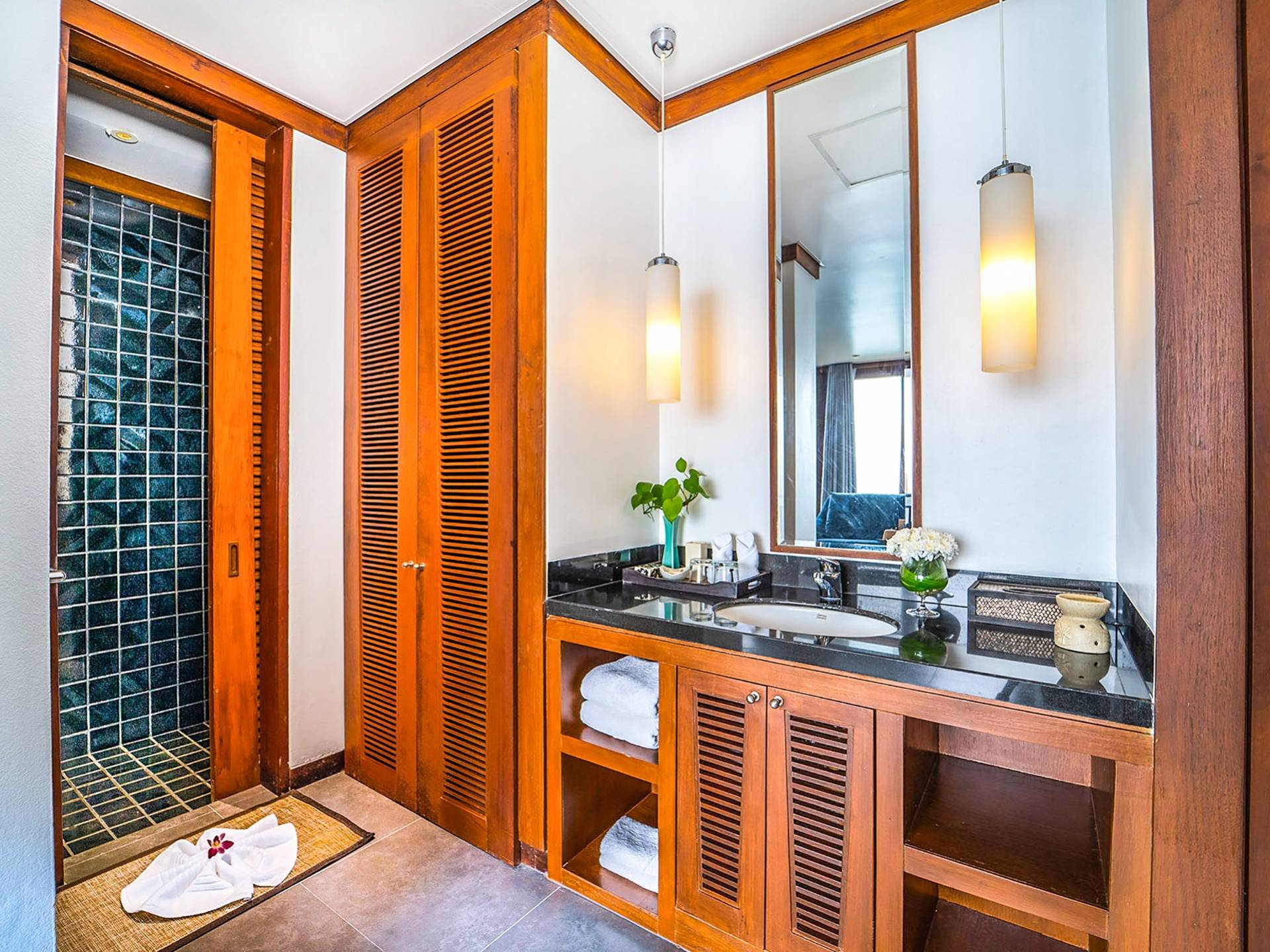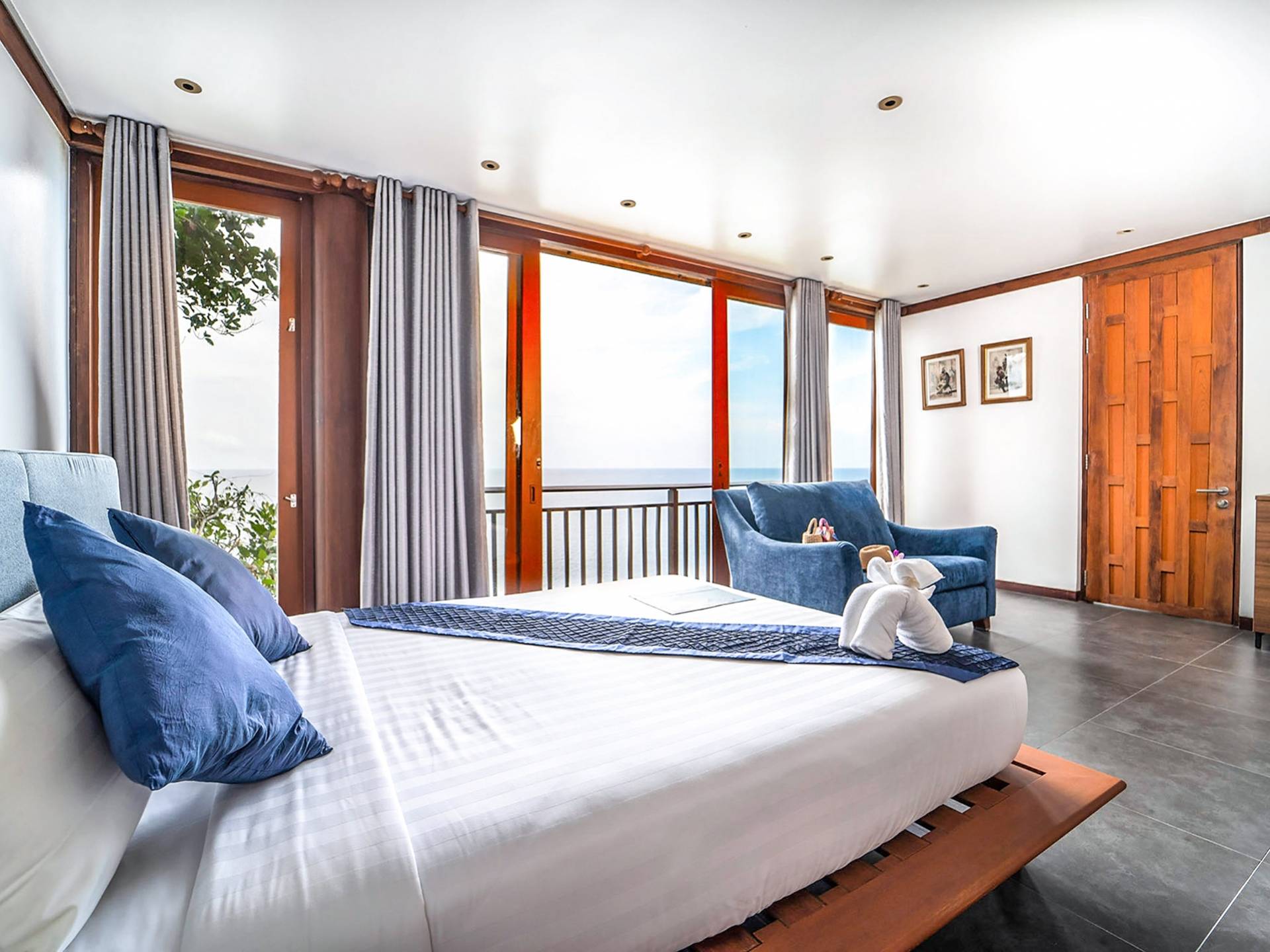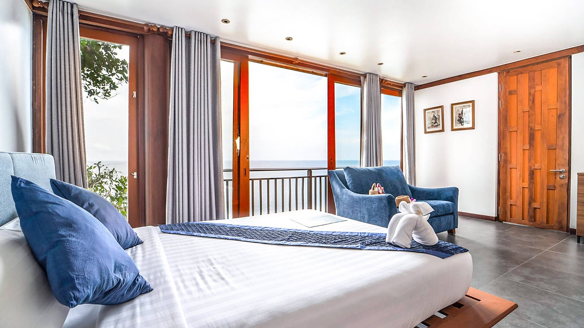 The villa follows a classic Thai design with four stand-alone pavilions, a mix of open-plan living spaces, and private bedrooms, each one embracing the sea views. Brimming with character, it features pitched-roofs, floor-to-ceiling windows, and polished hardwood floors, making it a spectacular paradise retreat. The villa is decorated throughout with a unique collection of beautiful antique furniture, Asian art and artifacts, and intricate wood carvings.