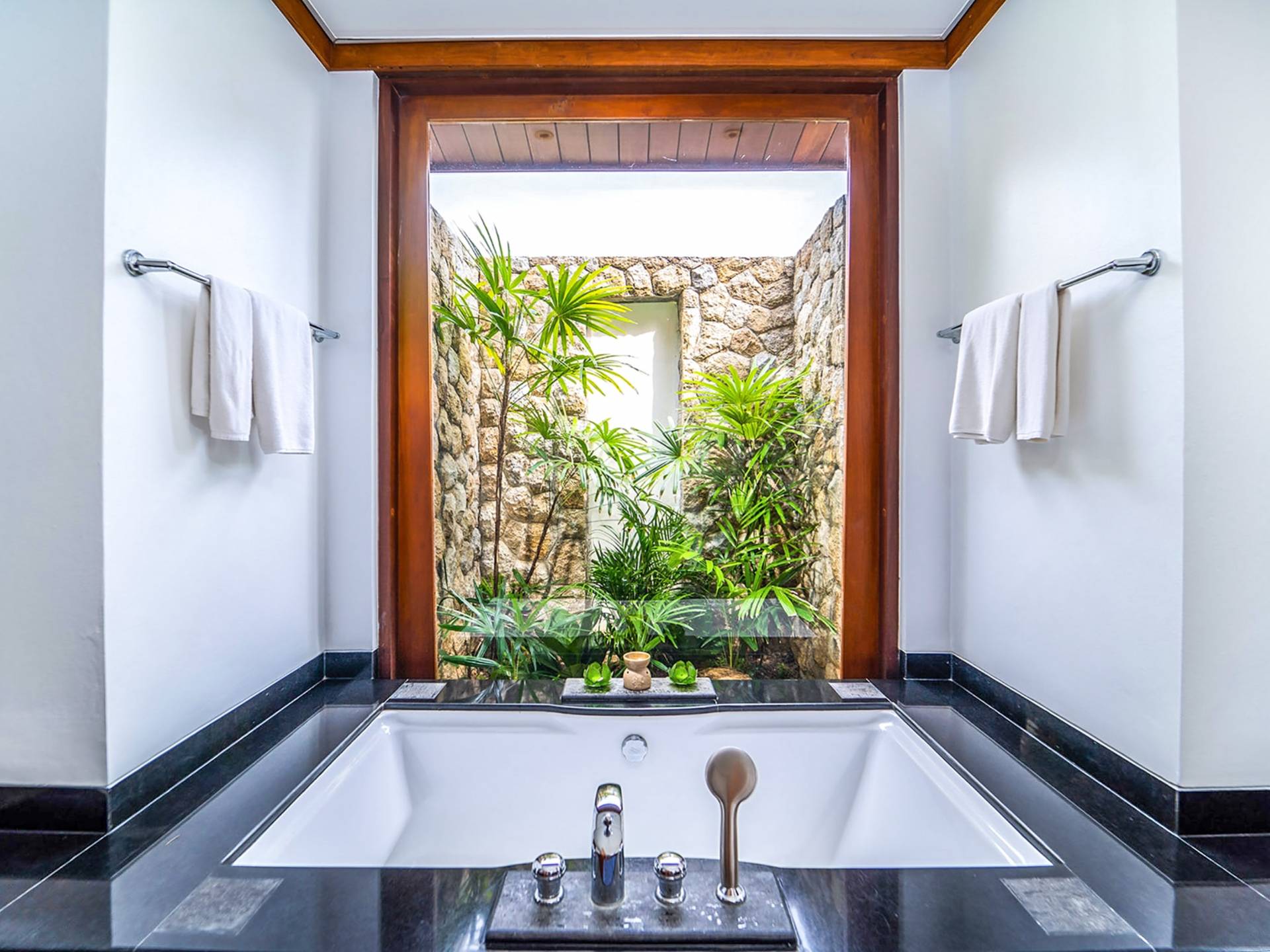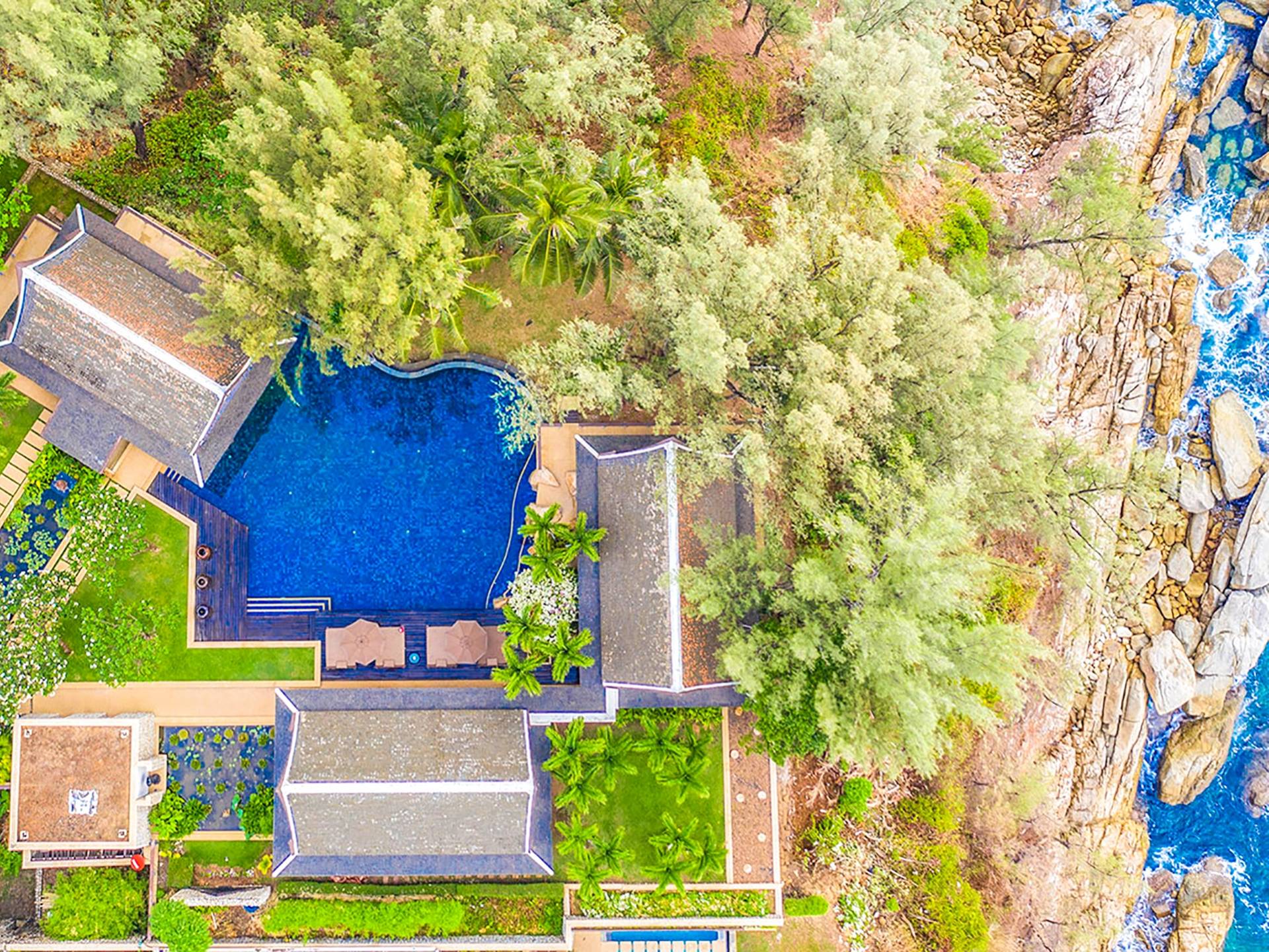Villa Chada has hidden away on the headland within the exclusive Laemson Estate, yet just outside there’s plenty to explore. Less than a kilometer away is a private beach cove where you can snorkel or try your hand at local fishing, there’s also direct walking access to this secret beach through the estate. Indulge in fine dining at one of the international resorts nearby or take a trip to Kamala village to browse through local shops. Further along the coast is Patong Beach, where the nightlife can be as boisterous as it can be luxurious with a plethora of restaurants and bars to choose from to suit all tastes. The villa would not be a beach paradise if it did not offer breathtaking views and proximity to Phuket’s best beaches, which are legendary for calm waters and glorious sunsets.