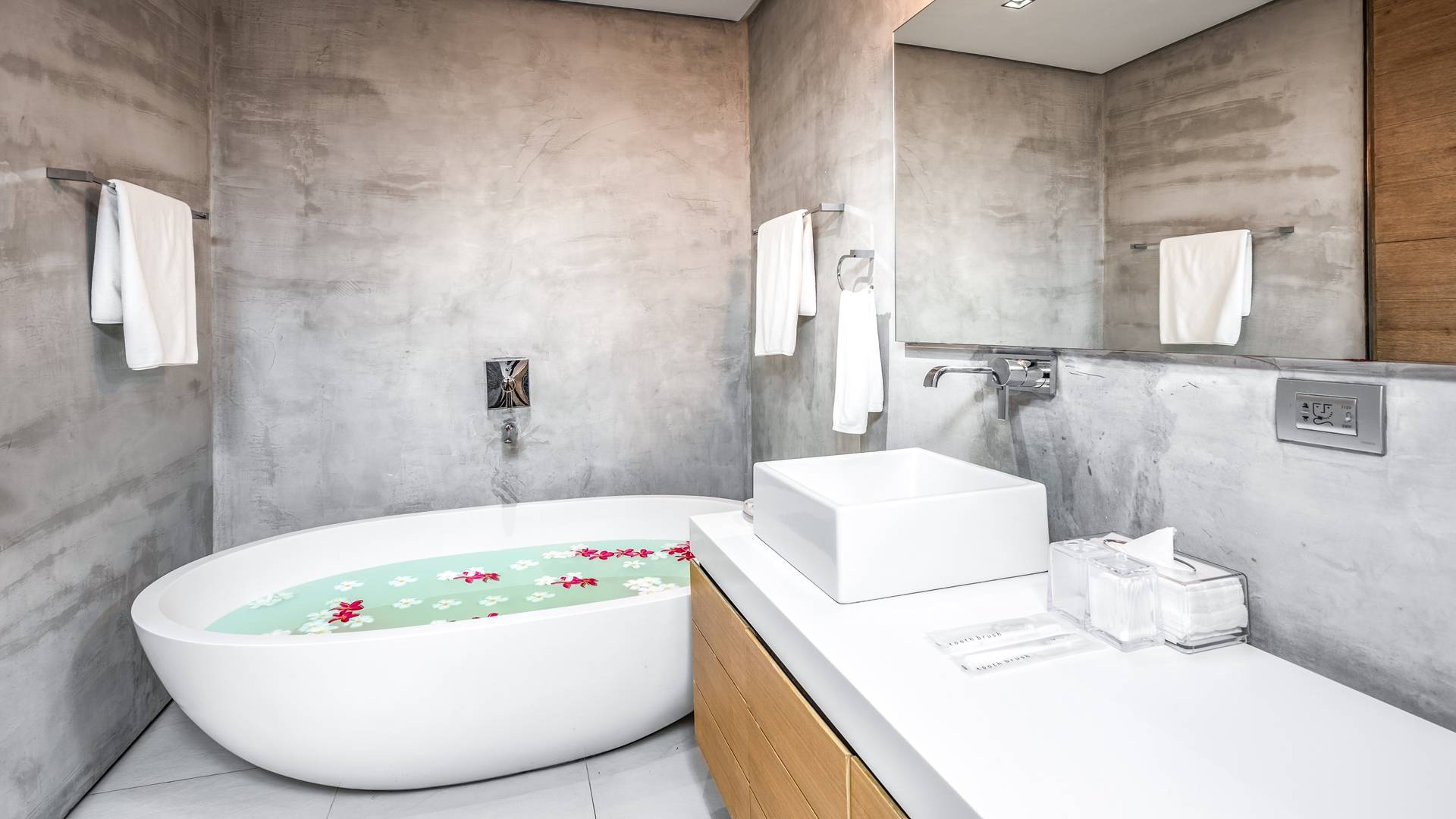 Just as communal mix-and-mingle spaces abound, five spacious bedrooms await their guests and offer a private retreat at the end of an activity-packed day. Outdoor bathtubs are sunken into the private terraces of three en-suite rooms, while master bedroom guests are invited for an extended al fresco soak on their secluded terrace. This Villa is tended by two discreet live-in staff: one chef and one housekeeper. The Estate front office team and villa concierge complement the villa's permanent staff to organize customized requirements and satisfy any holiday whims.