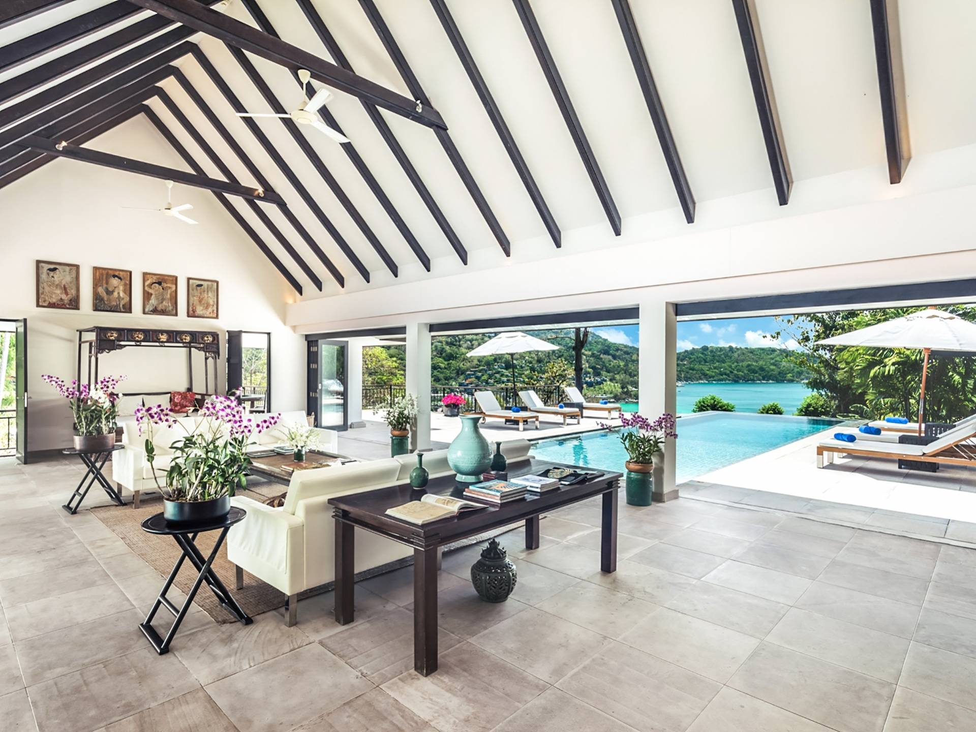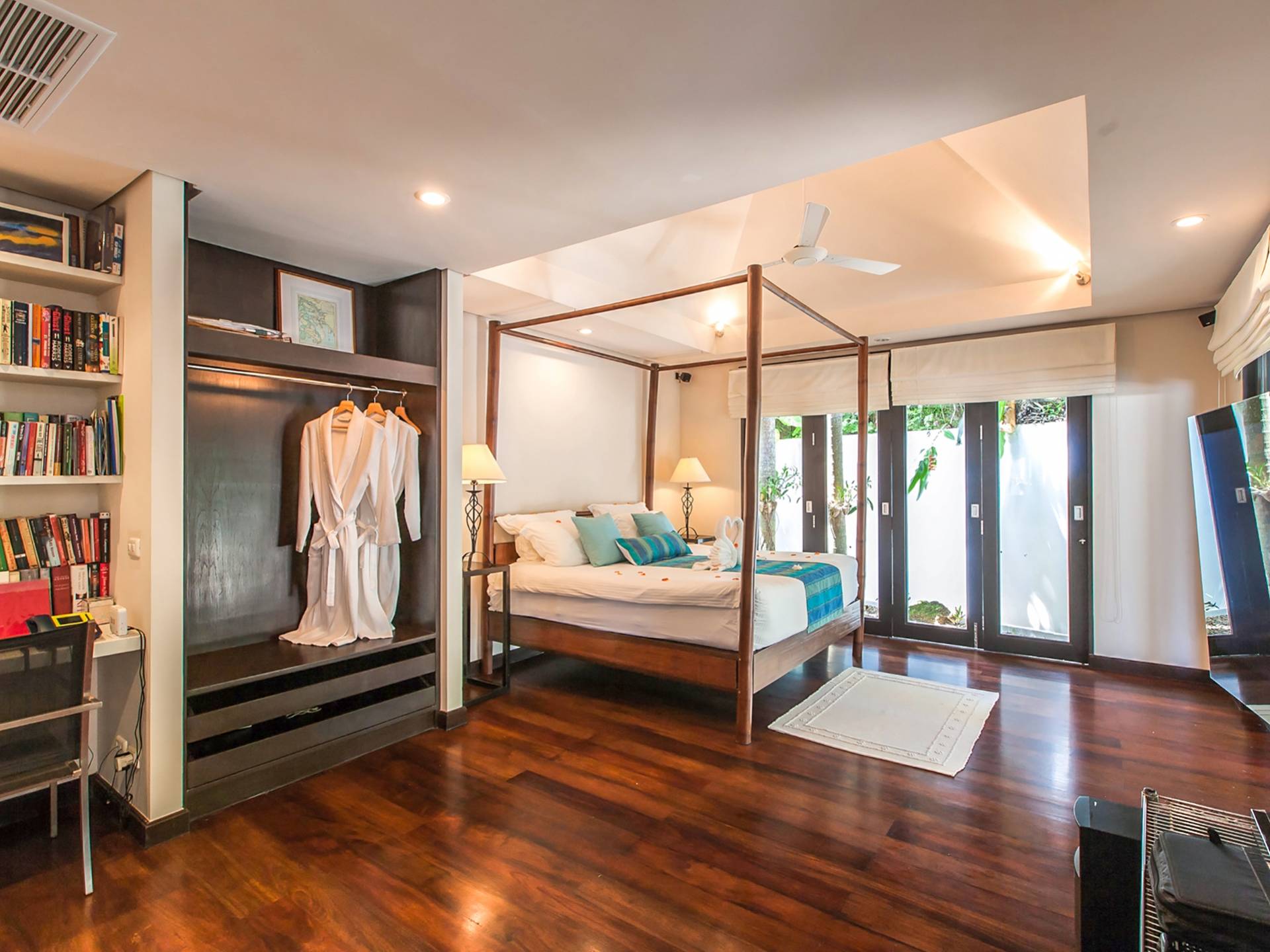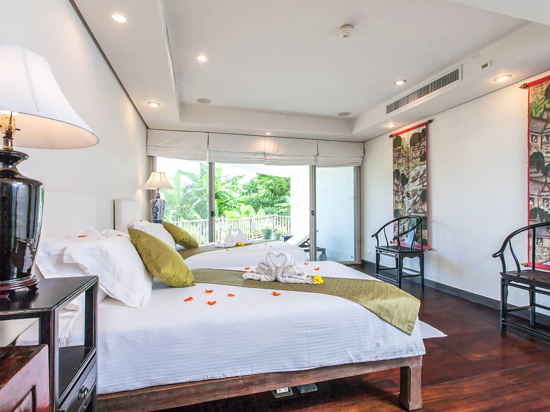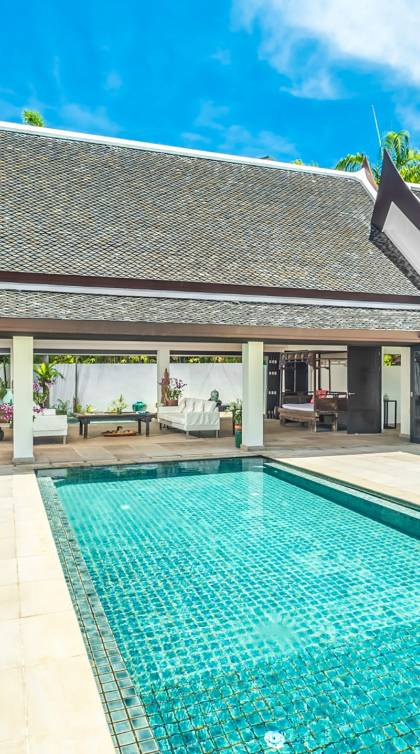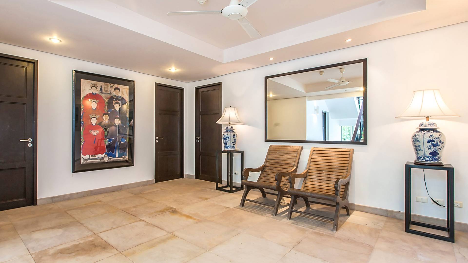 The fully staffed villa oozes pure class with its blend of contemporary design, antique Asian artifacts, and classic wall art. It's living and dining area overlooks the pool and the glass doors can be opened up entirely if you’d like to experience tropical living. For the best sunset spot on the island, you don’t need to look elsewhere. Your very own pool deck dotted with sun loungers will allow you to enjoy this extravaganza every evening. Also boasting a dazzling 12-meter infinity pool that easily blends with the green sea beyond, this villa represents luxurious outdoor living at its very best. Beyond the many options for fun and relaxation at the villa itself, you’re welcome to visit the nearby estate clubhouse, which includes a fitness center, tennis court, and a pool.