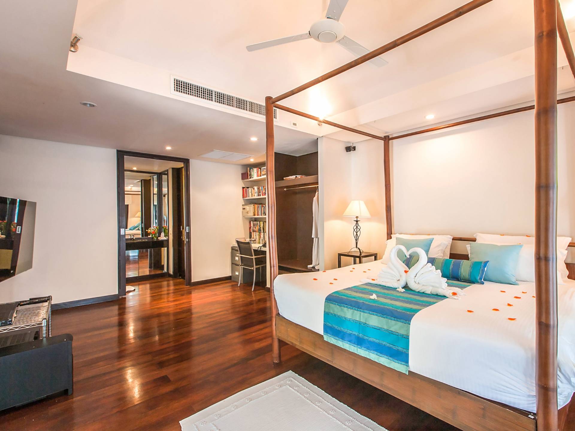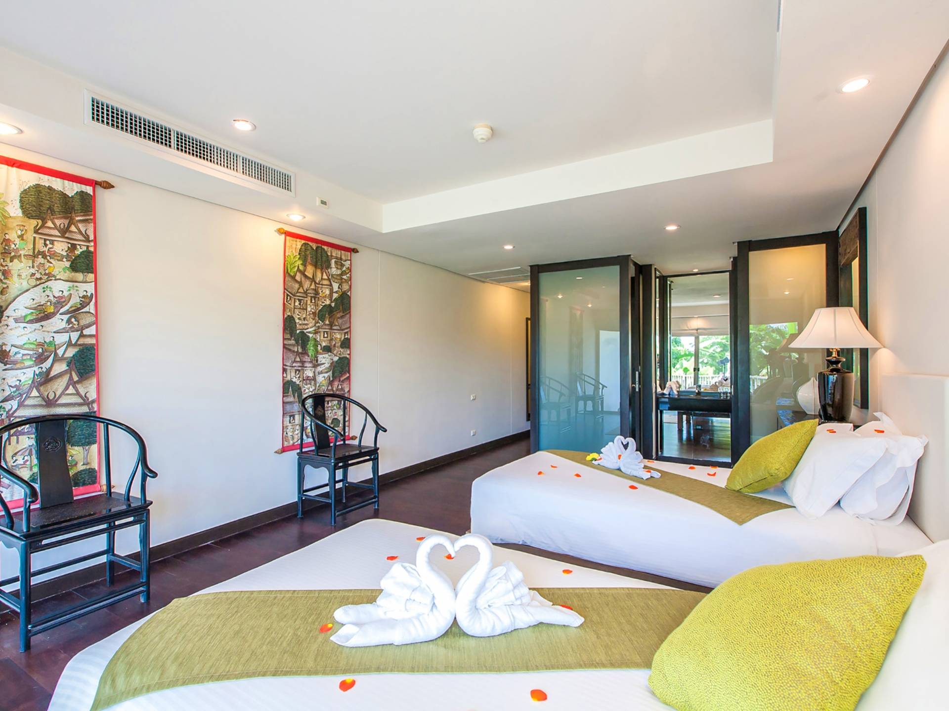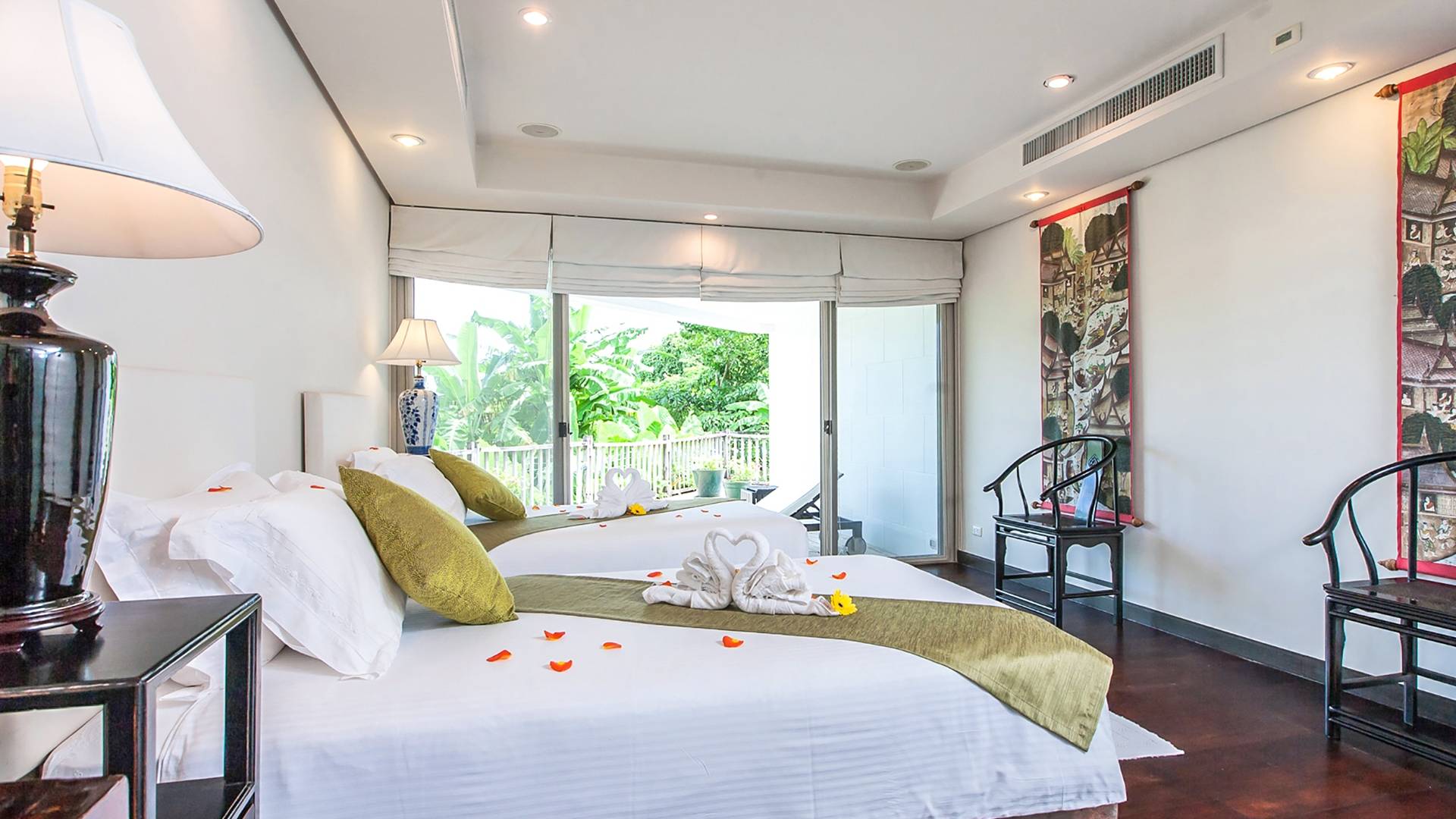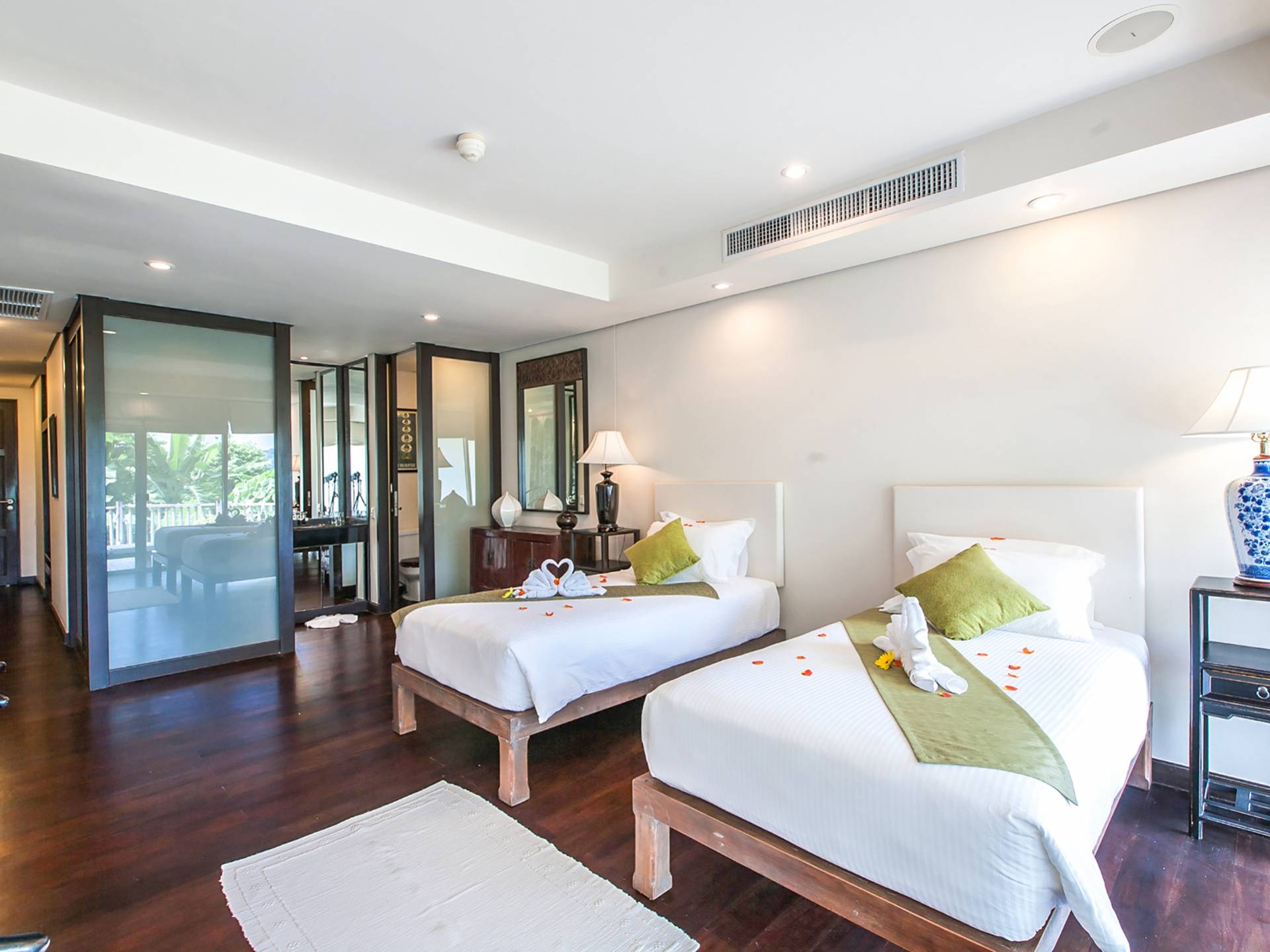 The fully staffed villa oozes pure class with its blend of contemporary design, antique Asian artifacts, and classic wall art. It's living and dining area overlooks the pool and the glass doors can be opened up entirely if you’d like to experience tropical living. For the best sunset spot on the island, you don’t need to look elsewhere. Your very own pool deck dotted with sun loungers will allow you to enjoy this extravaganza every evening. Also boasting a dazzling 12-meter infinity pool that easily blends with the green sea beyond, this villa represents luxurious outdoor living at its very best. Beyond the many options for fun and relaxation at the villa itself, you’re welcome to visit the nearby estate clubhouse, which includes a fitness center, tennis court, and a pool.