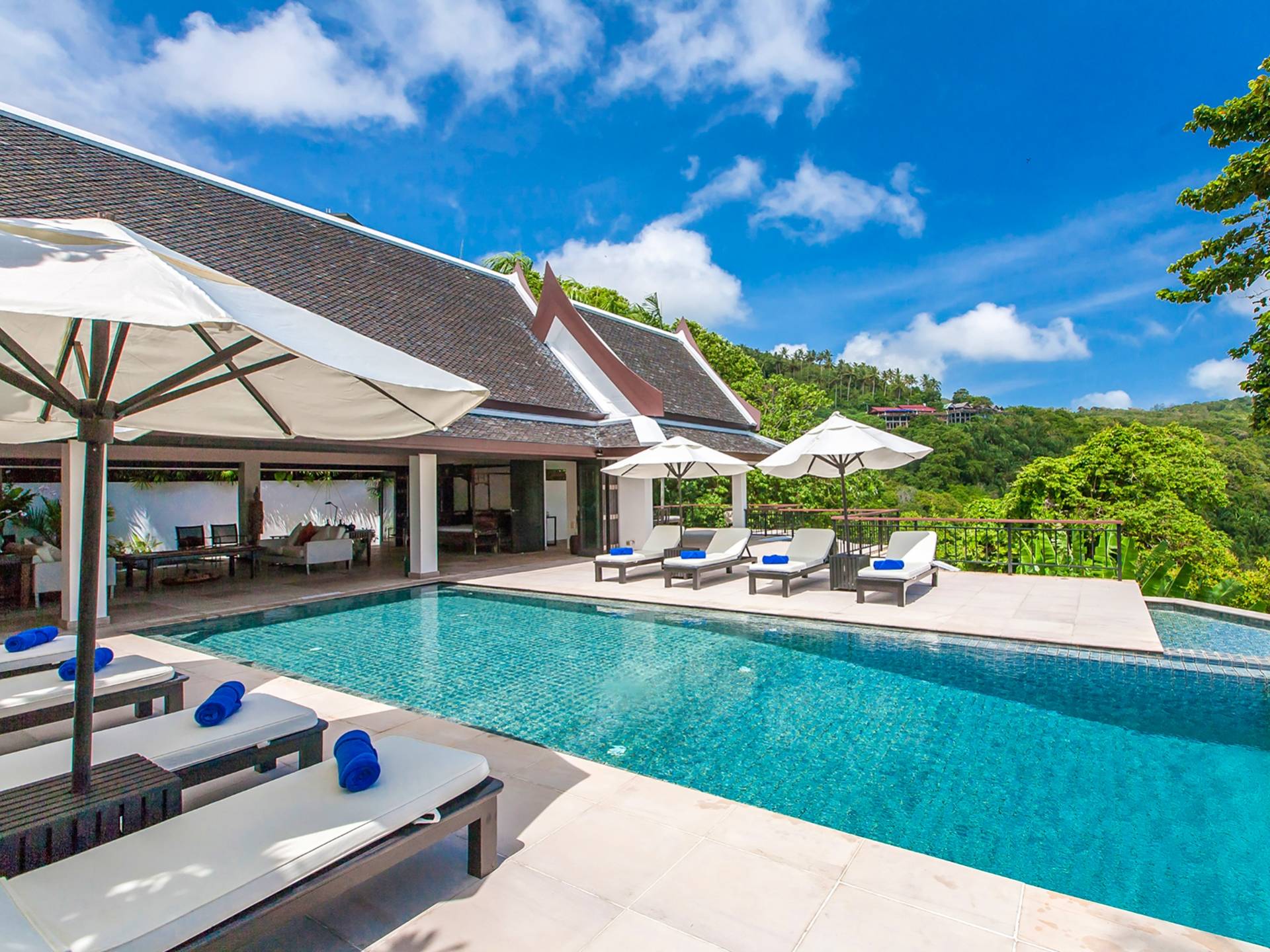 A welcoming four-bedroom villa with dramatic views of the emerald green Andaman Sea and the surrounding jungle-clad hills, Villa Katamalee is a hidden paradise. Step into this luxurious villa and admire the ease with which Thai architecture marries modern design elements while maximizing the show-stopping vistas. Conveniently located on a hilltop above Kata Noi Beach, it is close to the white sand beach as well as numerous dining and shopping options, making it a great family getaway.