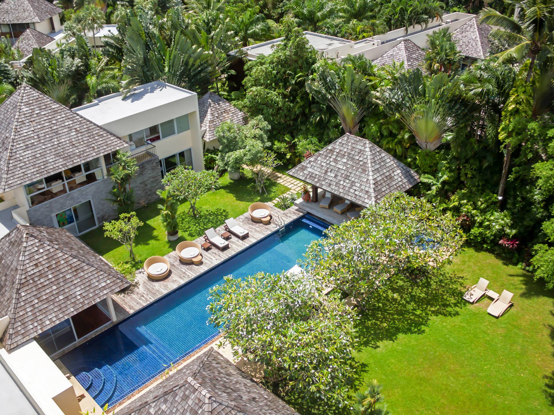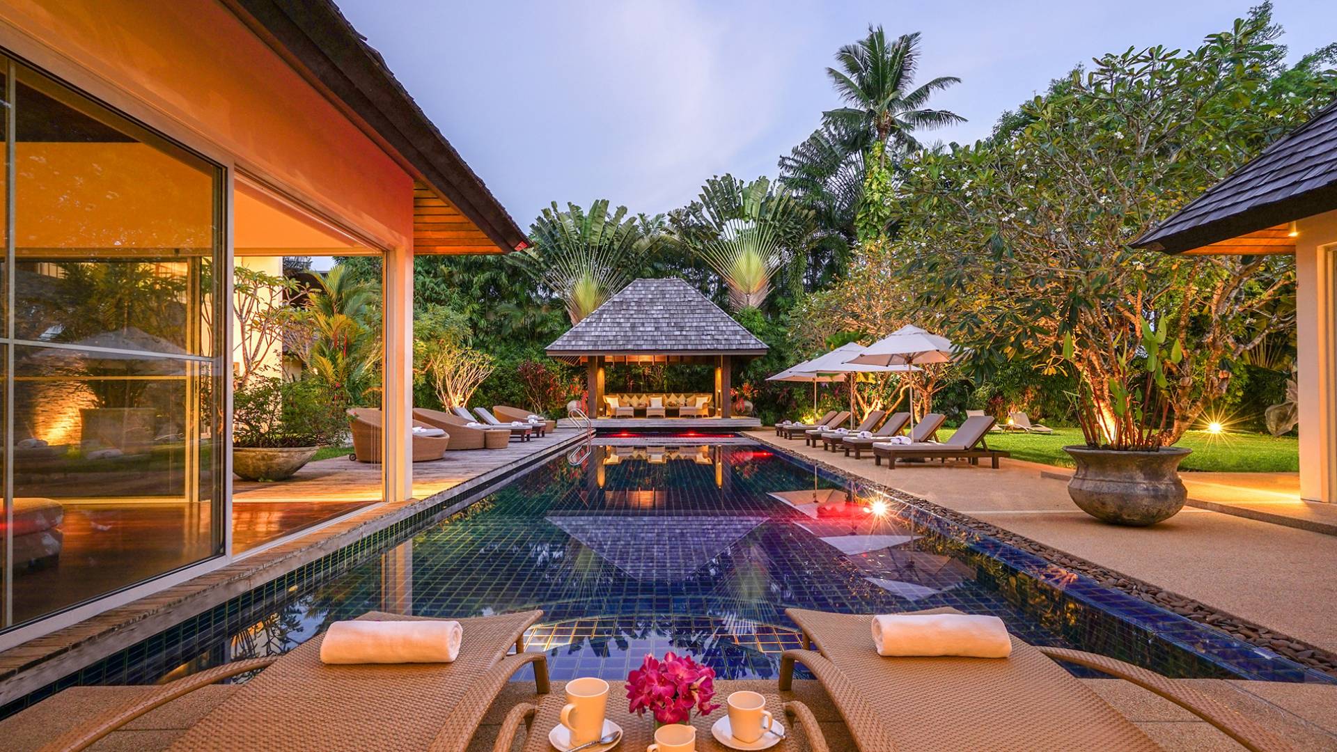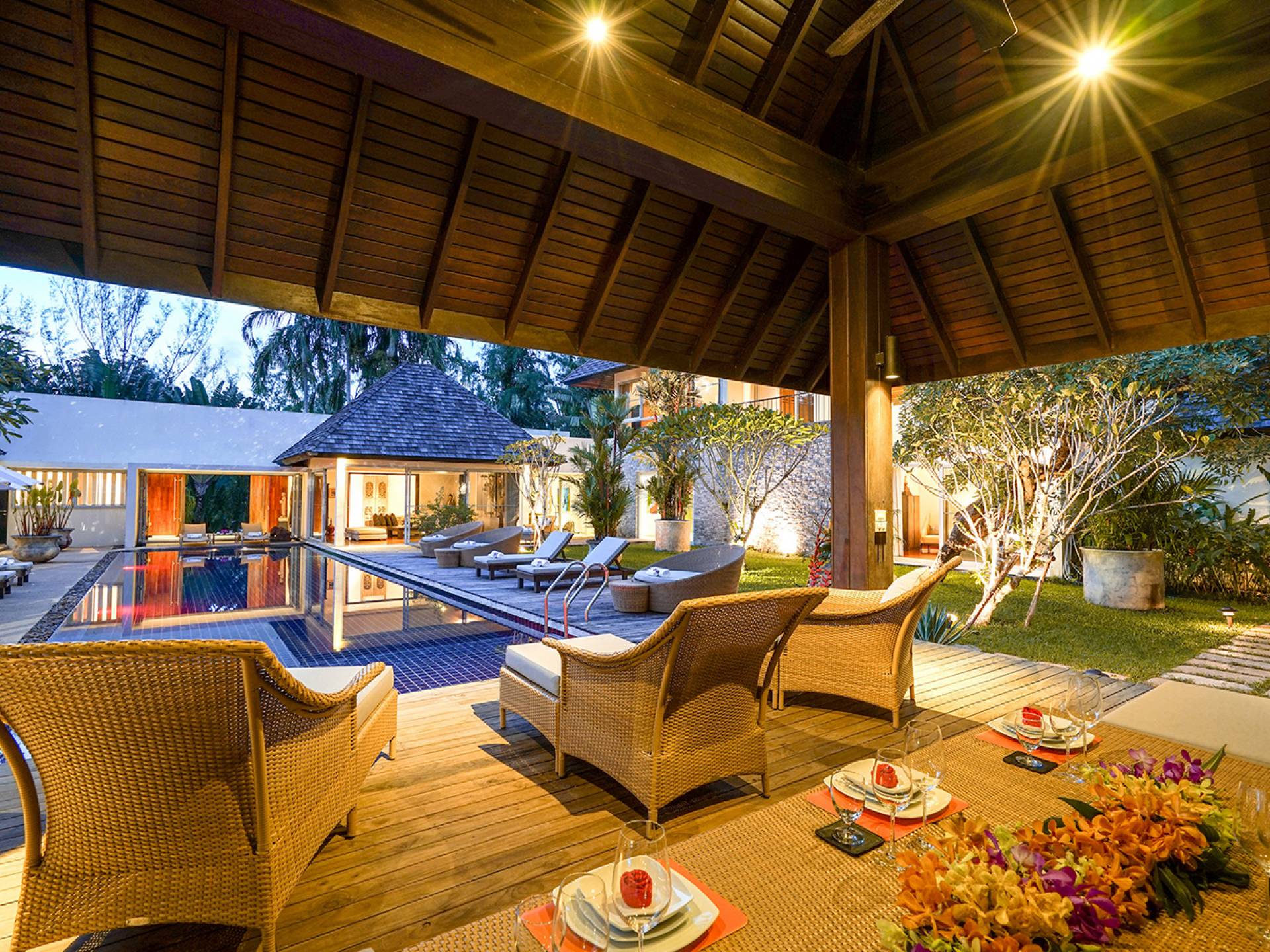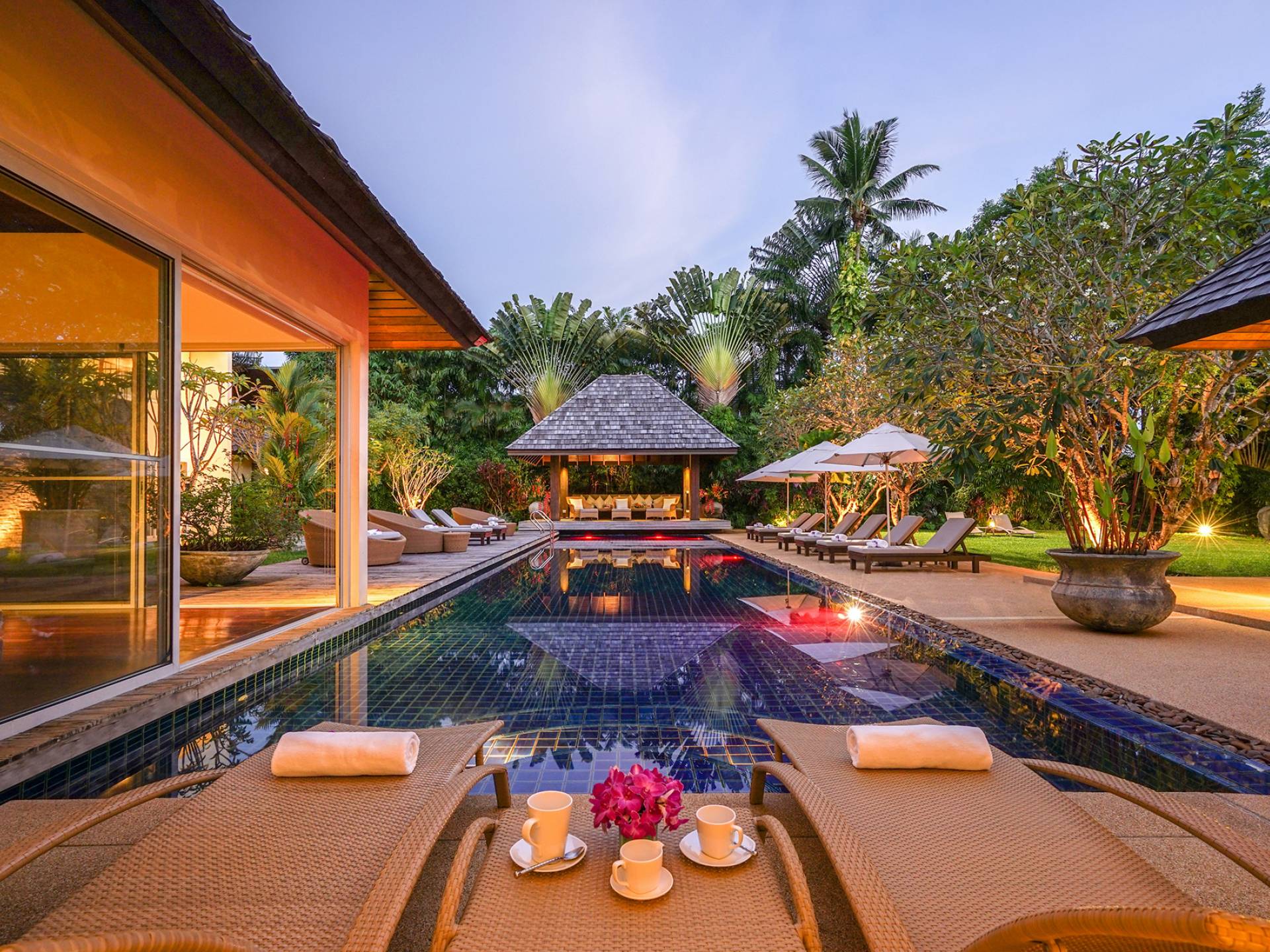 Villa Samakee’s lush tropical landscape, seamlessly connected indoor-outdoor spaces, and expansive Thai contemporary design, offer a wonderful balance of private and fun spaces for families to enjoy, as well as providing a fantastic venue for weddings and special events.
