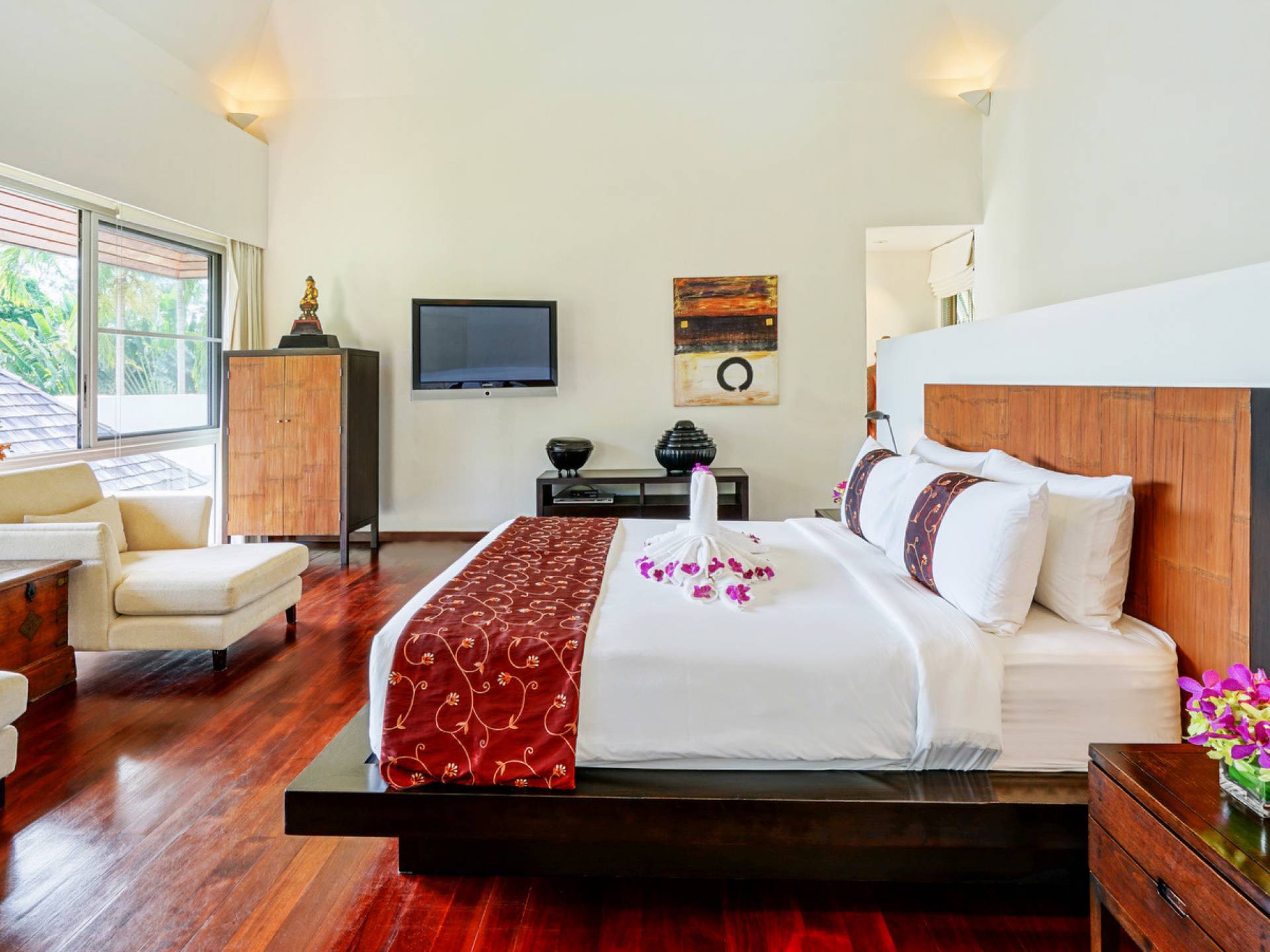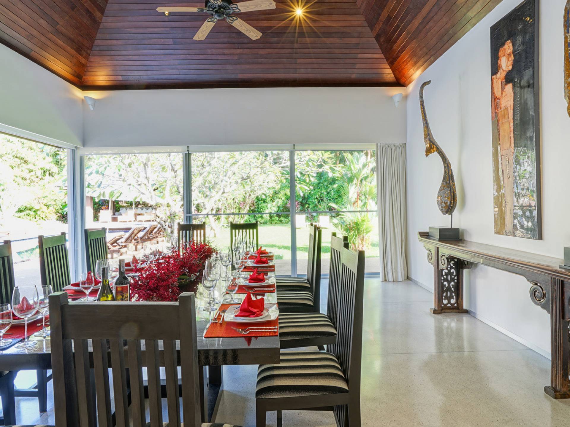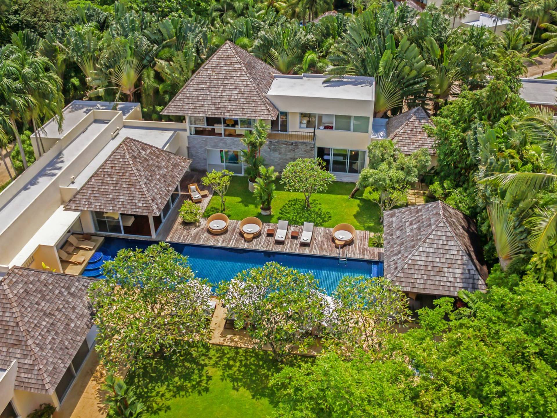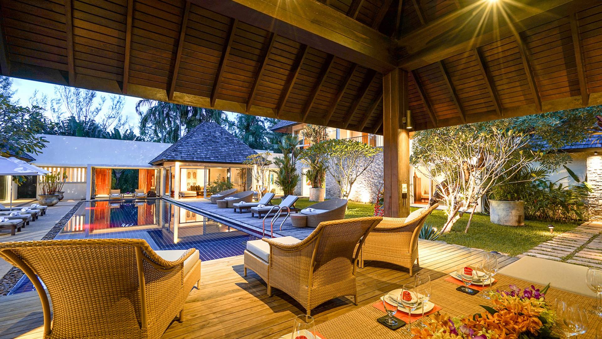 Villa Samakee’s lush tropical landscape, seamlessly connected indoor-outdoor spaces, and expansive Thai contemporary design, offer a wonderful balance of private and fun spaces for families to enjoy, as well as providing a fantastic venue for weddings and special events.