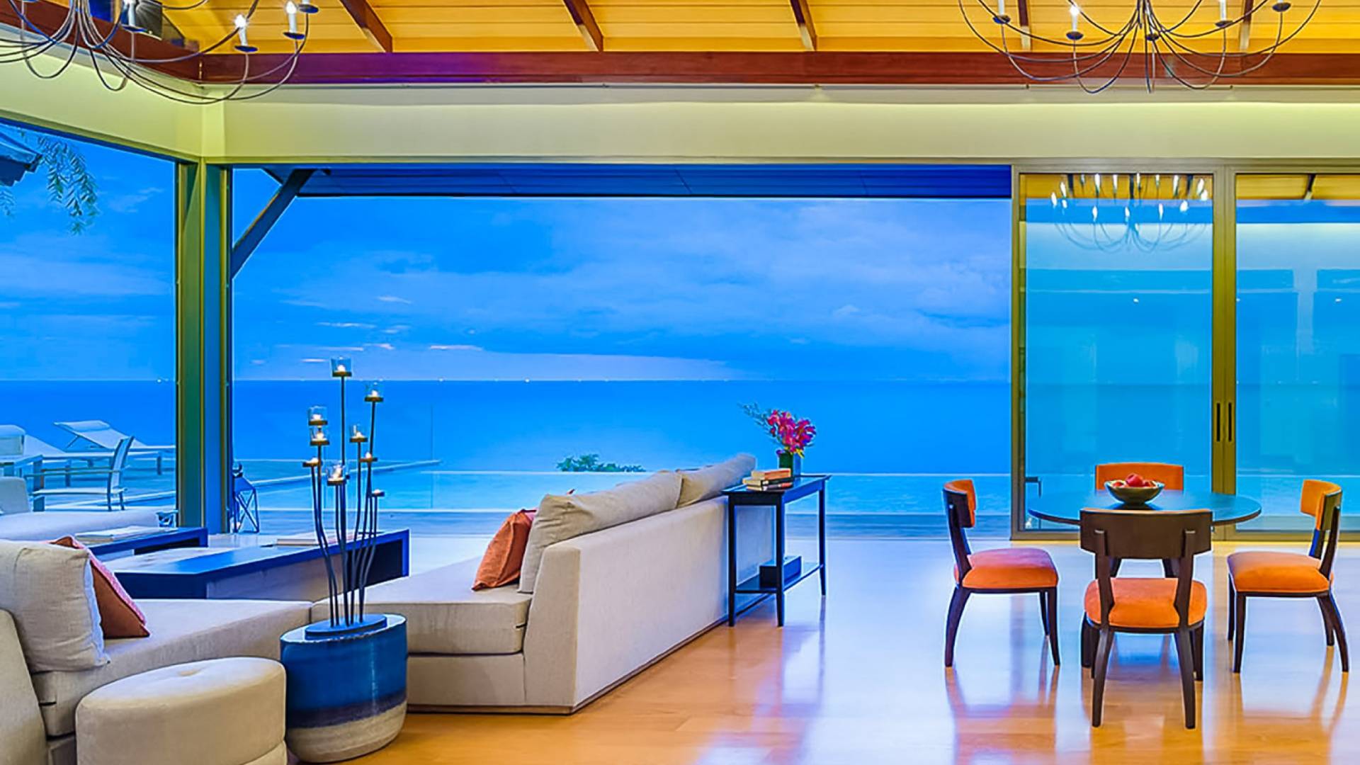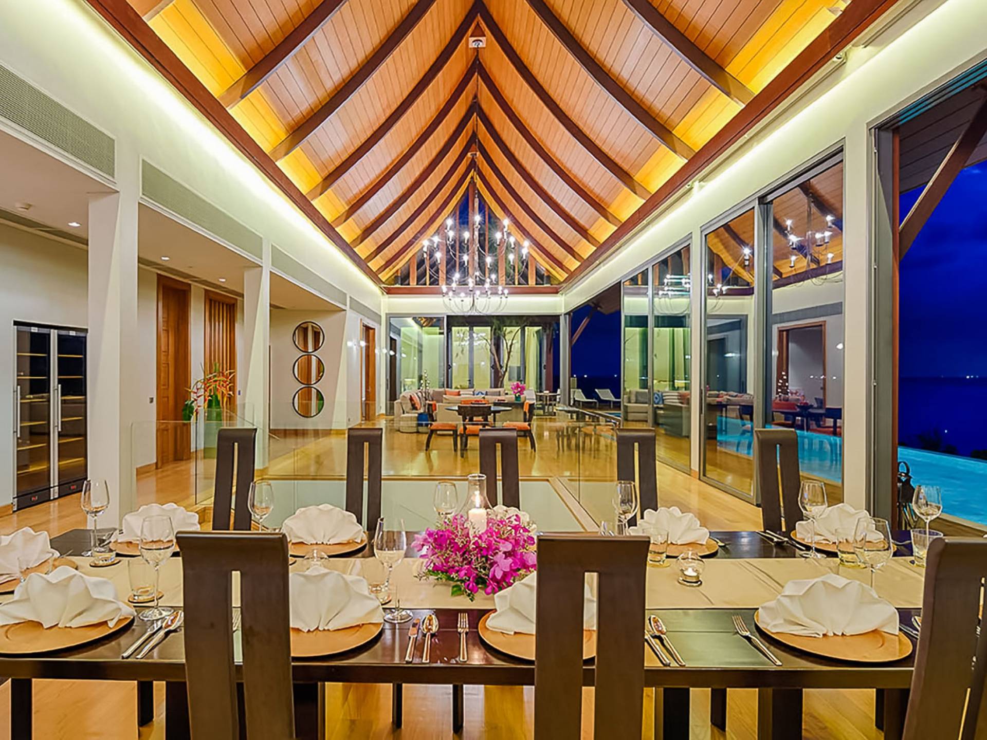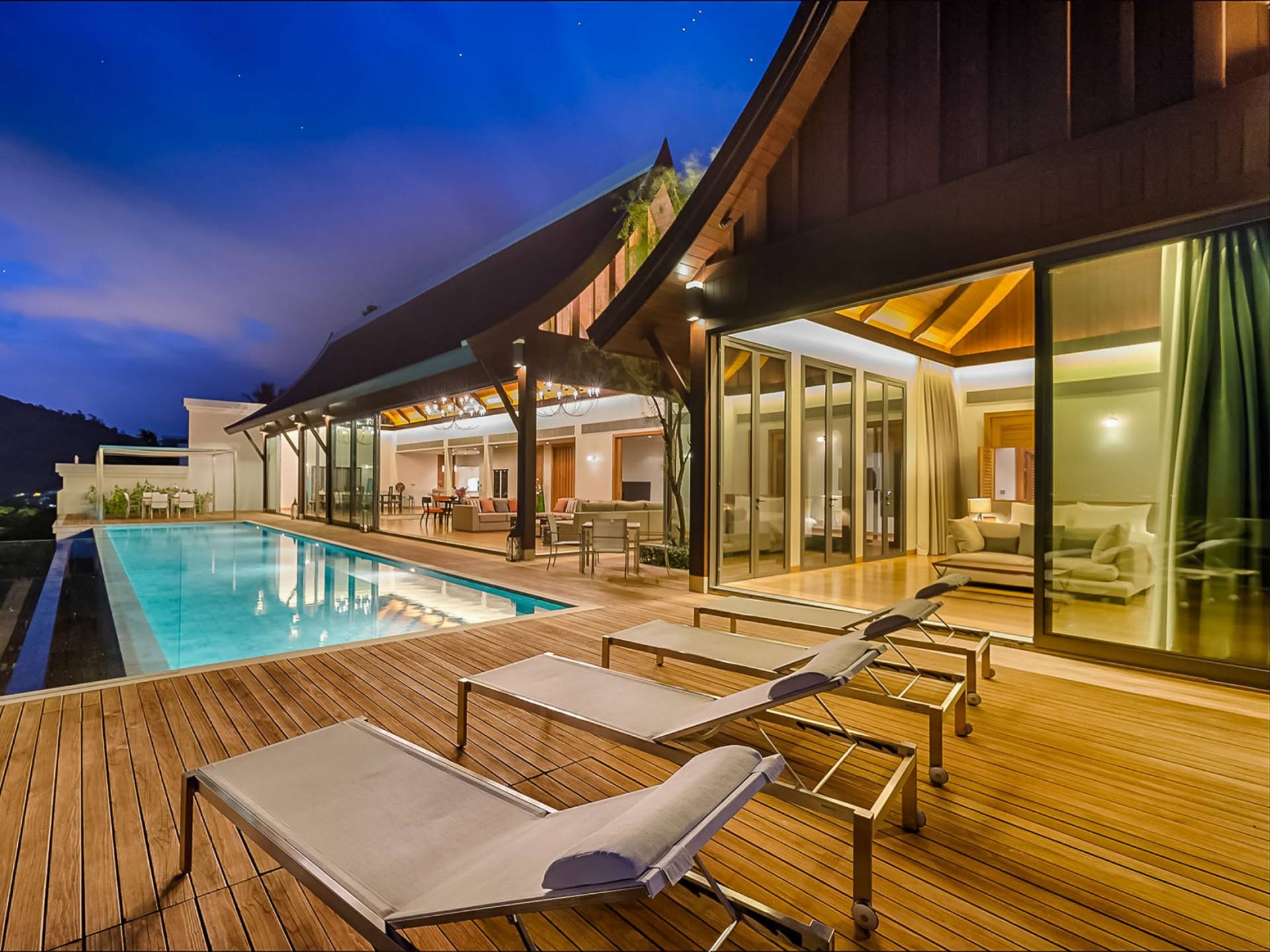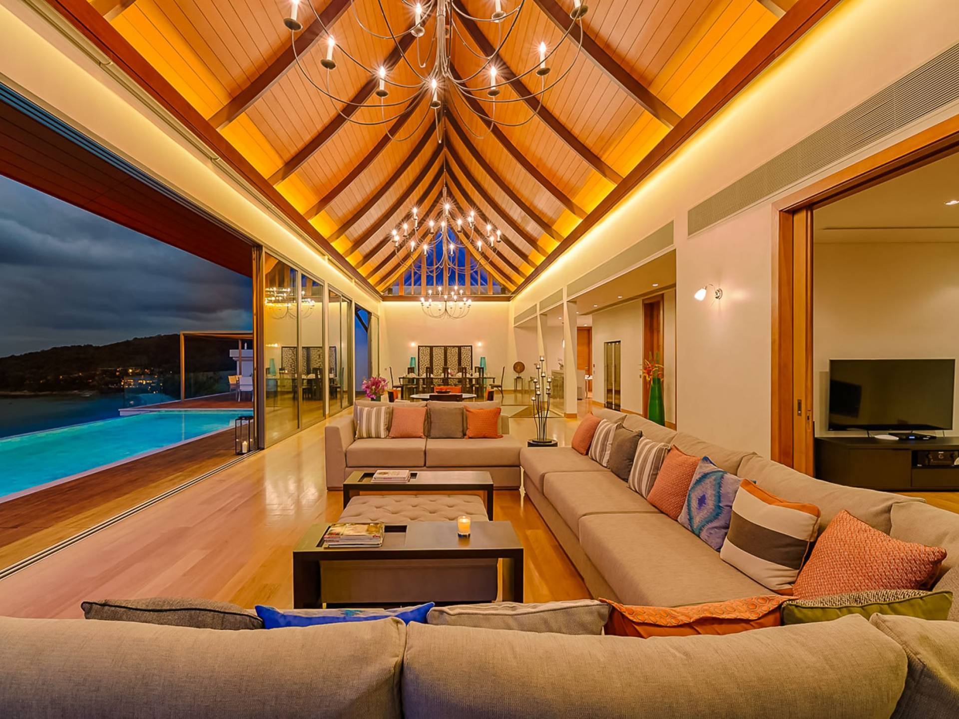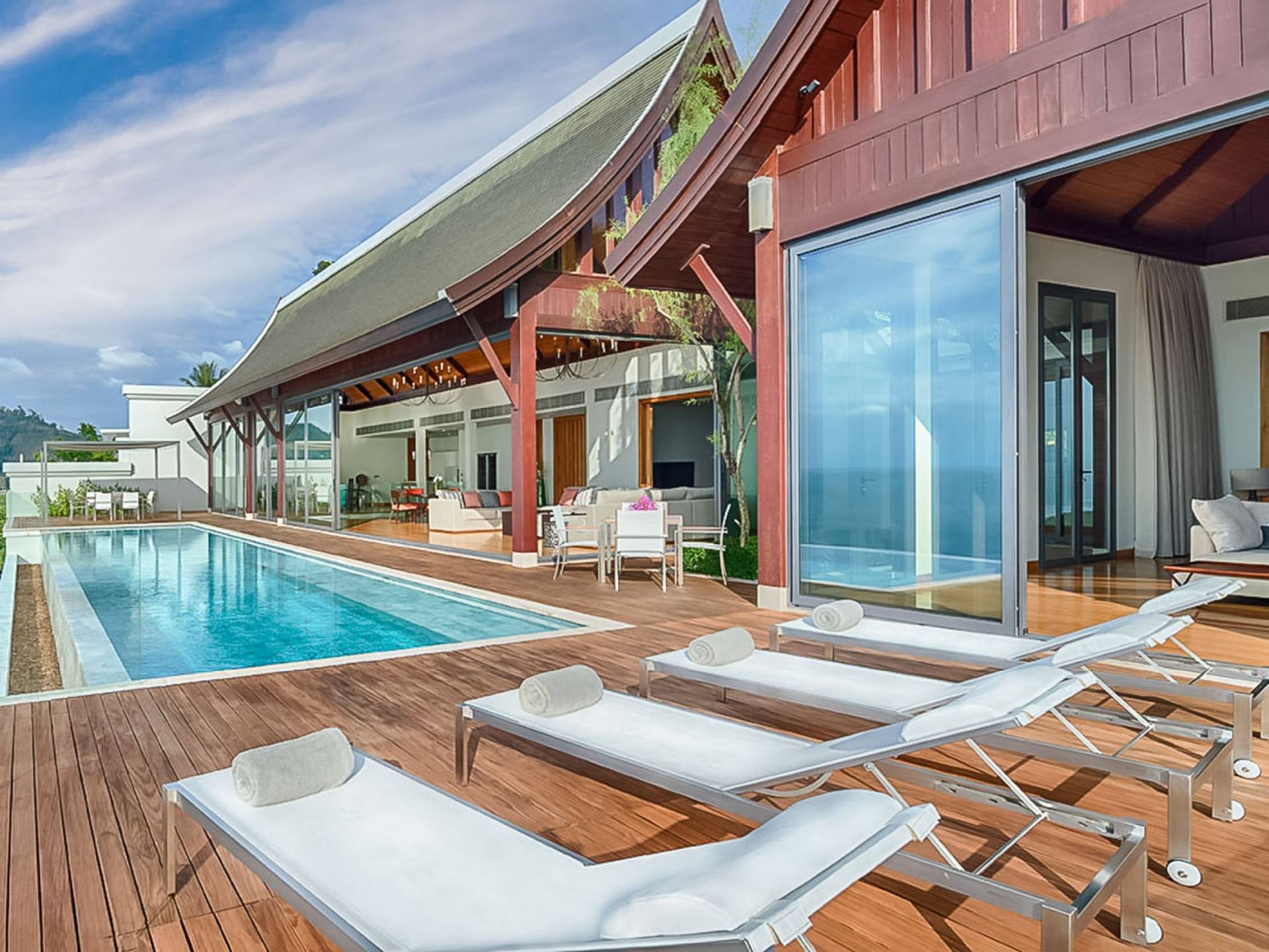 Villa Haleana at Malaiwana Villas Phuket is a vibrant six-bedroom holiday home with sweeping views over Nai Thon Beach on Phuket’s peaceful northwest coast. Set in the ultra-exclusive Malaiwana Villas Phuket. Villa Haleana is an enviable choice for families and groups seeking complete serenity and five-star care. Let the days blissfully unfold with dips in the 18-meter pool, massage treatments in the lavish spa room, quiet reads in the study, workouts in the private gym or simply relaxing in the outdoor and indoor living areas. The plush bedrooms include two master suites with romantic marble bathrooms, while a manager, chef, and housekeeping staff provide polished service.