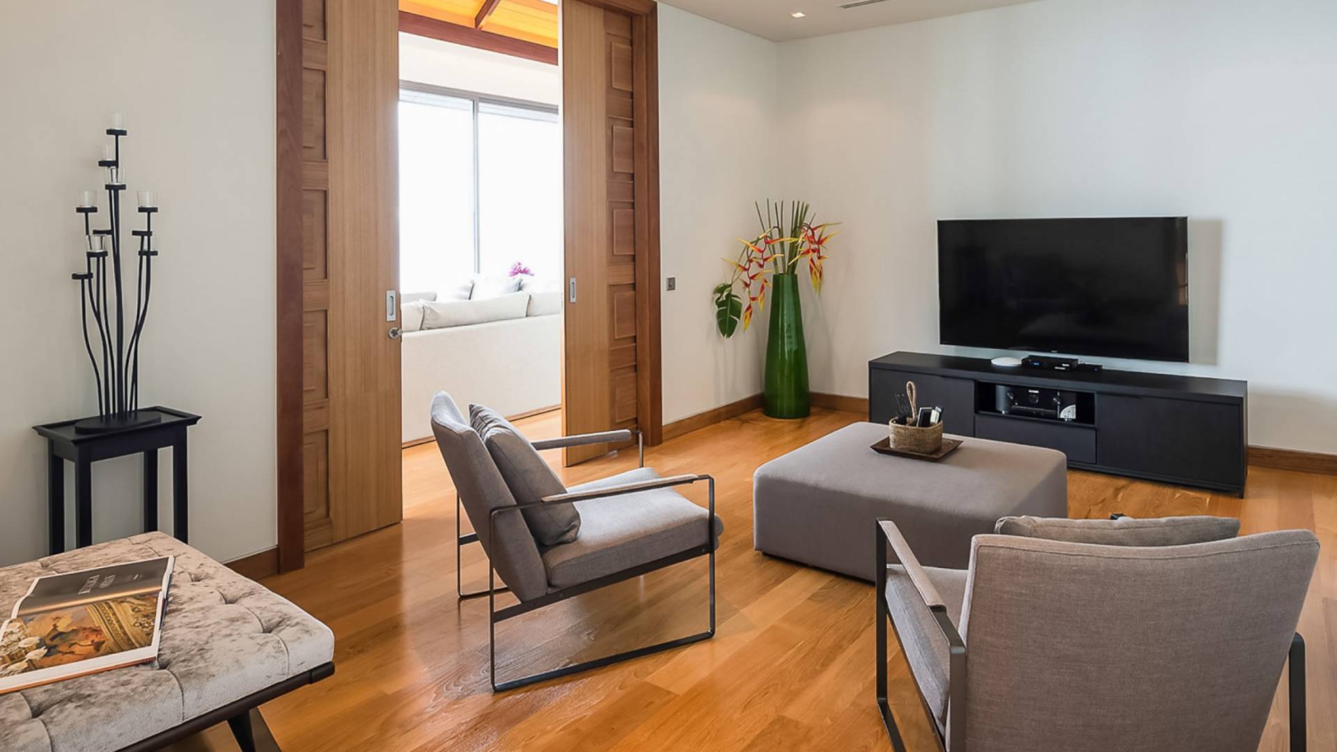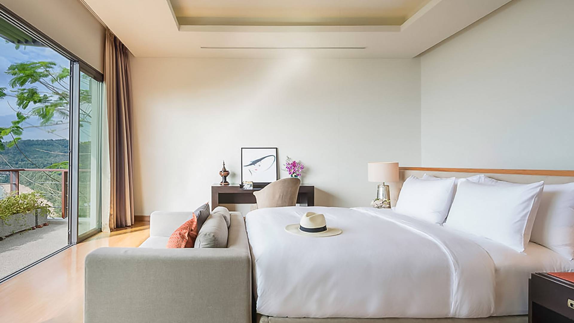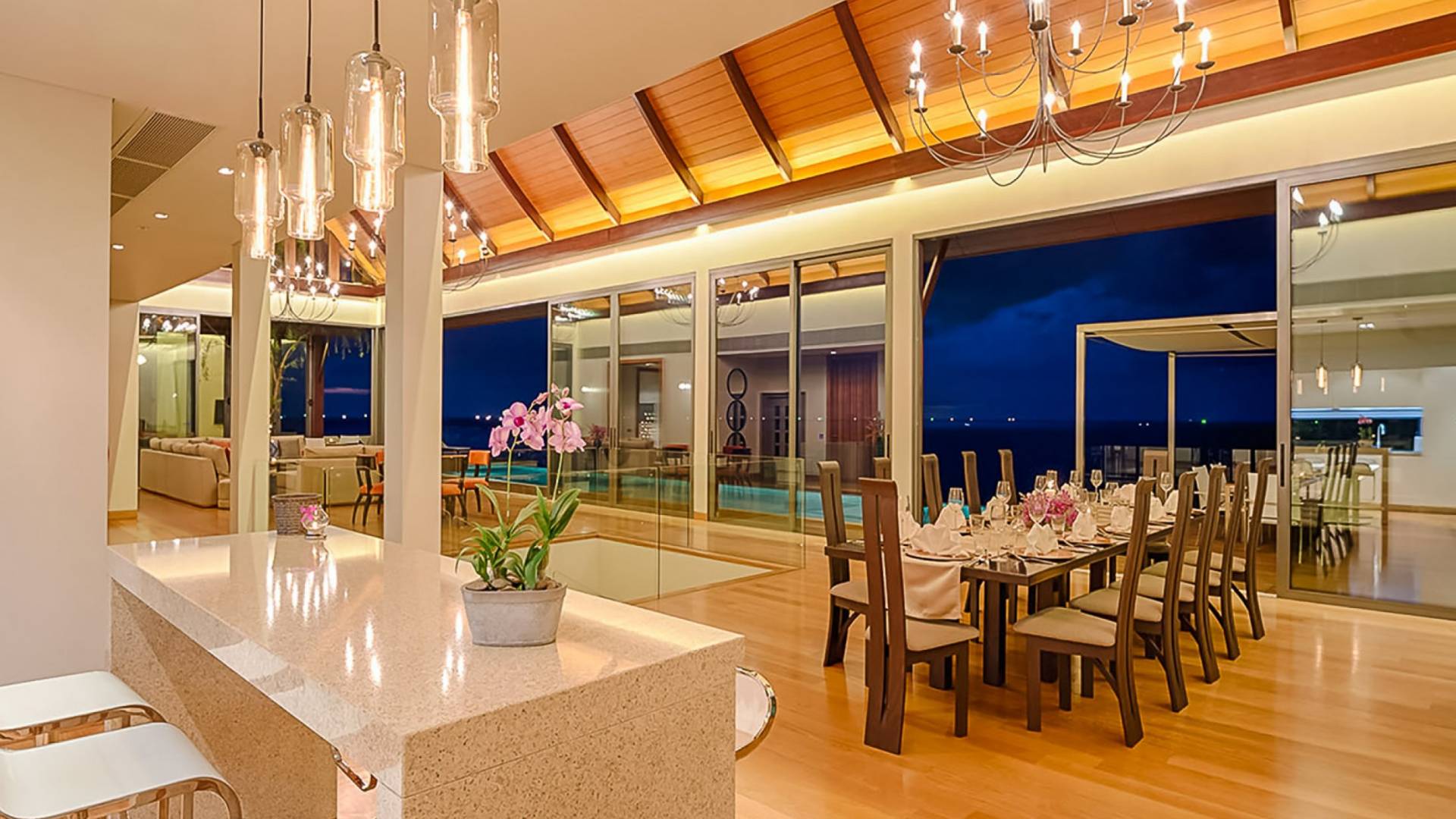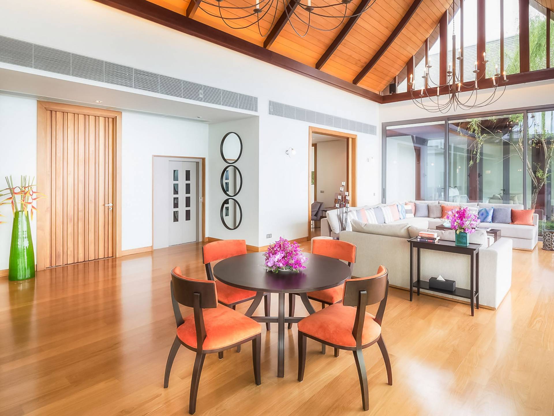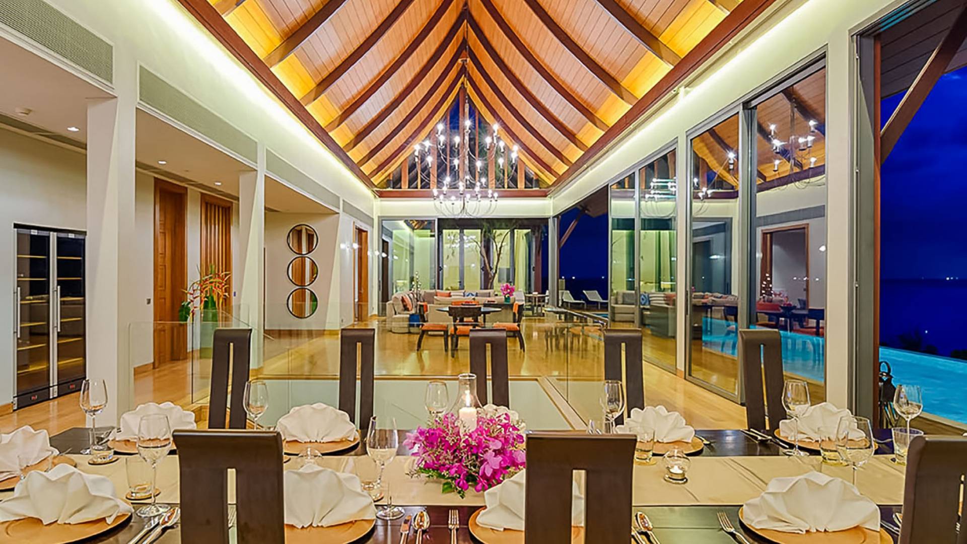 Villa Haleana at Malaiwana Villas Phuket is a vibrant six-bedroom holiday home with sweeping views over Nai Thon Beach on Phuket’s peaceful northwest coast. Set in the ultra-exclusive Malaiwana Villas Phuket. Villa Haleana is an enviable choice for families and groups seeking complete serenity and five-star care. Let the days blissfully unfold with dips in the 18-meter pool, massage treatments in the lavish spa room, quiet reads in the study, workouts in the private gym or simply relaxing in the outdoor and indoor living areas. The plush bedrooms include two master suites with romantic marble bathrooms, while a manager, chef, and housekeeping staff provide polished service.