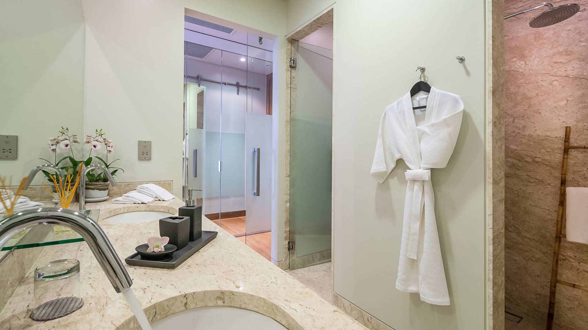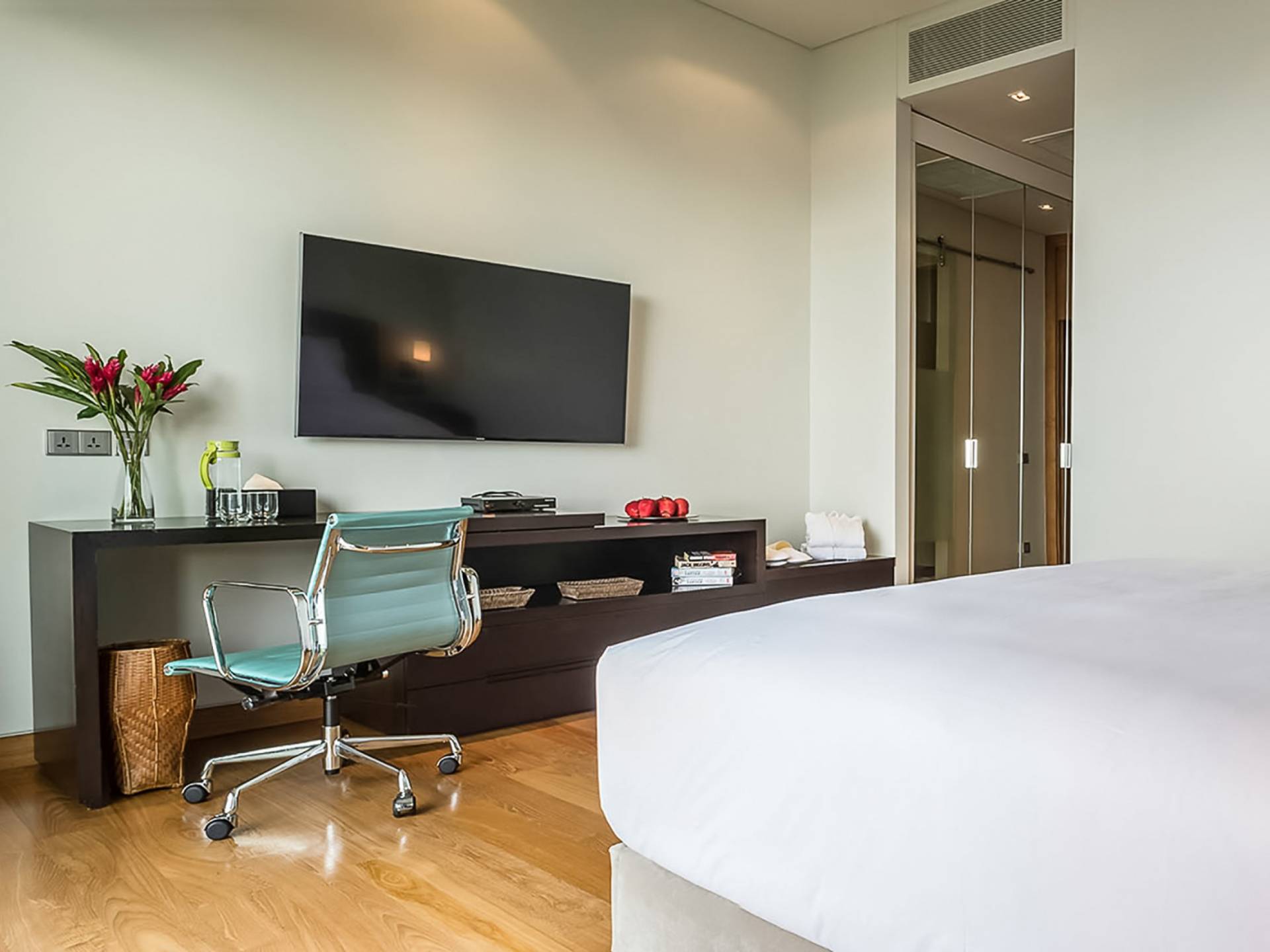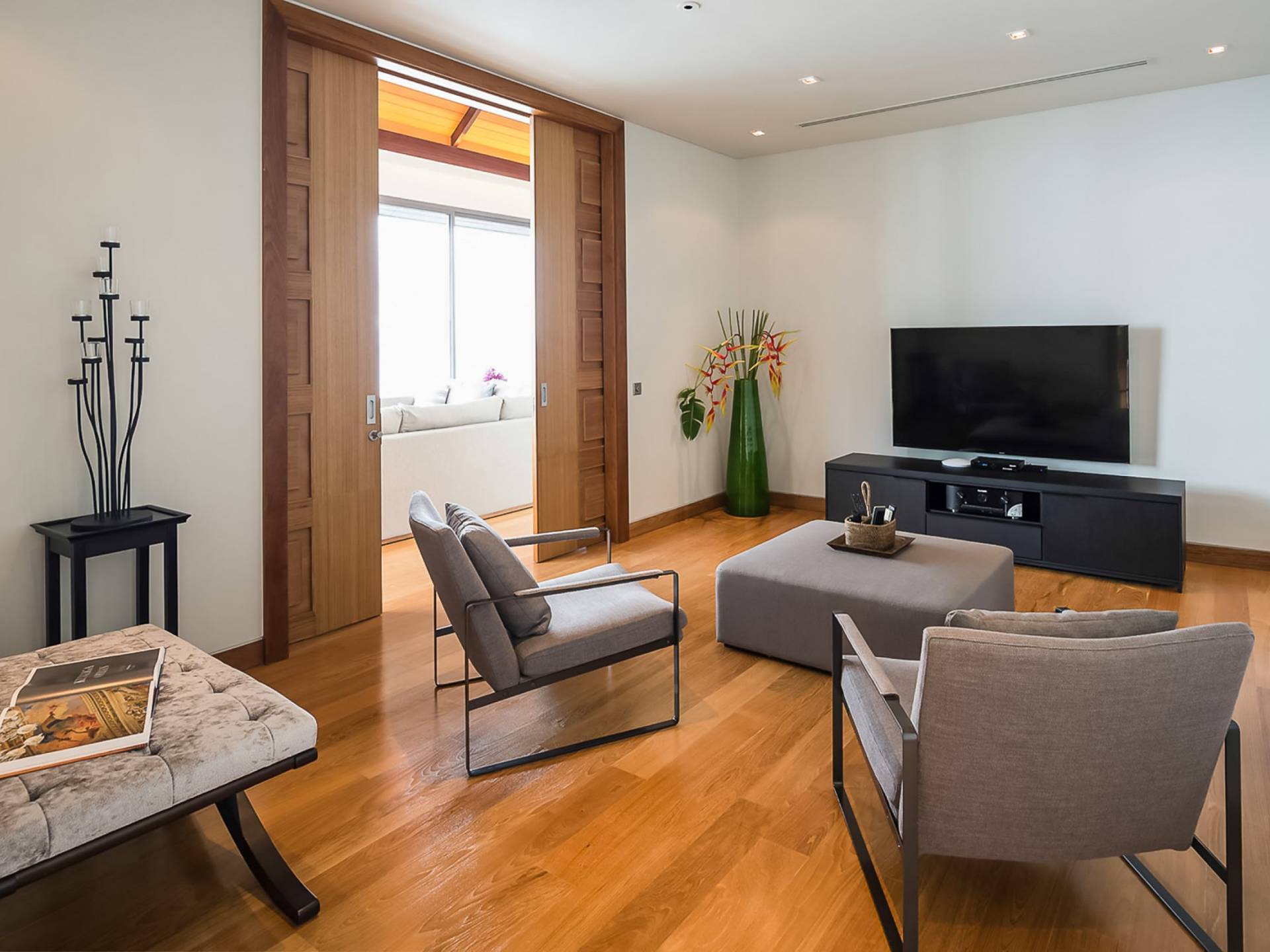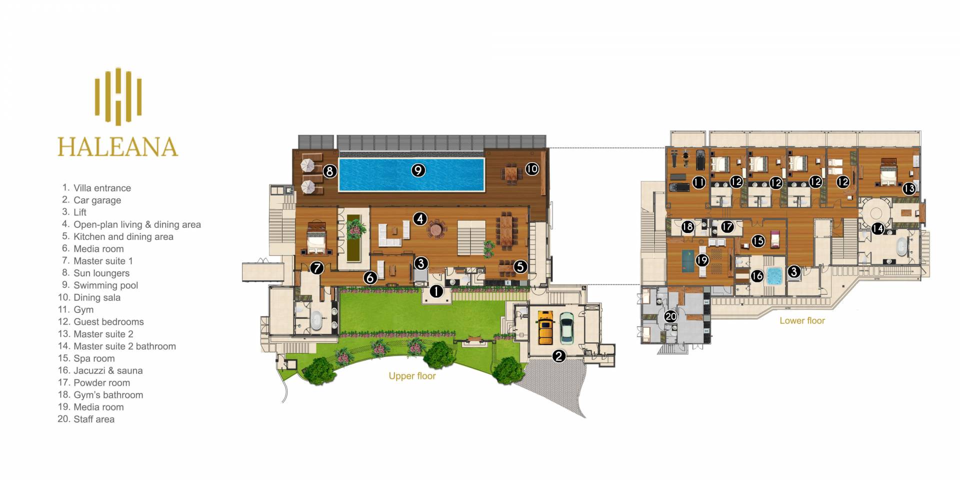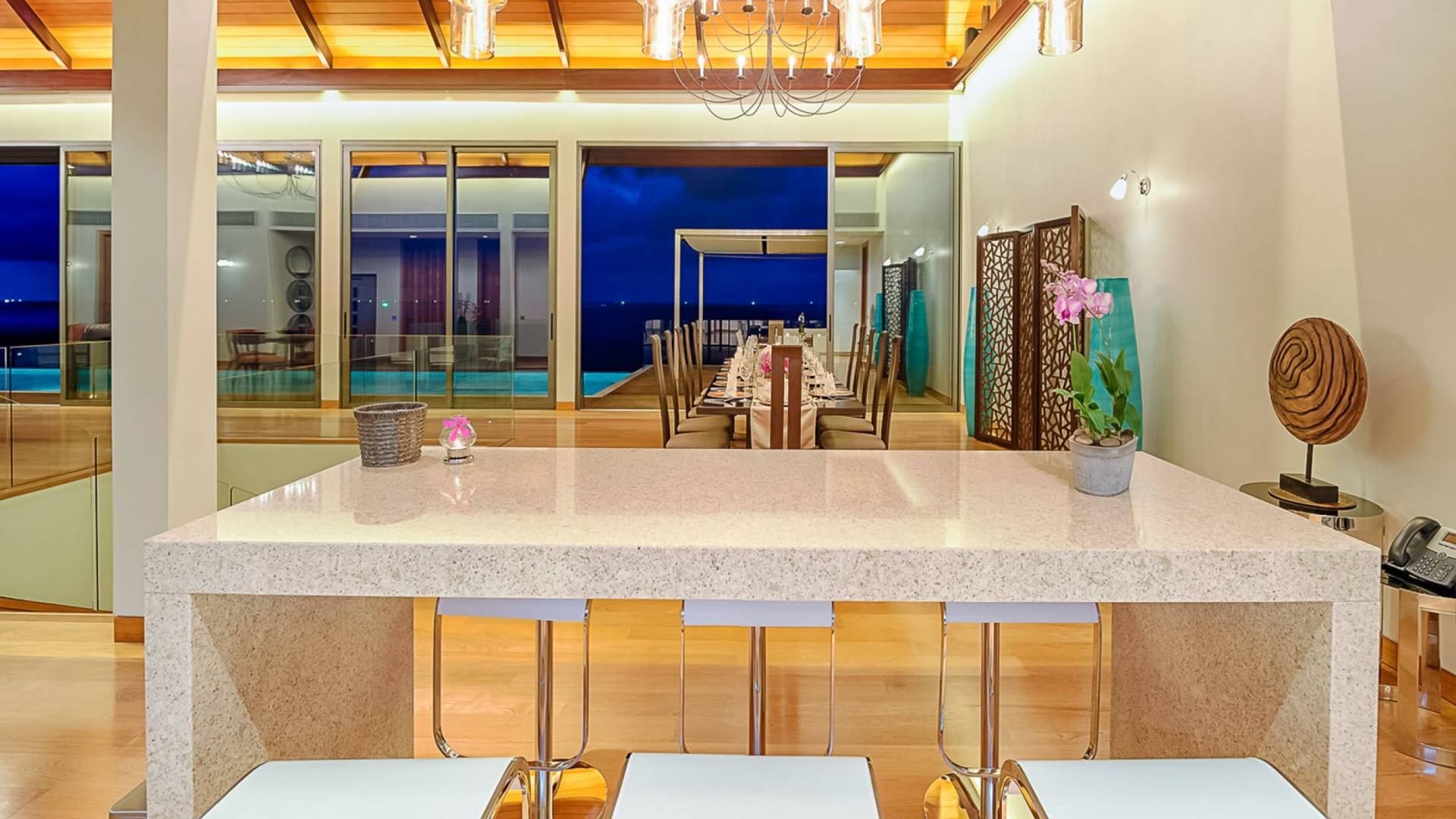 Villa Haleana at Malaiwana Villas Phuket is a vibrant six-bedroom holiday home with sweeping views over Nai Thon Beach on Phuket’s peaceful northwest coast. Set in the ultra-exclusive Malaiwana Villas Phuket. Villa Haleana is an enviable choice for families and groups seeking complete serenity and five-star care. Let the days blissfully unfold with dips in the 18-meter pool, massage treatments in the lavish spa room, quiet reads in the study, workouts in the private gym or simply relaxing in the outdoor and indoor living areas. The plush bedrooms include two master suites with romantic marble bathrooms, while a manager, chef, and housekeeping staff provide polished service.