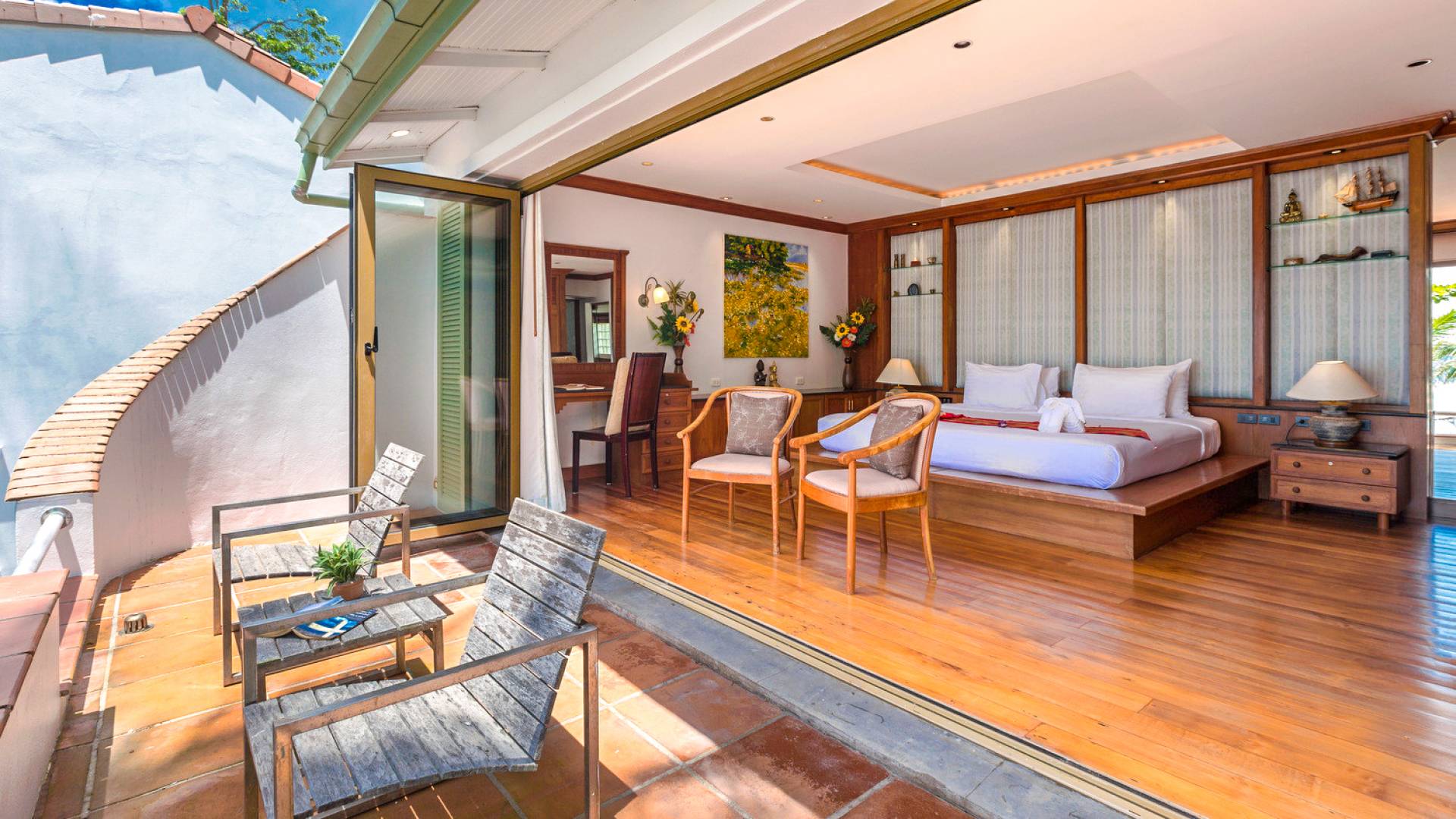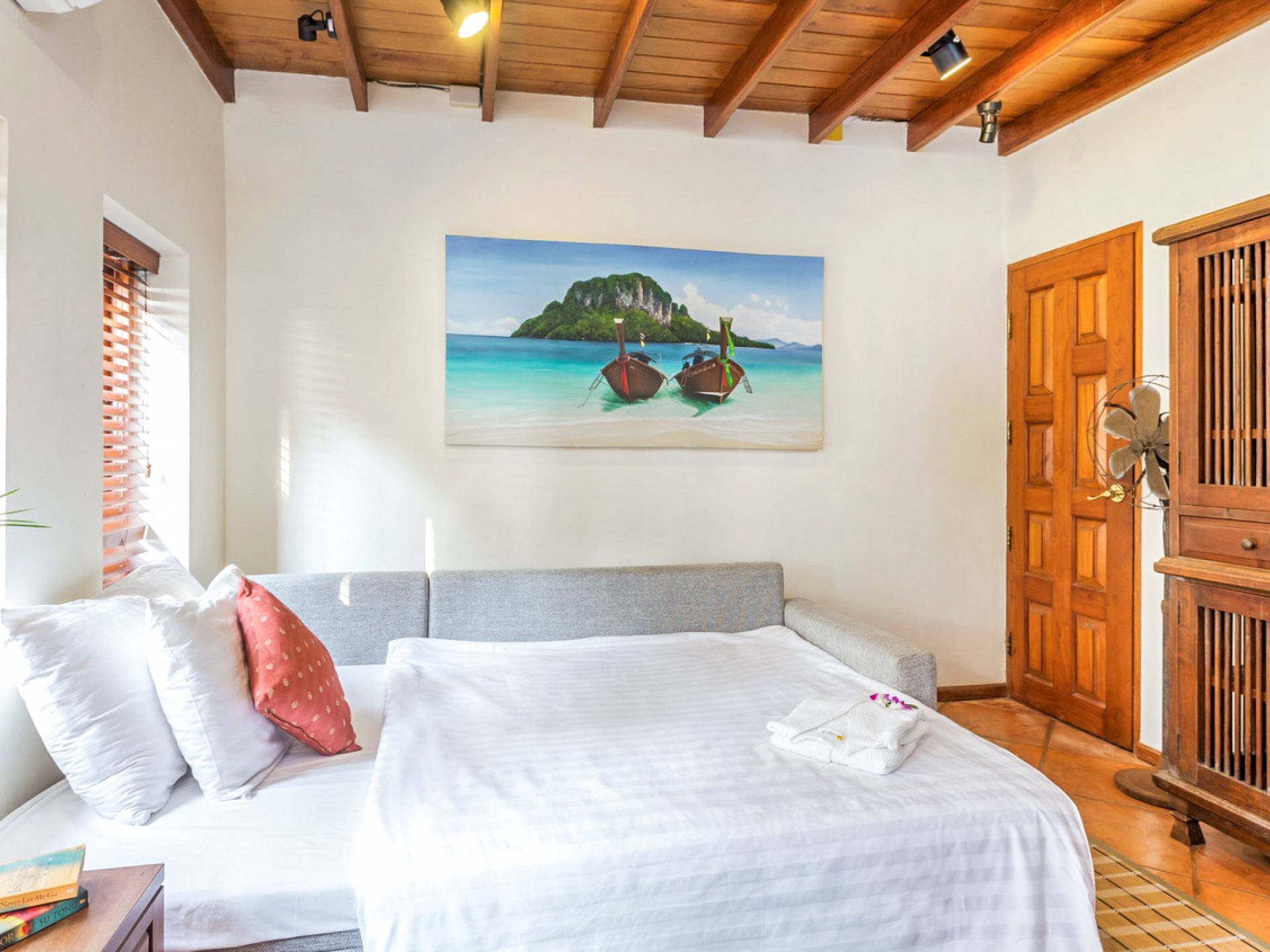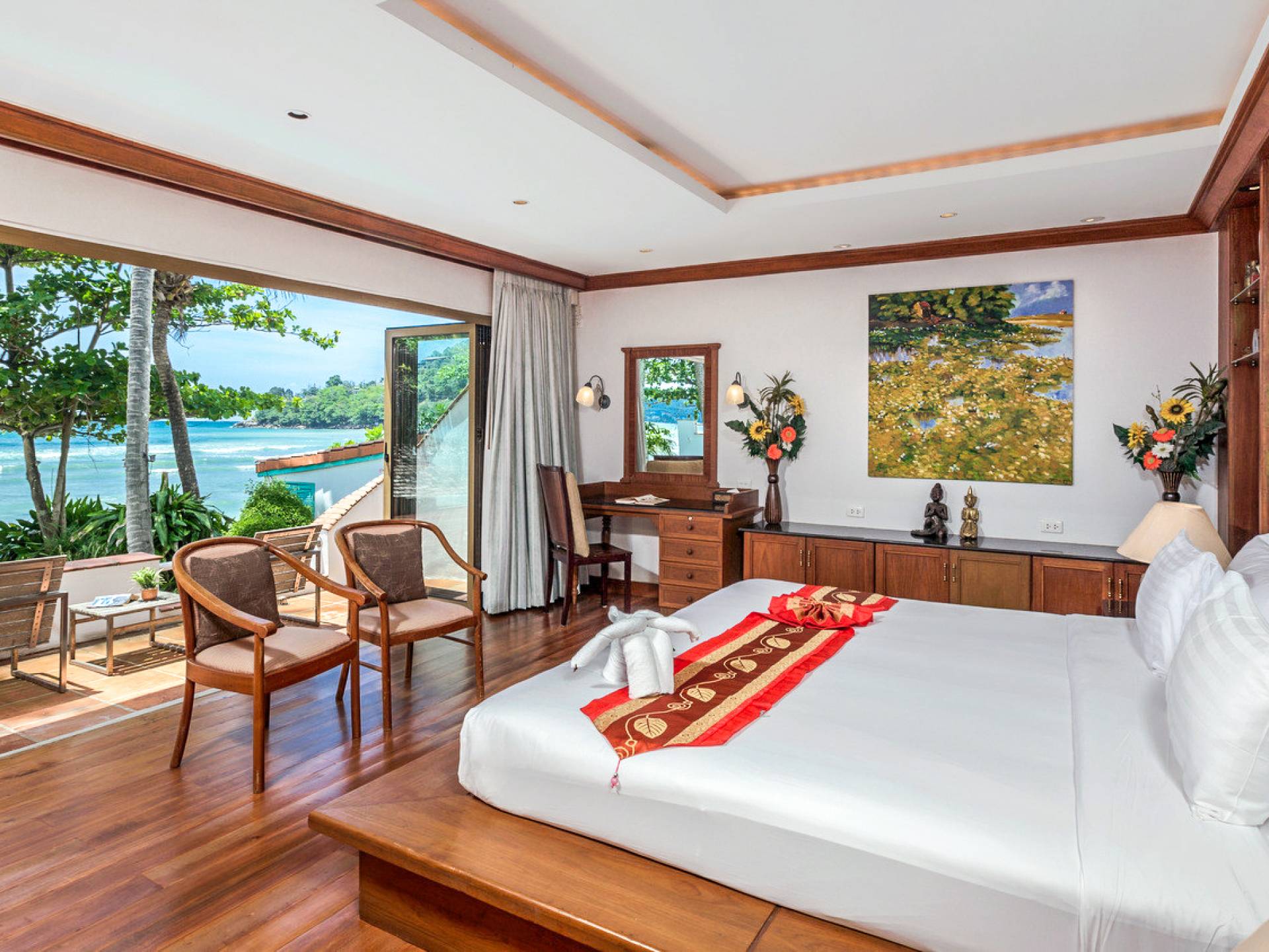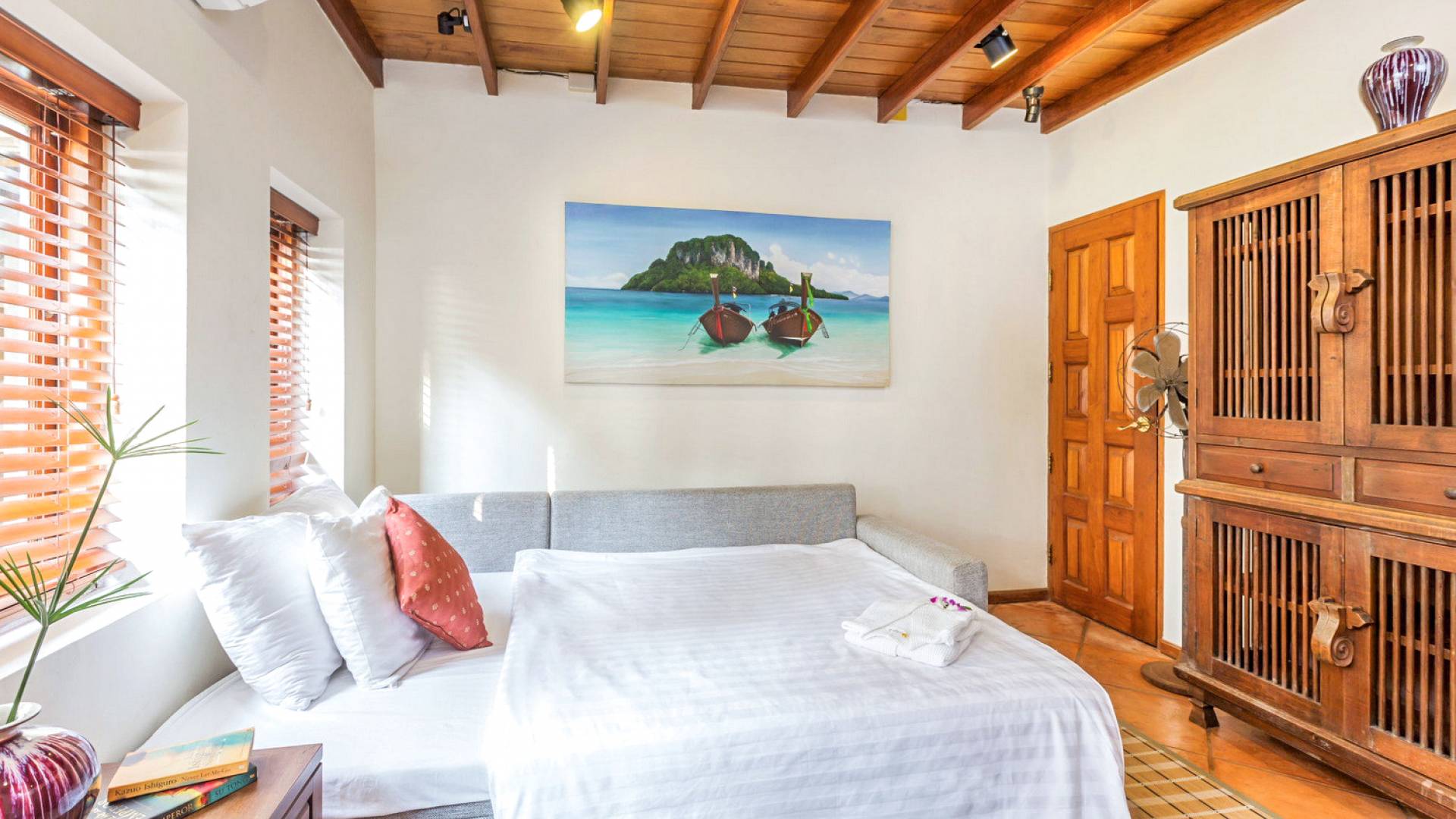 Kalim Beach House features seven fully furnished bedrooms, which are all air-conditioned. The availability of large spaces for large families makes this villa a quintessential and family-friendly retreat. The bedrooms are also spacious and furnished with king-sized, queen-sized, and even single beds. nSome of the bedrooms which seem larger are enjoined to a lovely balcony that provides an outdoor sitting that looks directly over the beautiful ocean. All the bedrooms of Kalim beach house are fitted with nice TVs and a fantastic wardrobe space which will give you a rich taste of Thailand. Some of the bedrooms even have their personal living space equipped with coffee tables and sofas to help you rest before retiring to bed.