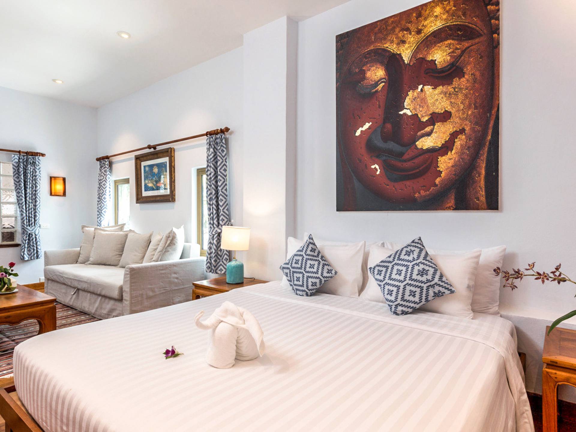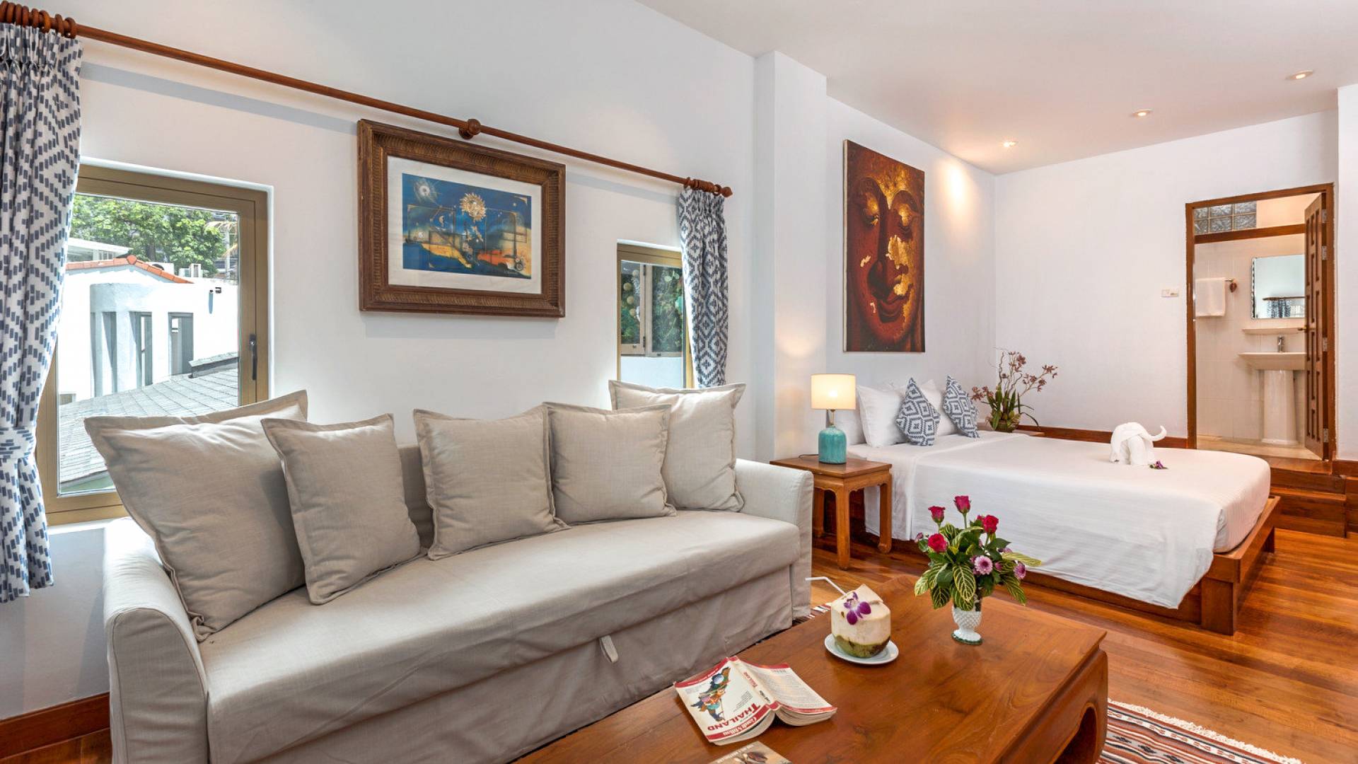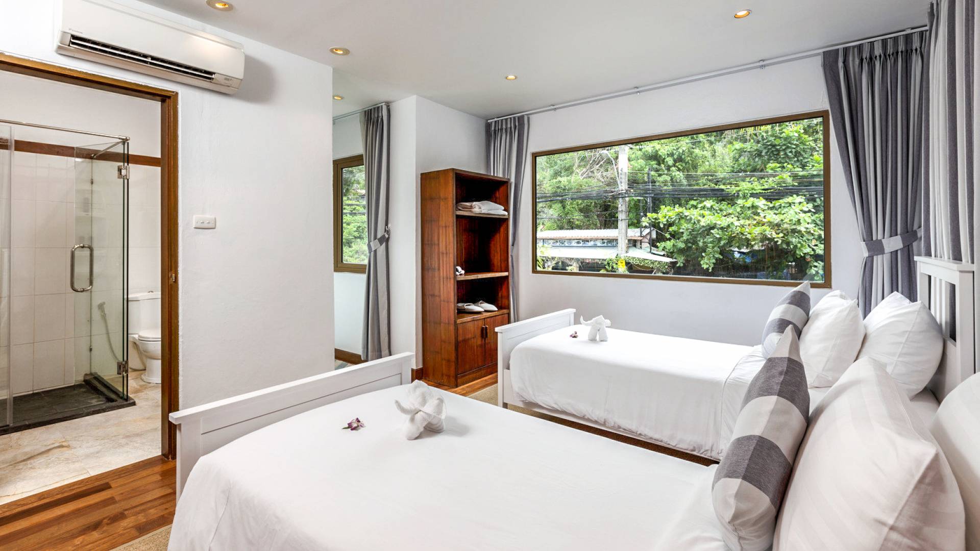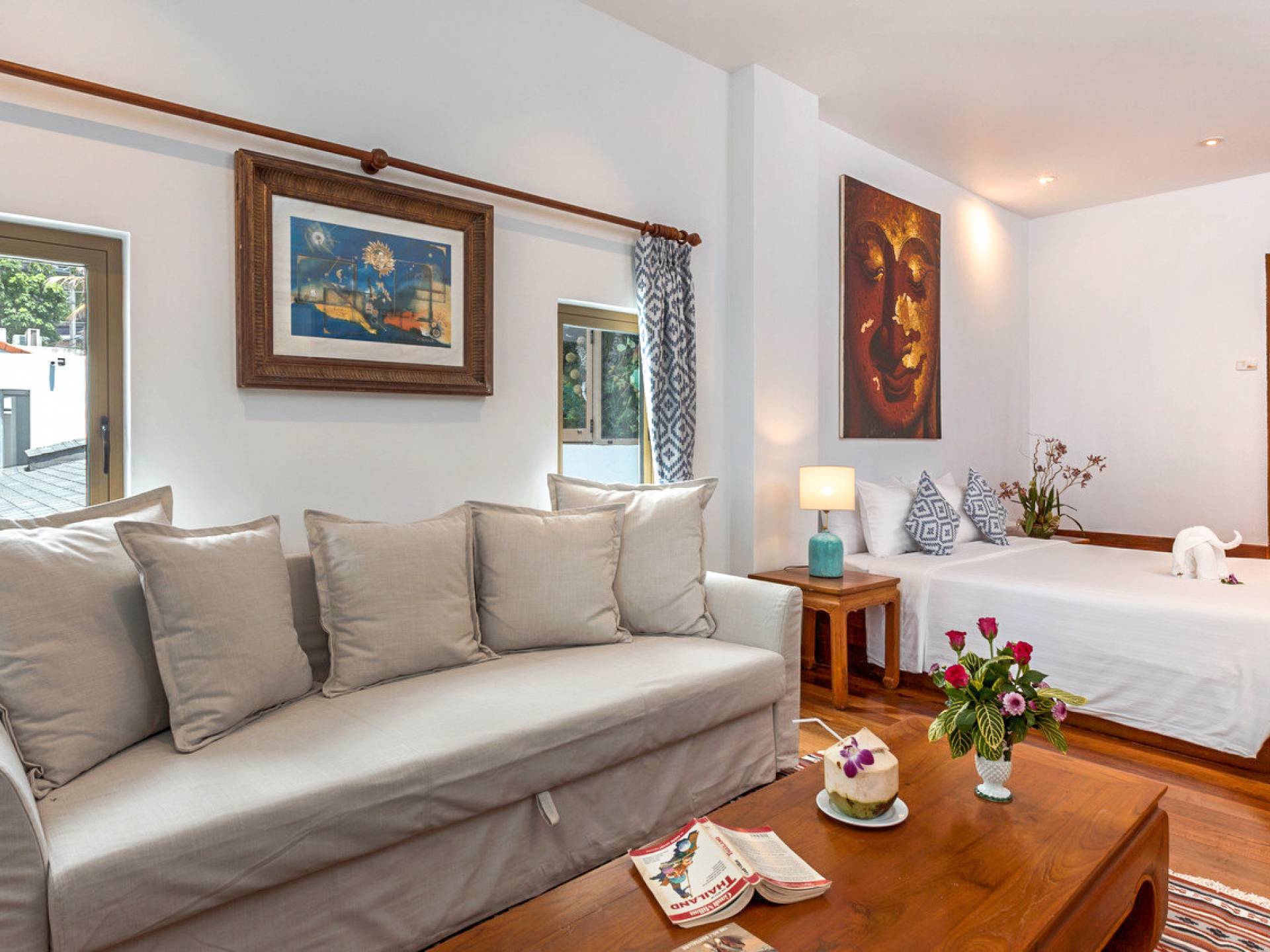 Kalim Beach House features seven fully furnished bedrooms, which are all air-conditioned. The availability of large spaces for large families makes this villa a quintessential and family-friendly retreat. The bedrooms are also spacious and furnished with king-sized, queen-sized, and even single beds. nSome of the bedrooms which seem larger are enjoined to a lovely balcony that provides an outdoor sitting that looks directly over the beautiful ocean. All the bedrooms of Kalim beach house are fitted with nice TVs and a fantastic wardrobe space which will give you a rich taste of Thailand. Some of the bedrooms even have their personal living space equipped with coffee tables and sofas to help you rest before retiring to bed.