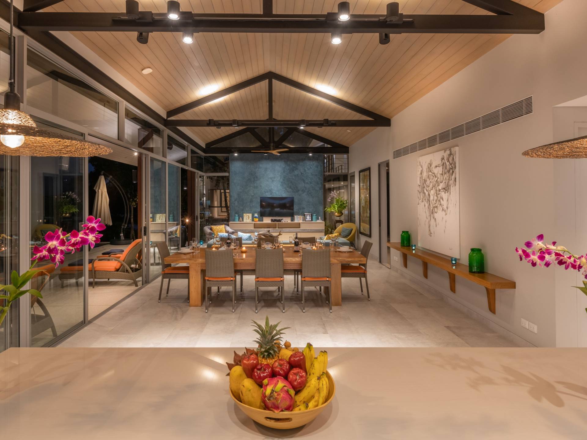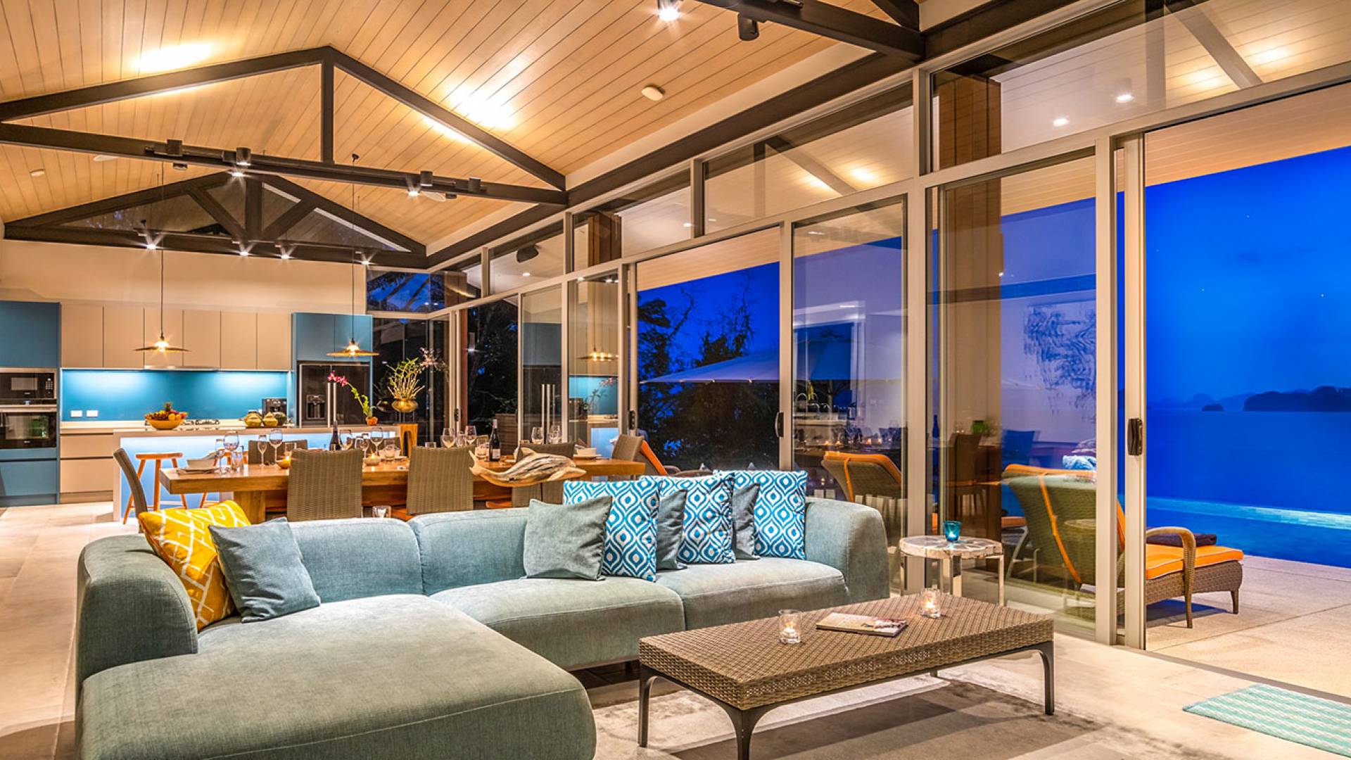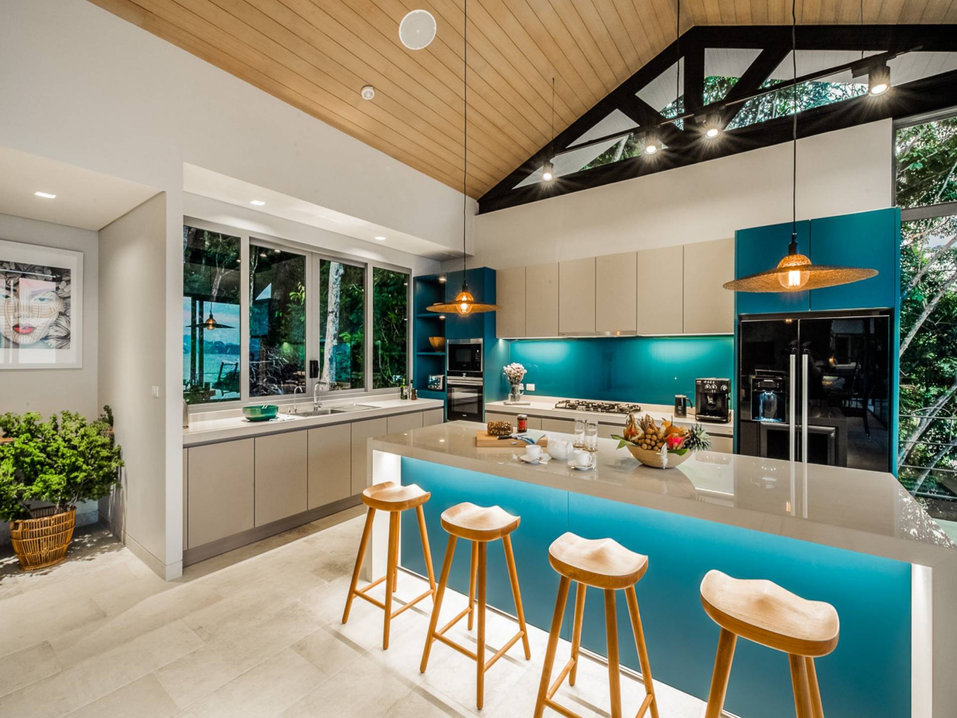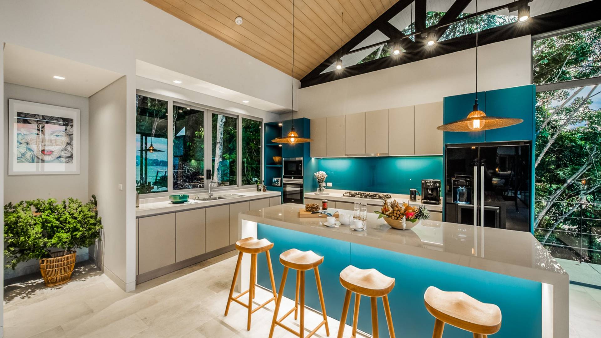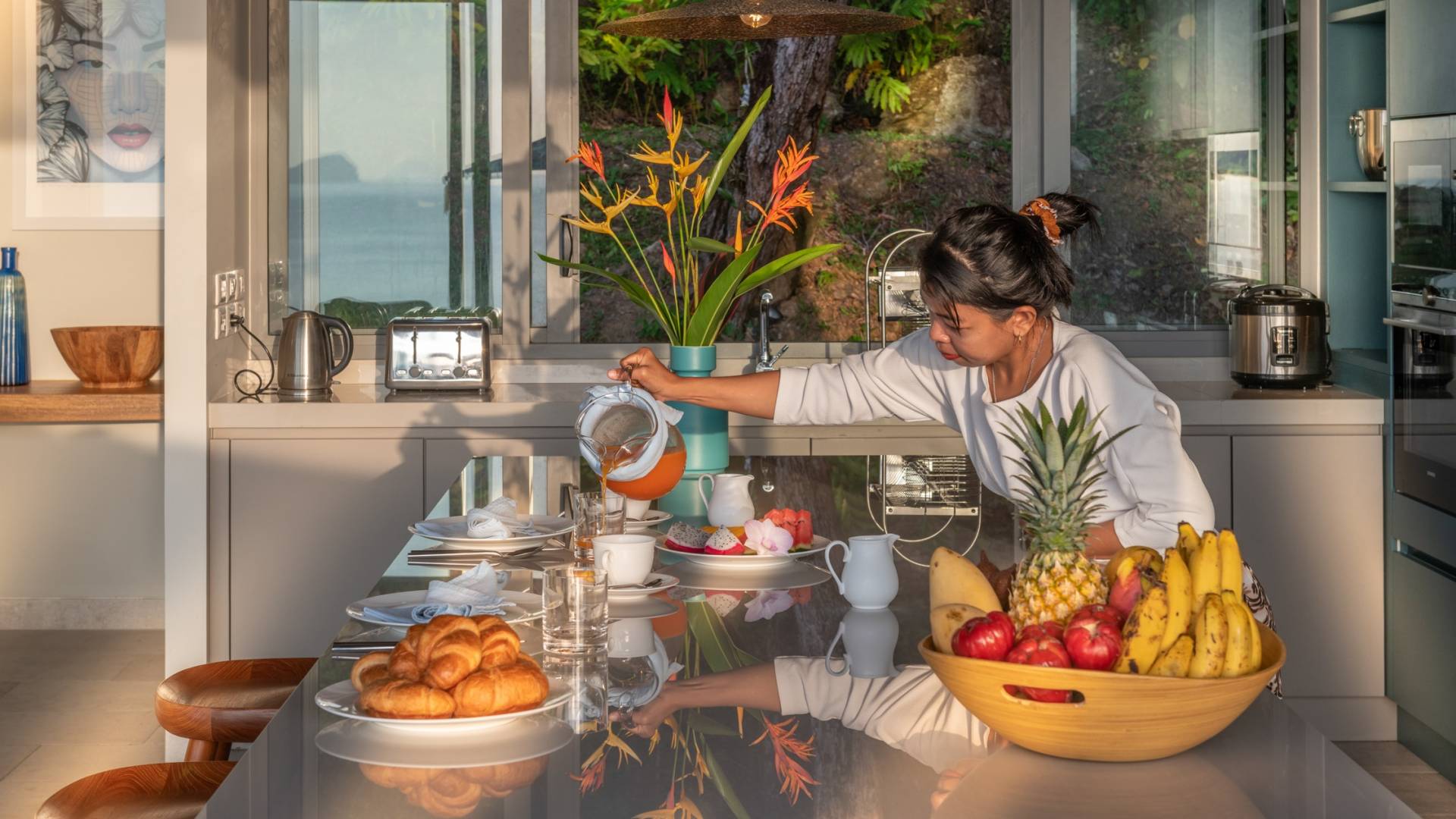 Each of the four master suites have been named after birds which are found in the area: Hornbill, Kingfisher, Sea Eagle & Hummingbird. Each of the rooms feature ensuite bathrooms with either bathtub and rainfall showers. Three of the rooms contain a King-size bed, while the fourth has singles which can be joined if preferred. The elegantly restrained designs in each bedroom make use of the natural light and each one shares the same magnificent ocean views.