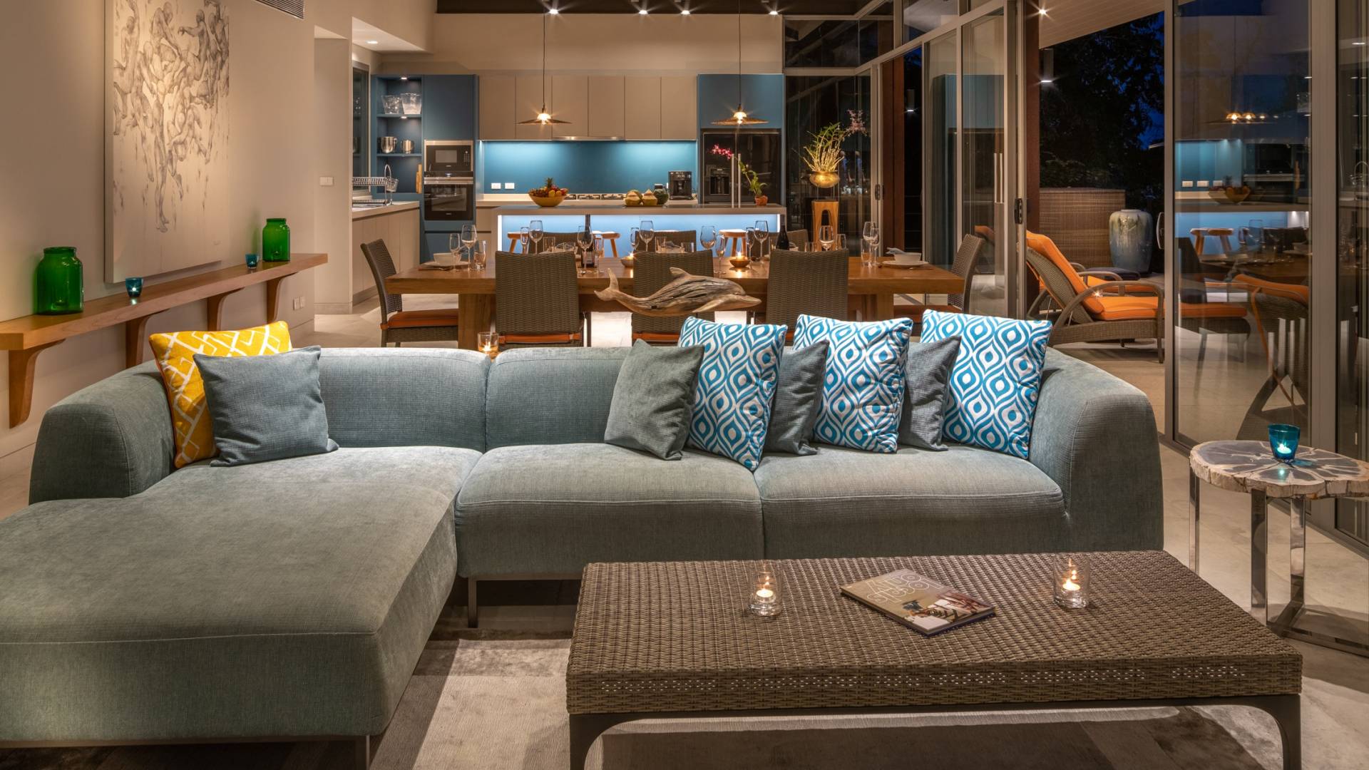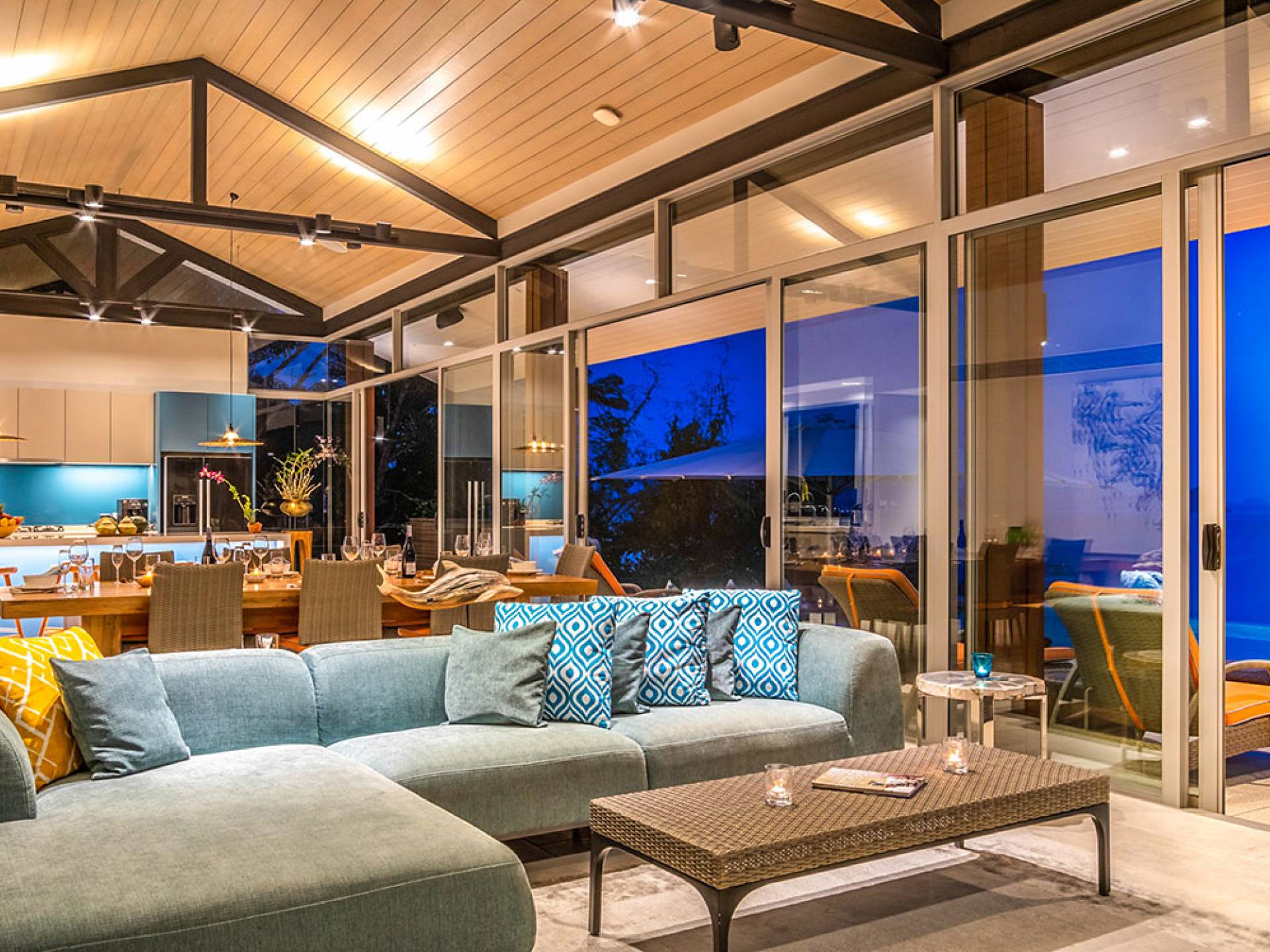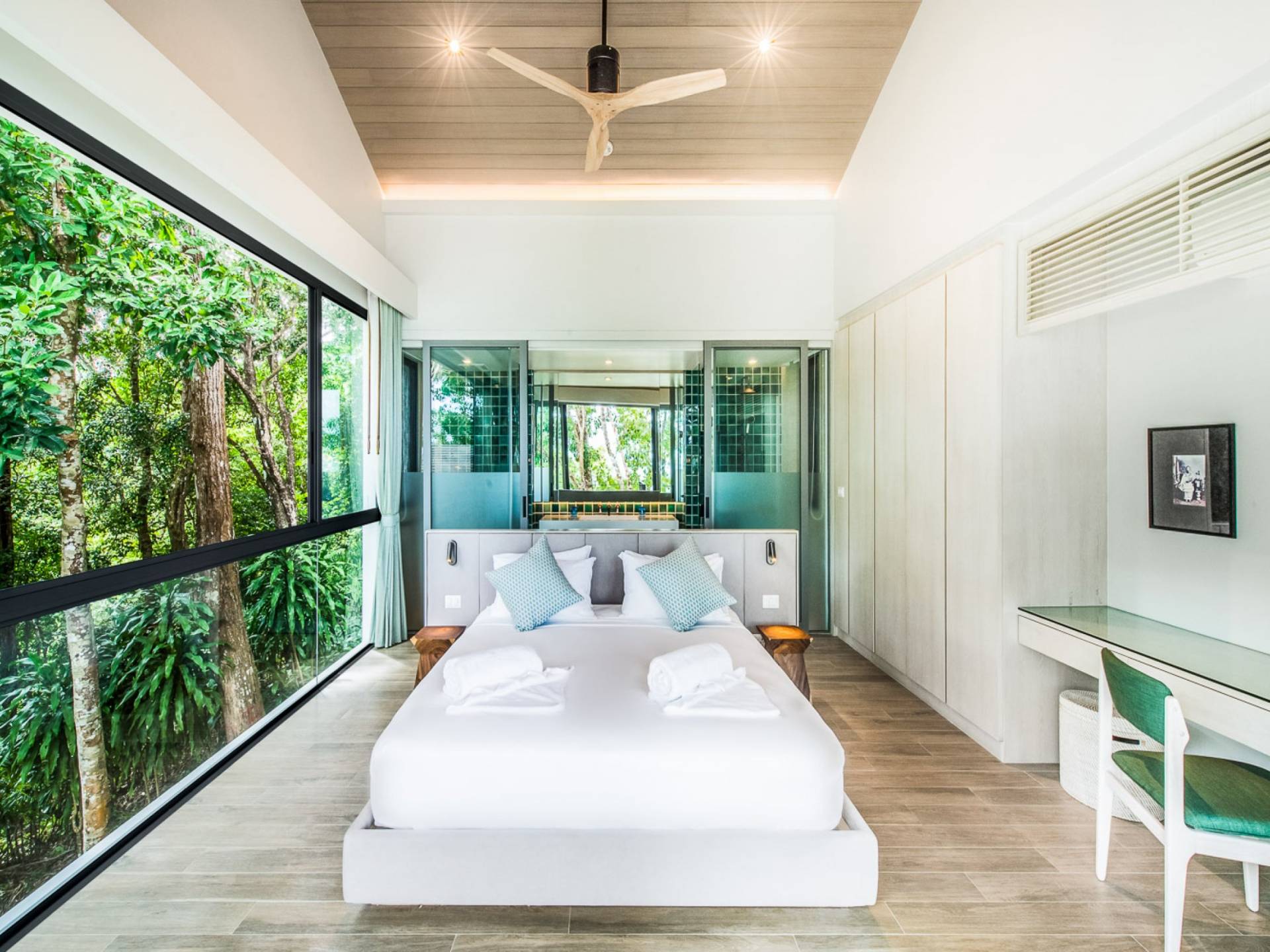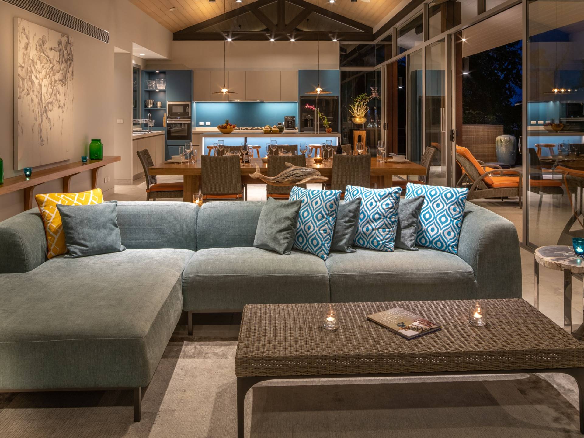 Each of the four master suites have been named after birds which are found in the area: Hornbill, Kingfisher, Sea Eagle & Hummingbird. Each of the rooms feature ensuite bathrooms with either bathtub and rainfall showers. Three of the rooms contain a King-size bed, while the fourth has singles which can be joined if preferred. The elegantly restrained designs in each bedroom make use of the natural light and each one shares the same magnificent ocean views.