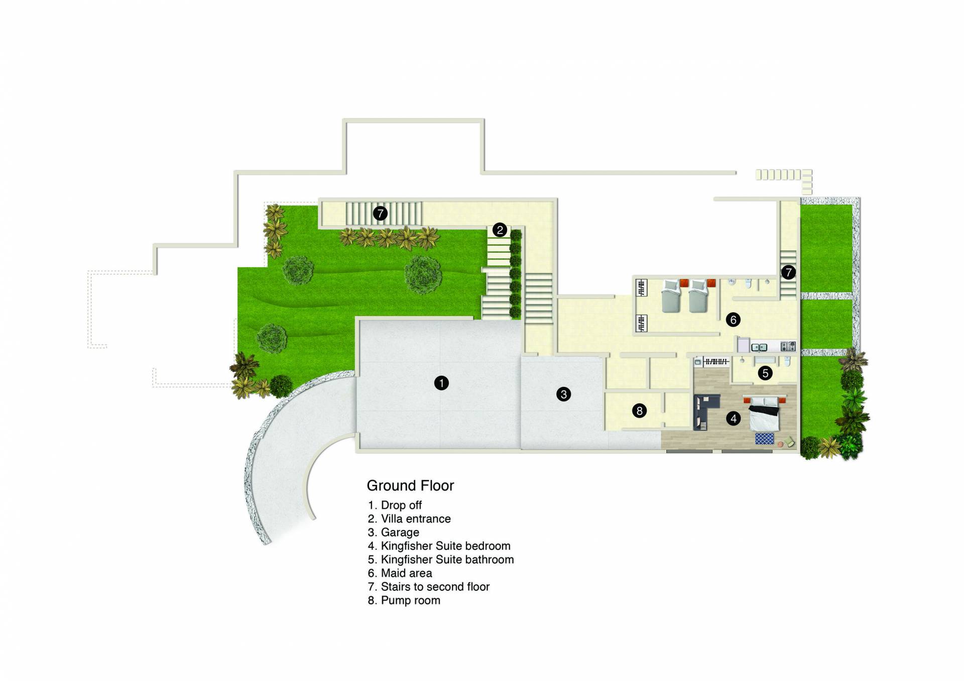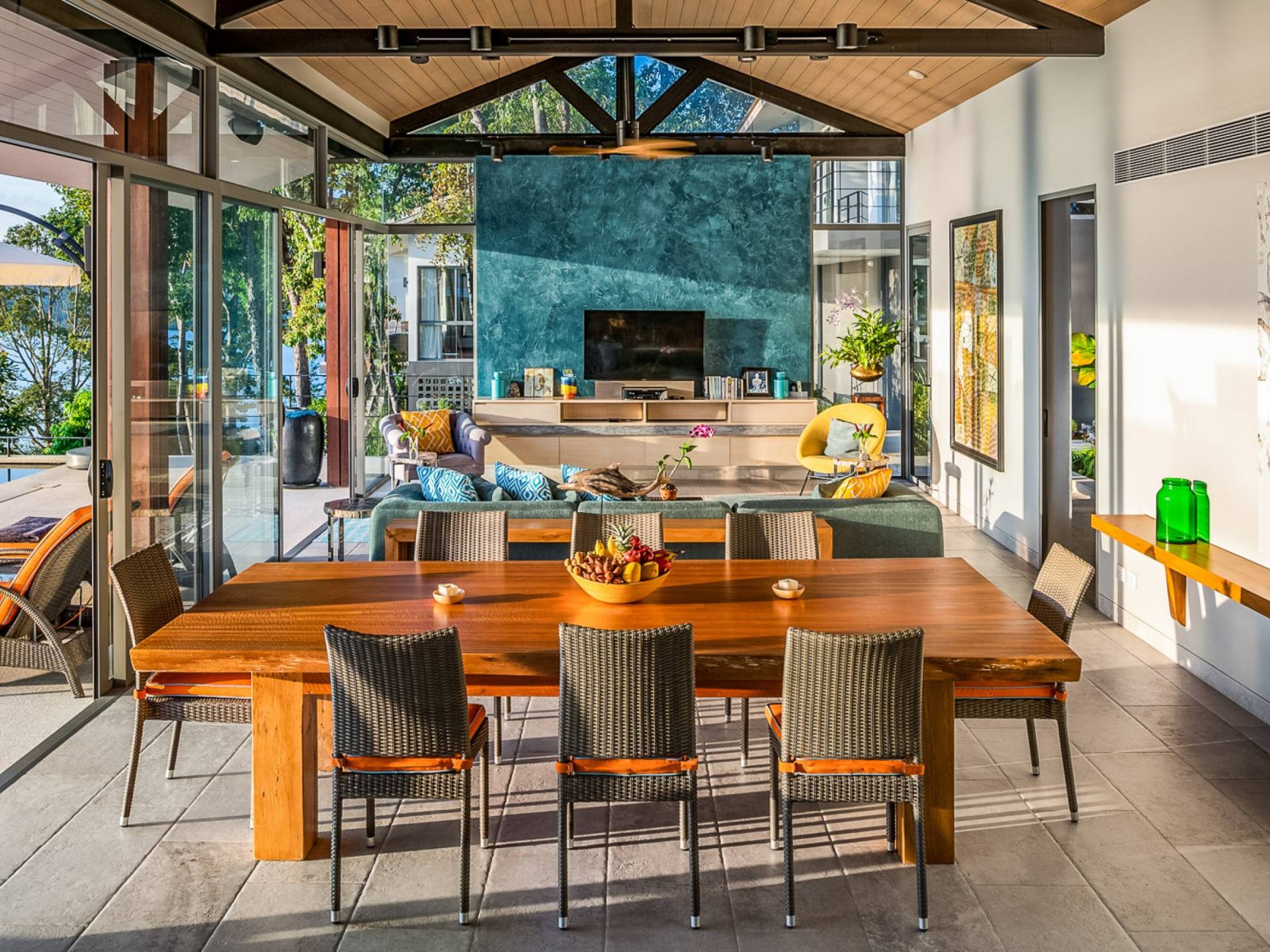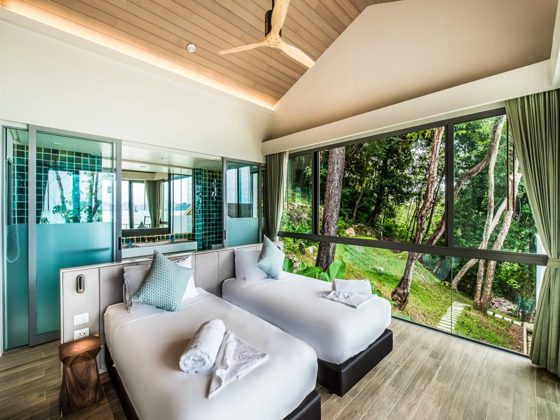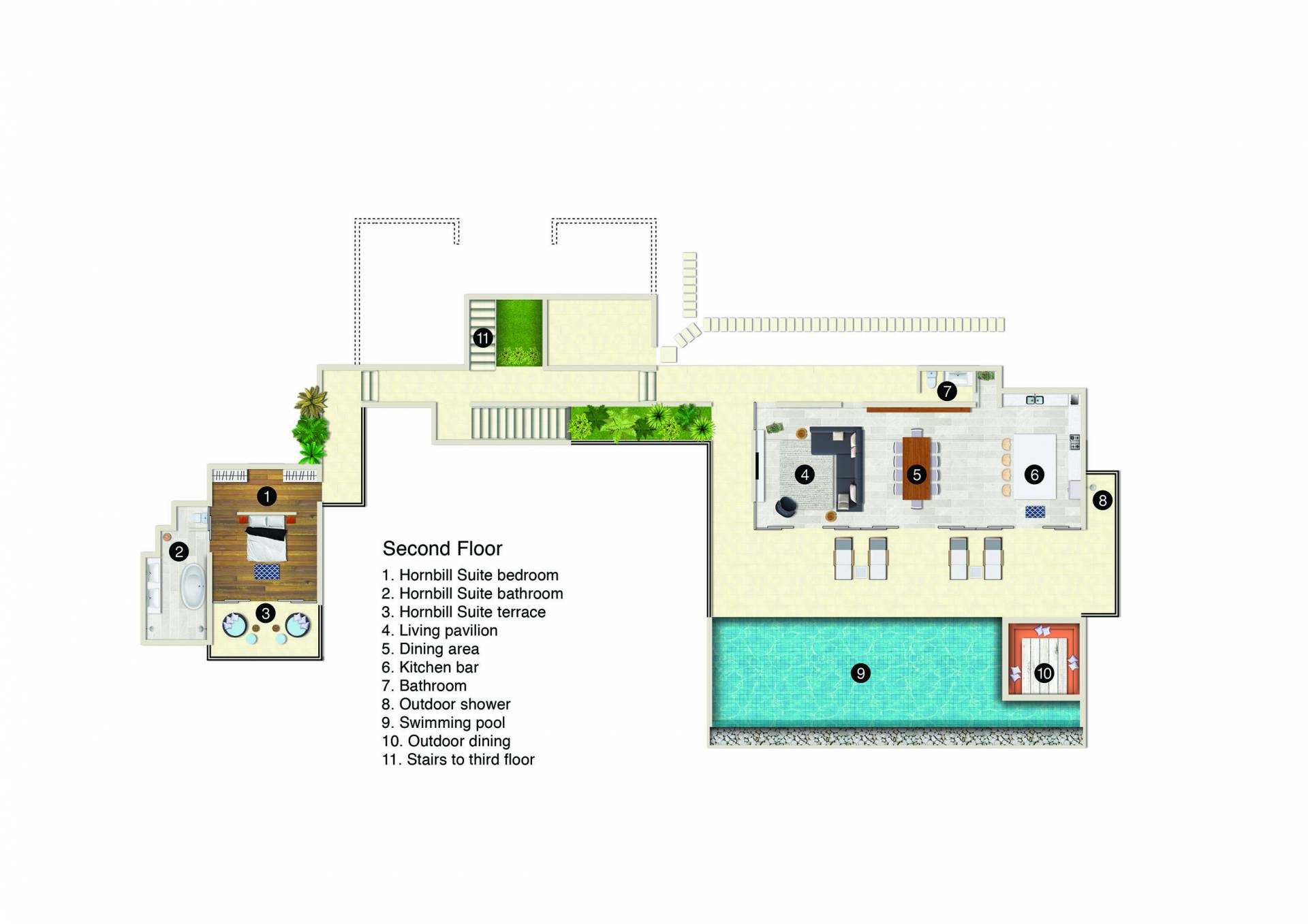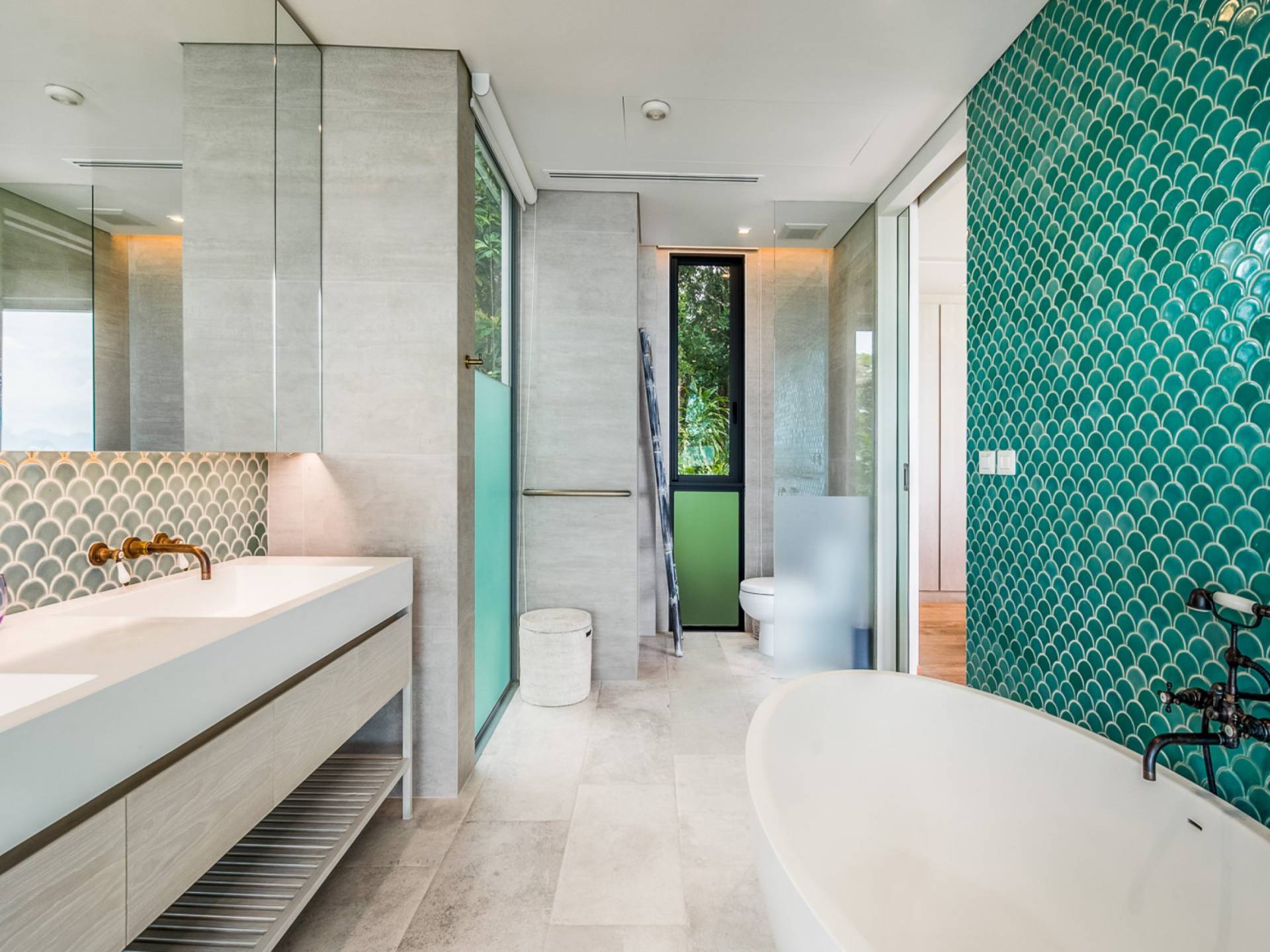 Each of the four master suites have been named after birds which are found in the area: Hornbill, Kingfisher, Sea Eagle & Hummingbird. Each of the rooms feature ensuite bathrooms with either bathtub and rainfall showers. Three of the rooms contain a King-size bed, while the fourth has singles which can be joined if preferred. The elegantly restrained designs in each bedroom make use of the natural light and each one shares the same magnificent ocean views.